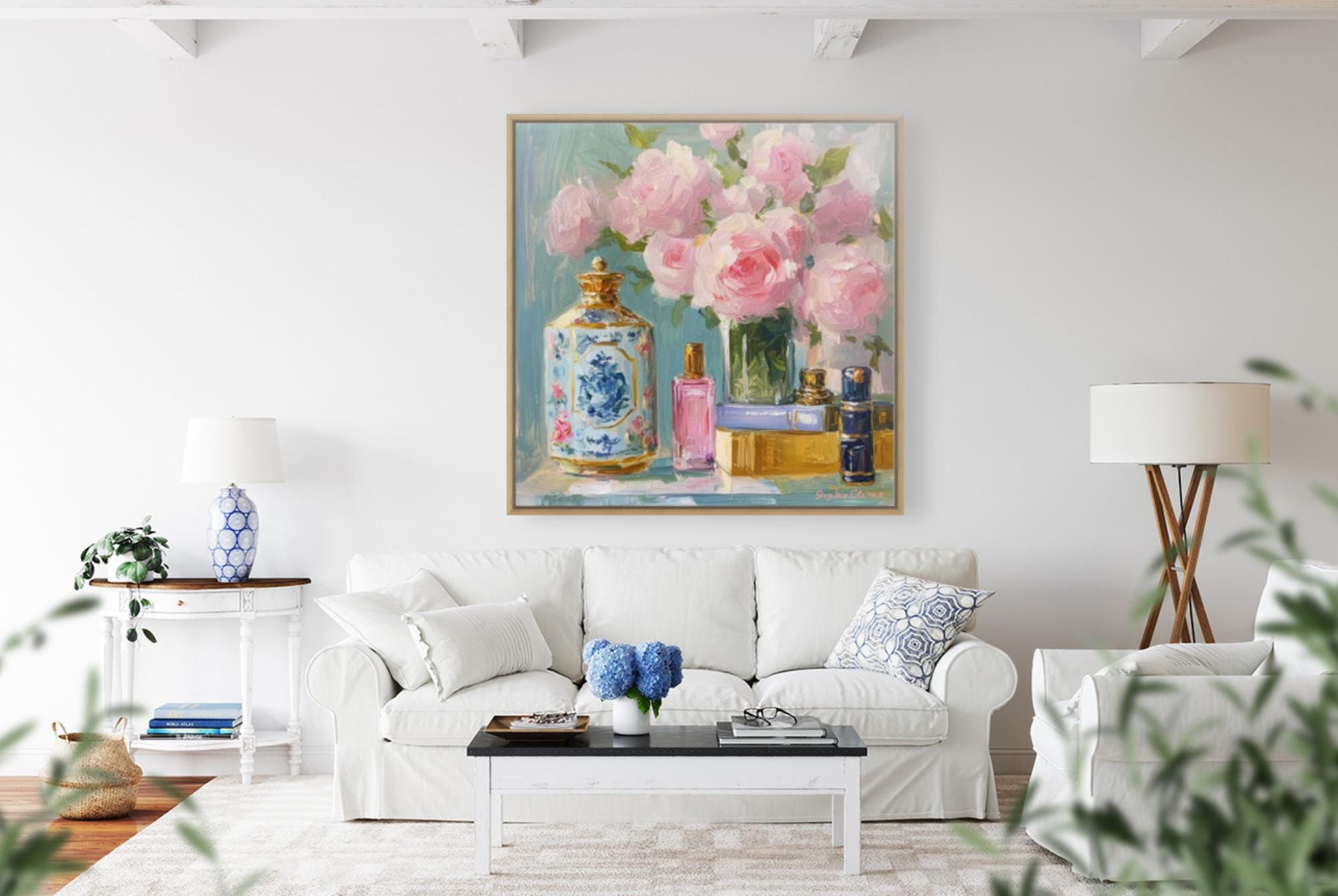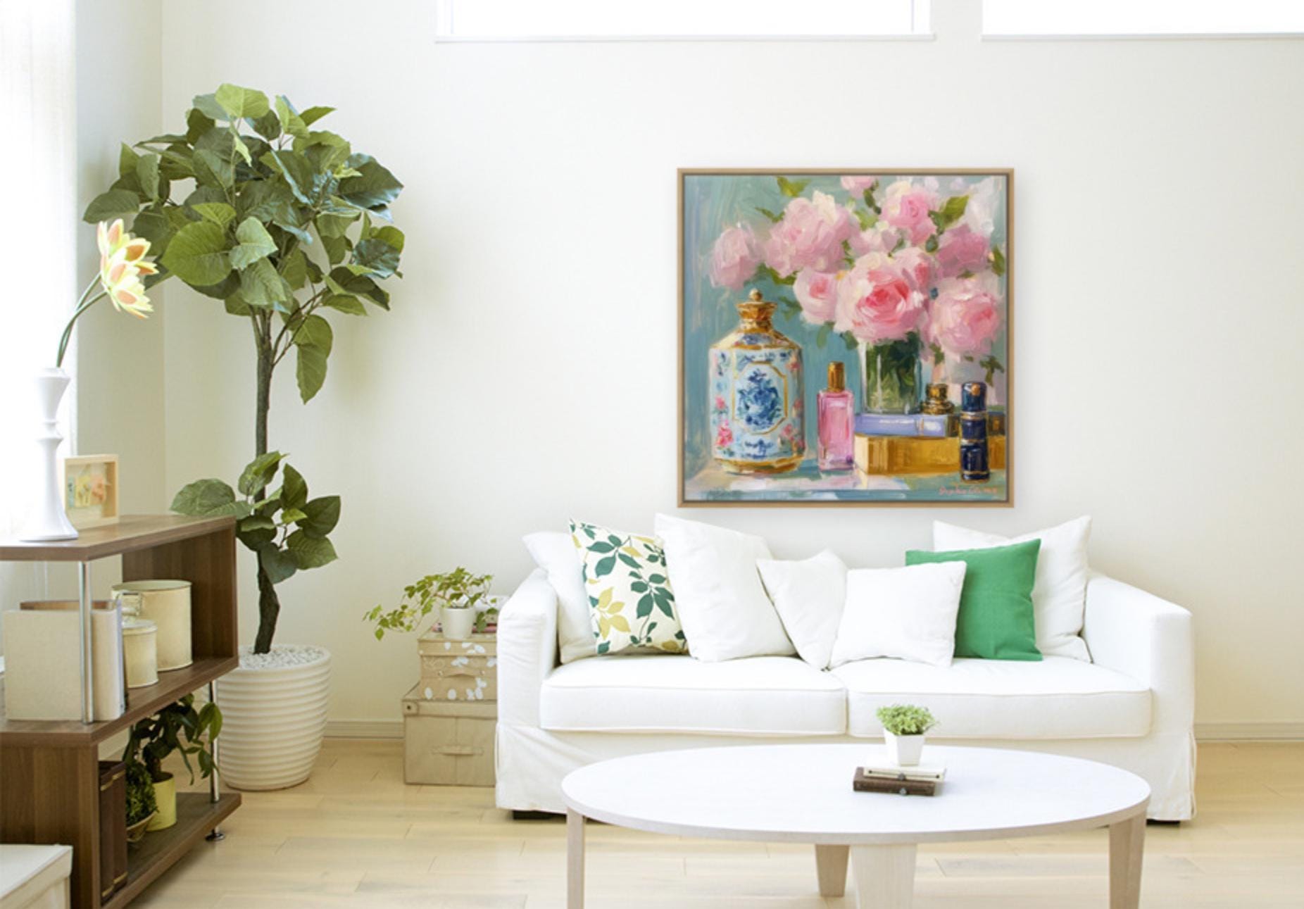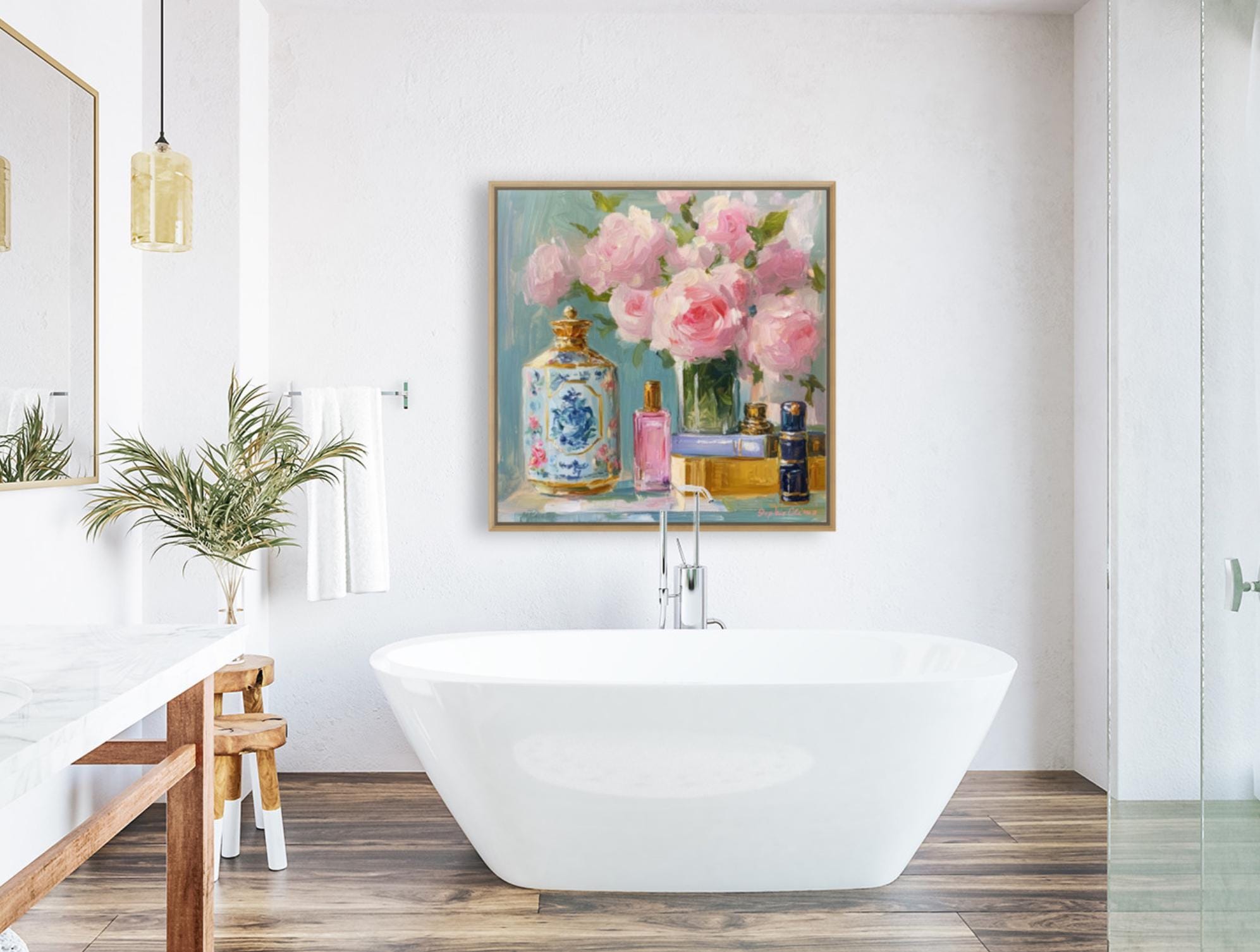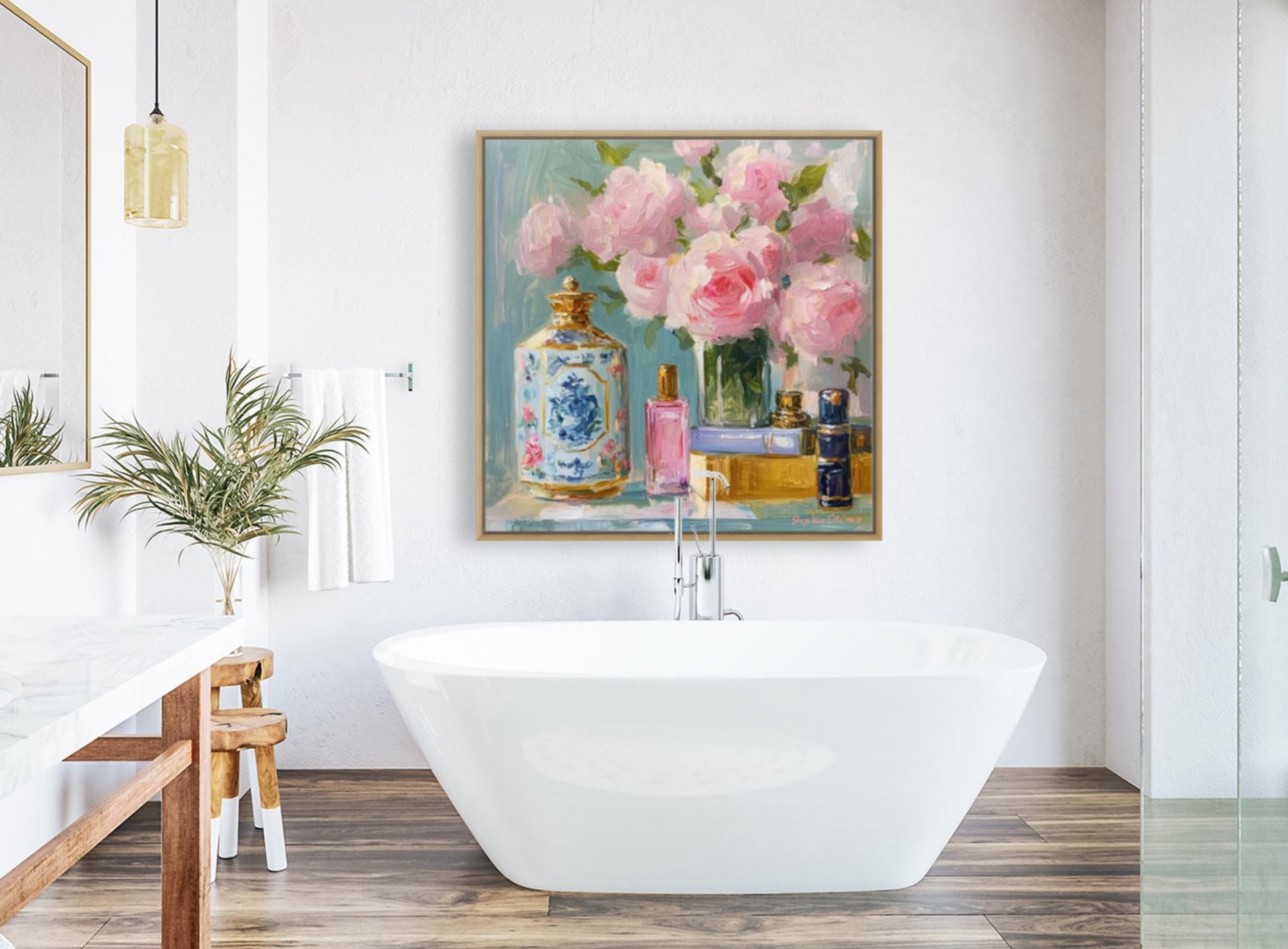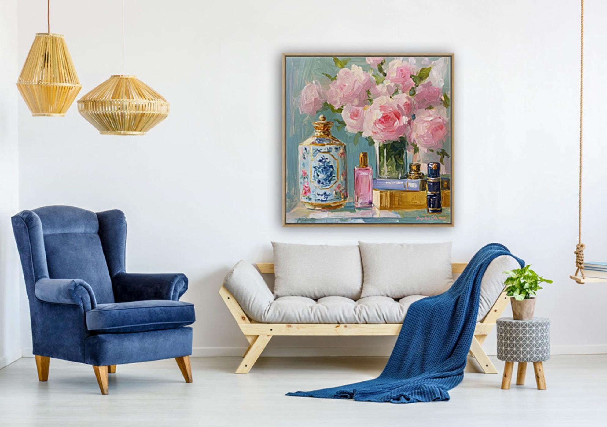 This floral still life brings a touch of romantic elegance to any setting, perfect for creating a charming, inviting atmosphere. It’s an ideal gift for art lovers, especially those who appreciate cottagecore and French country styles. Whether you're decorating a bedroom, living room, or dressing area, this piece adds a dash of timeless beauty.