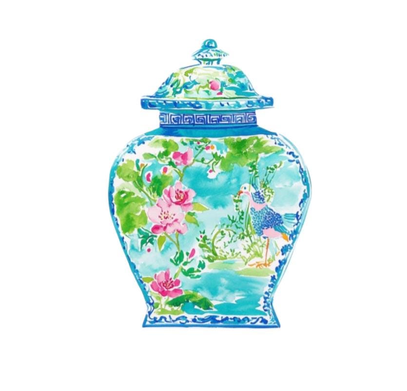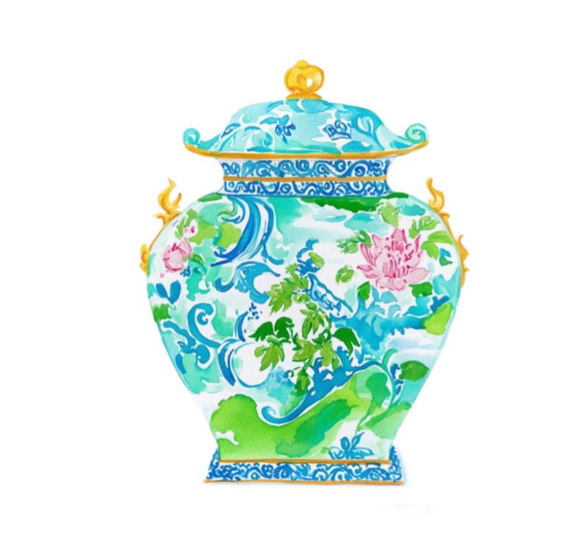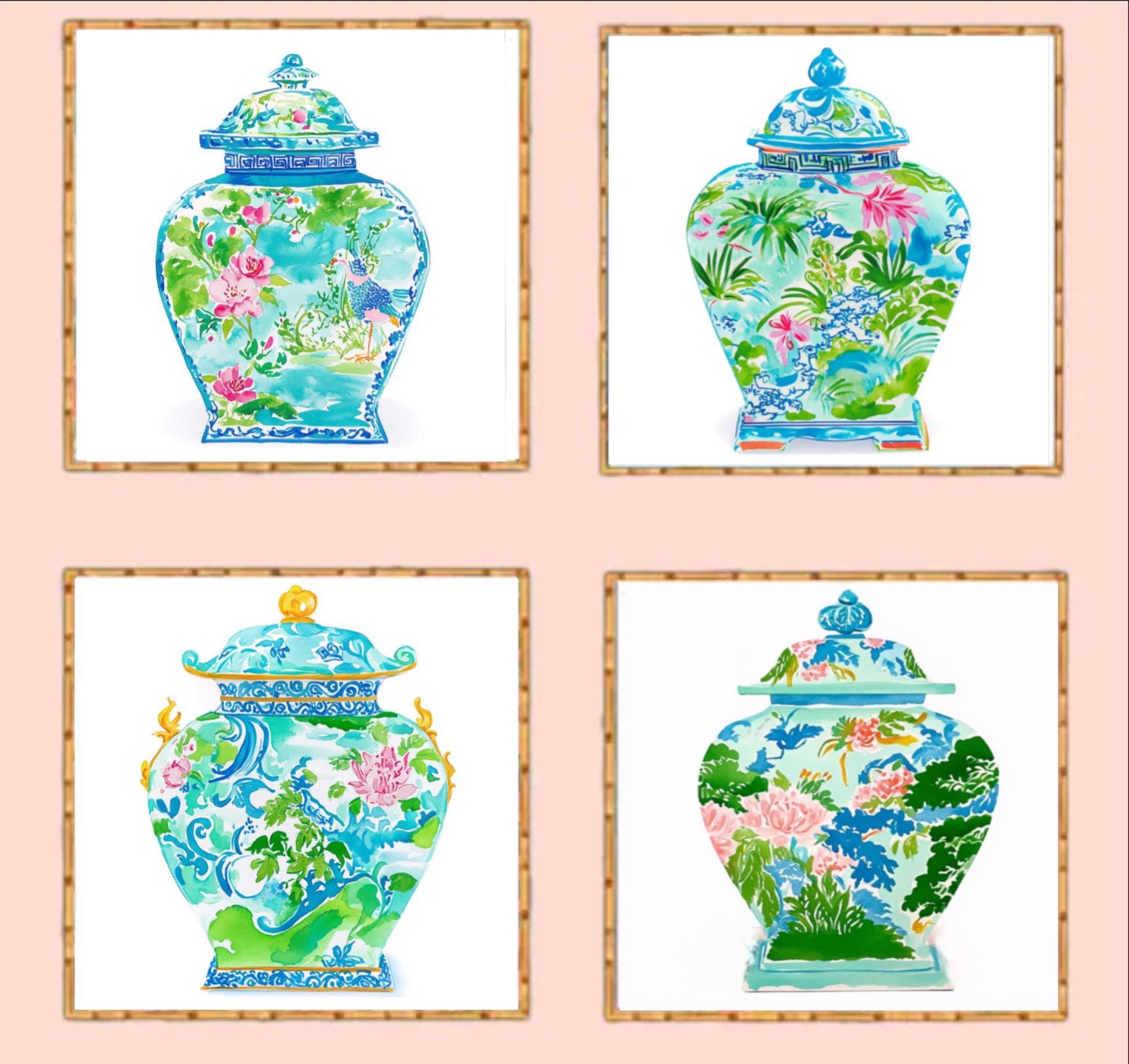 Chinoiserie Ginger Jar Art Prints: Pink, Green & Turquoise Set
