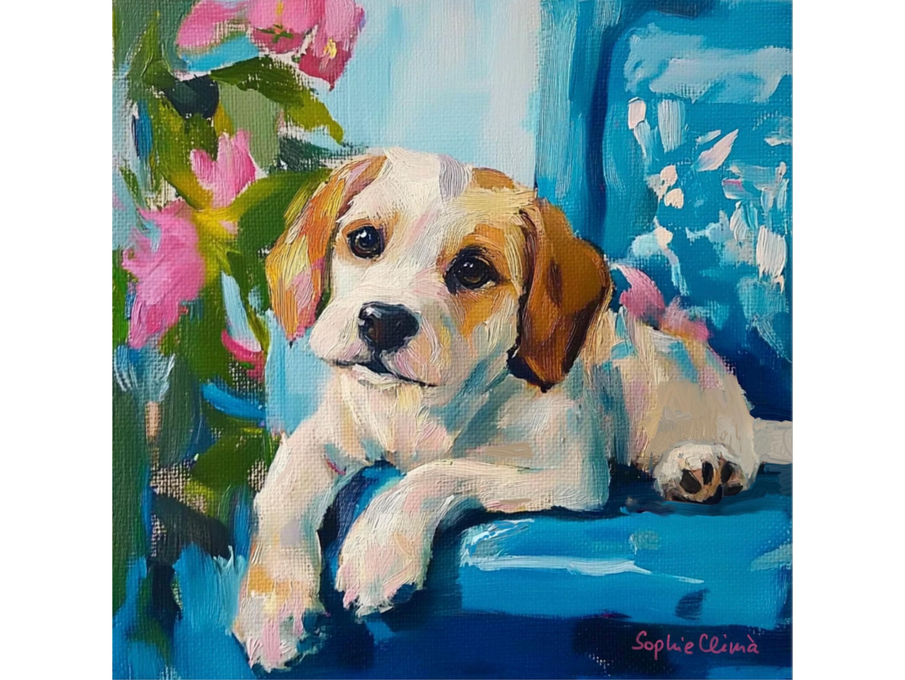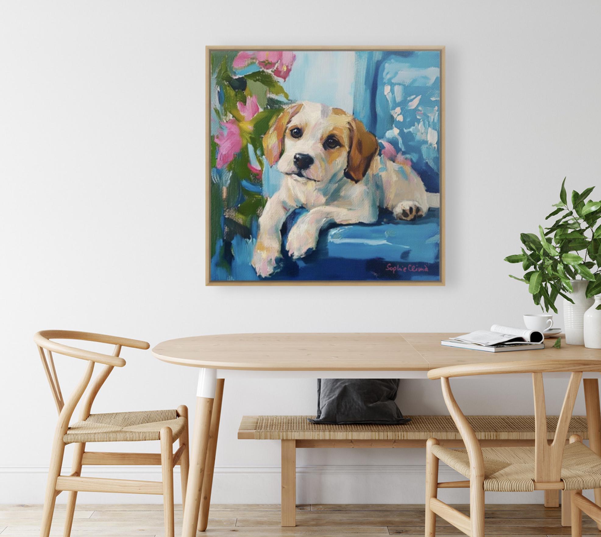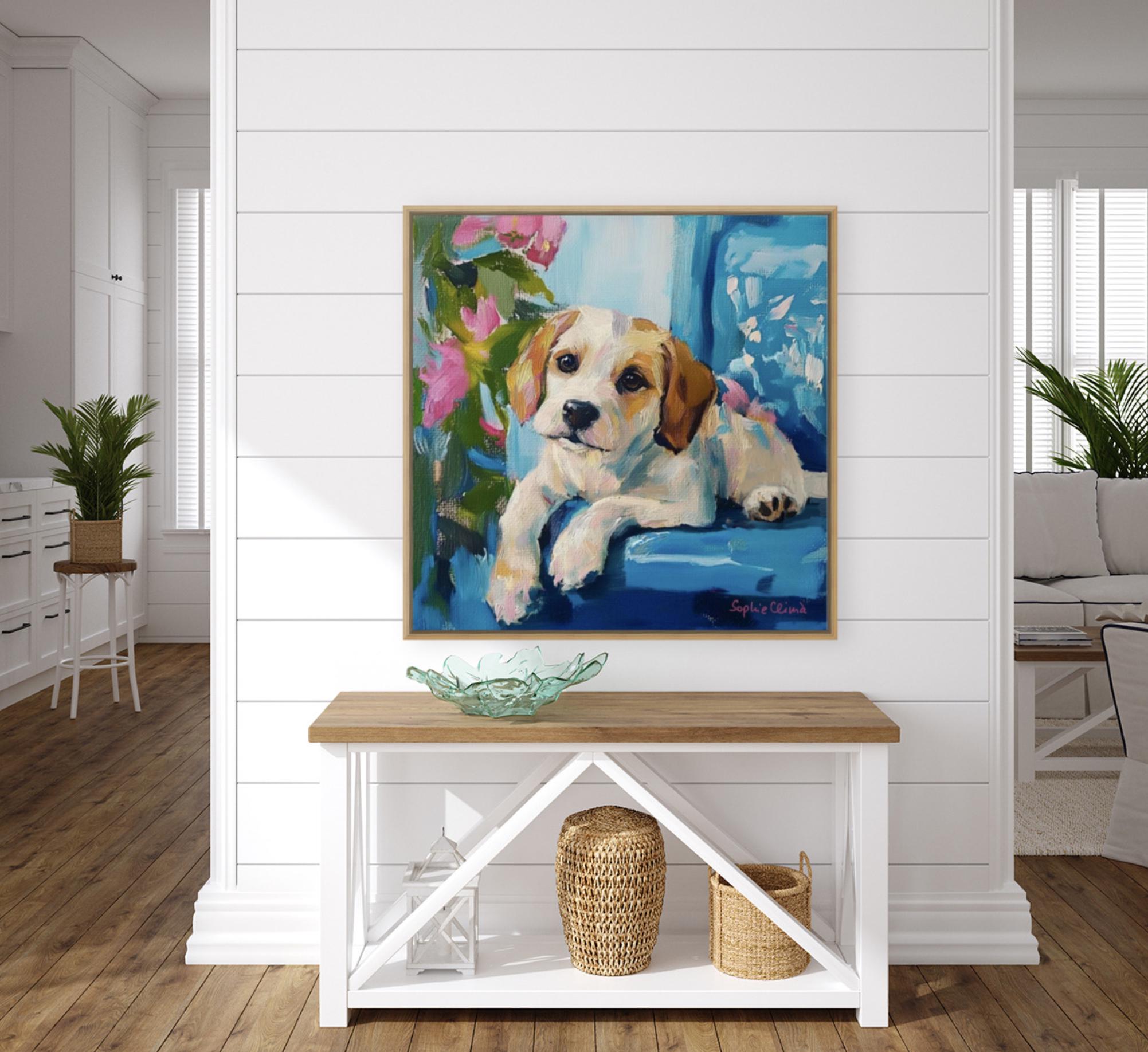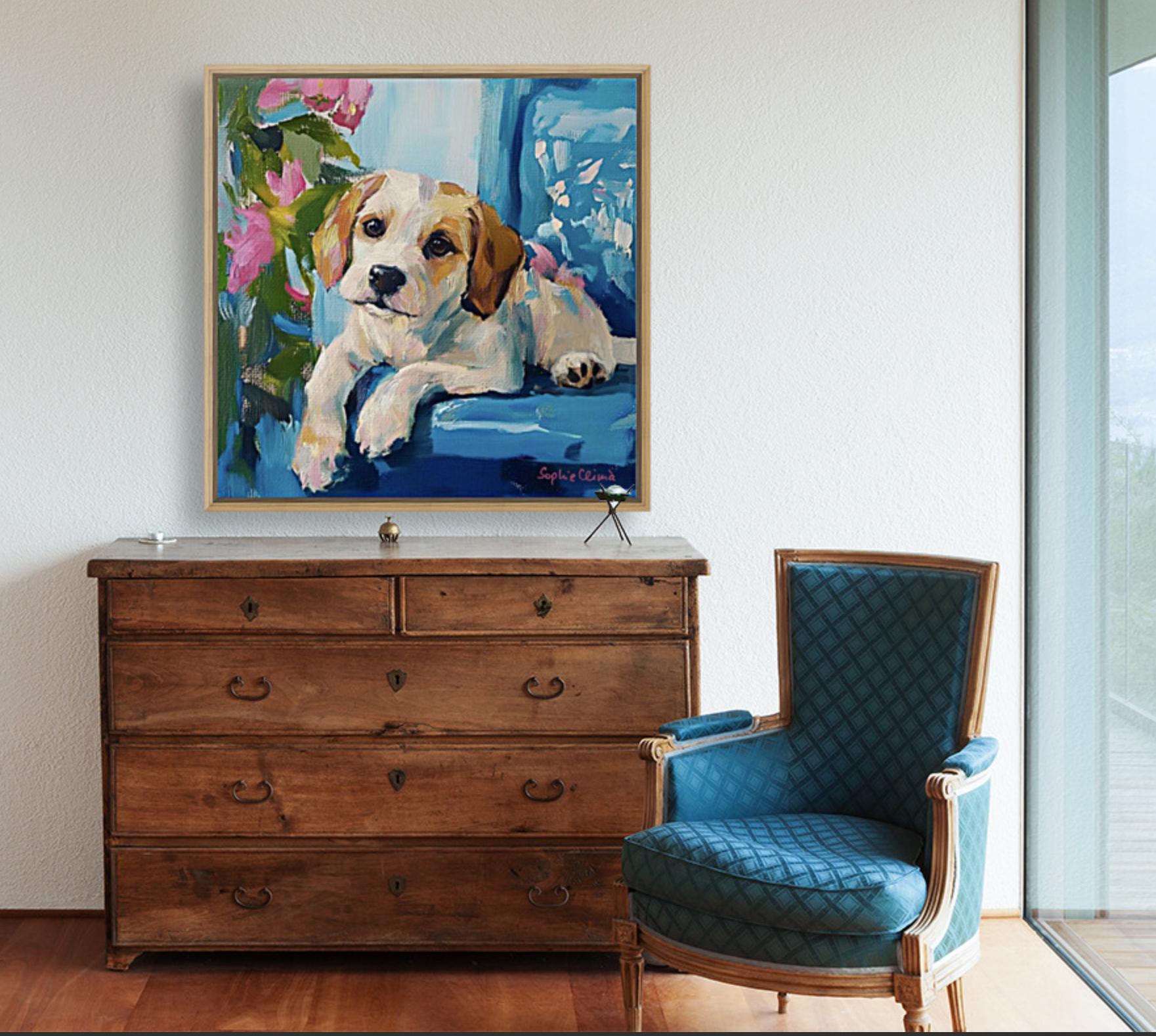 Grandmillennial art, Puppy Portrait, whimsical dogs art