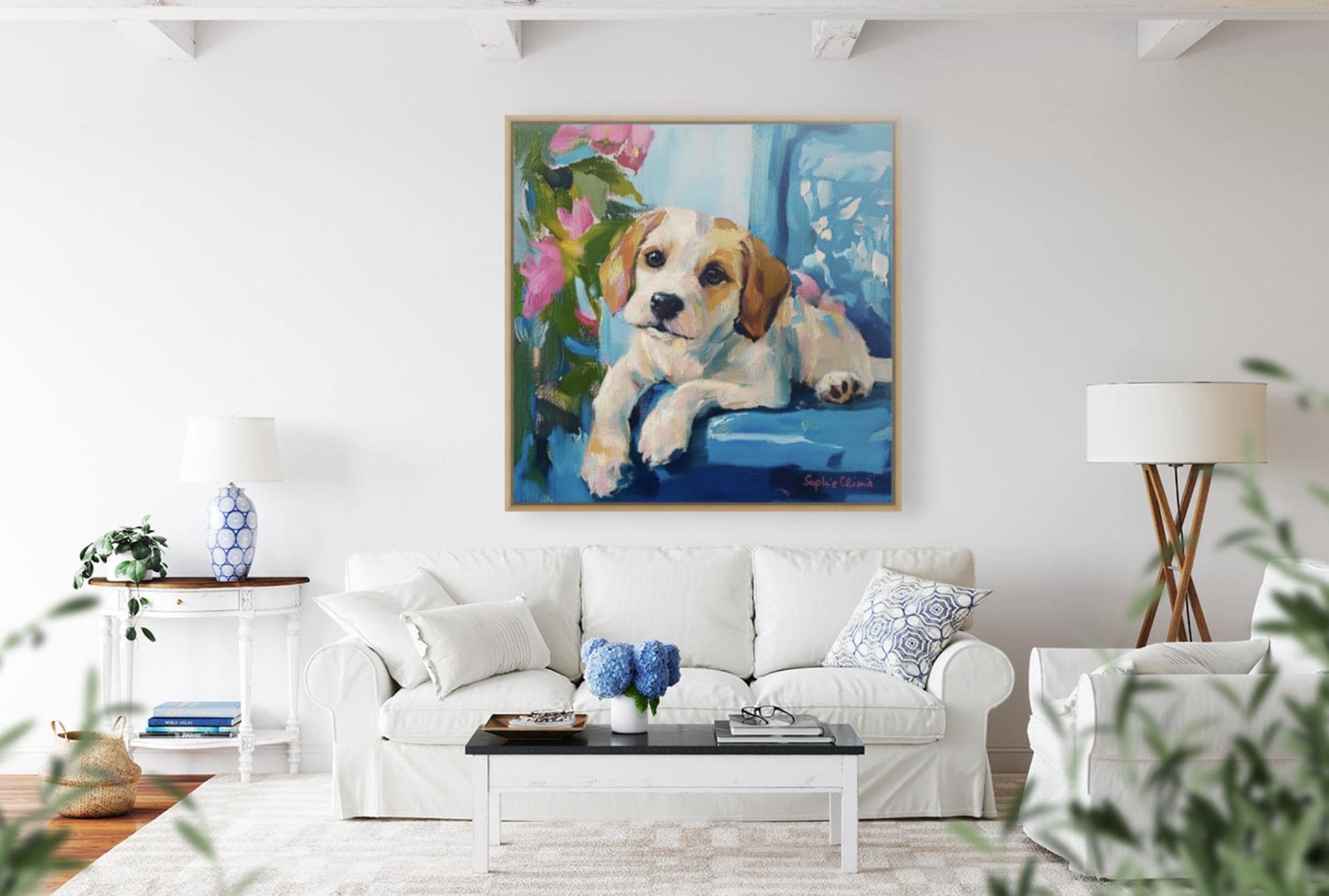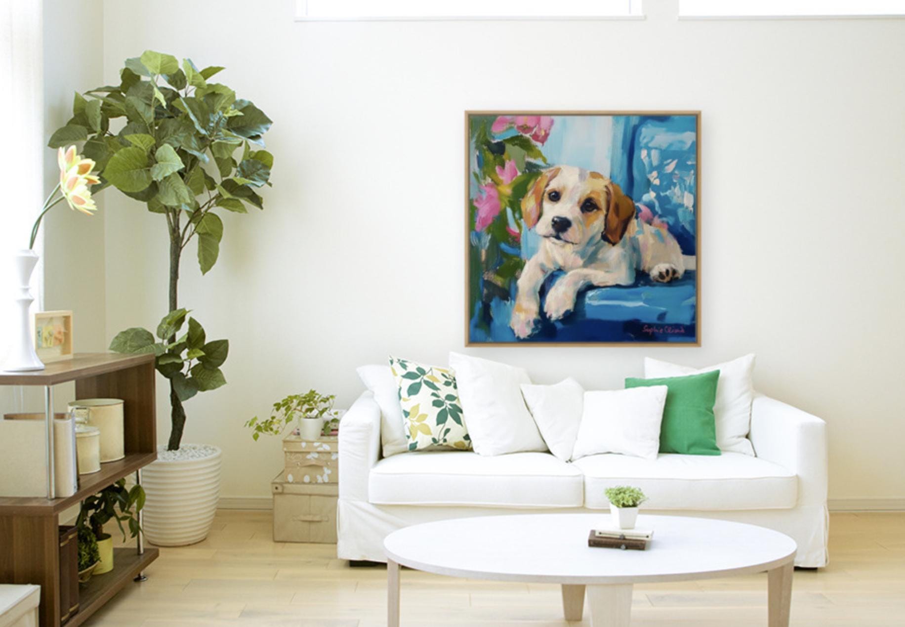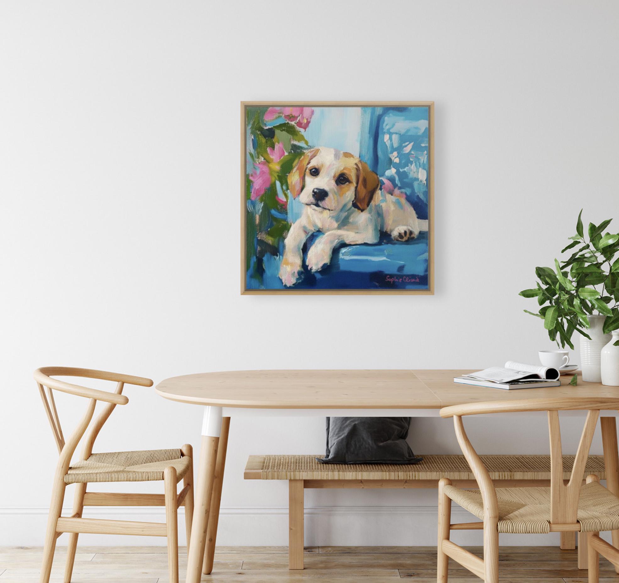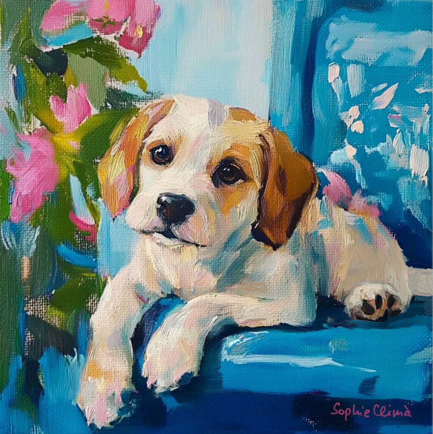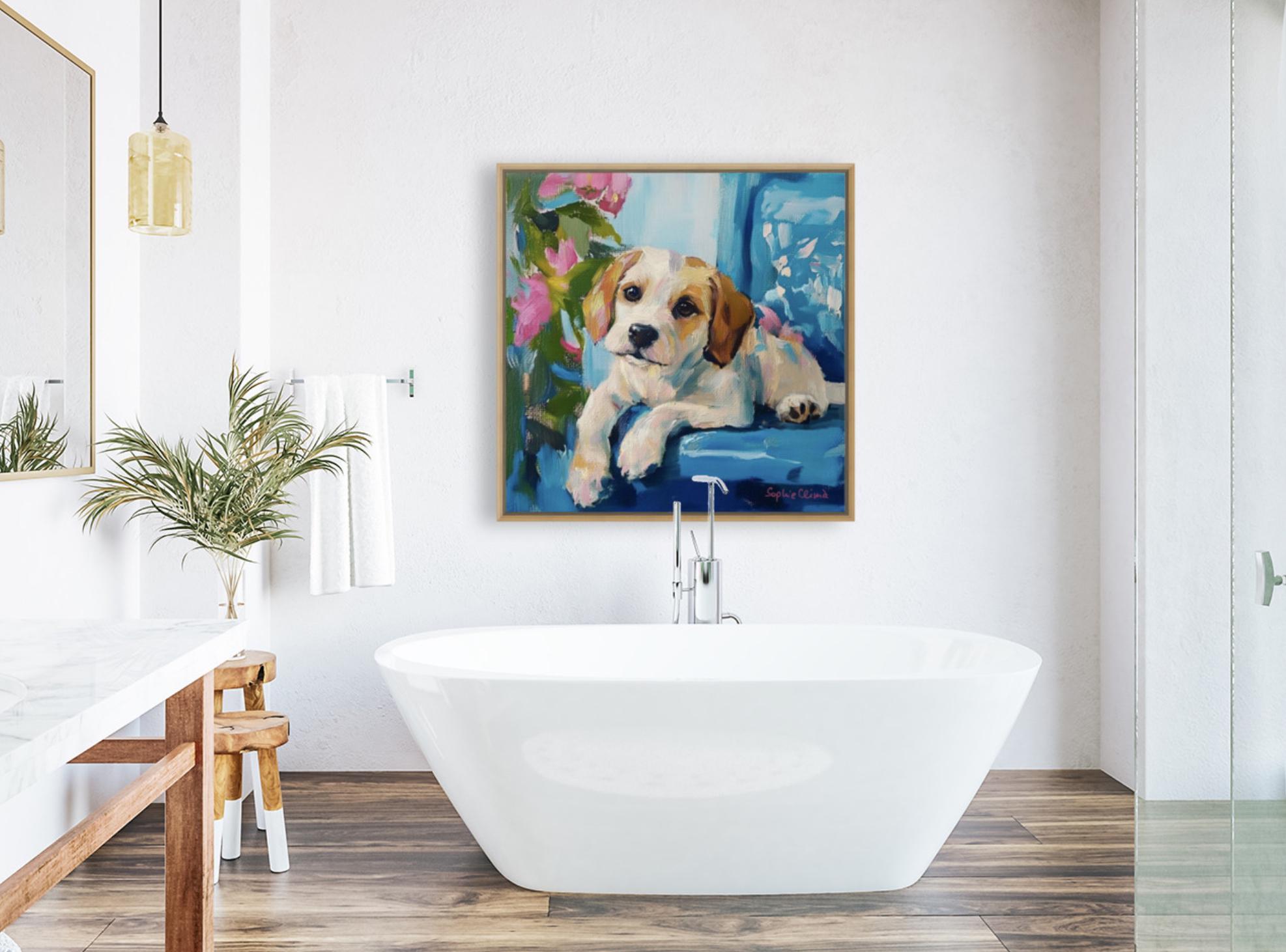 Grandmillennial art, Puppy Portrait, whimsical dogs art