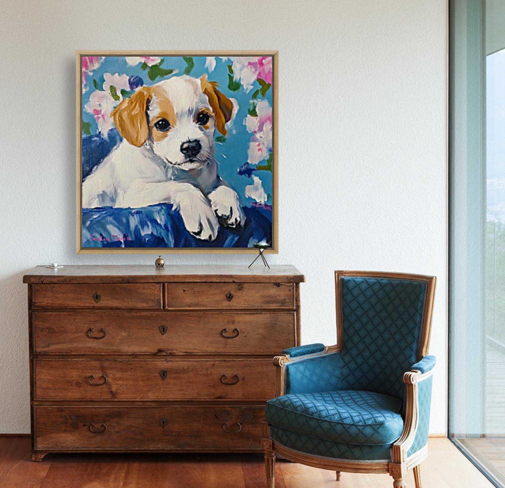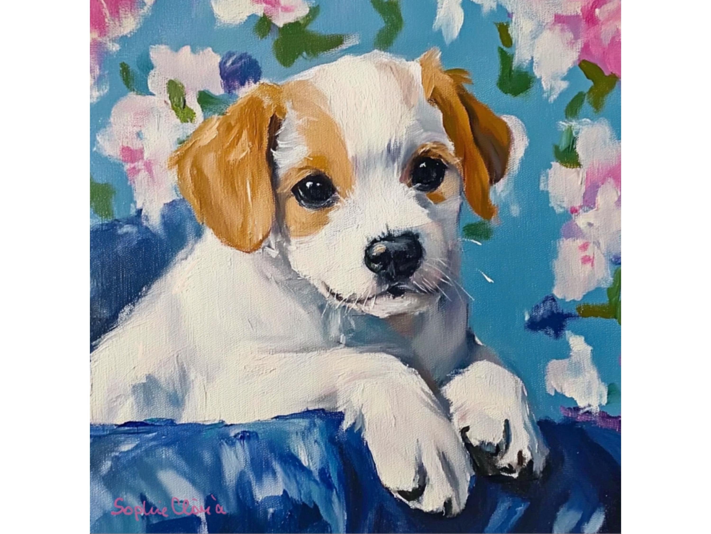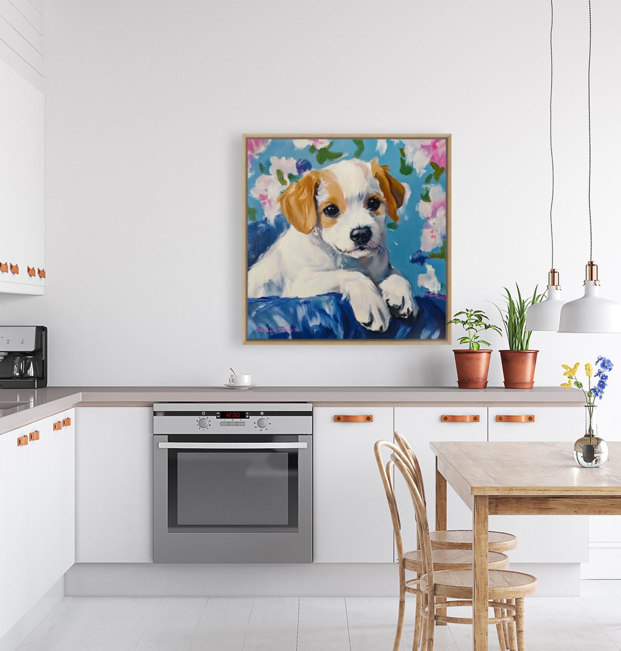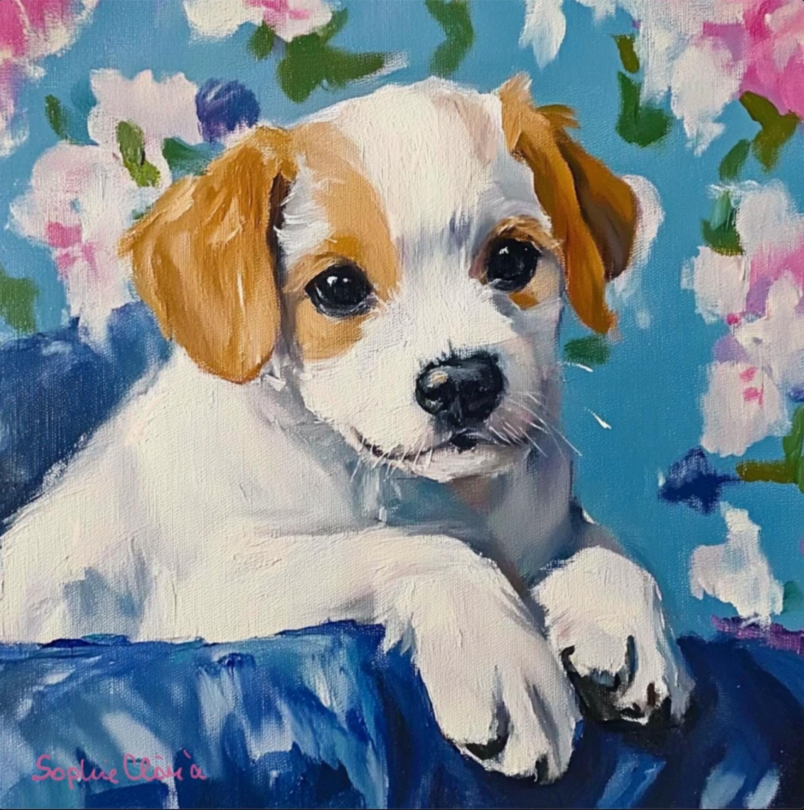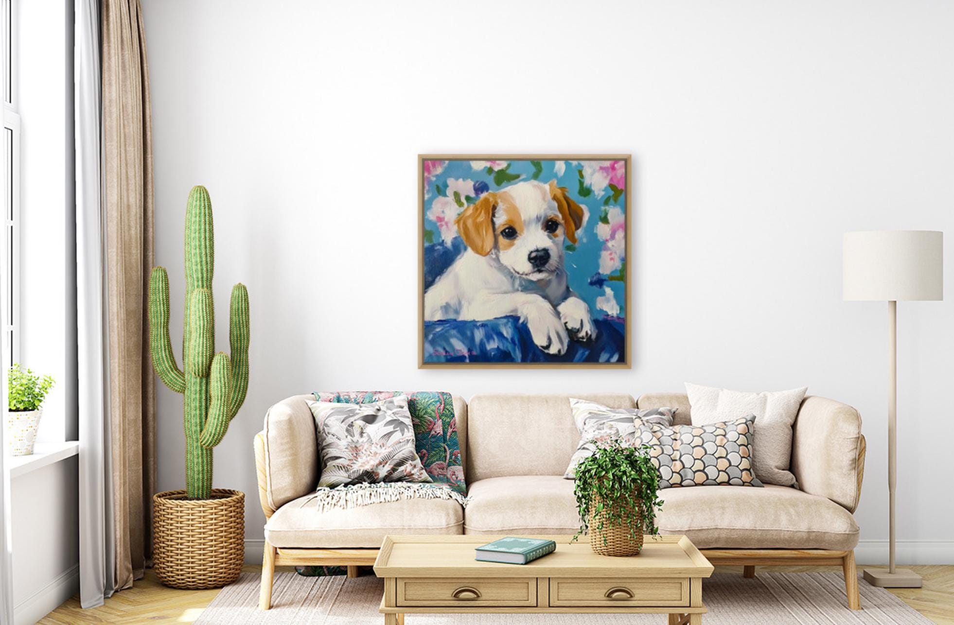 Grandmillennial art, Custom puppy portrait, whimsical dog print