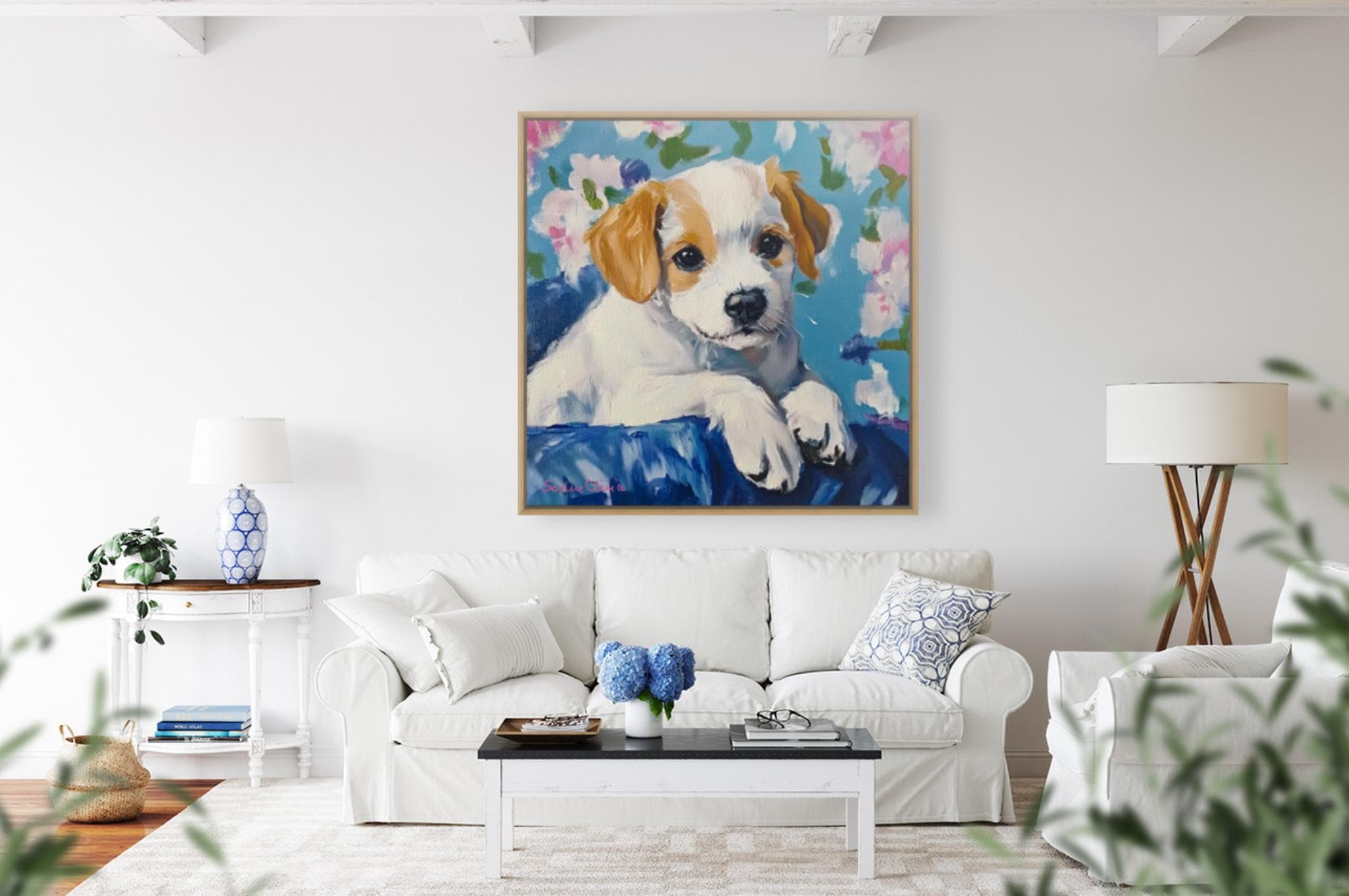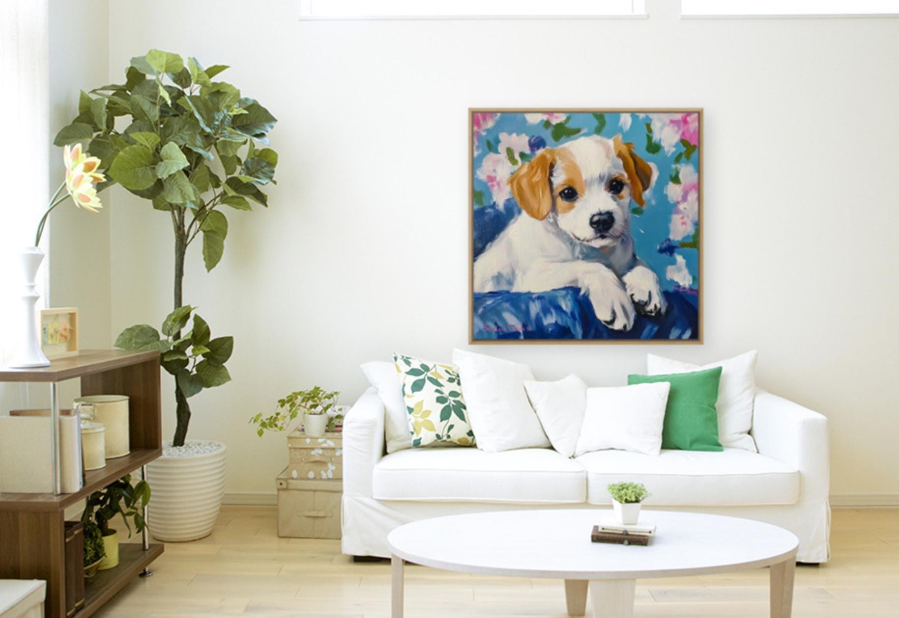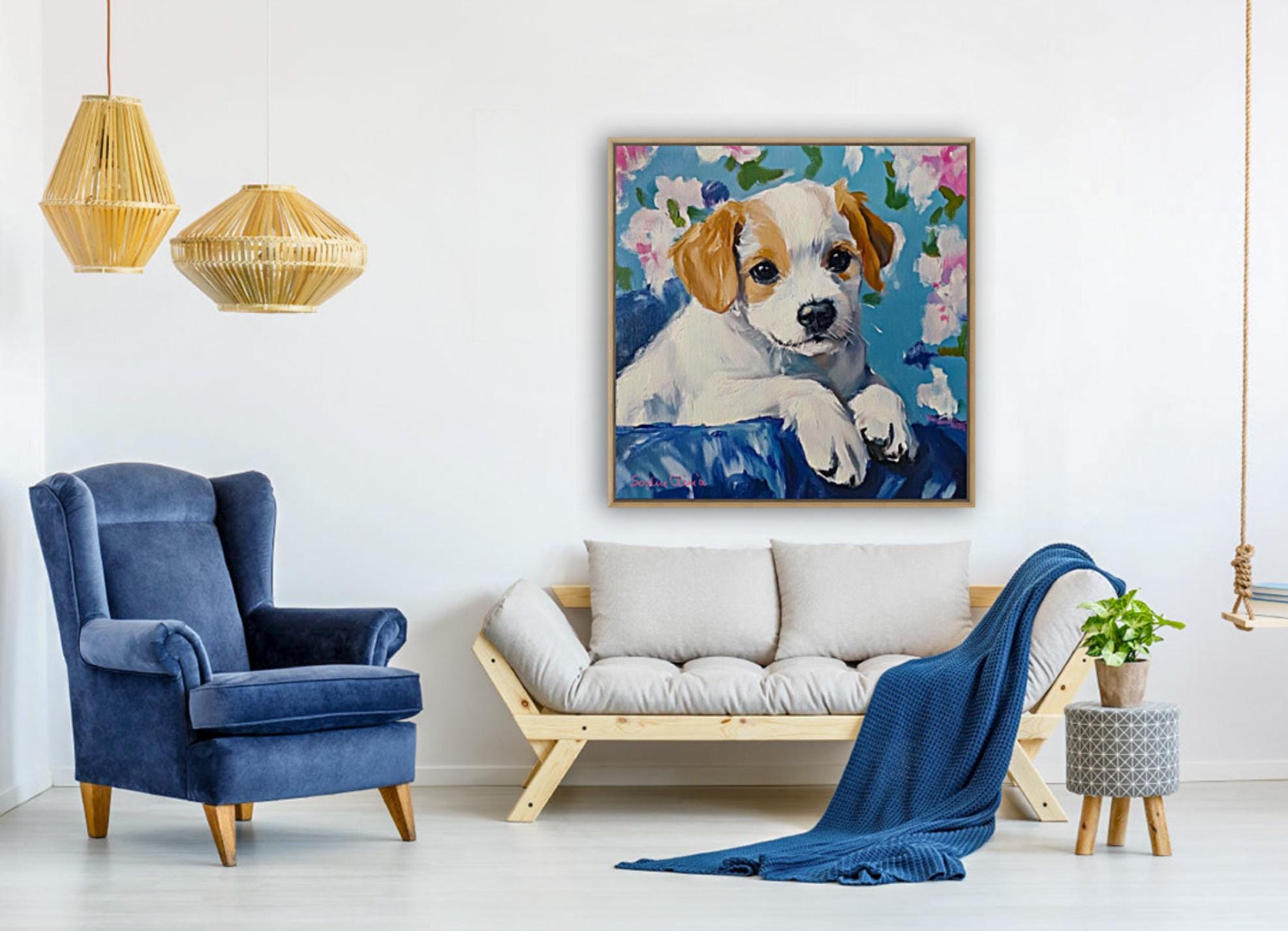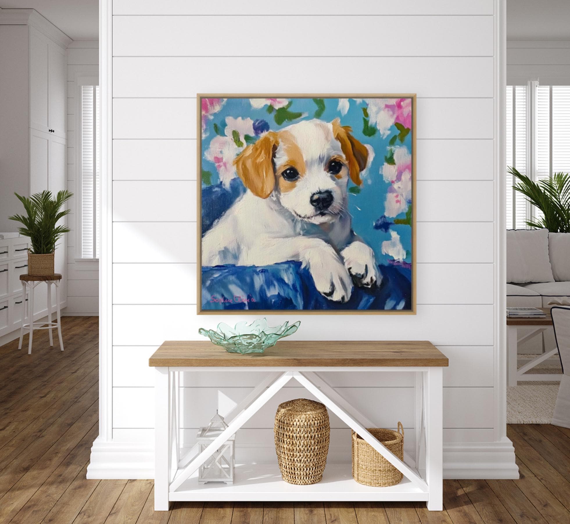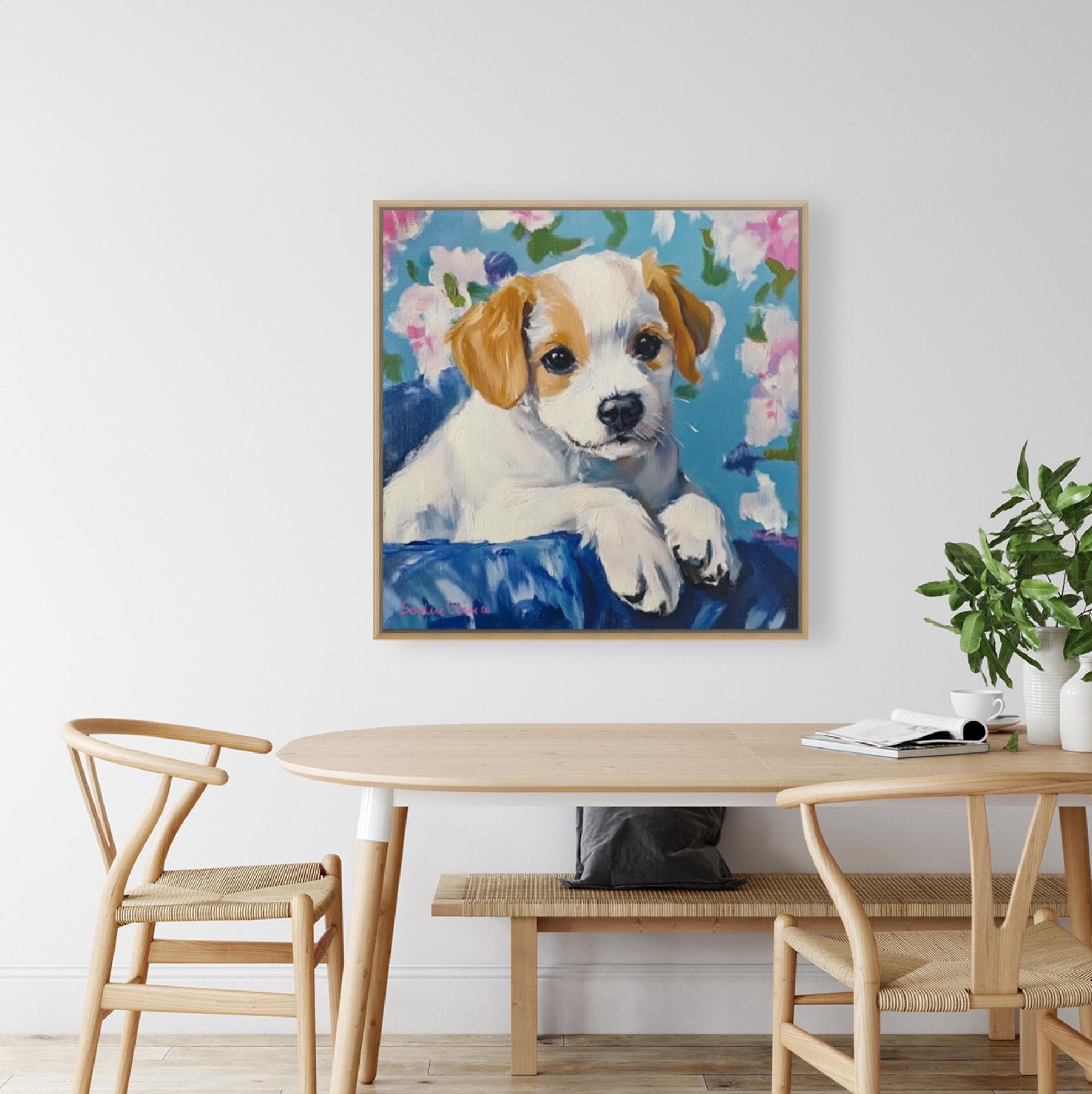 Grandmillennial art, Custom puppy portrait, whimsical dog print