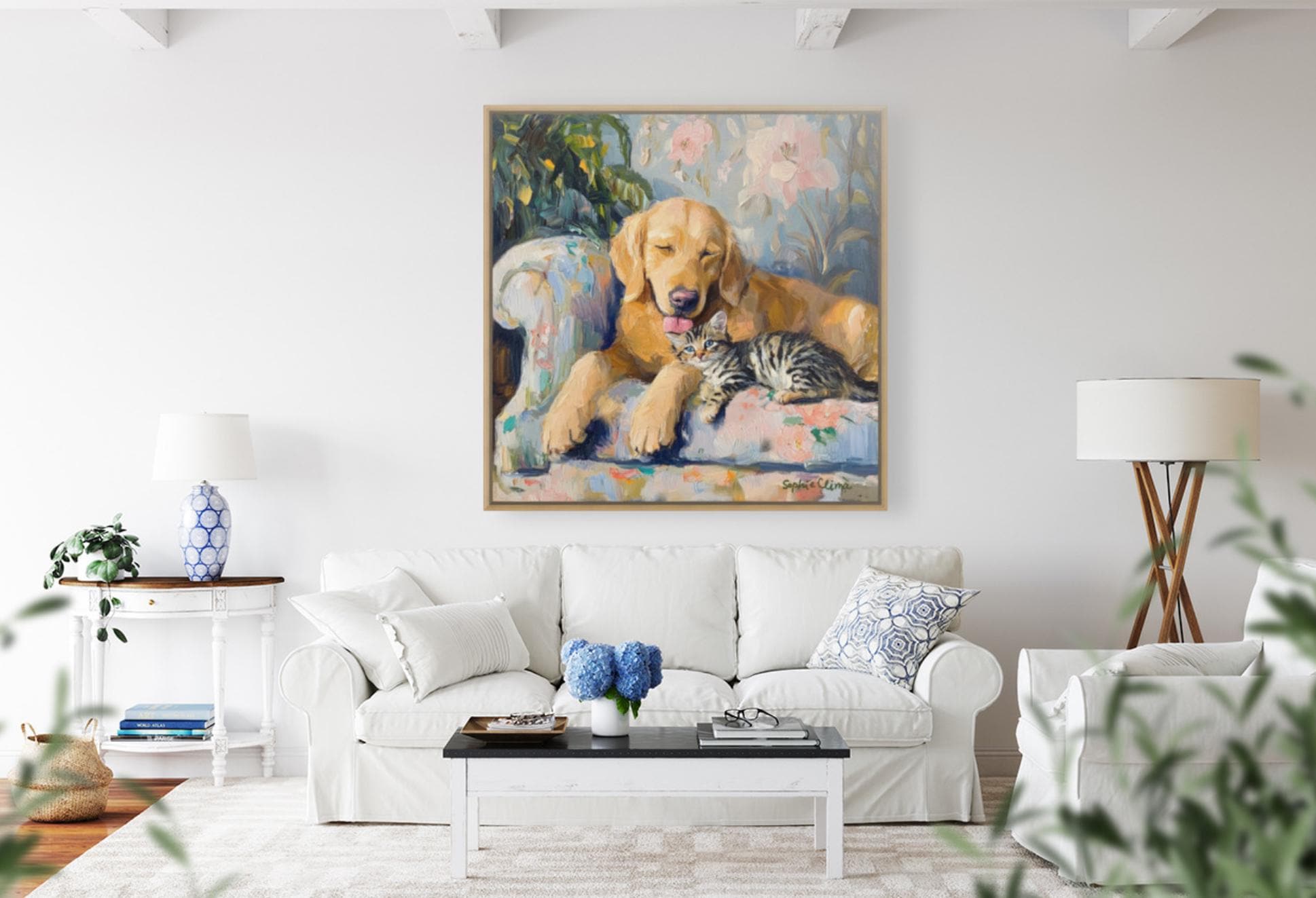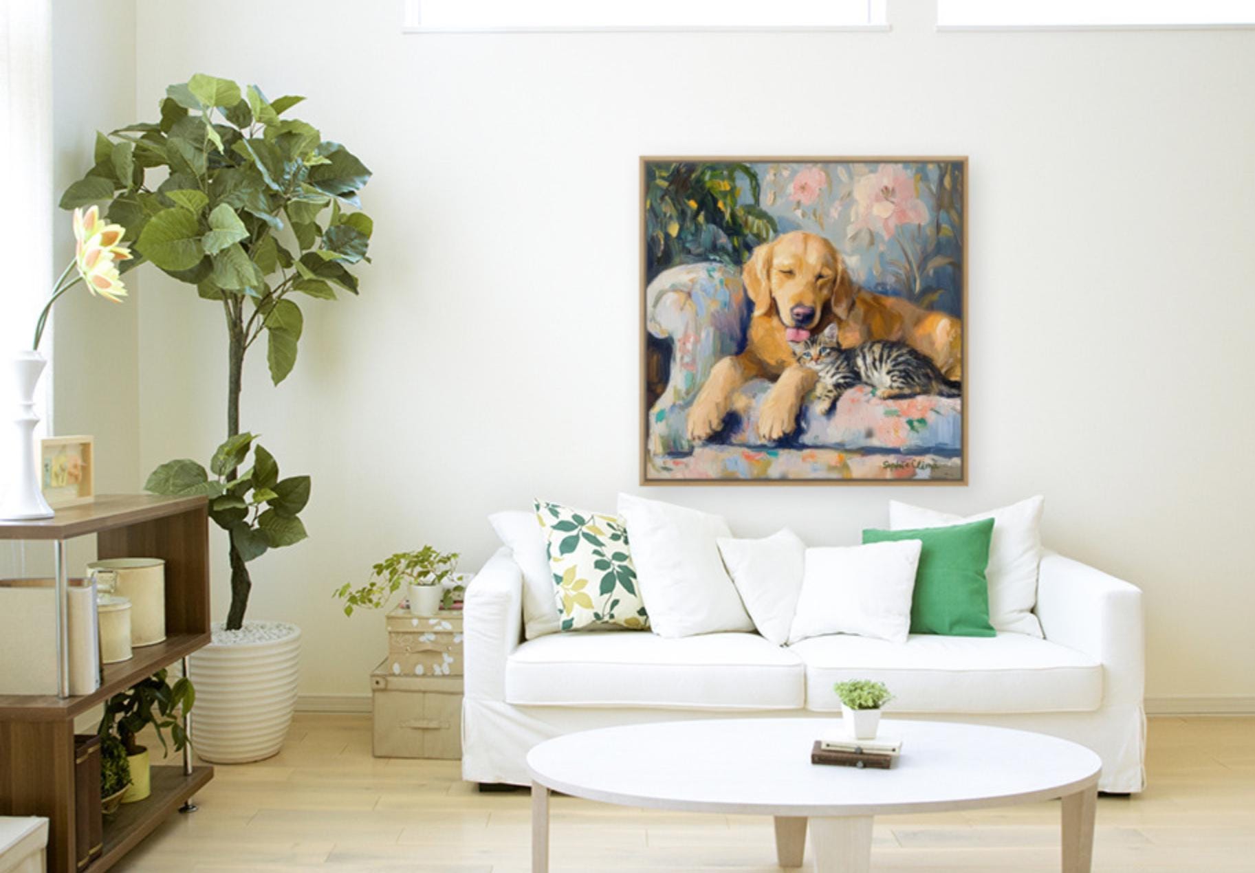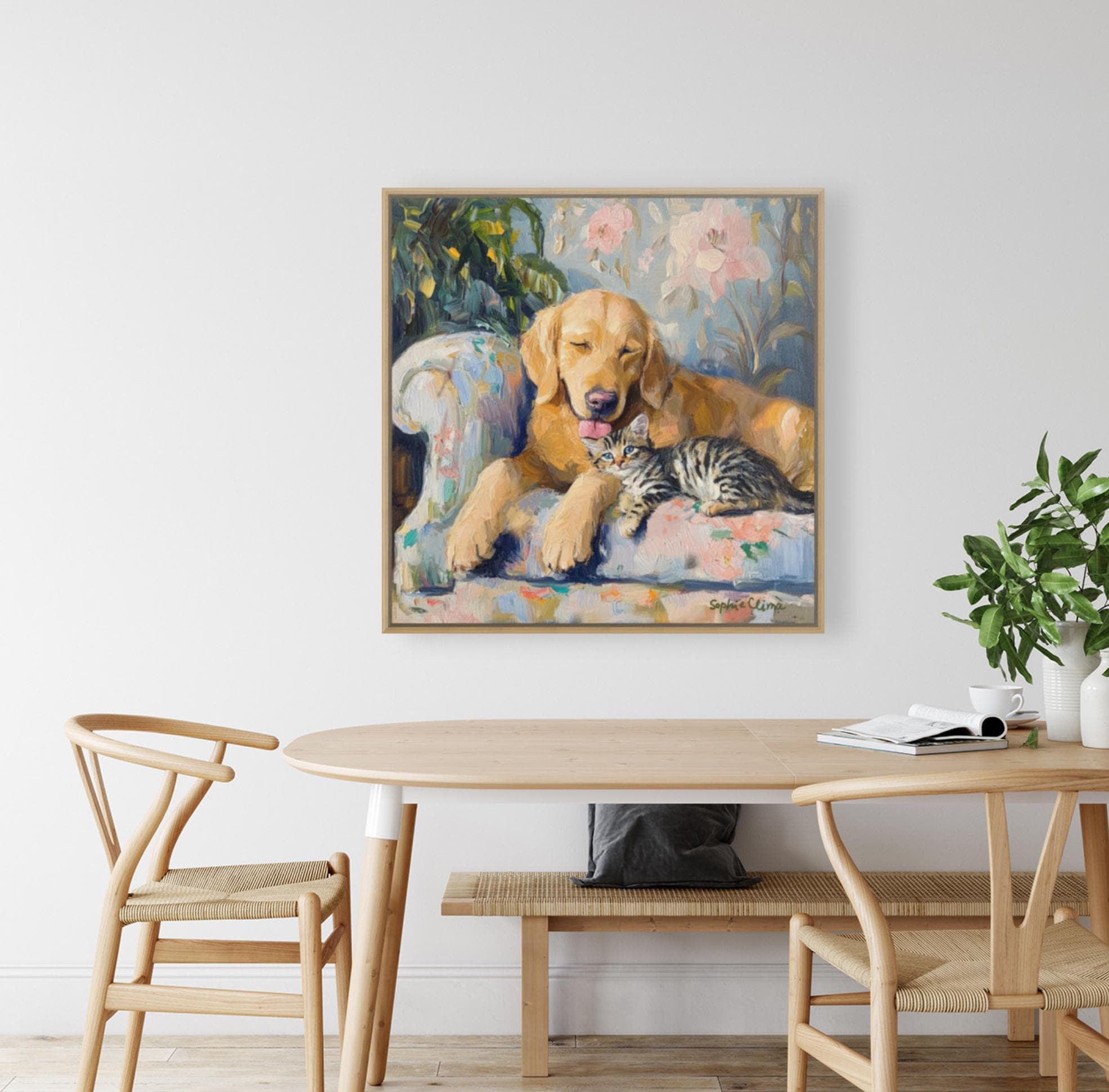 Whimsical Cat and Dog Giclee Print: Grandmillennial Art