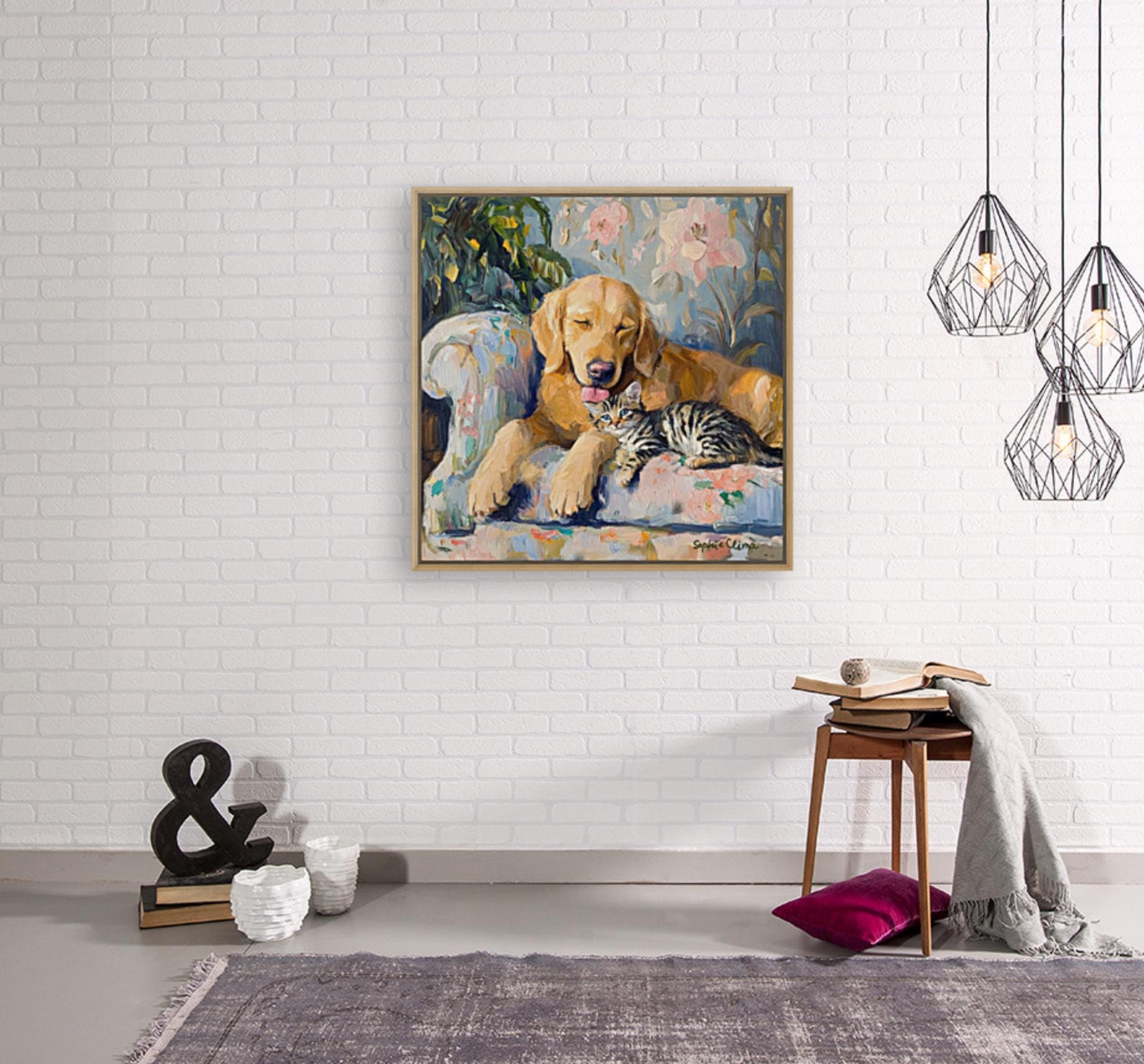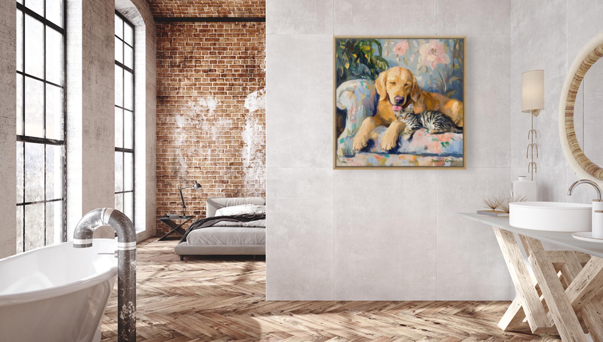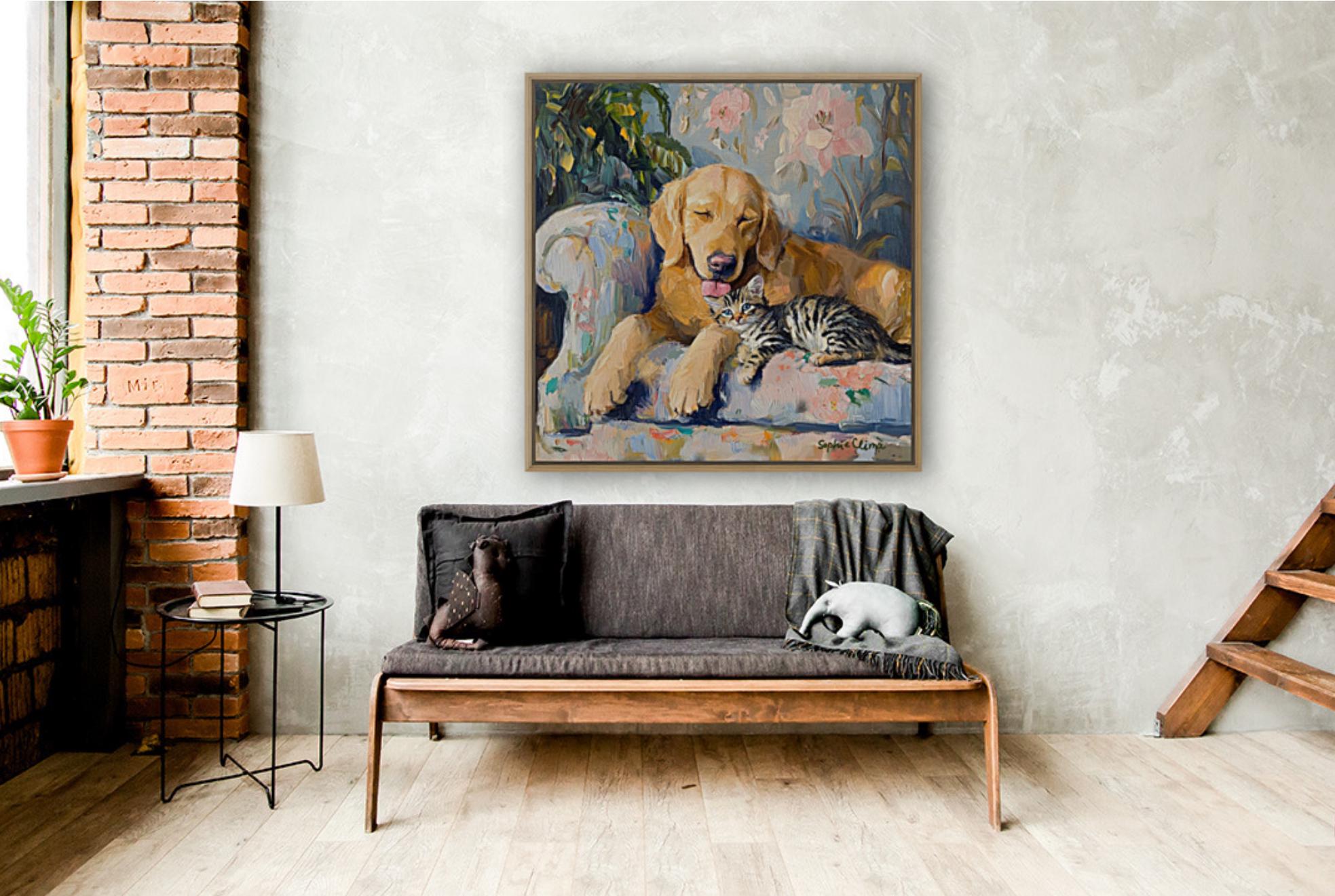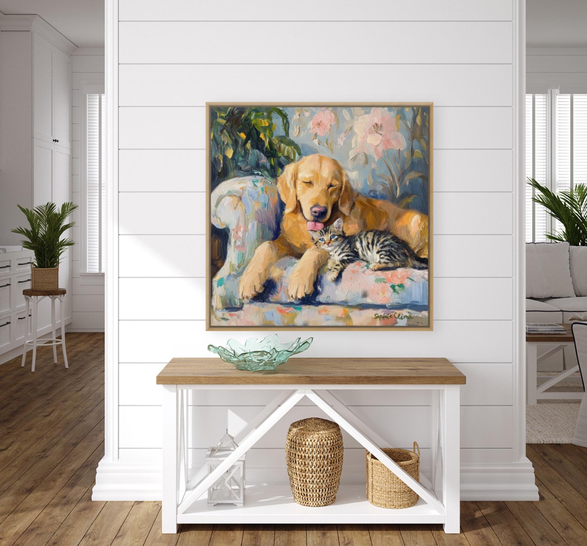Whimsical Cat and Dog Giclee Print: Grandmillennial Art
