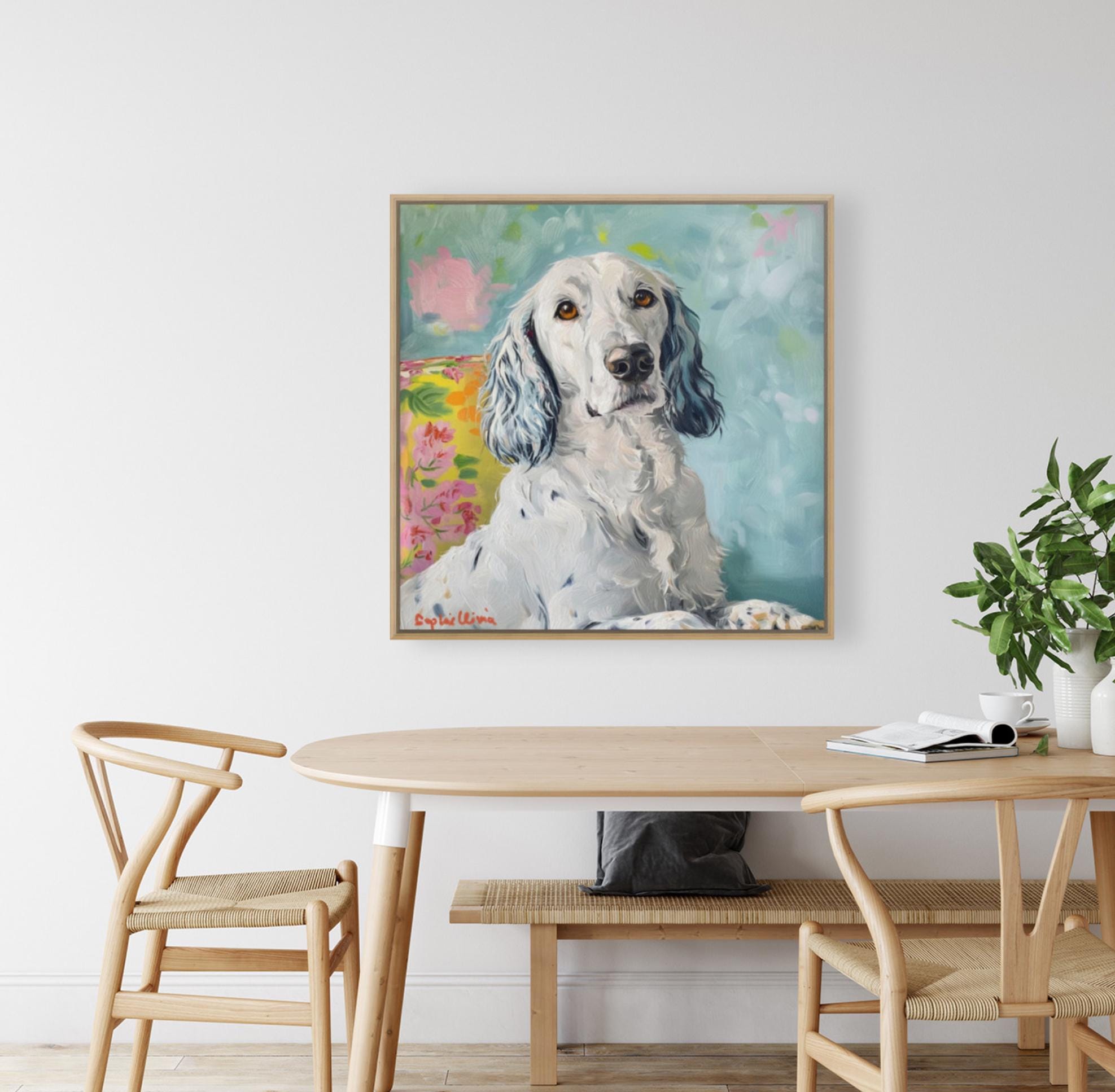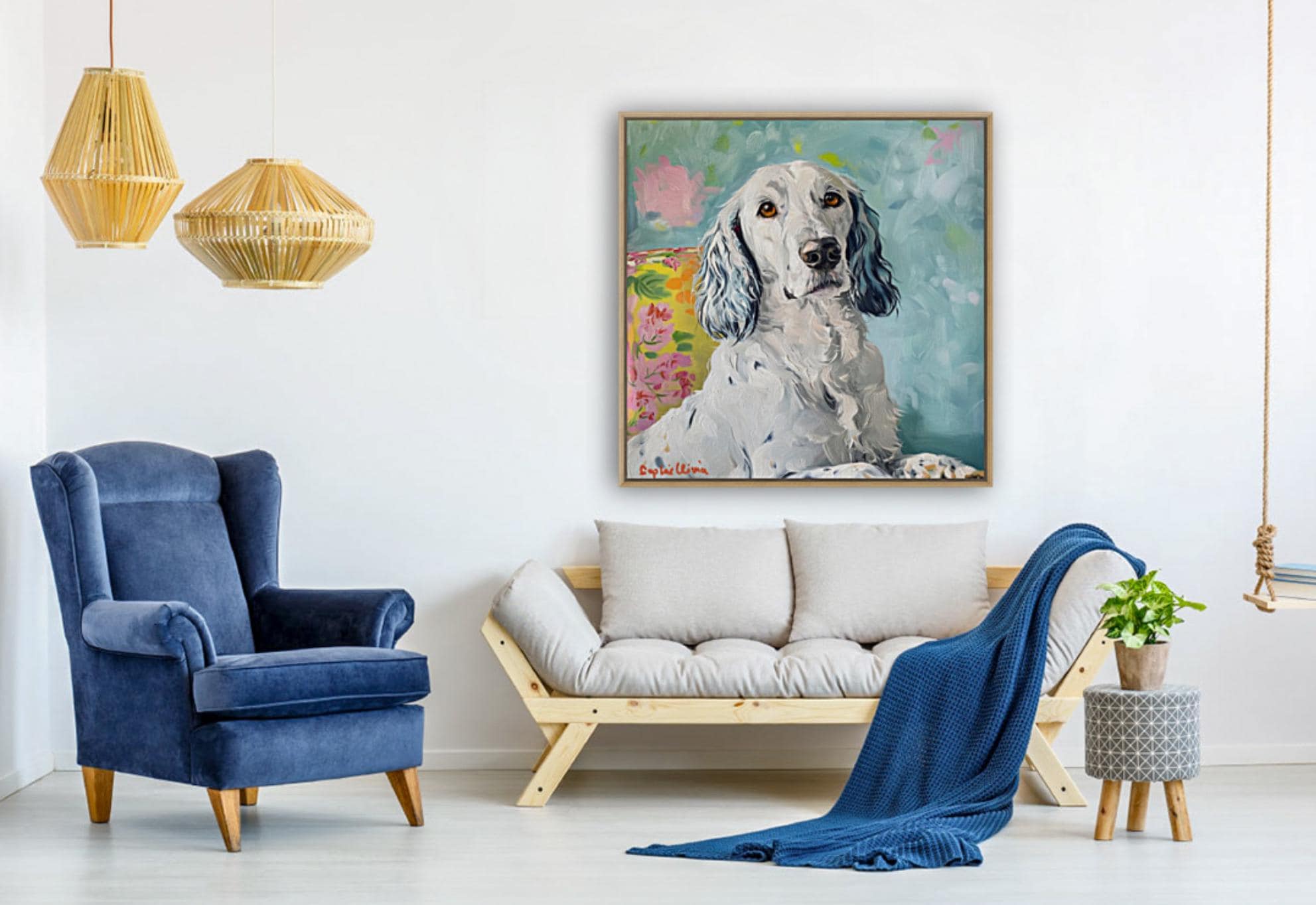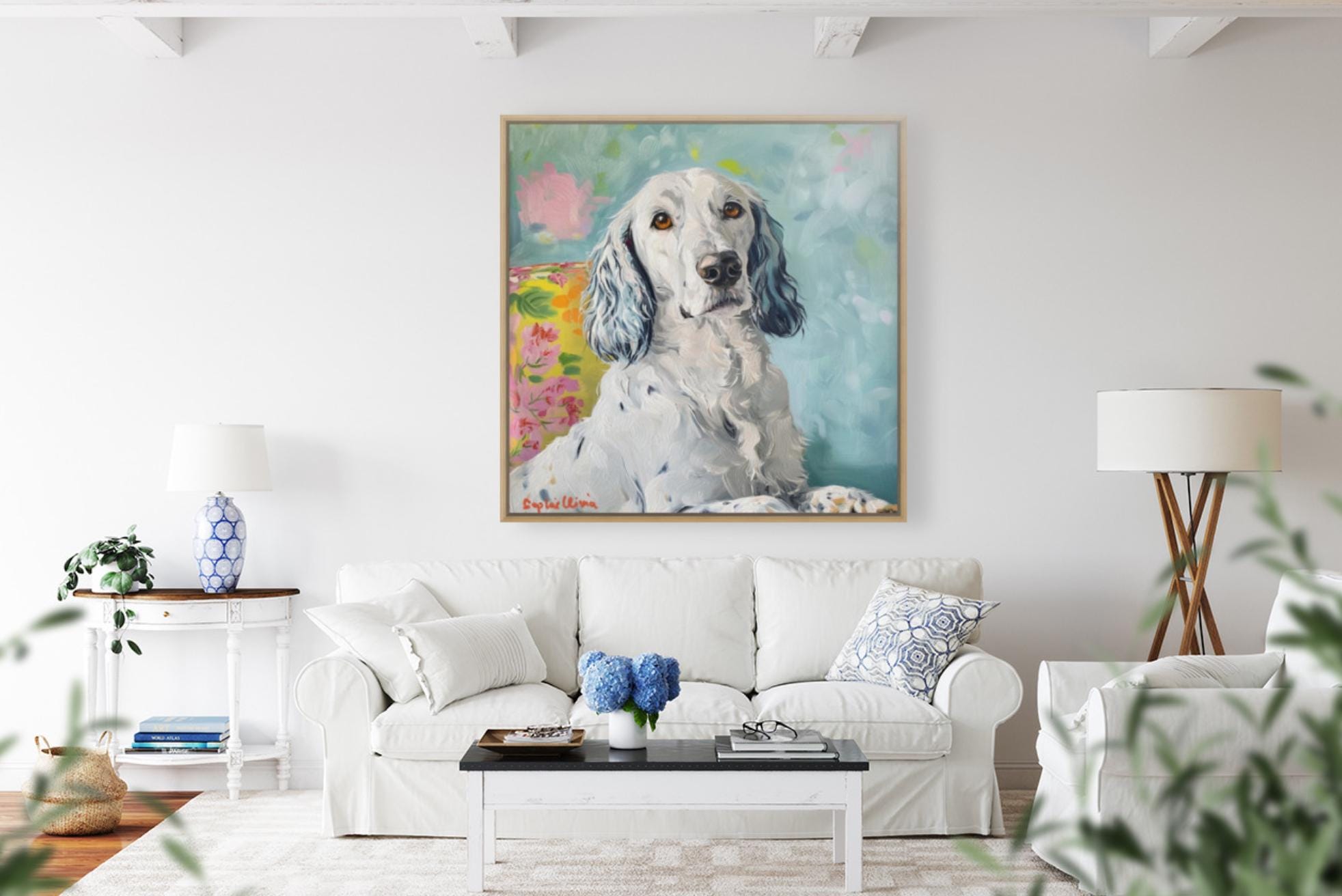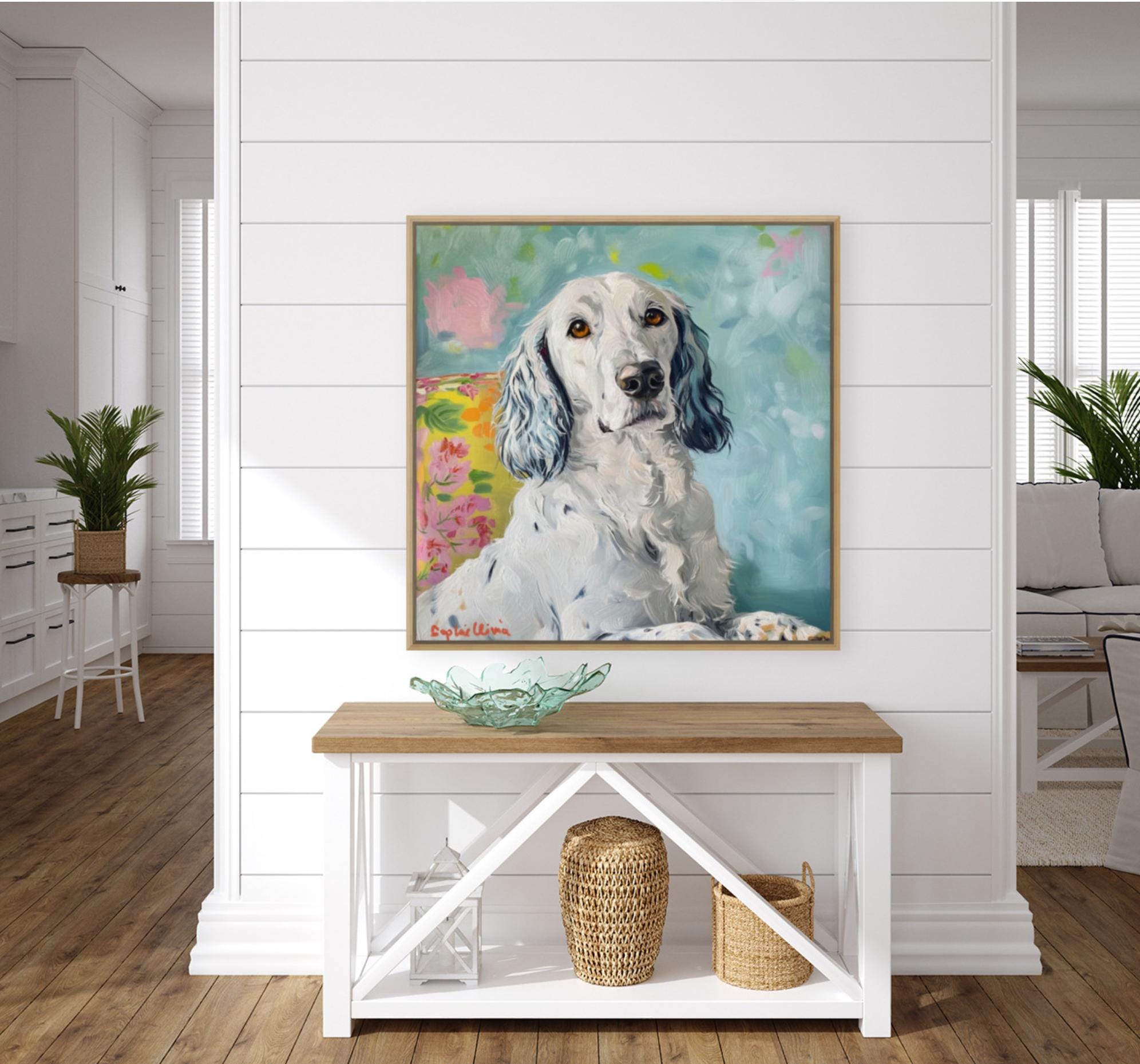 Grandmillennial art , English Setter portrait, whimsical dogs art