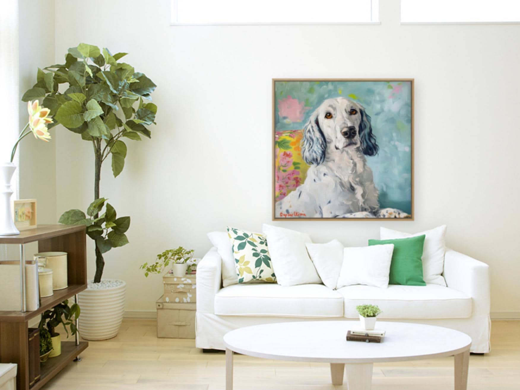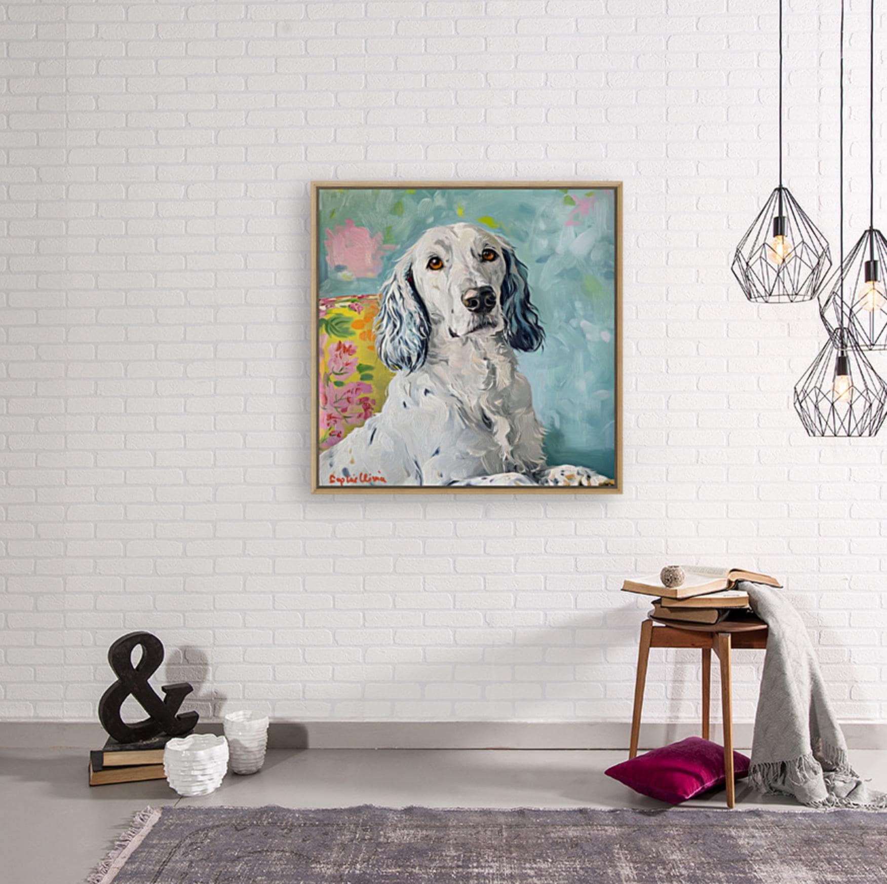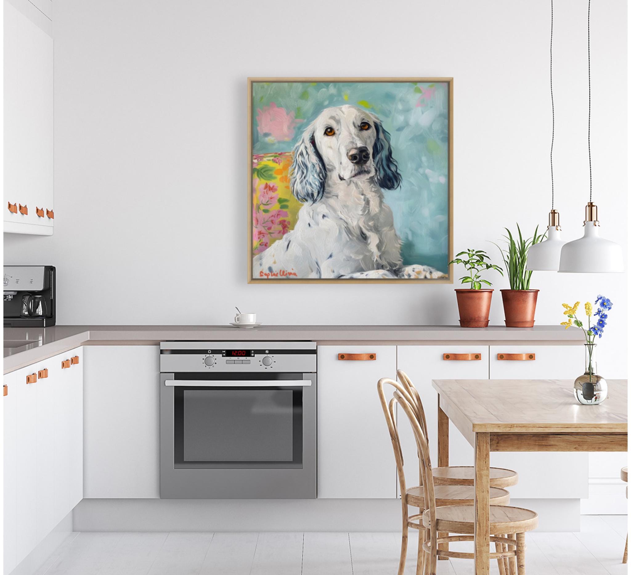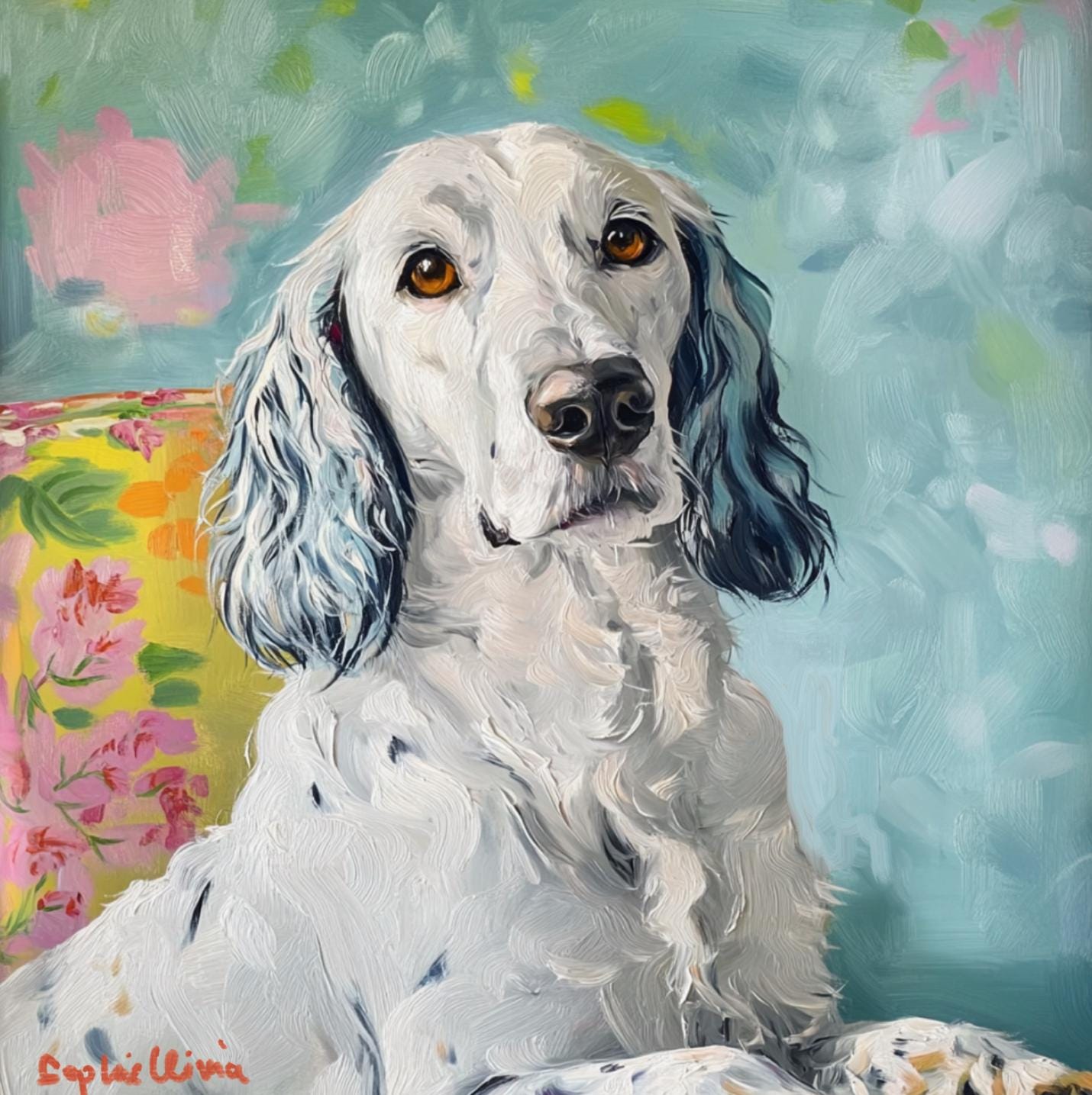 Grandmillennial art , English Setter portrait, whimsical dogs art