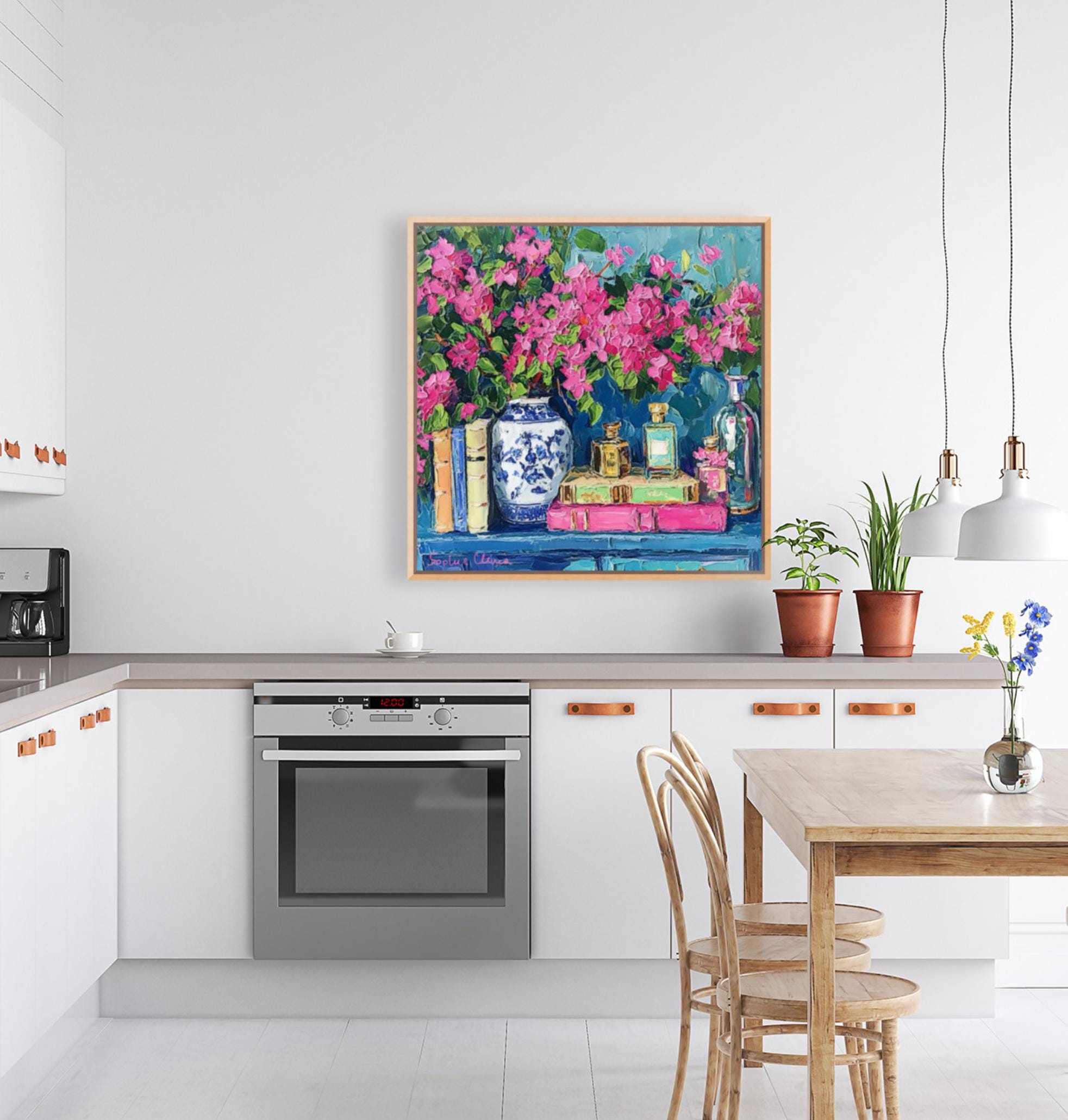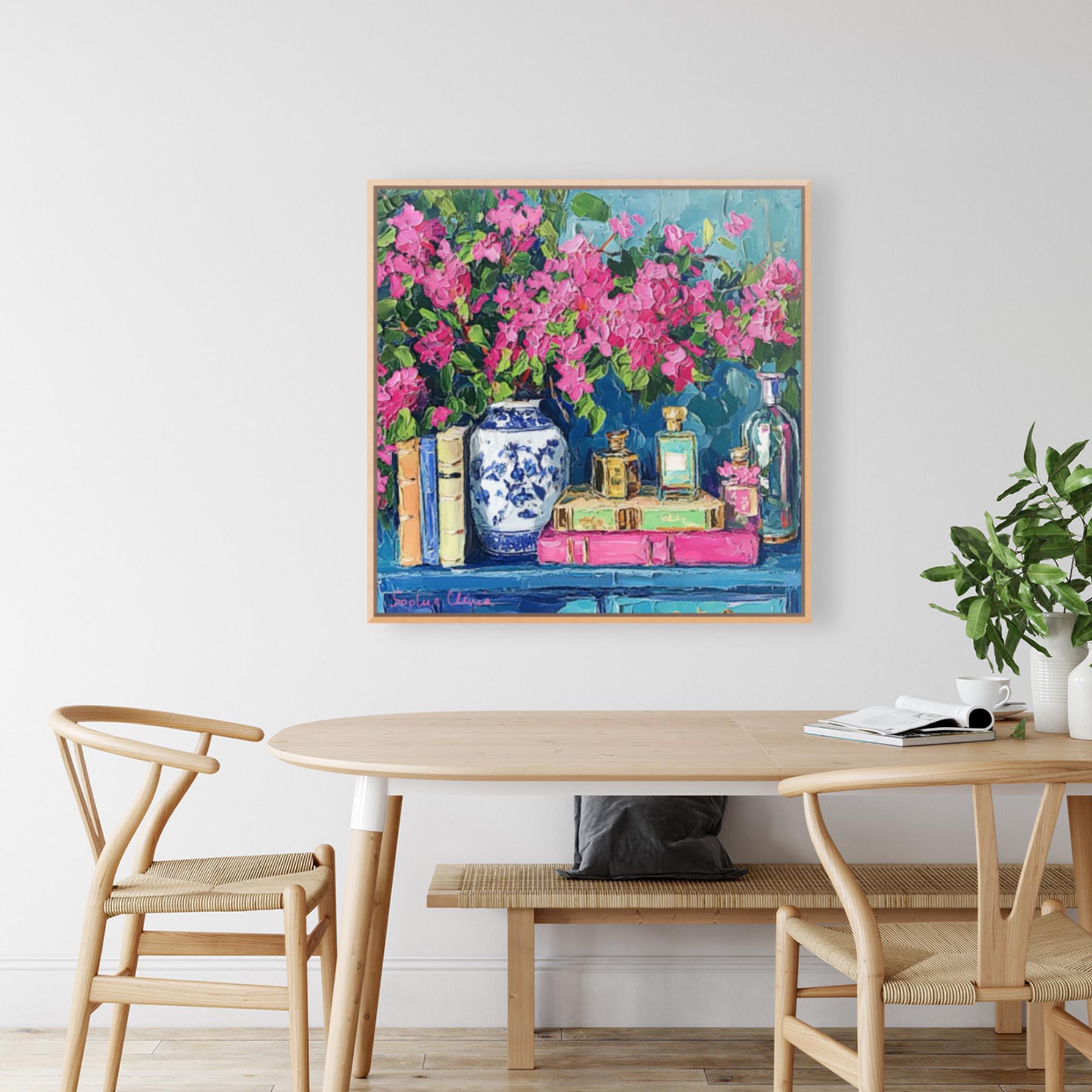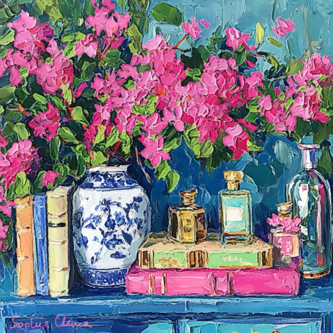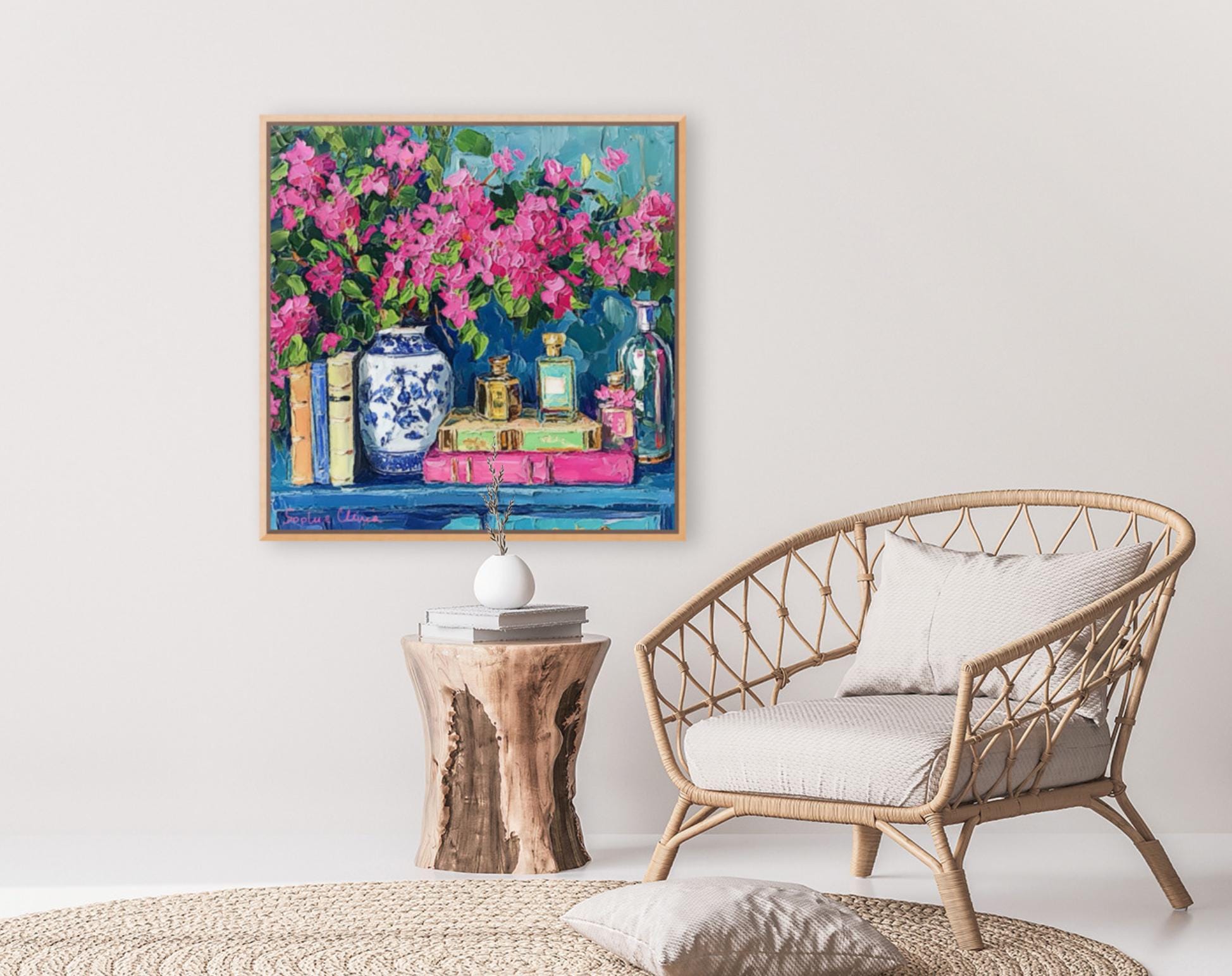 grandmillennial art, Still life with Bougainvillea flowers, oil painting