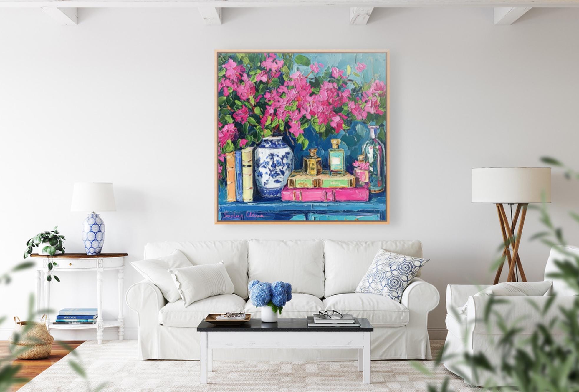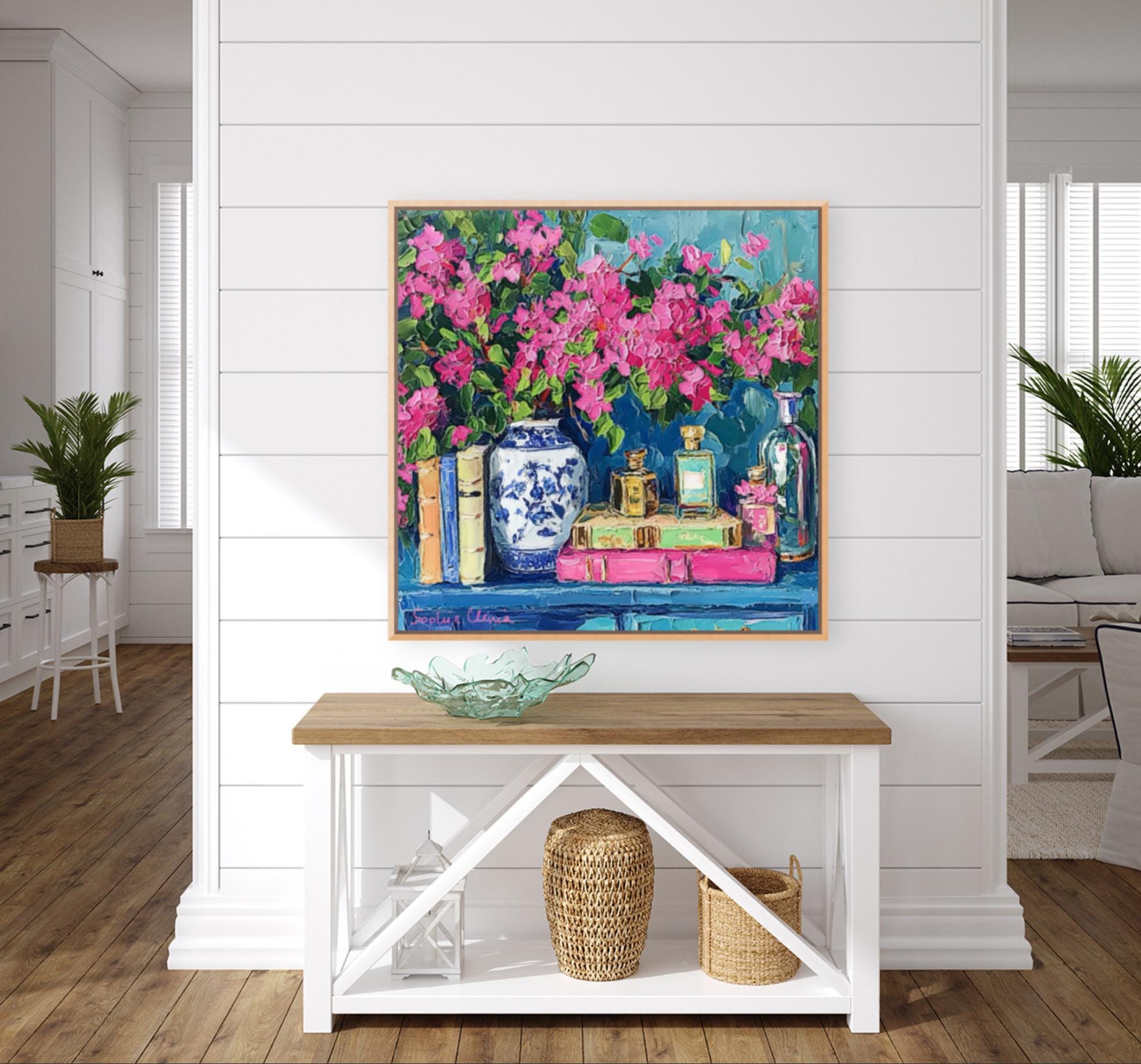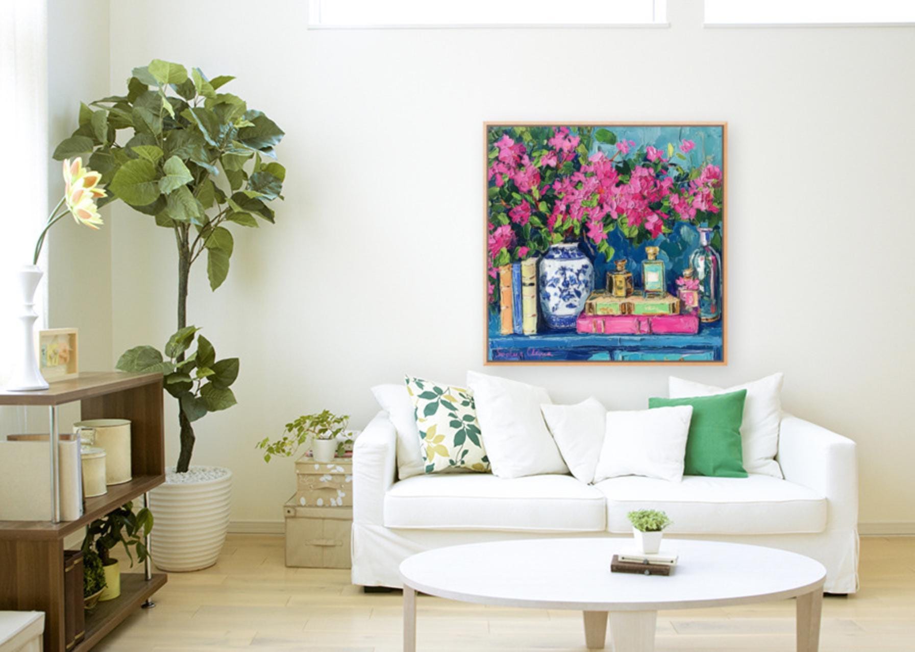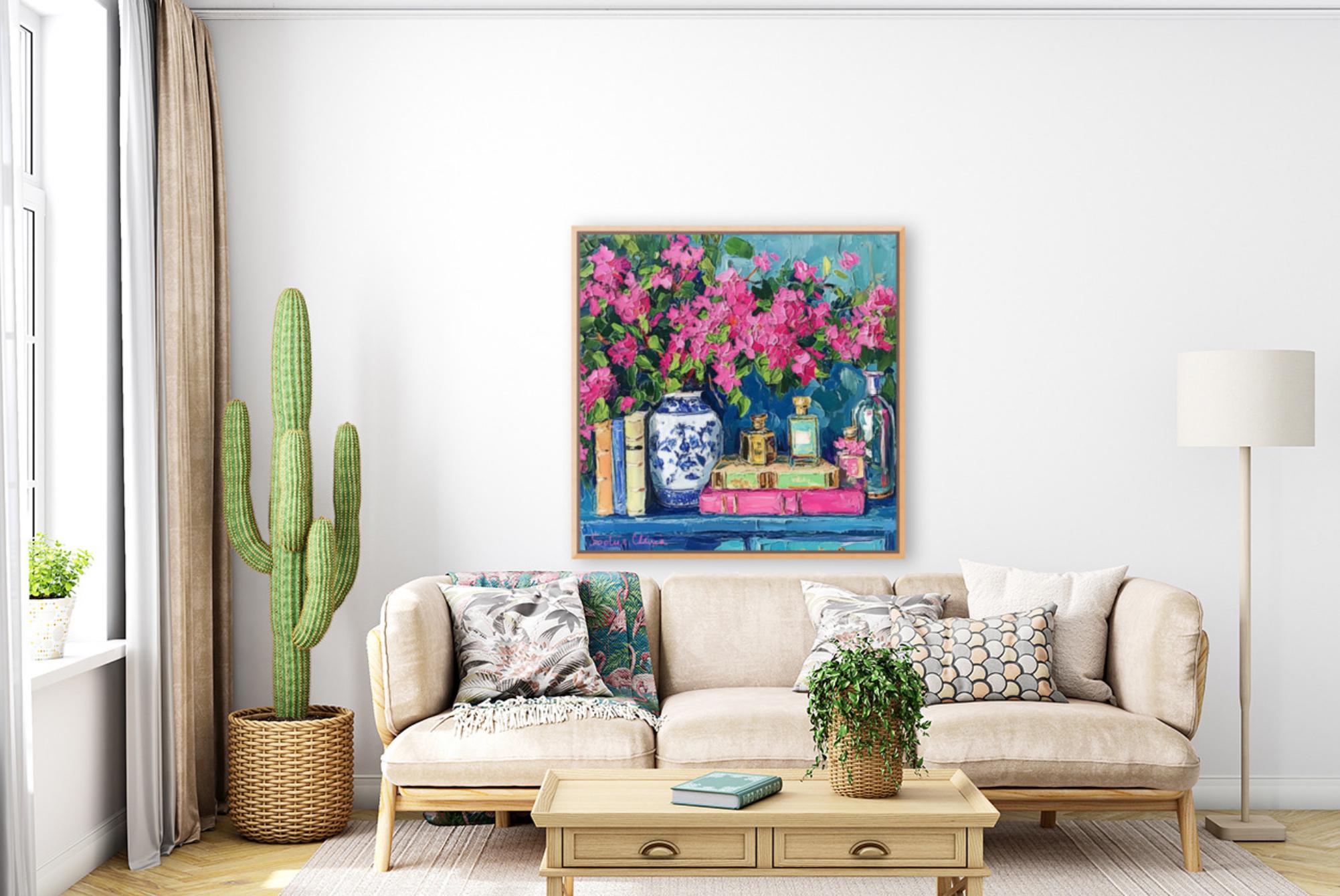 grandmillennial art, Still life with Bougainvillea flowers, oil painting