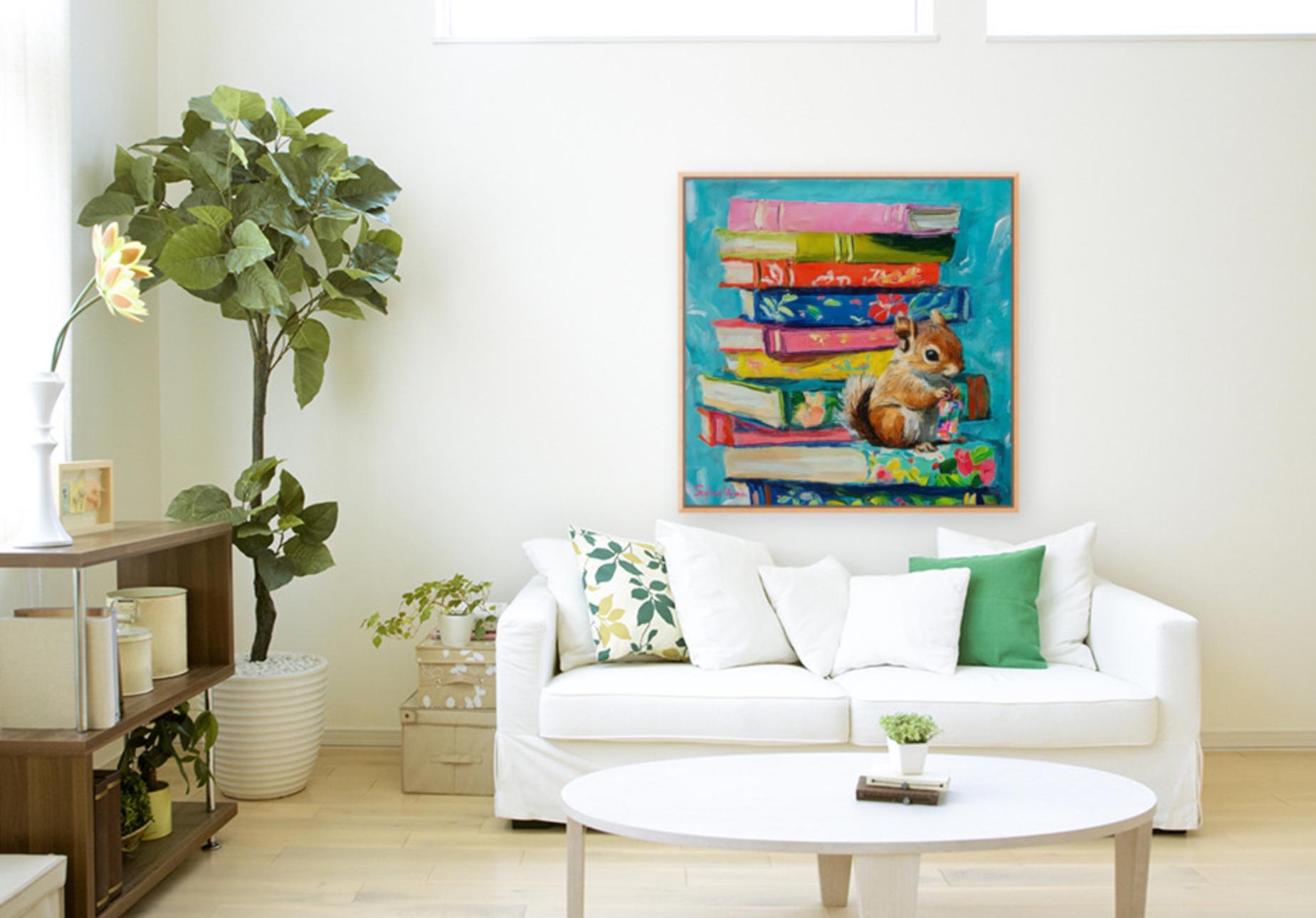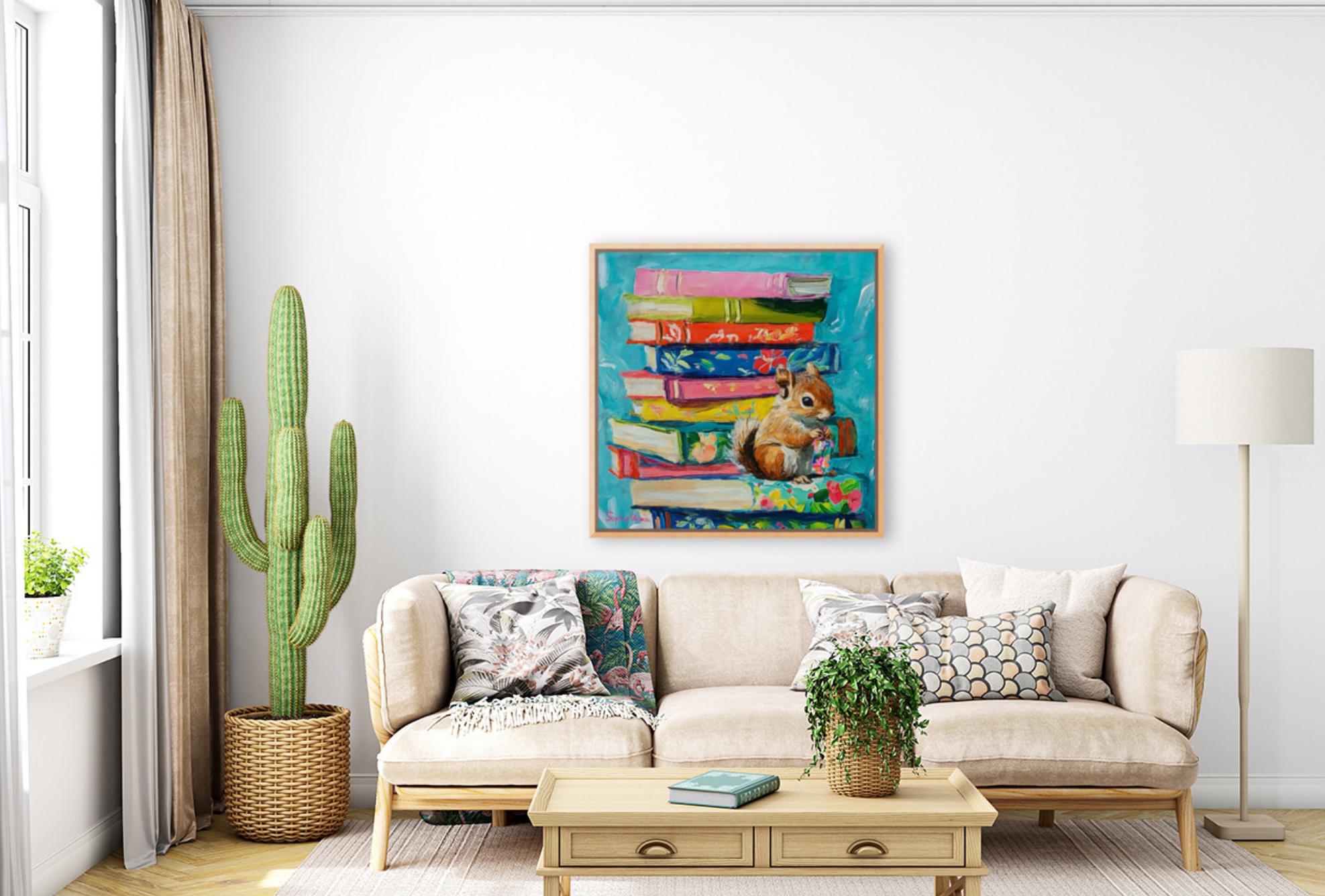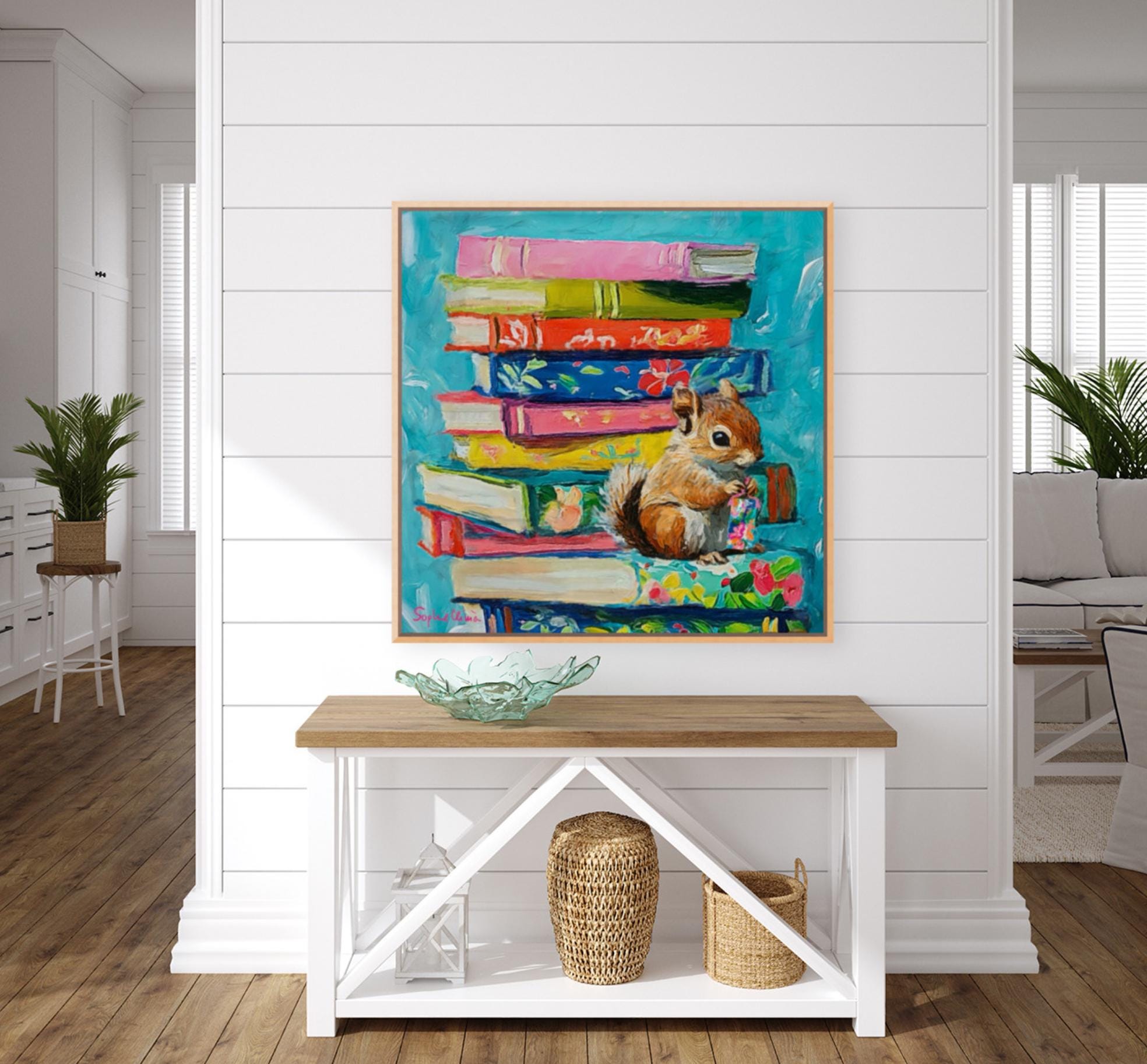 Grandmillennial art, The Summer Reading List, whimsical library art