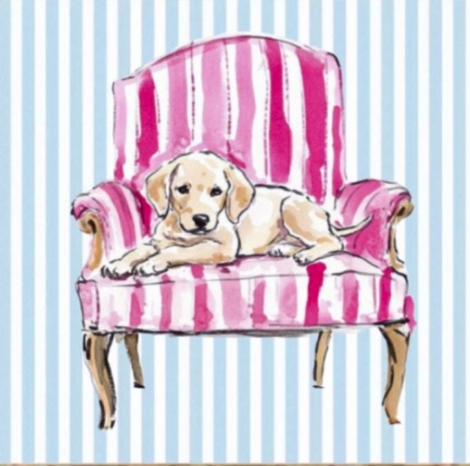 Dogs on French Chairs Watercolor Art Prints - Set of Four