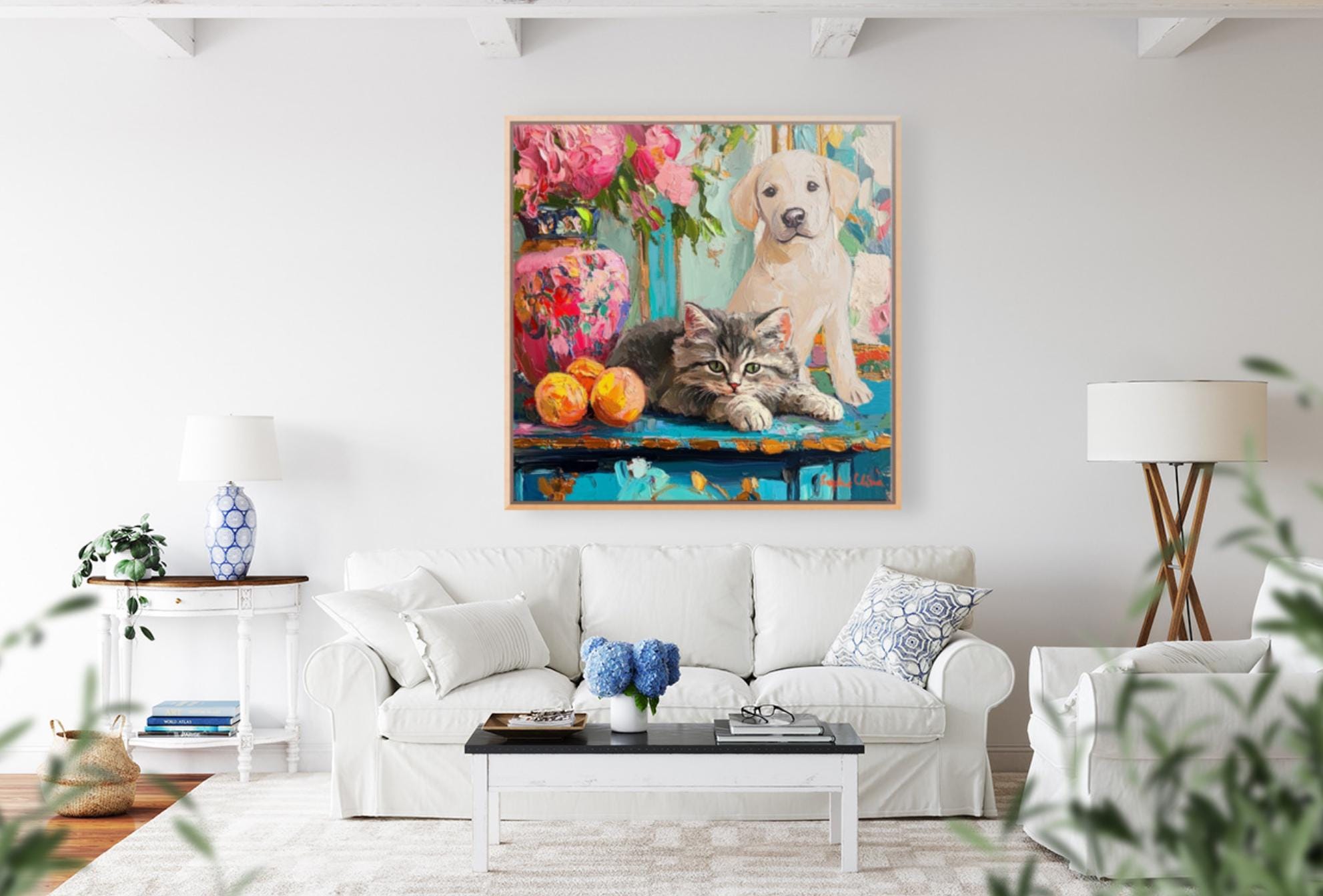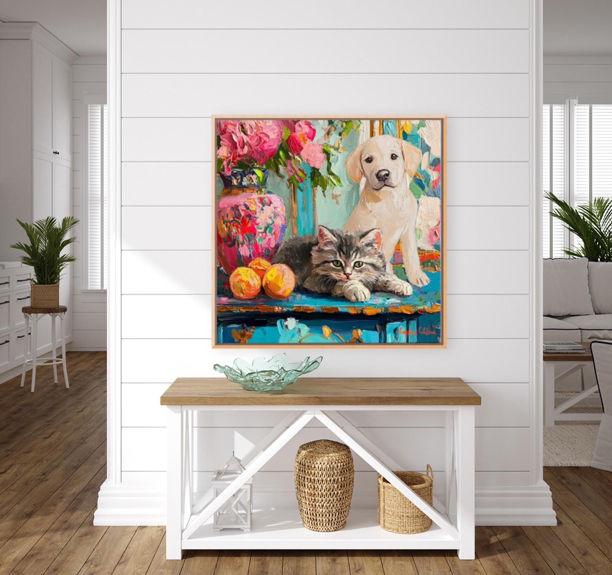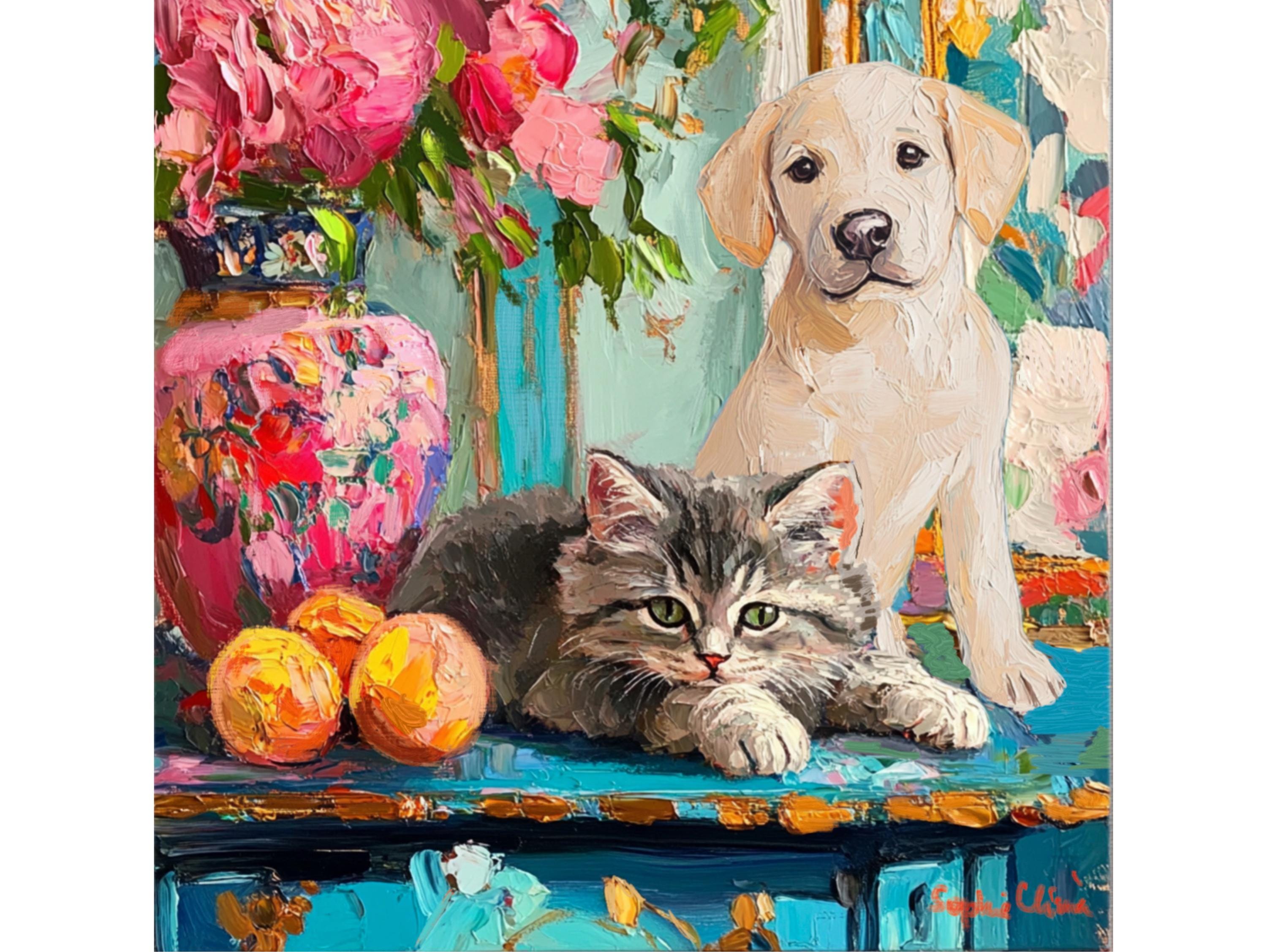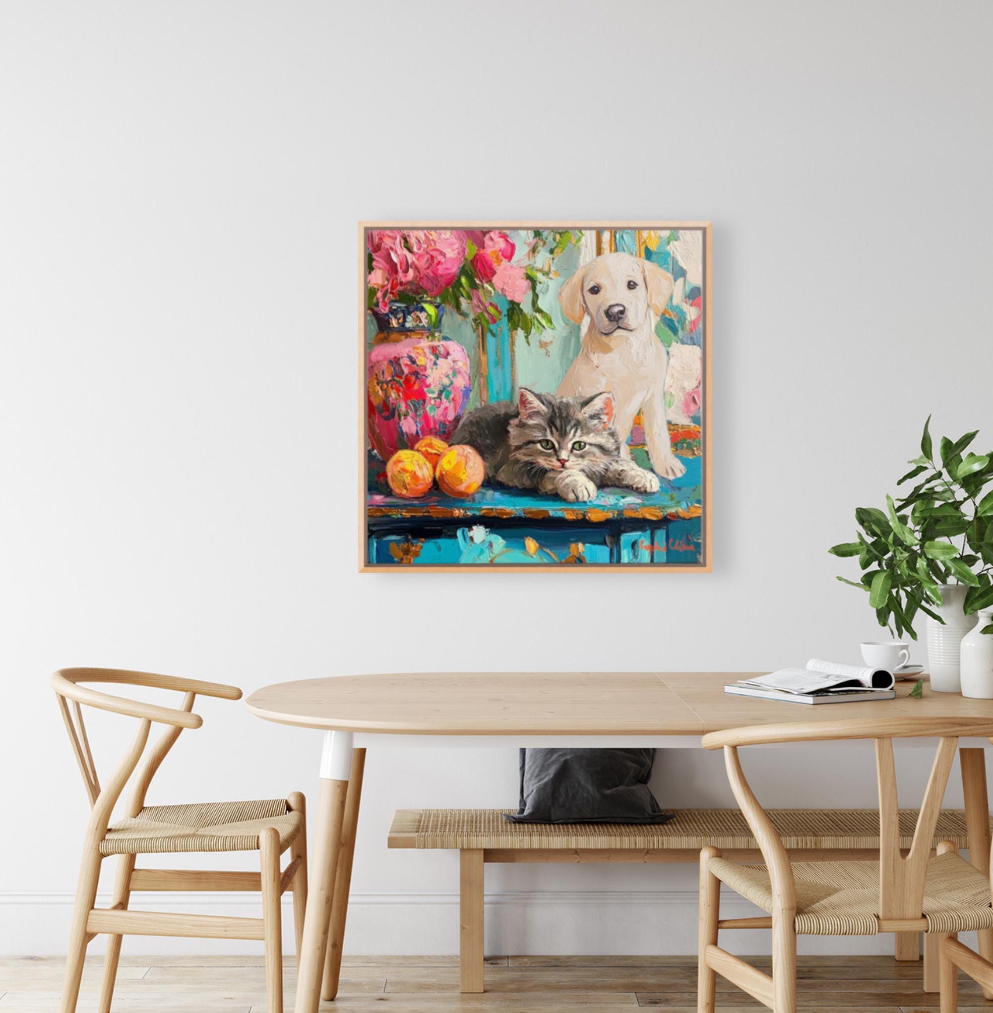 Grandmillennial art, Kitty is not in the mood to play, whimsical fine art
