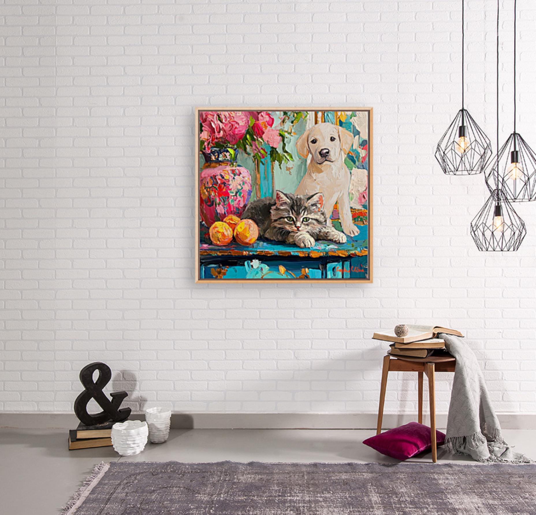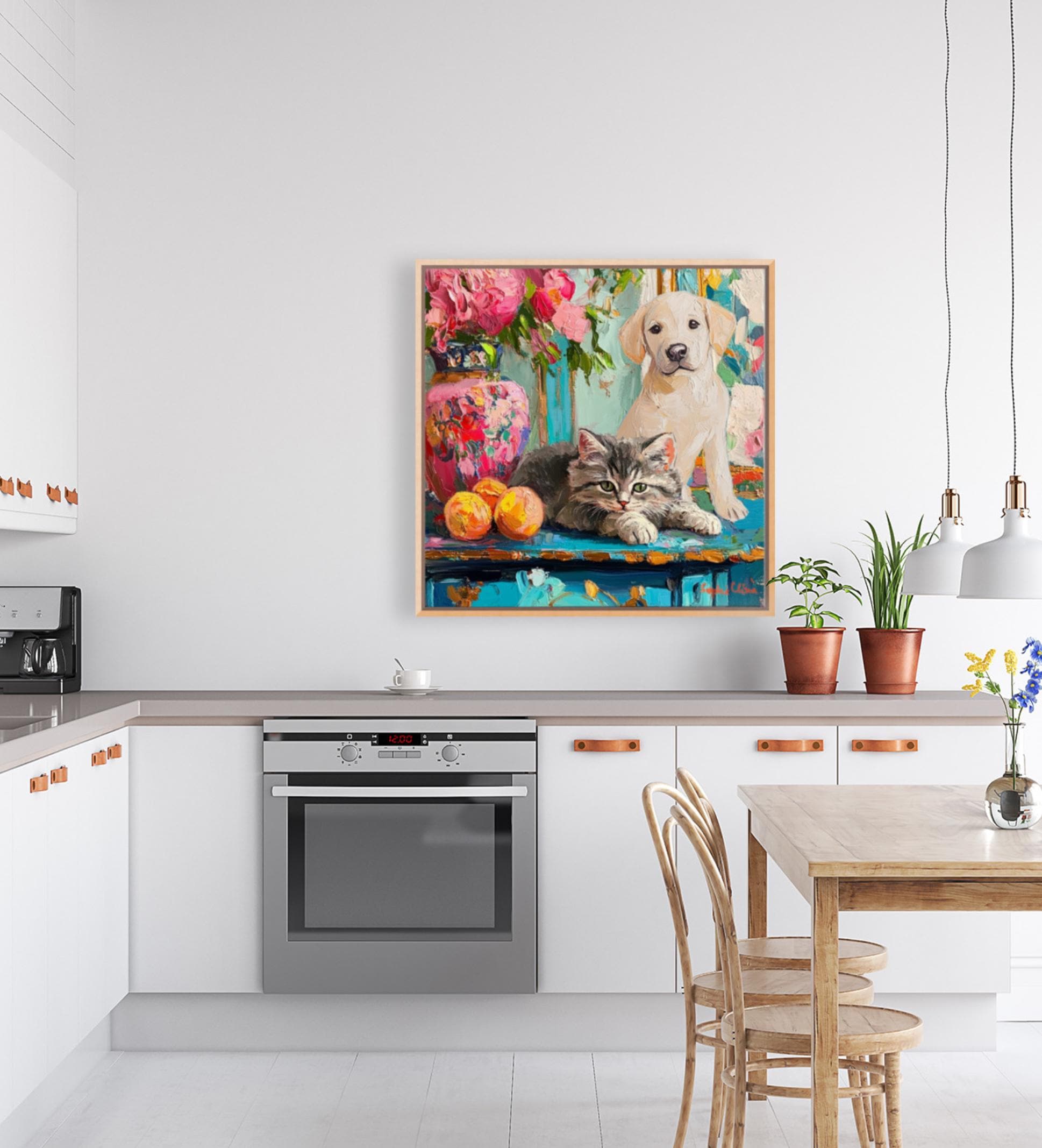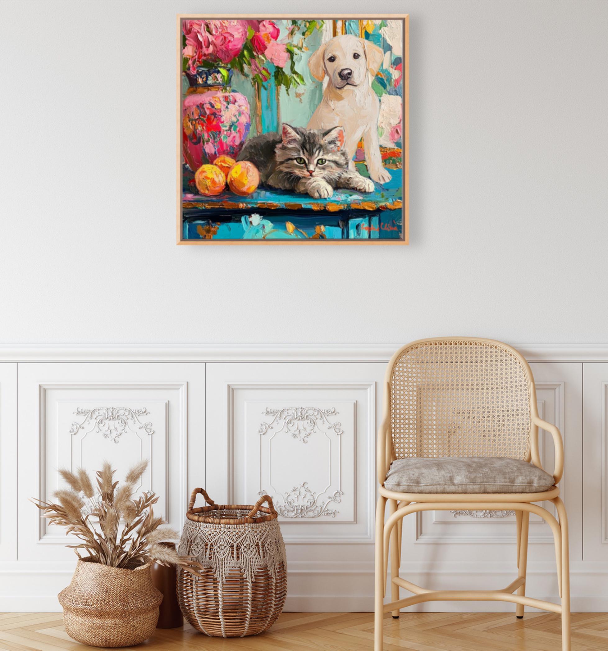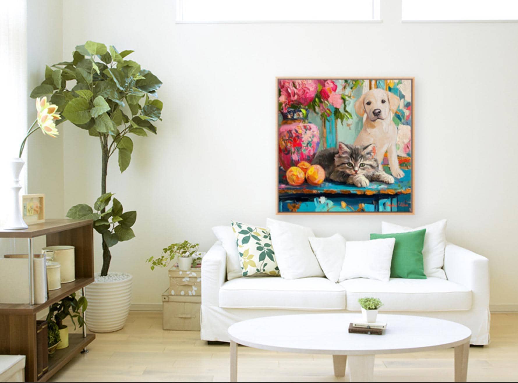Grandmillennial art, Kitty is not in the mood to play, whimsical fine art