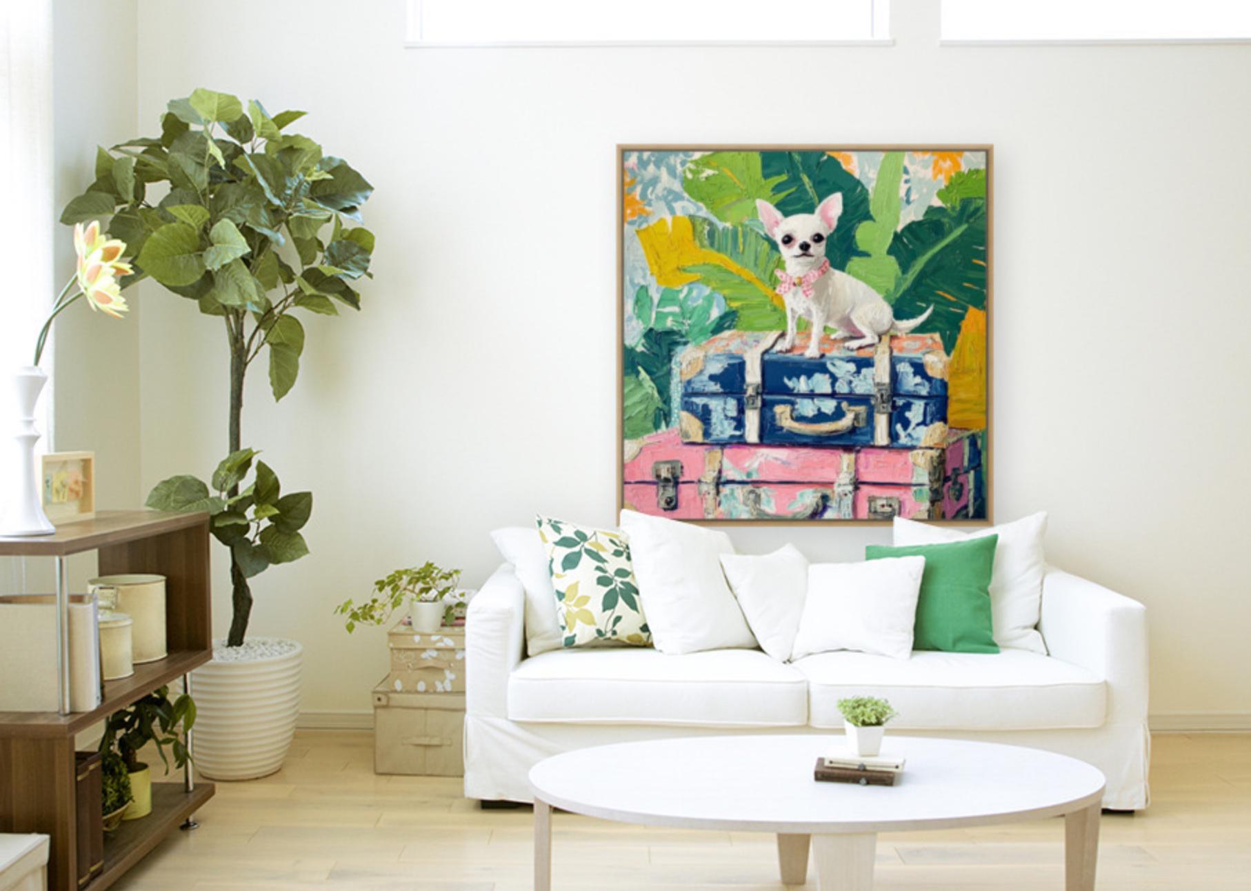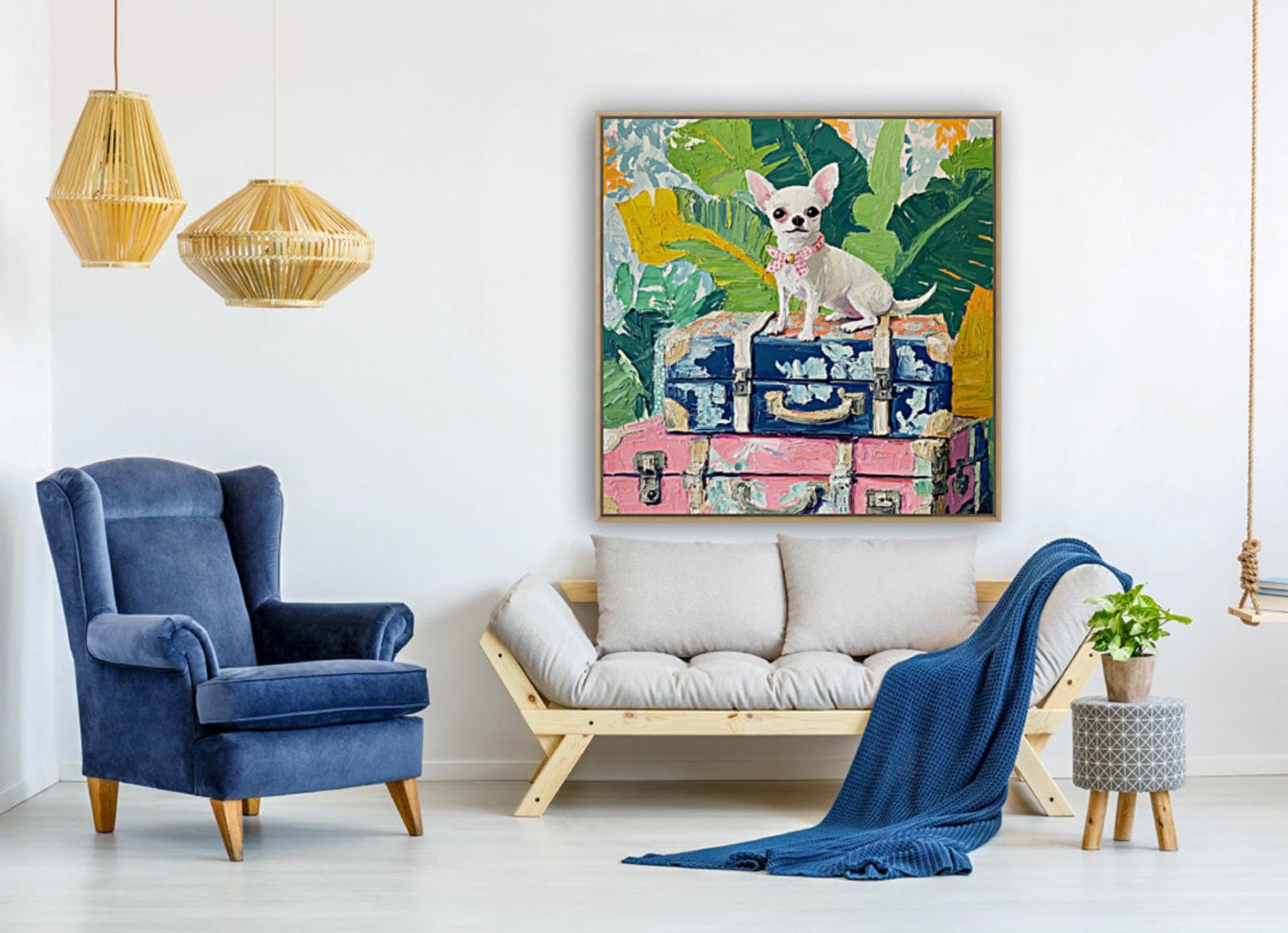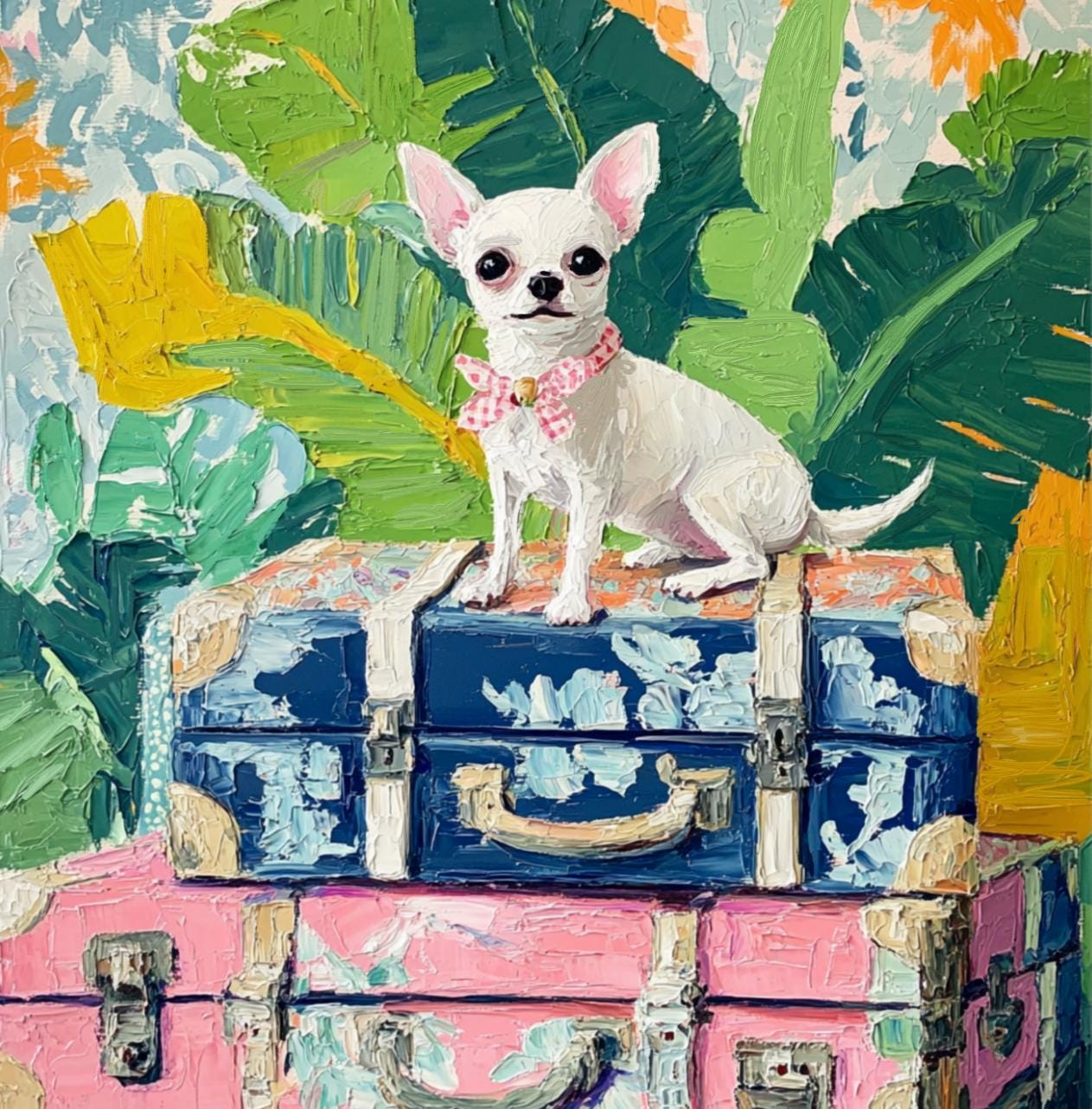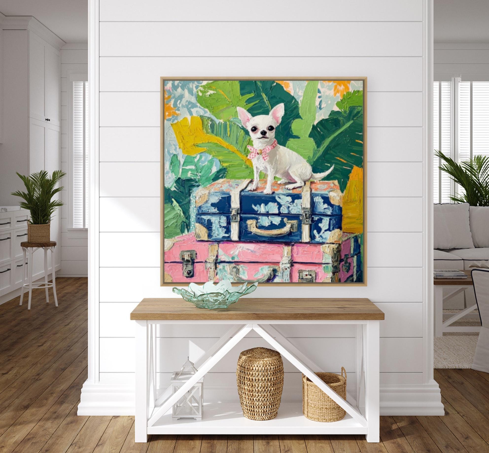 Grandmillennial art, In a mood for holiday, whimsical Chihuahua dog art