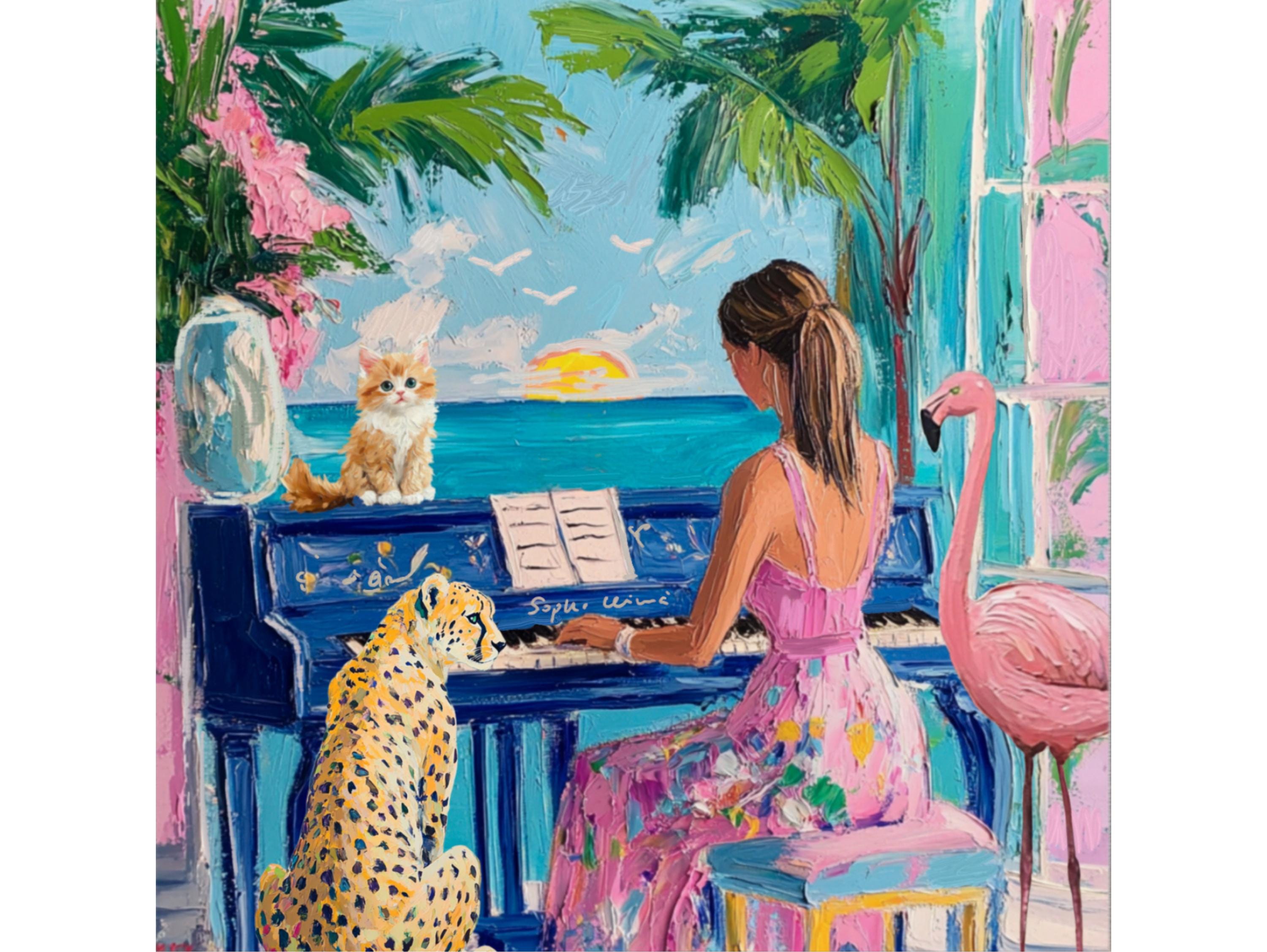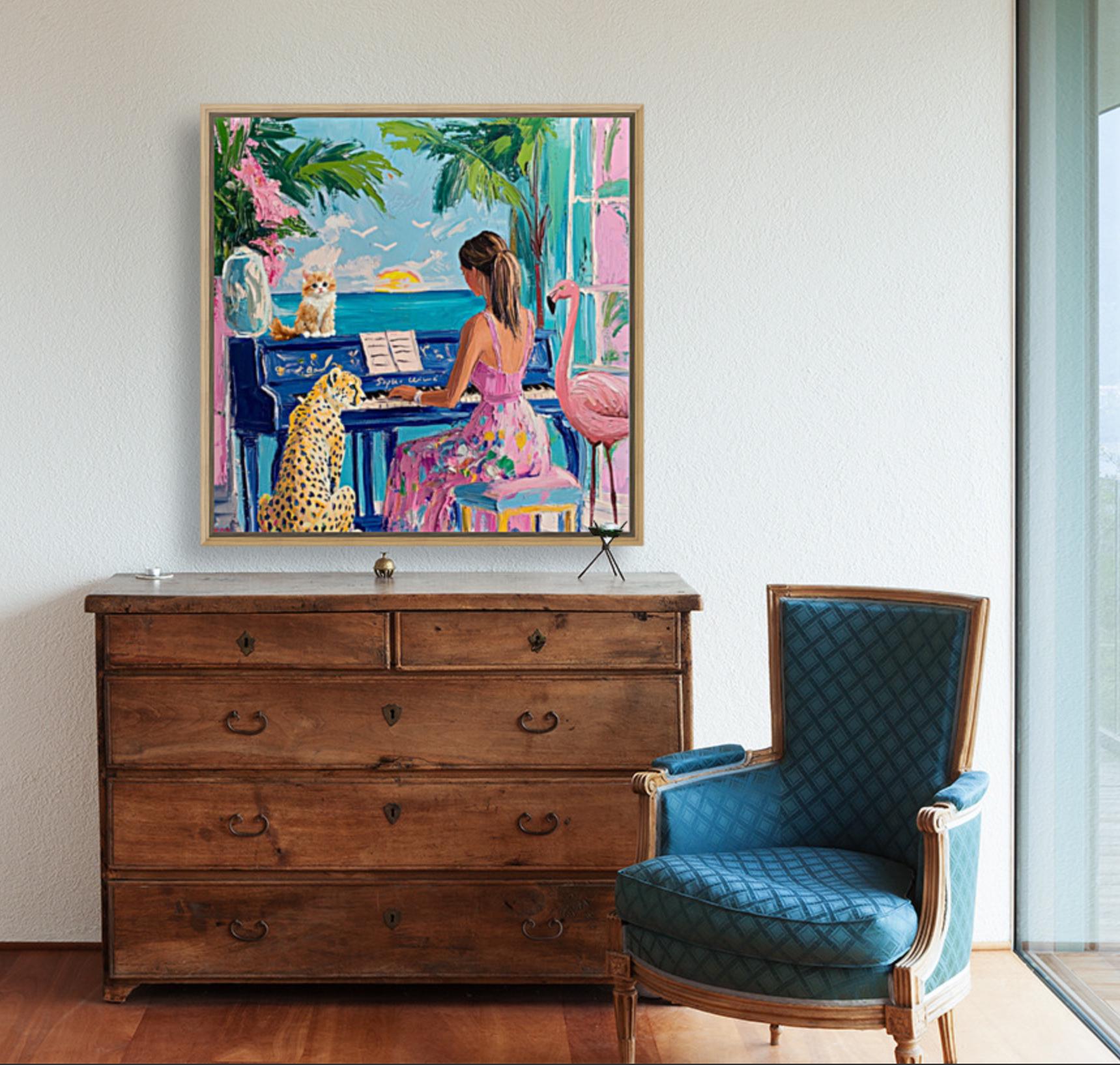 PLEASE NOTE SIZES ARE IN CM. Large giclee print of an original art by Sophie. Fun and whimsical piece. Paper prints are printed using archival ink, on 310 gsm Hahnemuhle German Etching paper. Canvas prints ship ready stretched and UV varnished, Paper prints are shipped rolled in a hard cardboard tube.