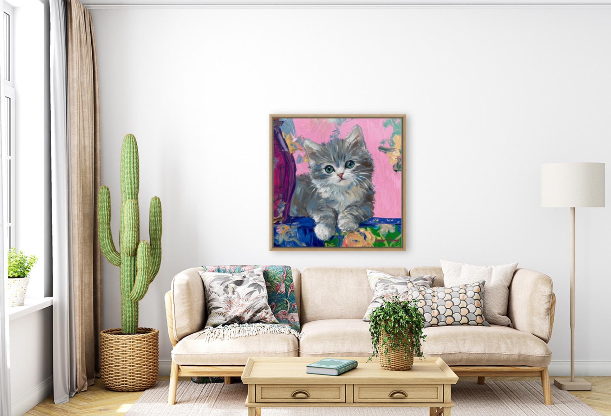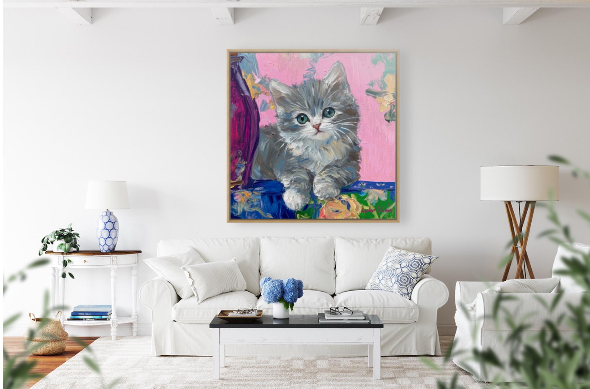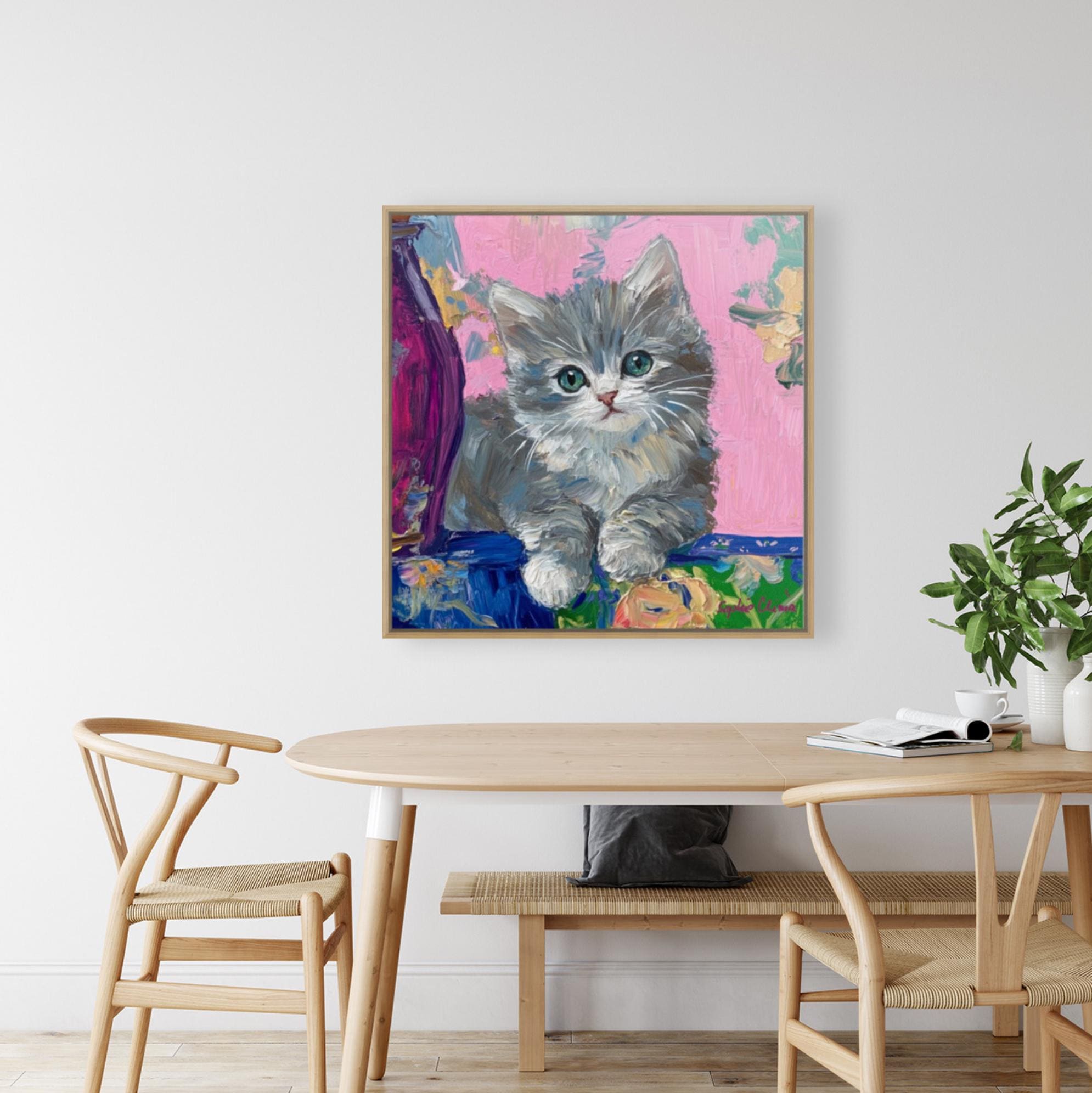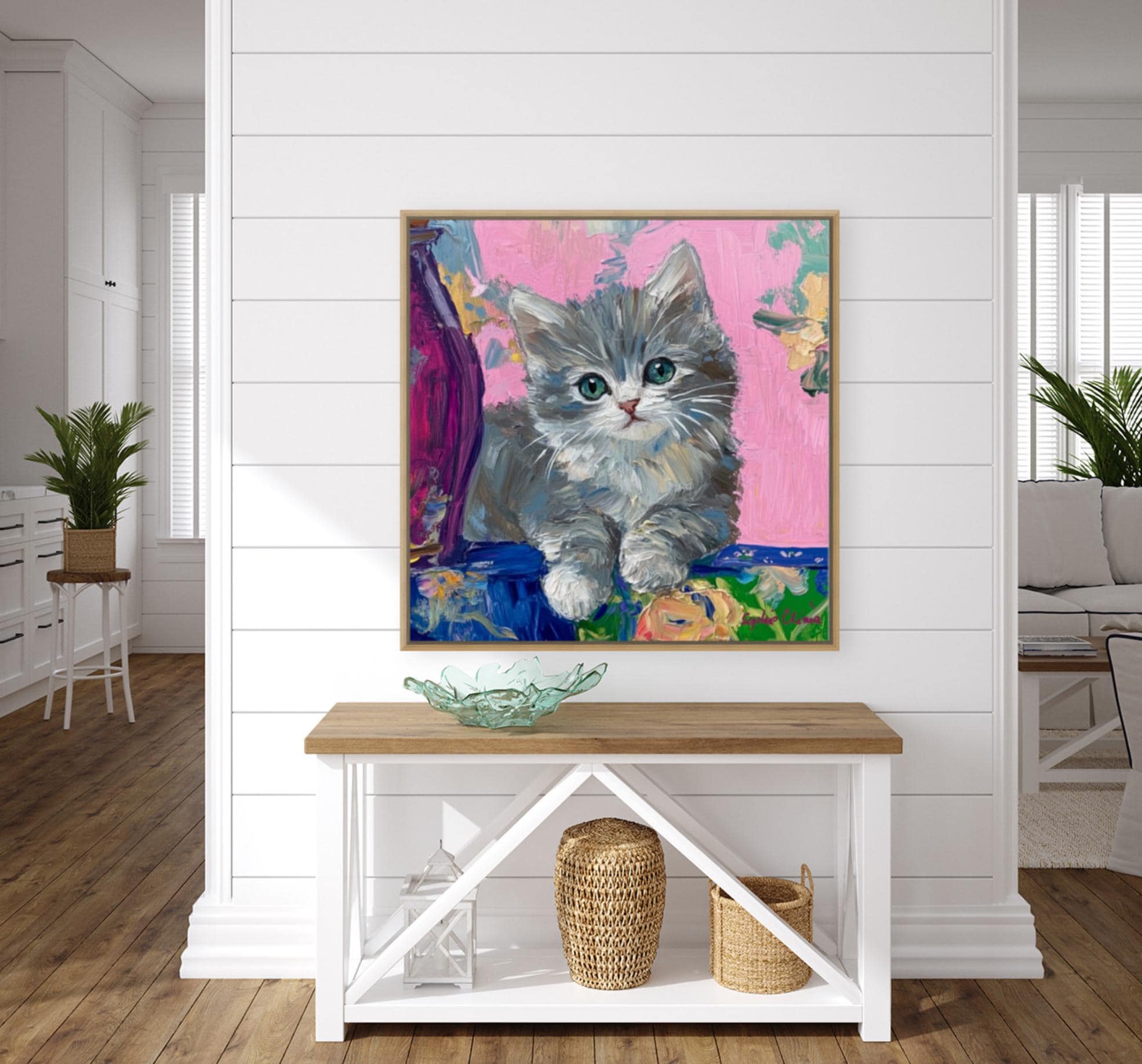 Whimsical Siberian Kitten Art Print: Grandmillennial Decor