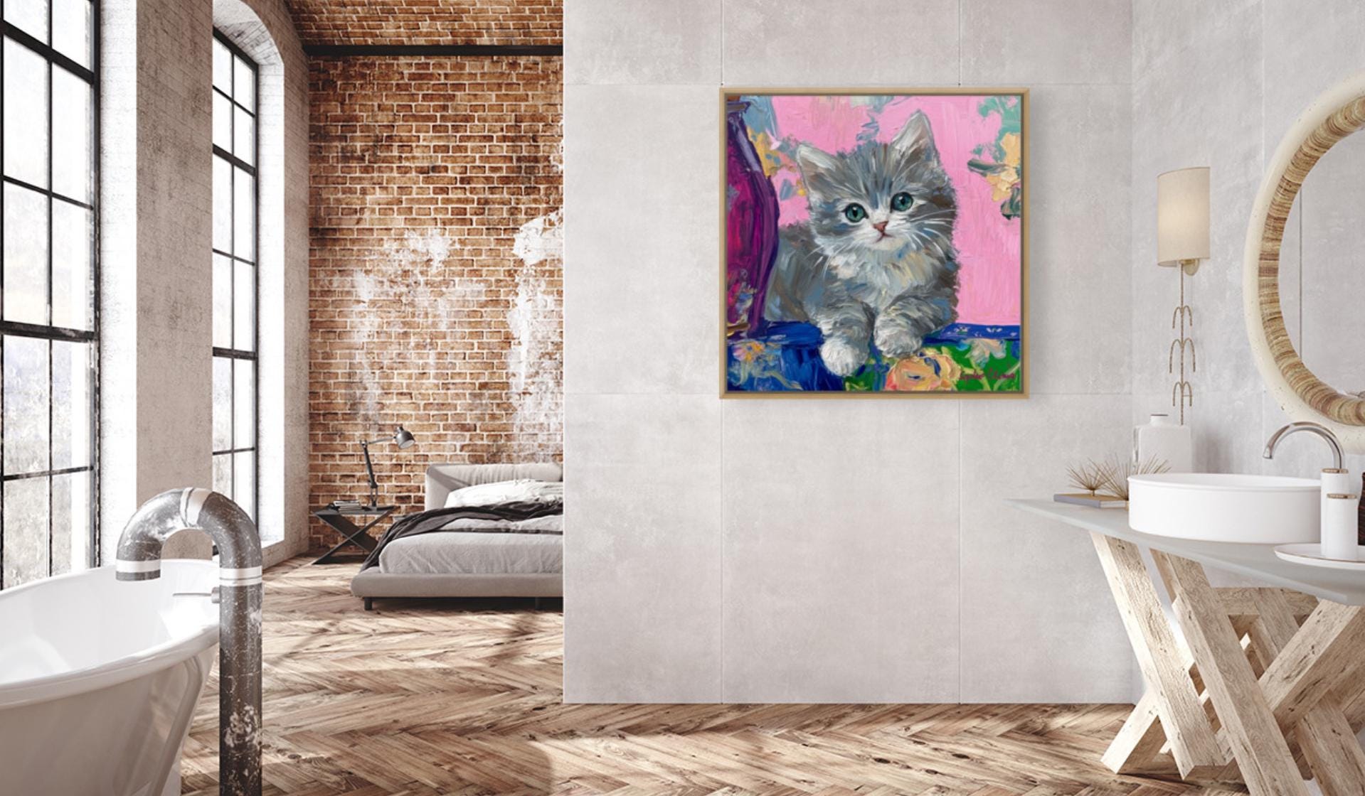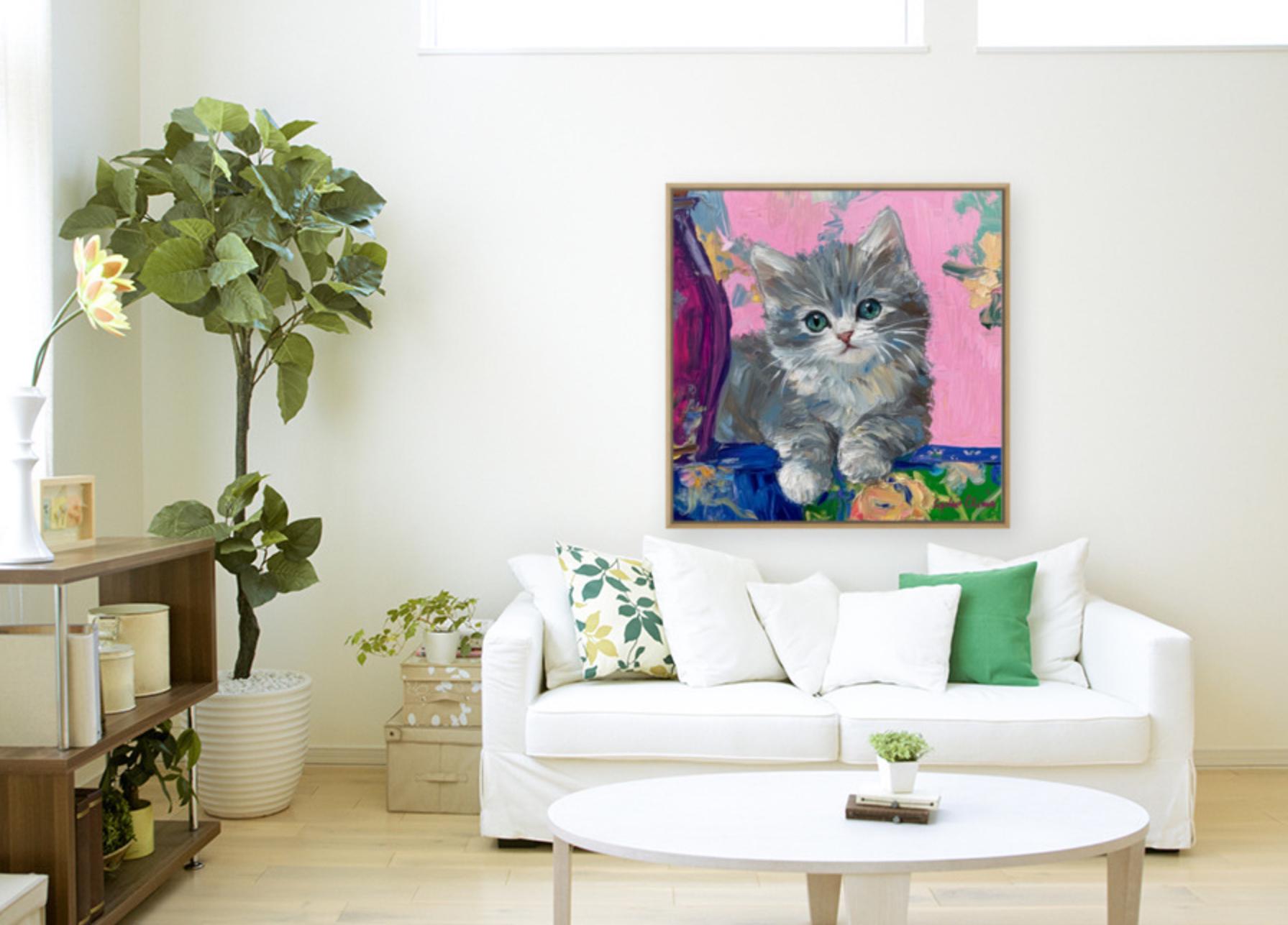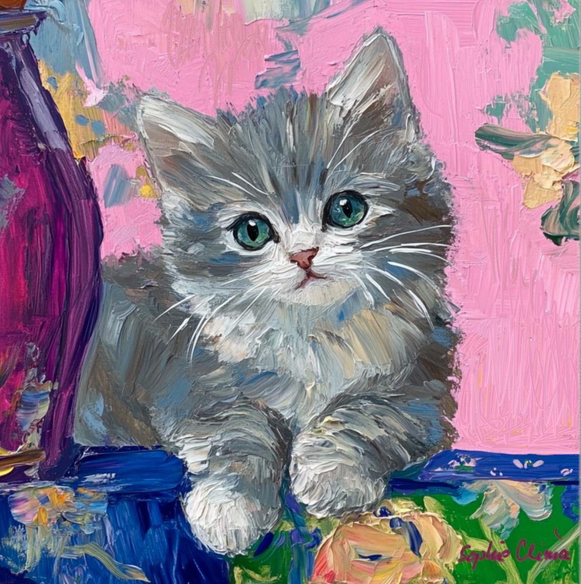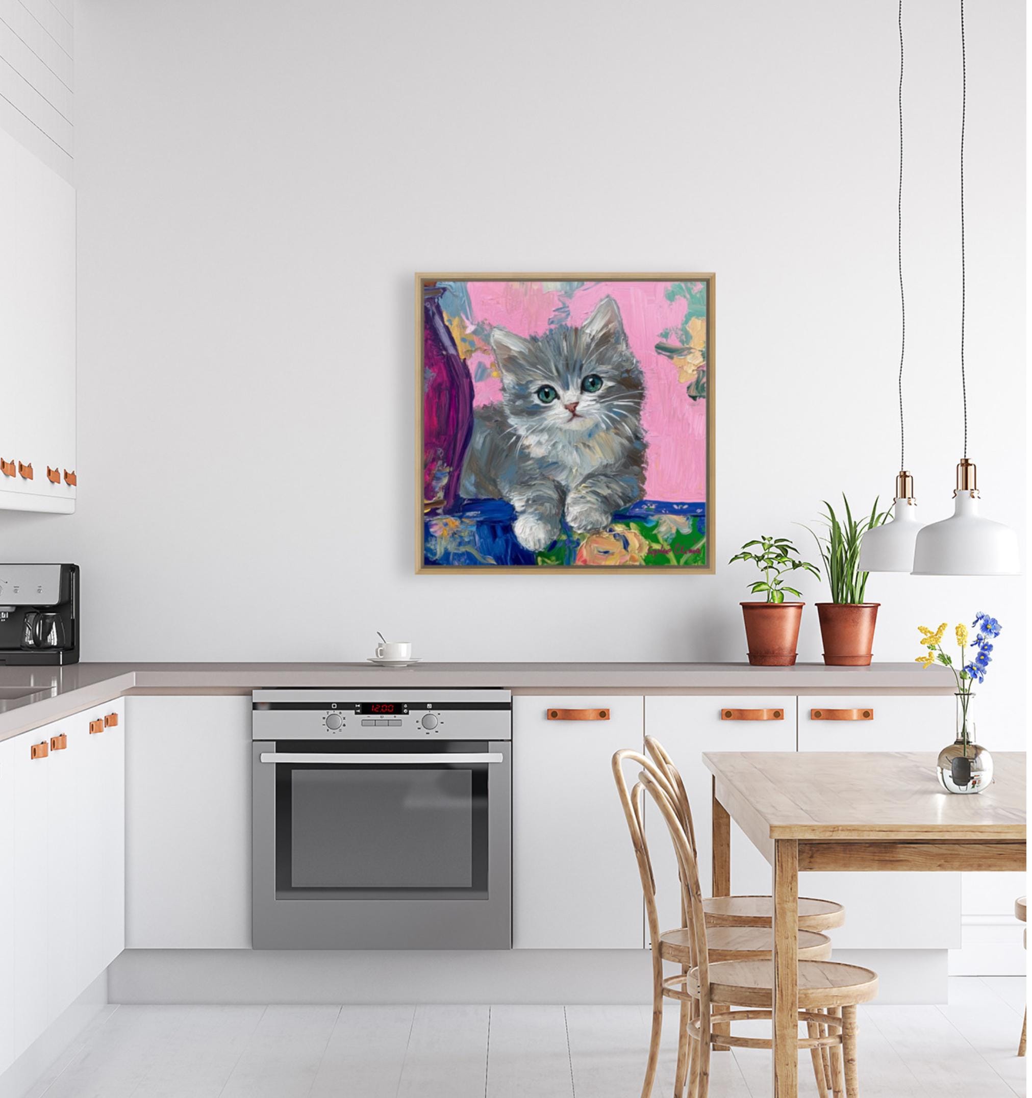 Whimsical Siberian Kitten Art Print: Grandmillennial Decor