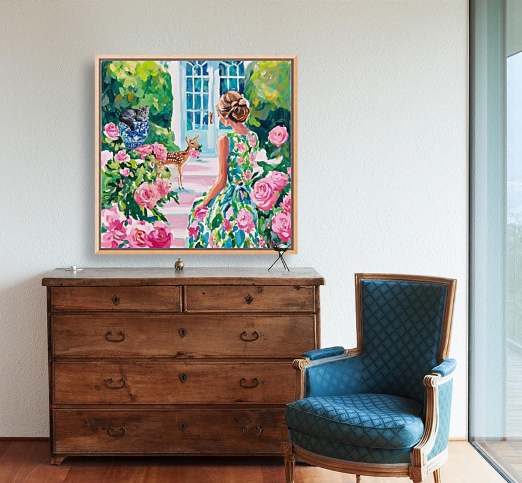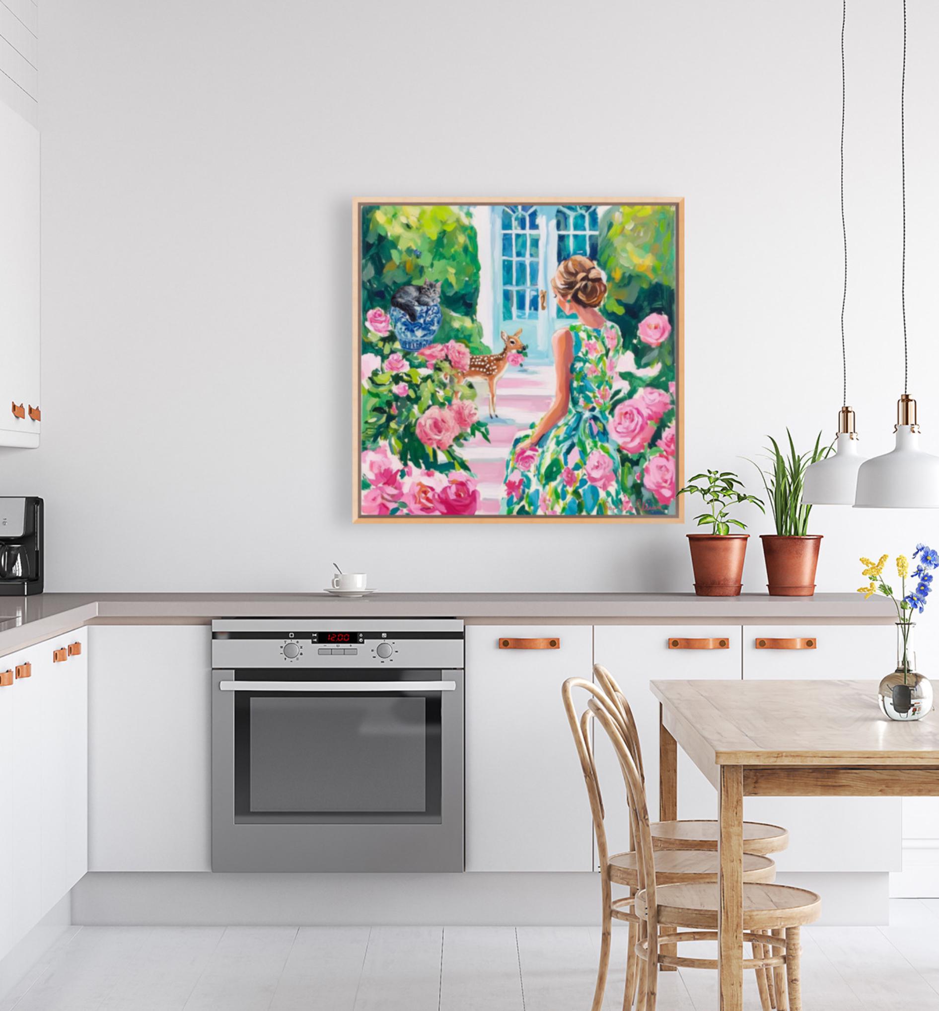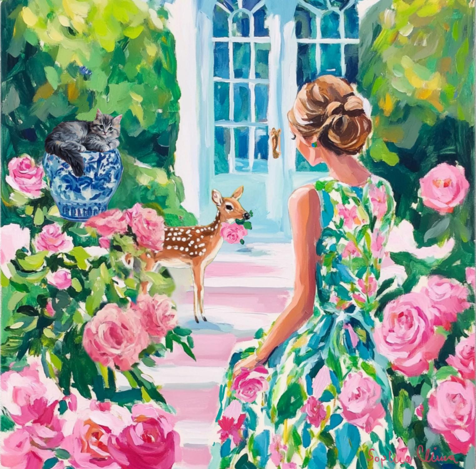 Grandmillennial art, Thief in the Rose Garden, whimsical fine art