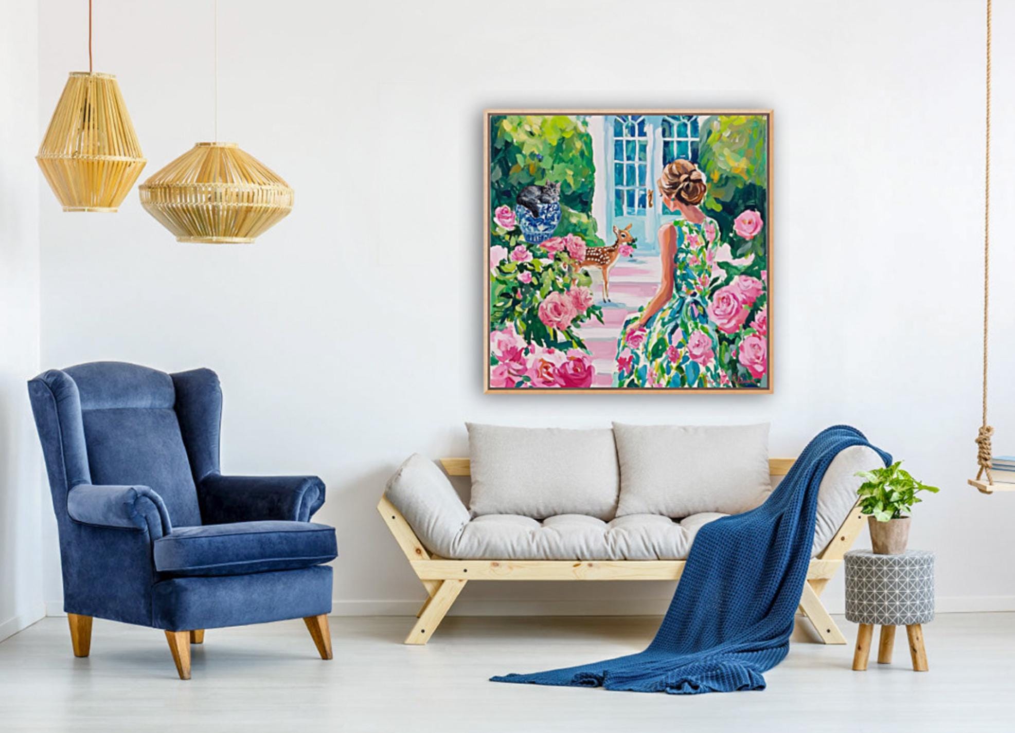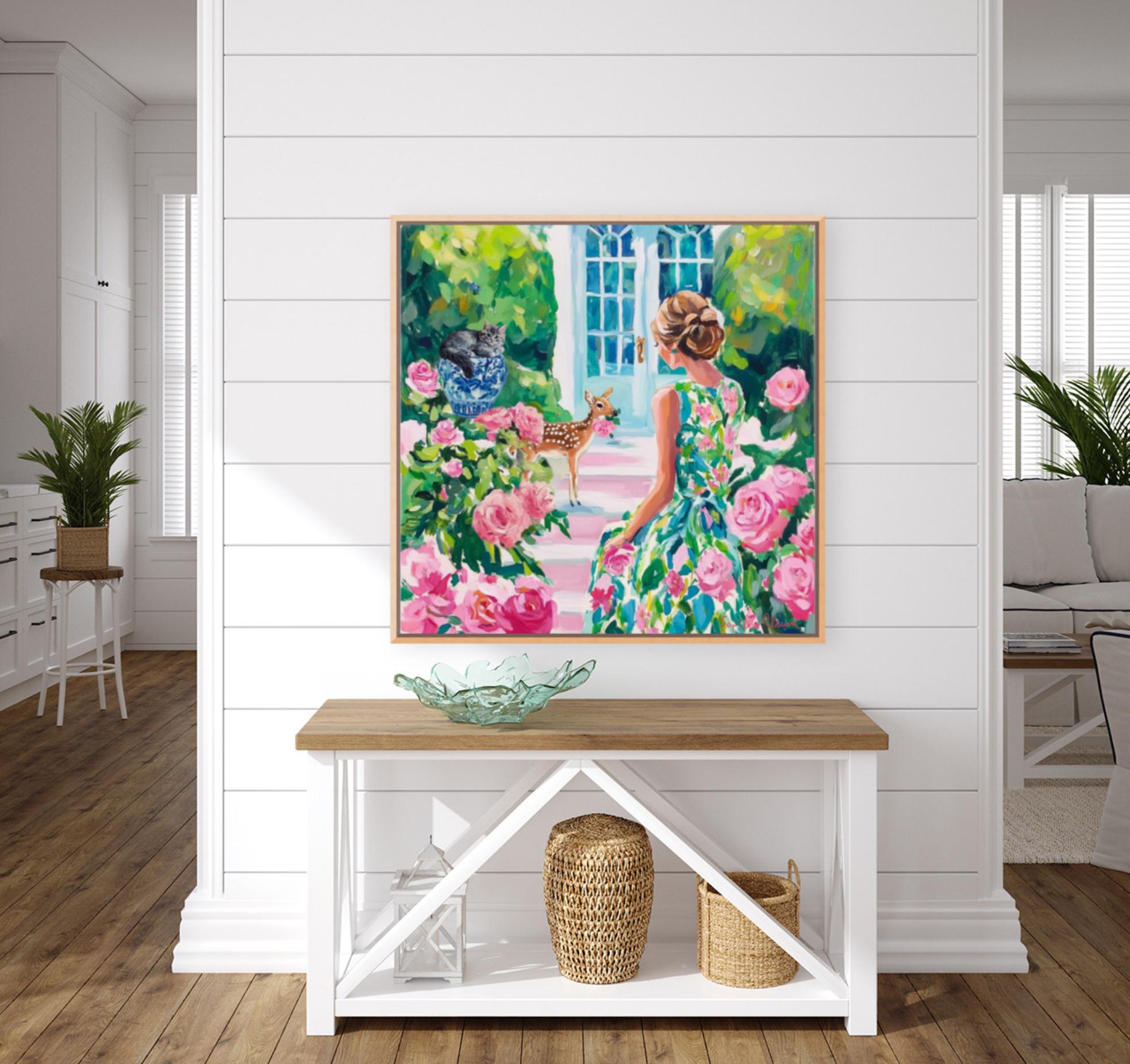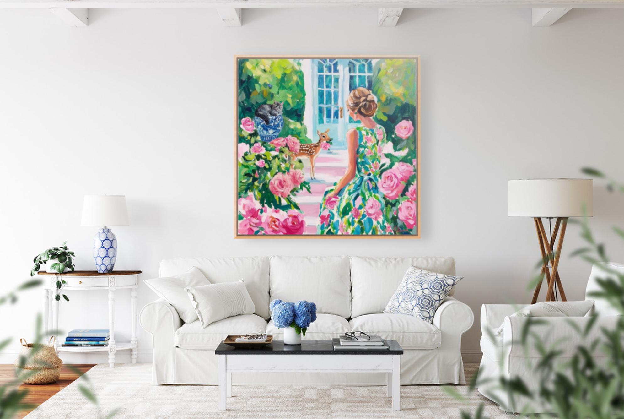 Grandmillennial art, Thief in the Rose Garden, whimsical fine art