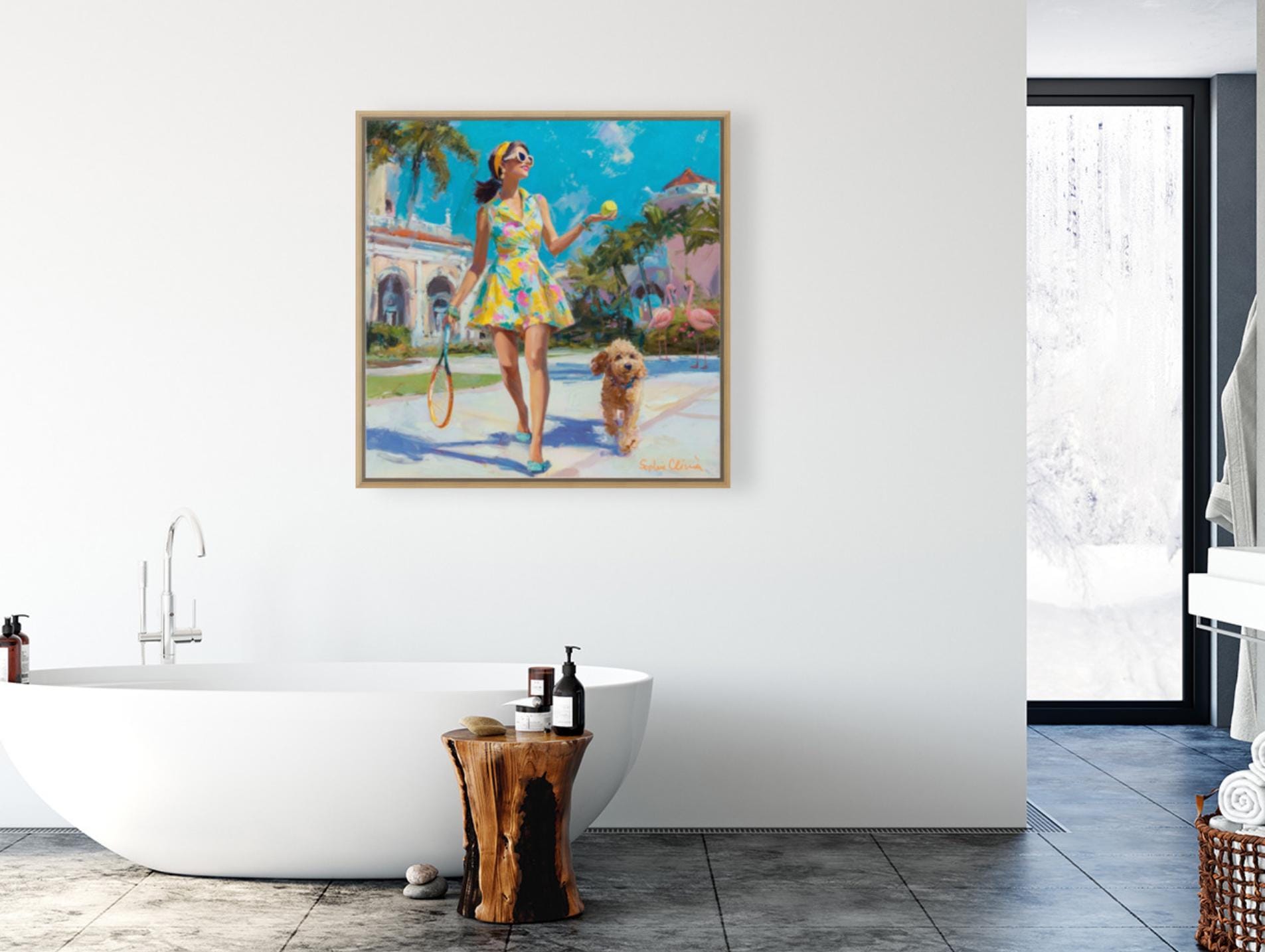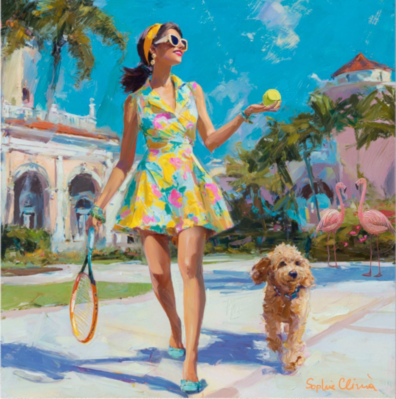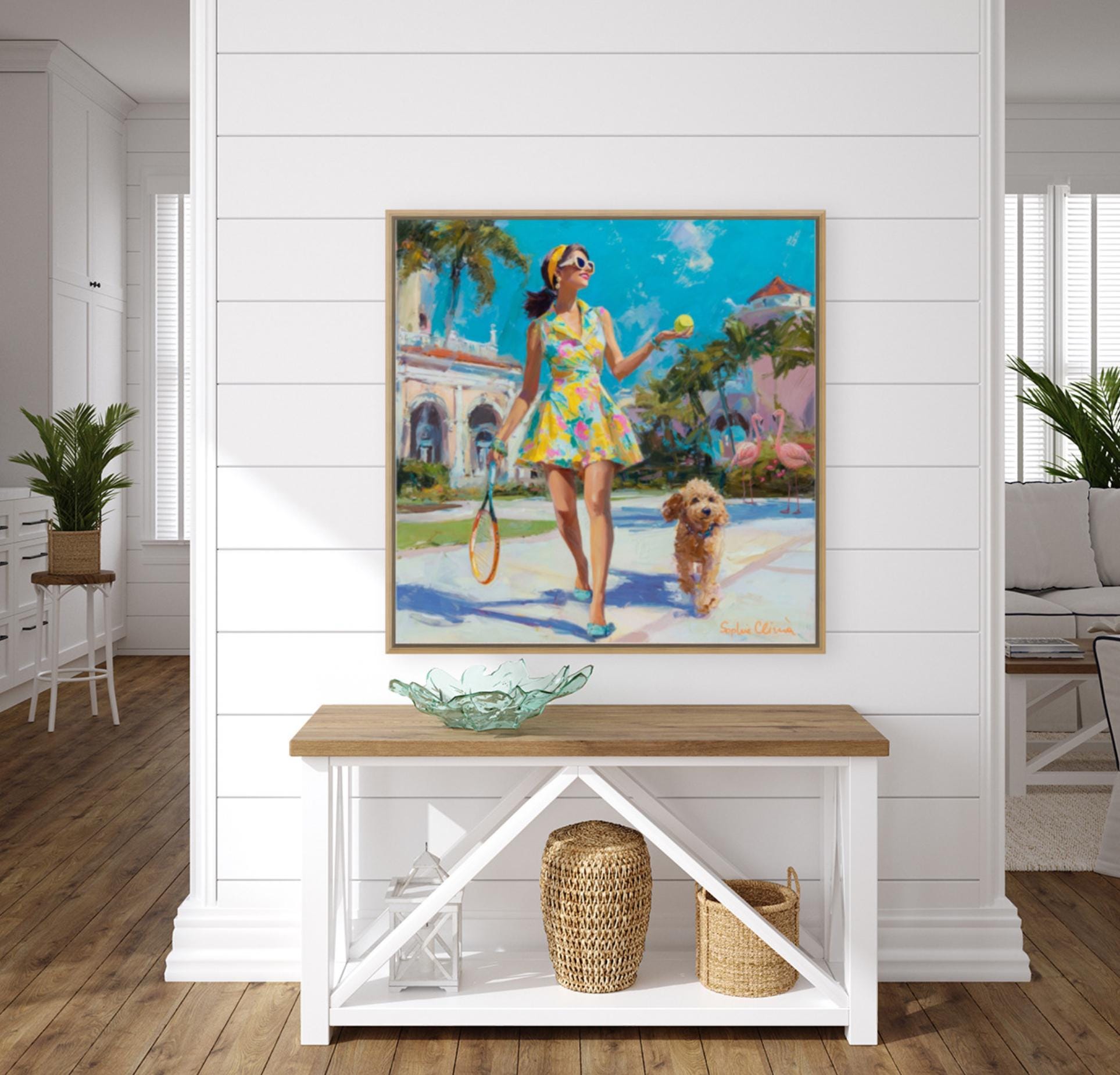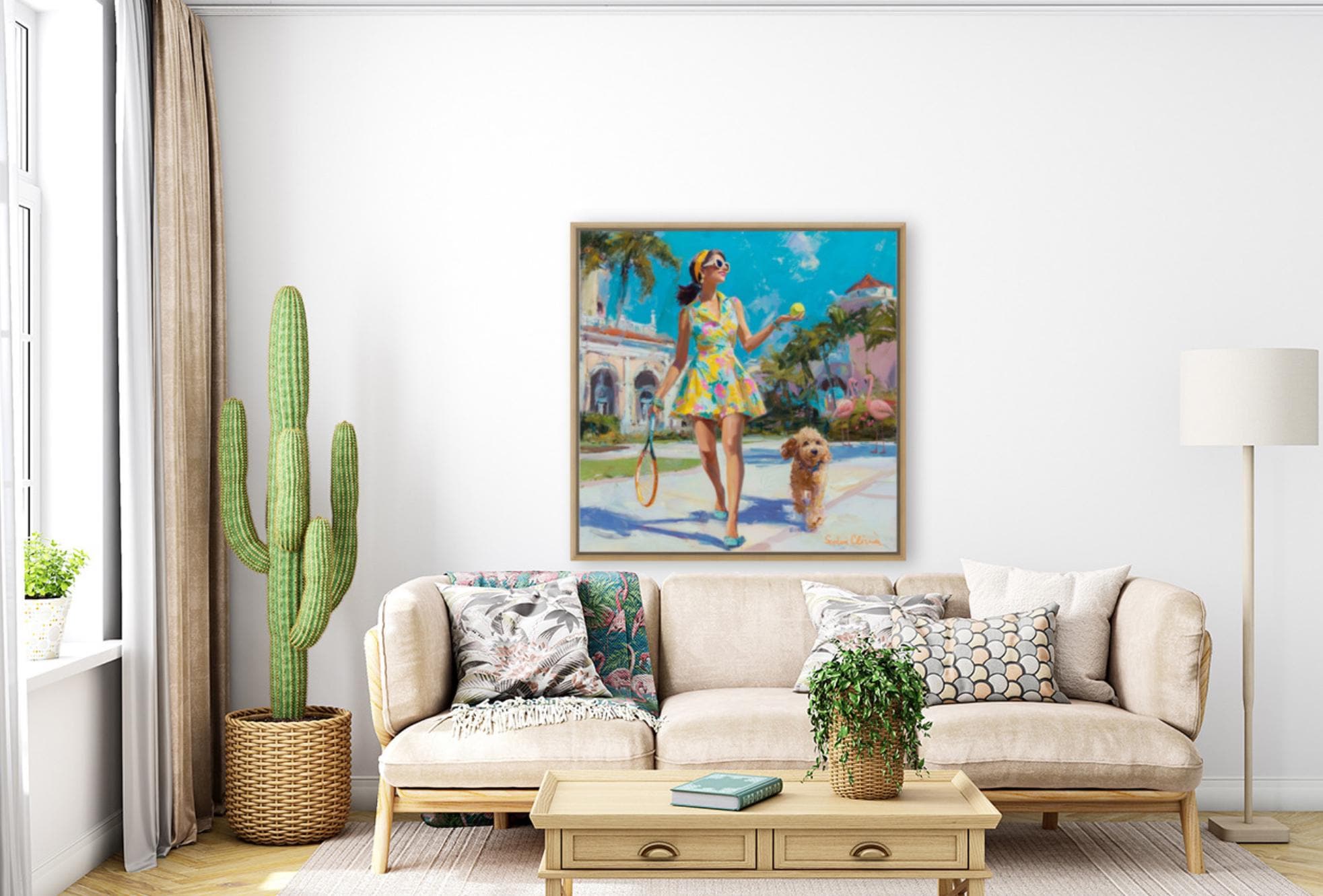 Serve sunshine, sass, and Southern charm with this Palm Beach tennis girl art print—a perfect match for lovers of preppy décor, Lilly dresses, and grandmillennial vibe. Whether you’re decorating your beach house, dressing room, or gallery wall, this piece brings a cocktail of bold color, vintage fashion, and cheeky Palm Beach glamour.