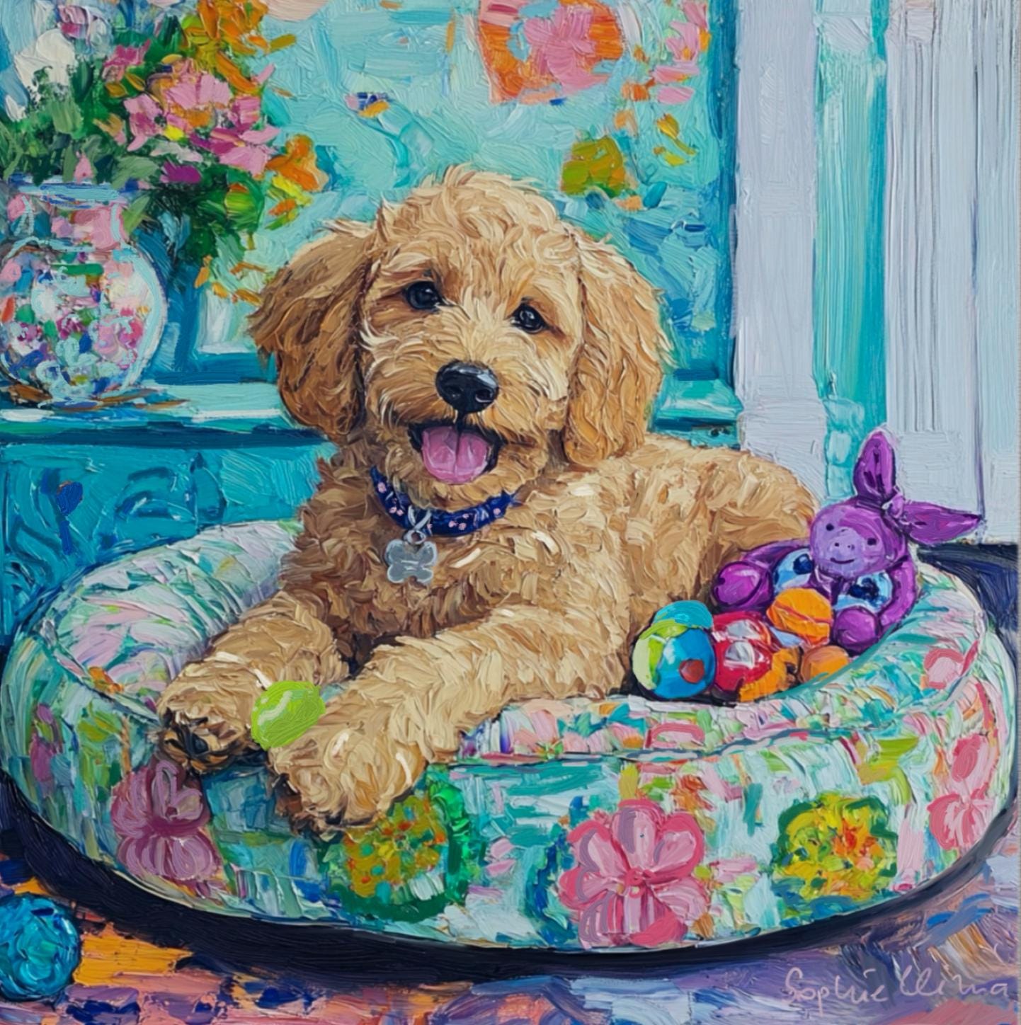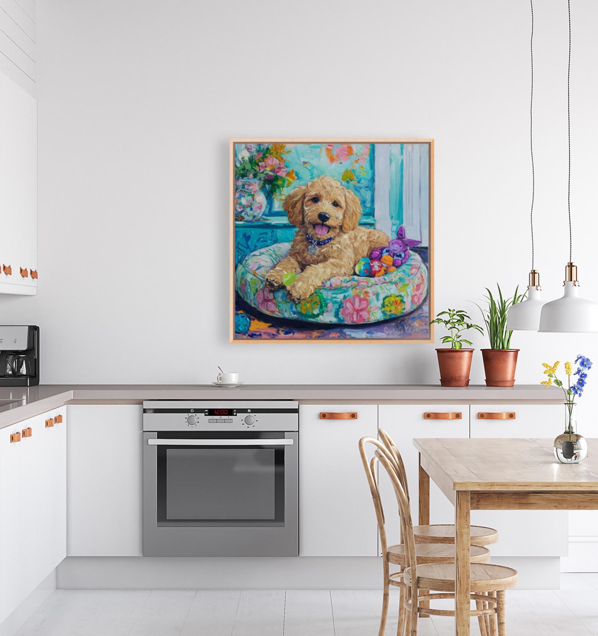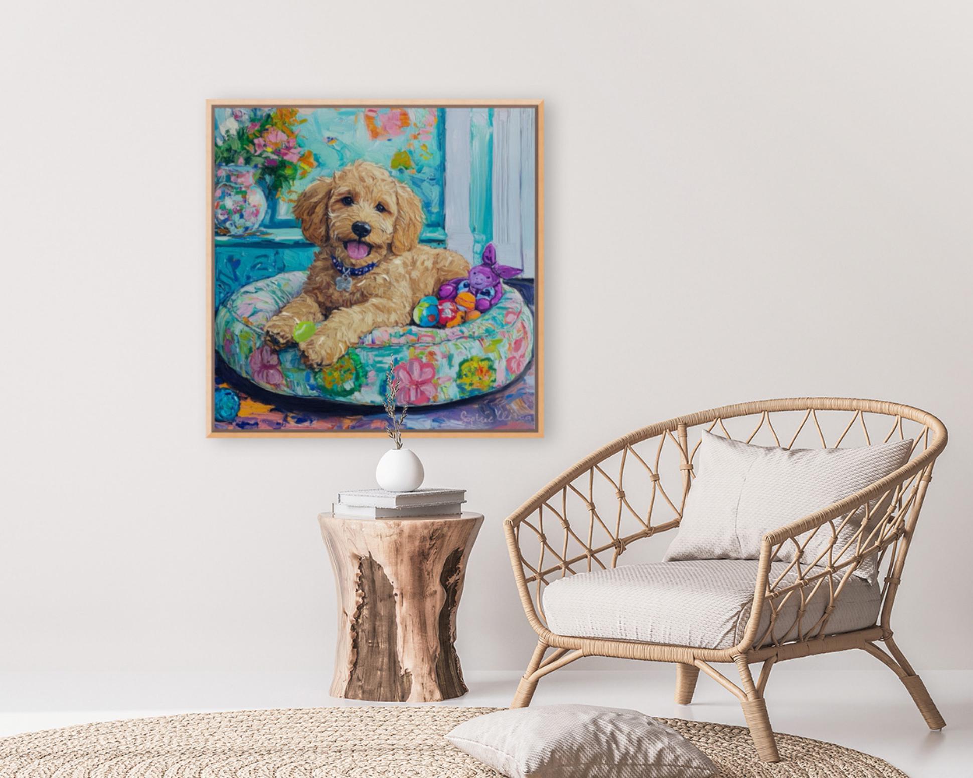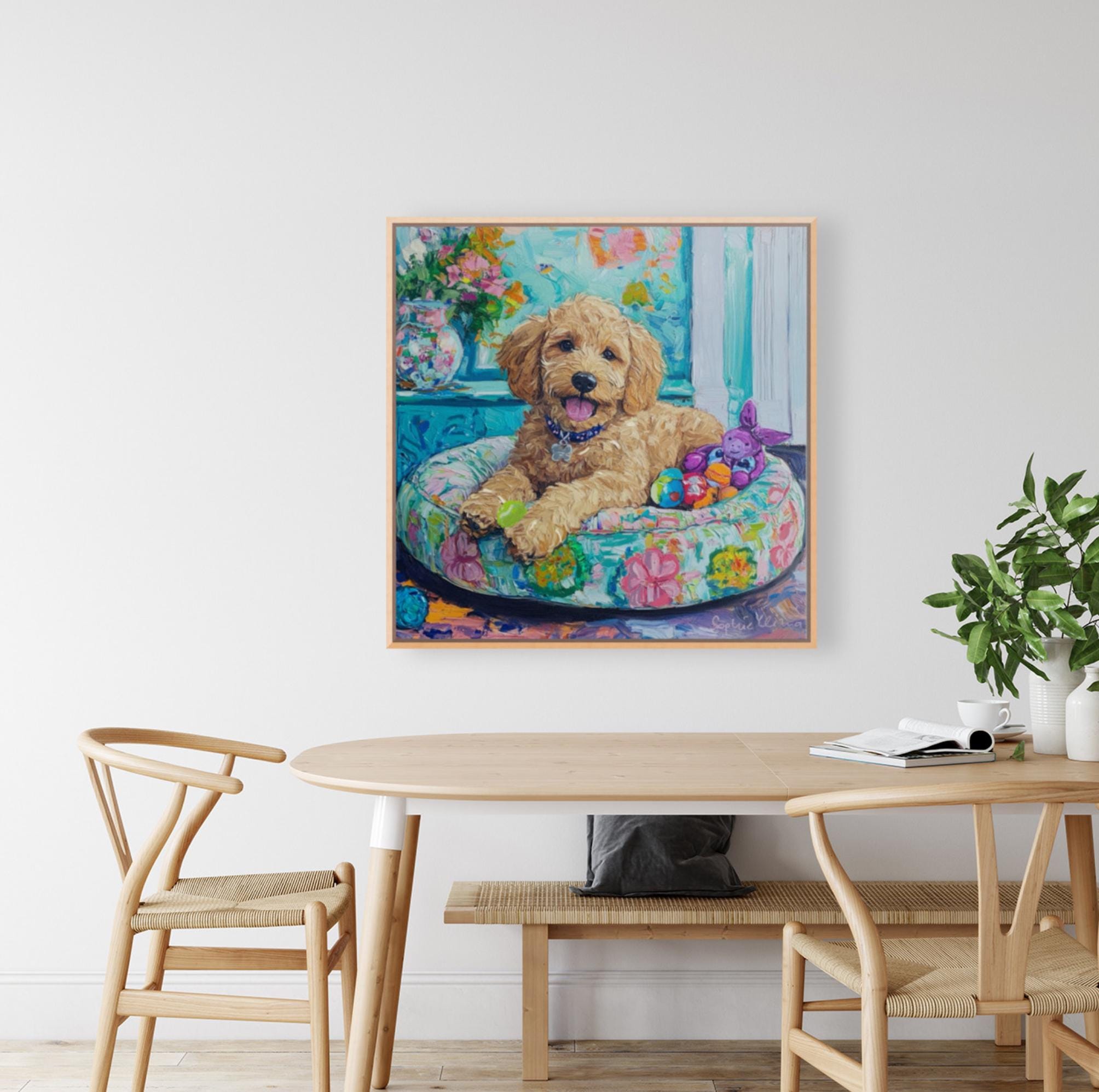 Whimsical Dog Art Print: Grandmillennial Preppy Wall Decor
