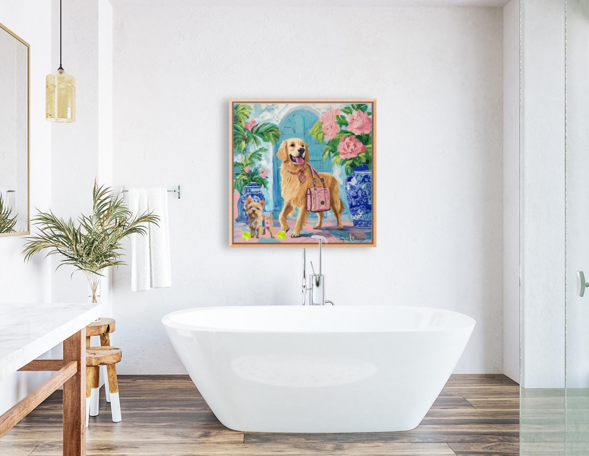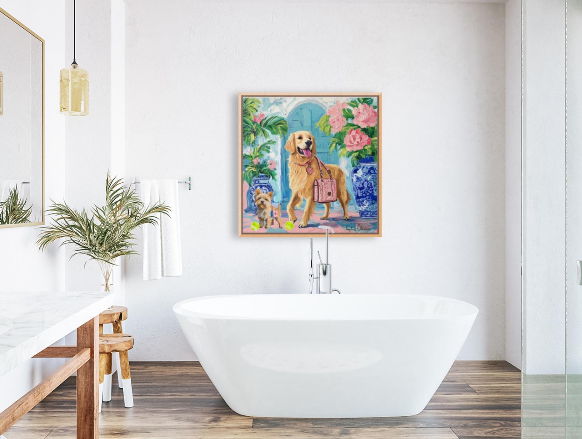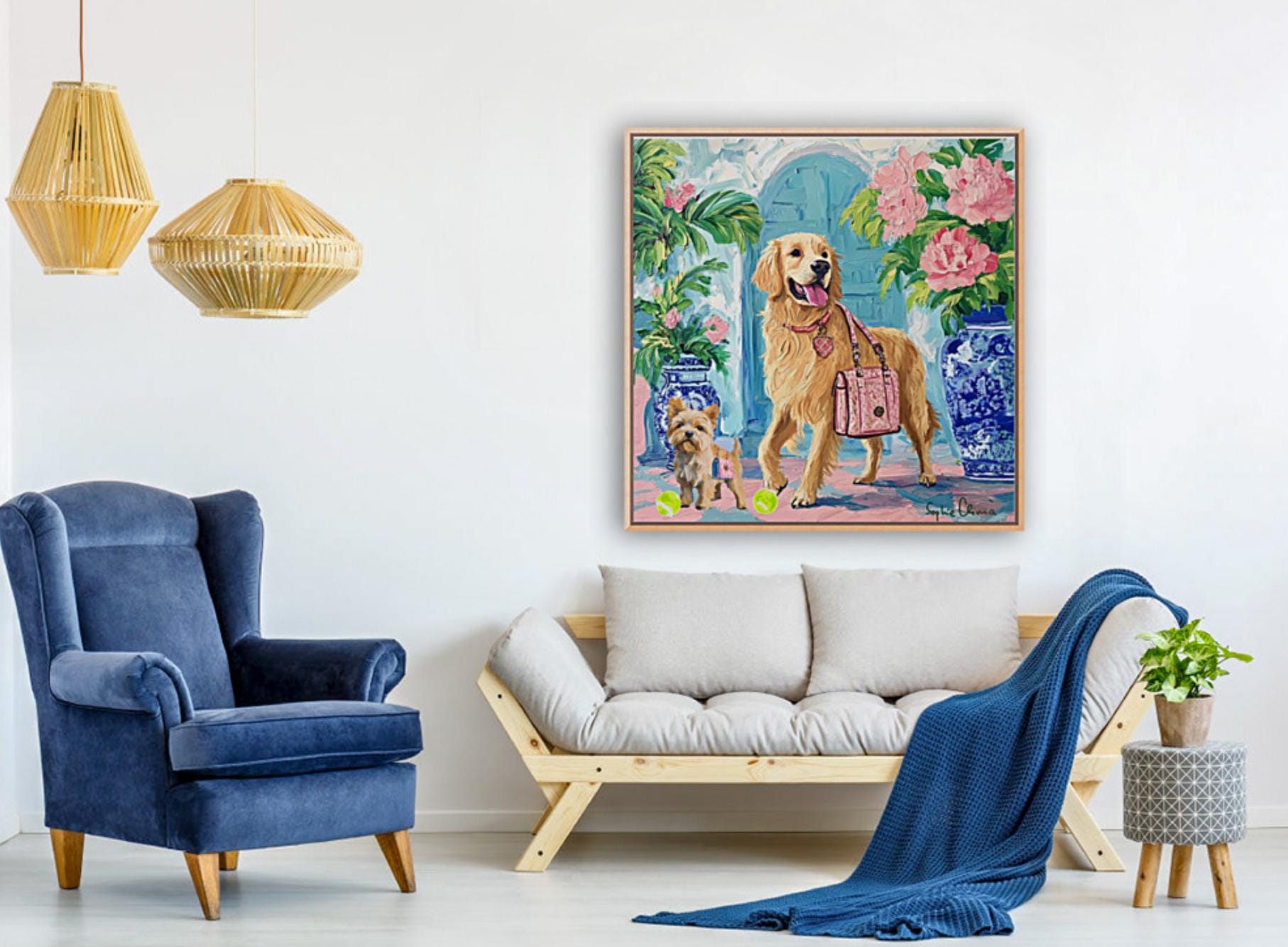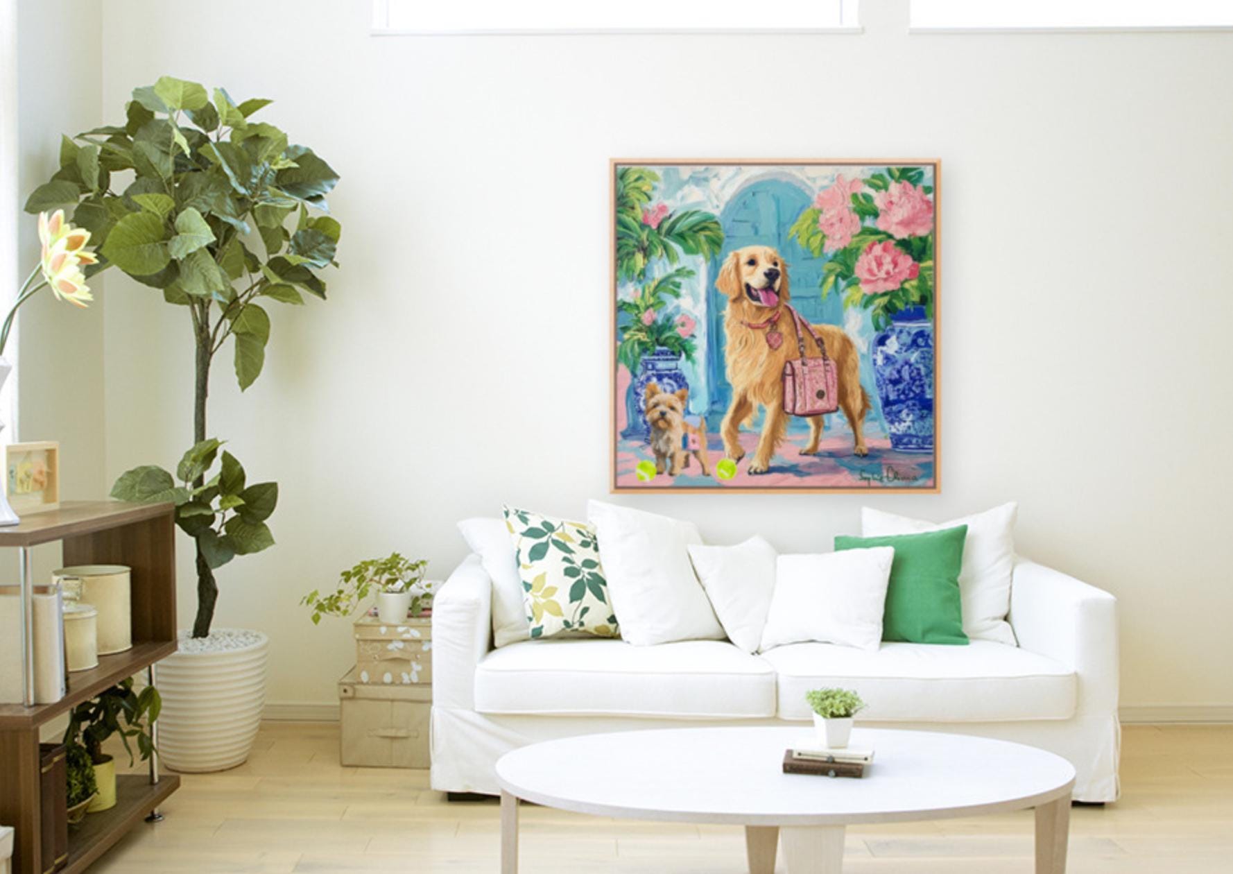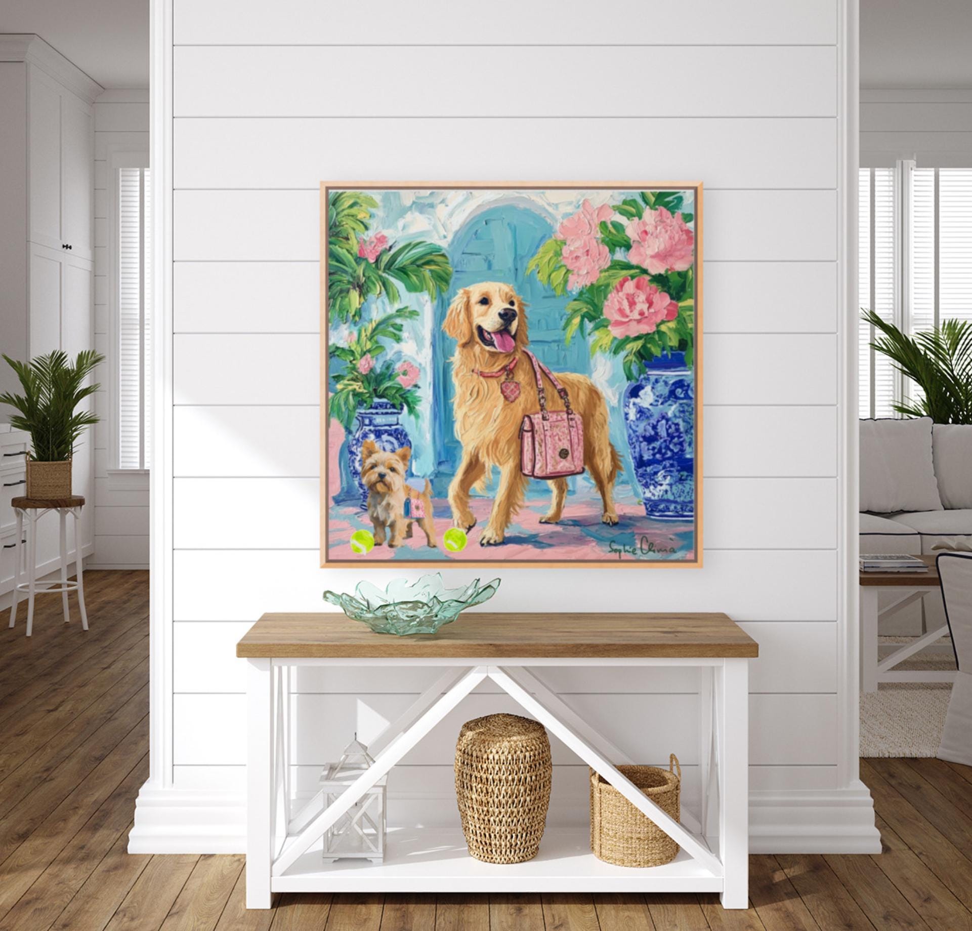 Golden Retriever Art Print: Grandmillennial Palm Beach Decor