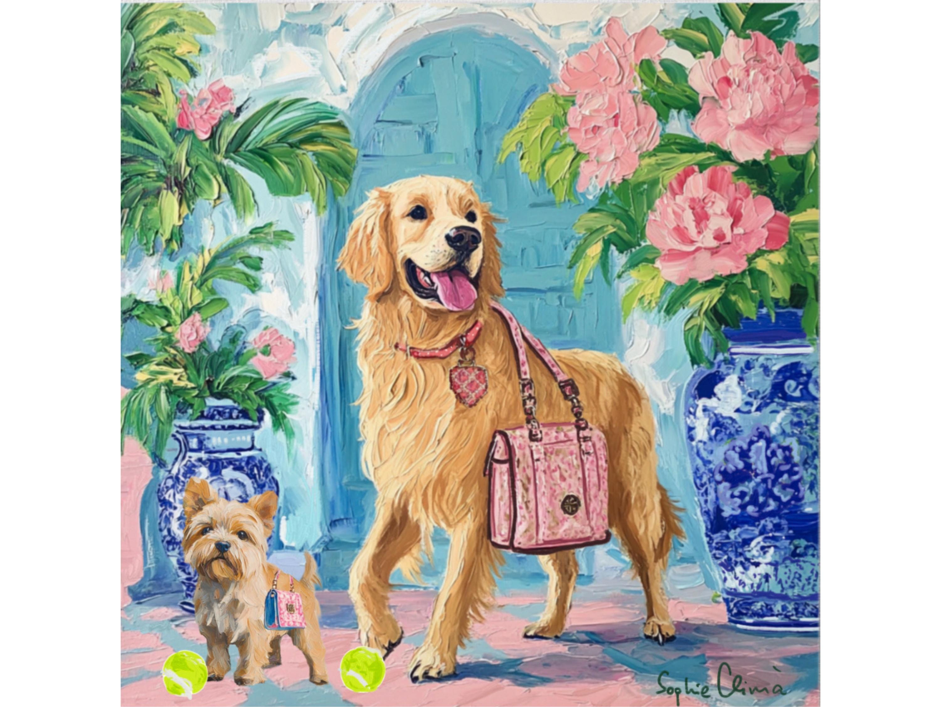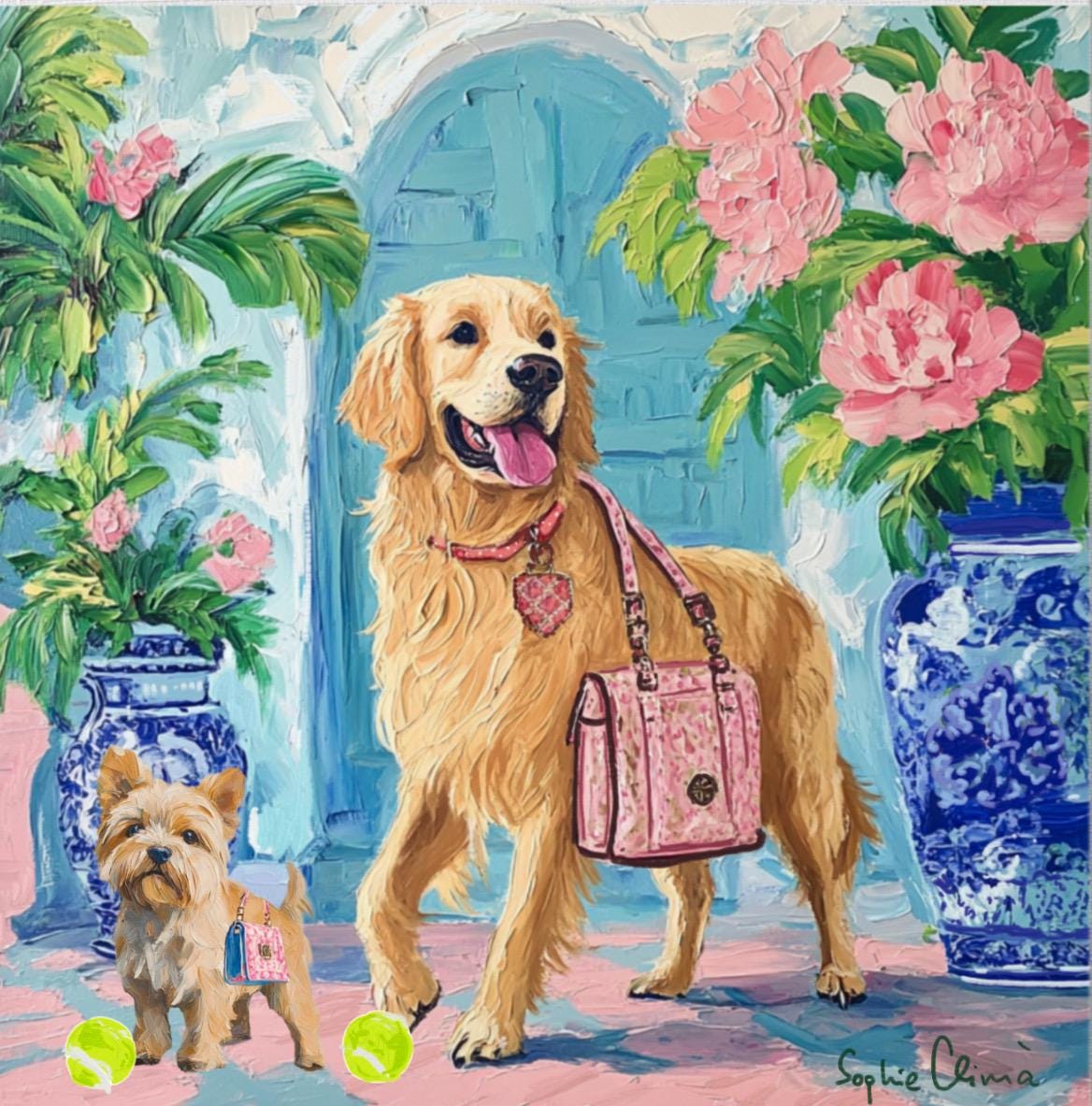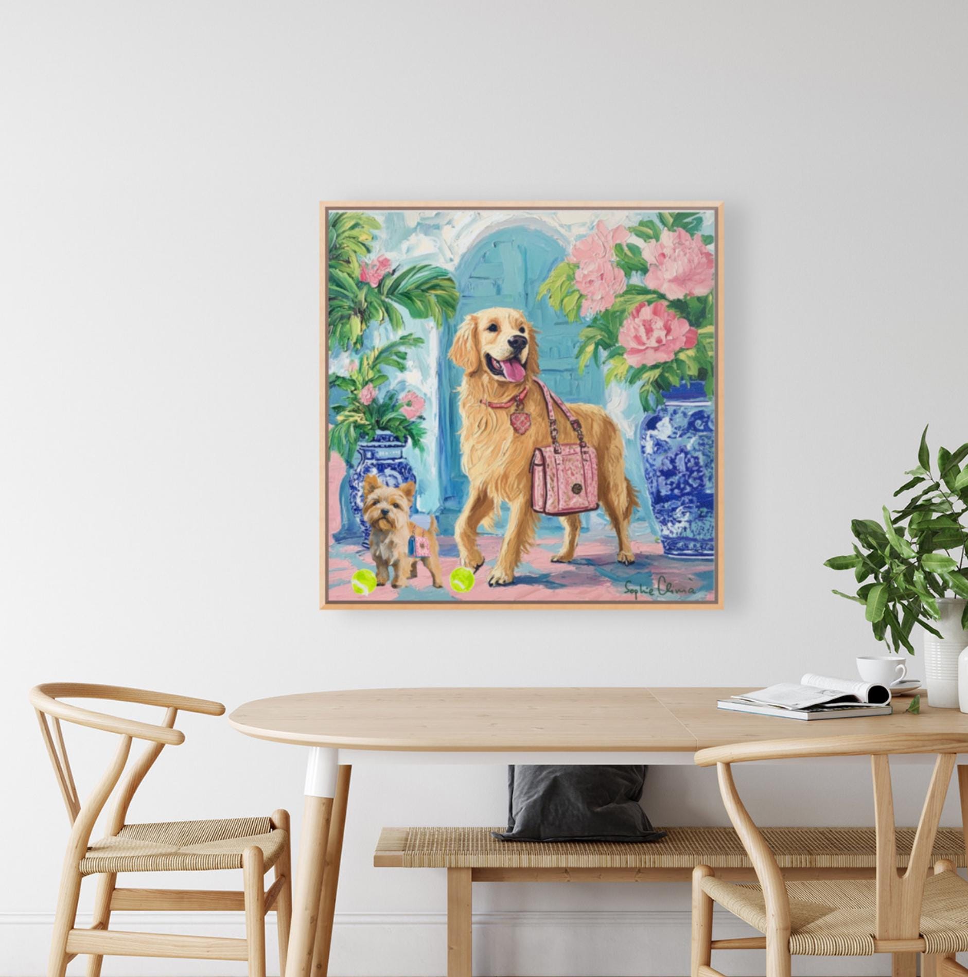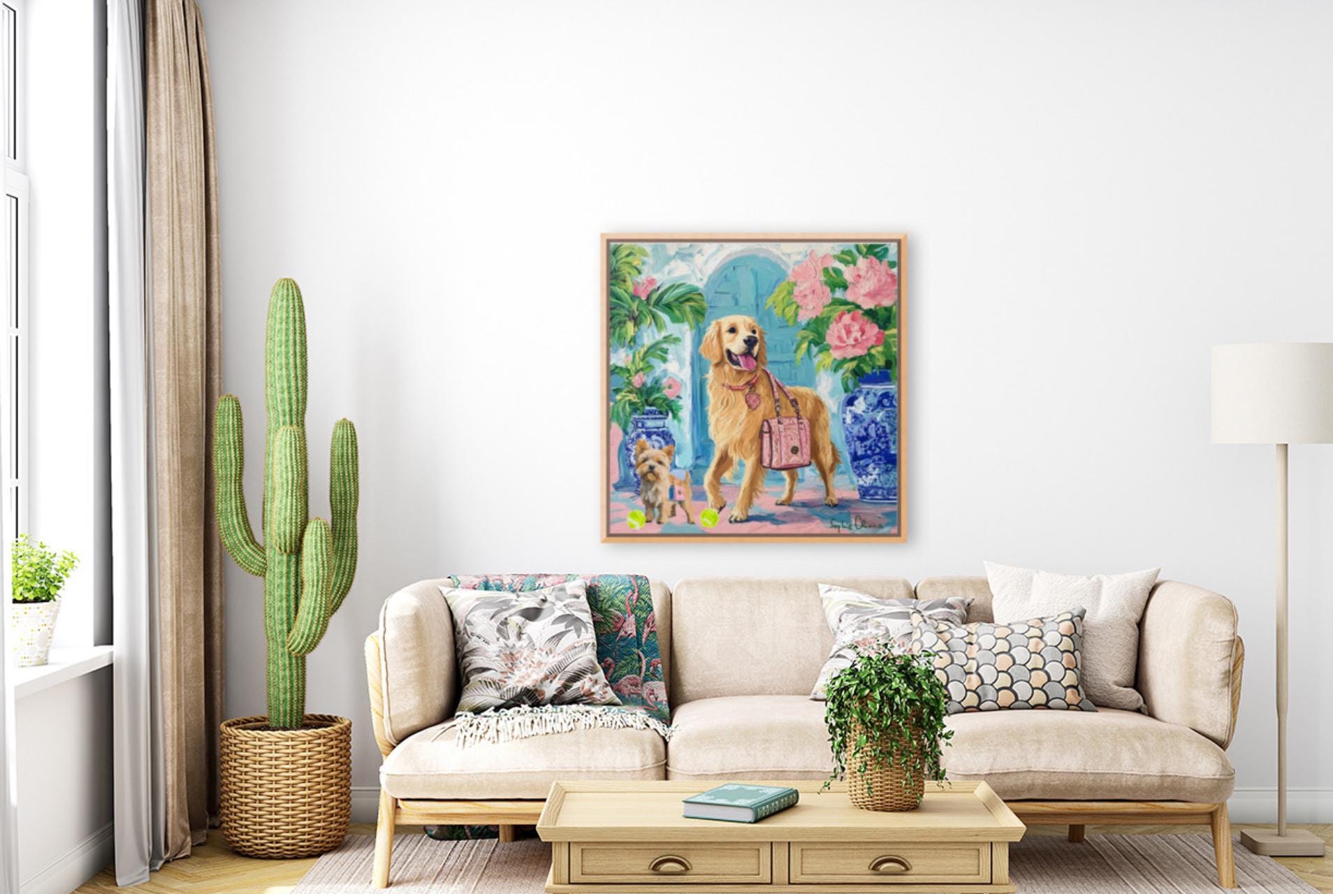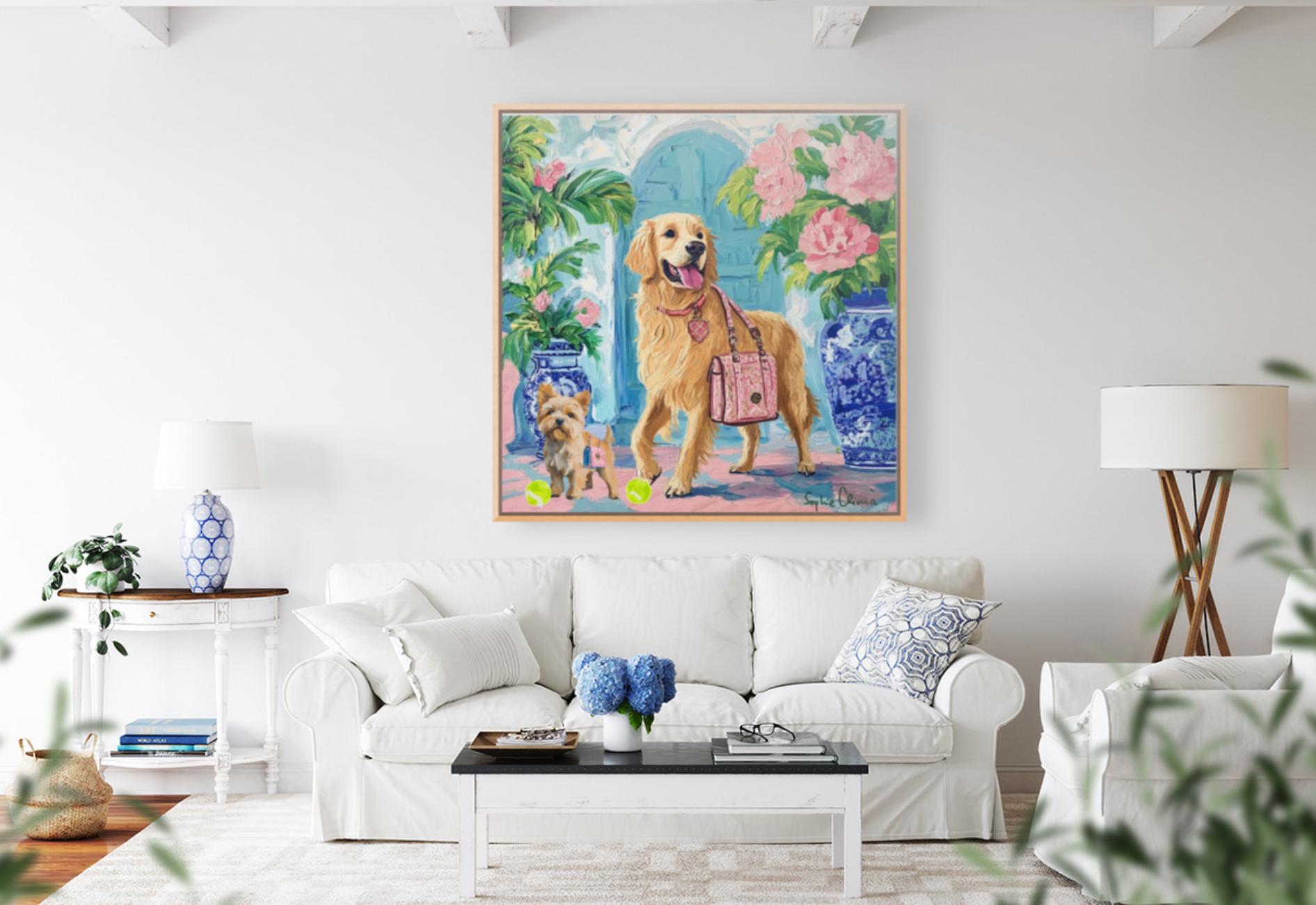 Golden Retriever Art Print: Grandmillennial Palm Beach Decor