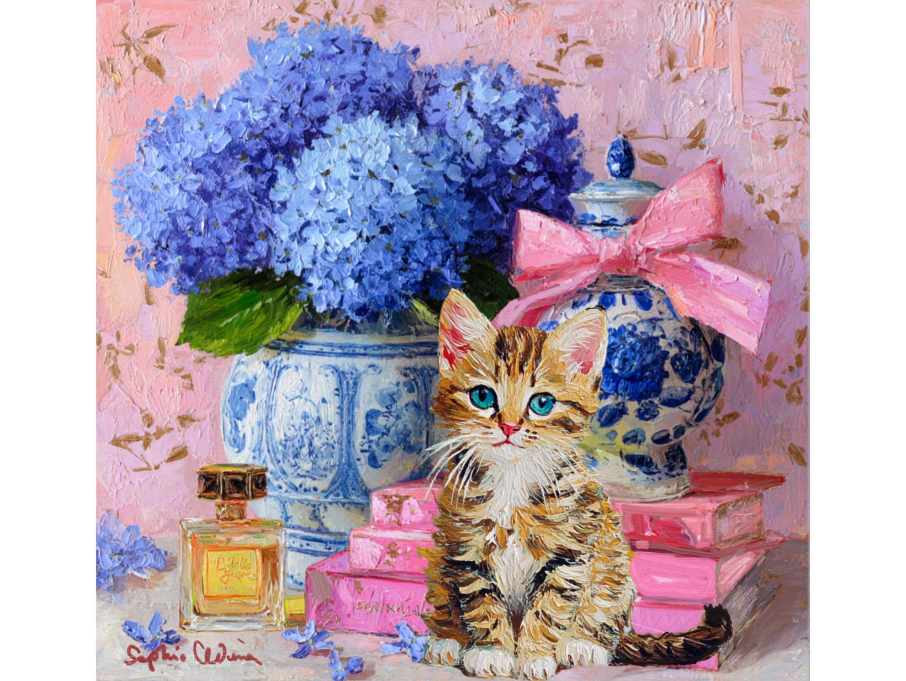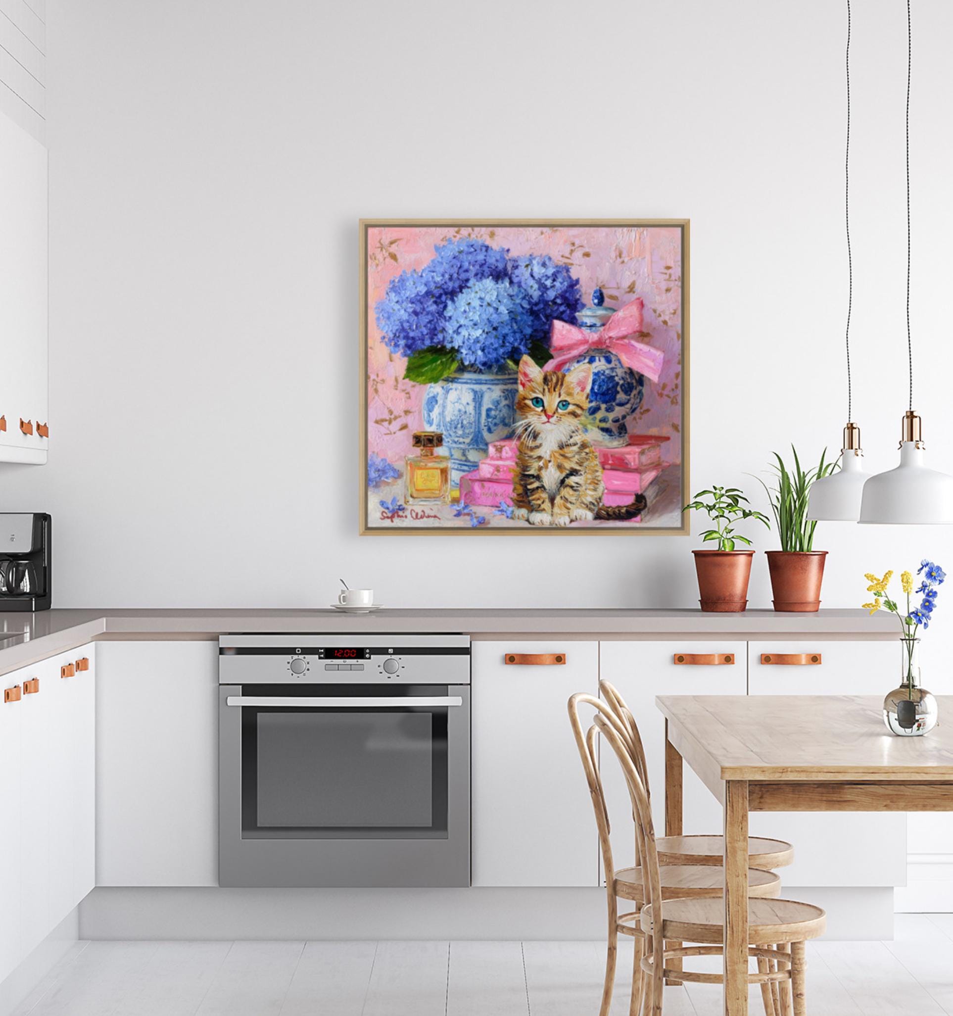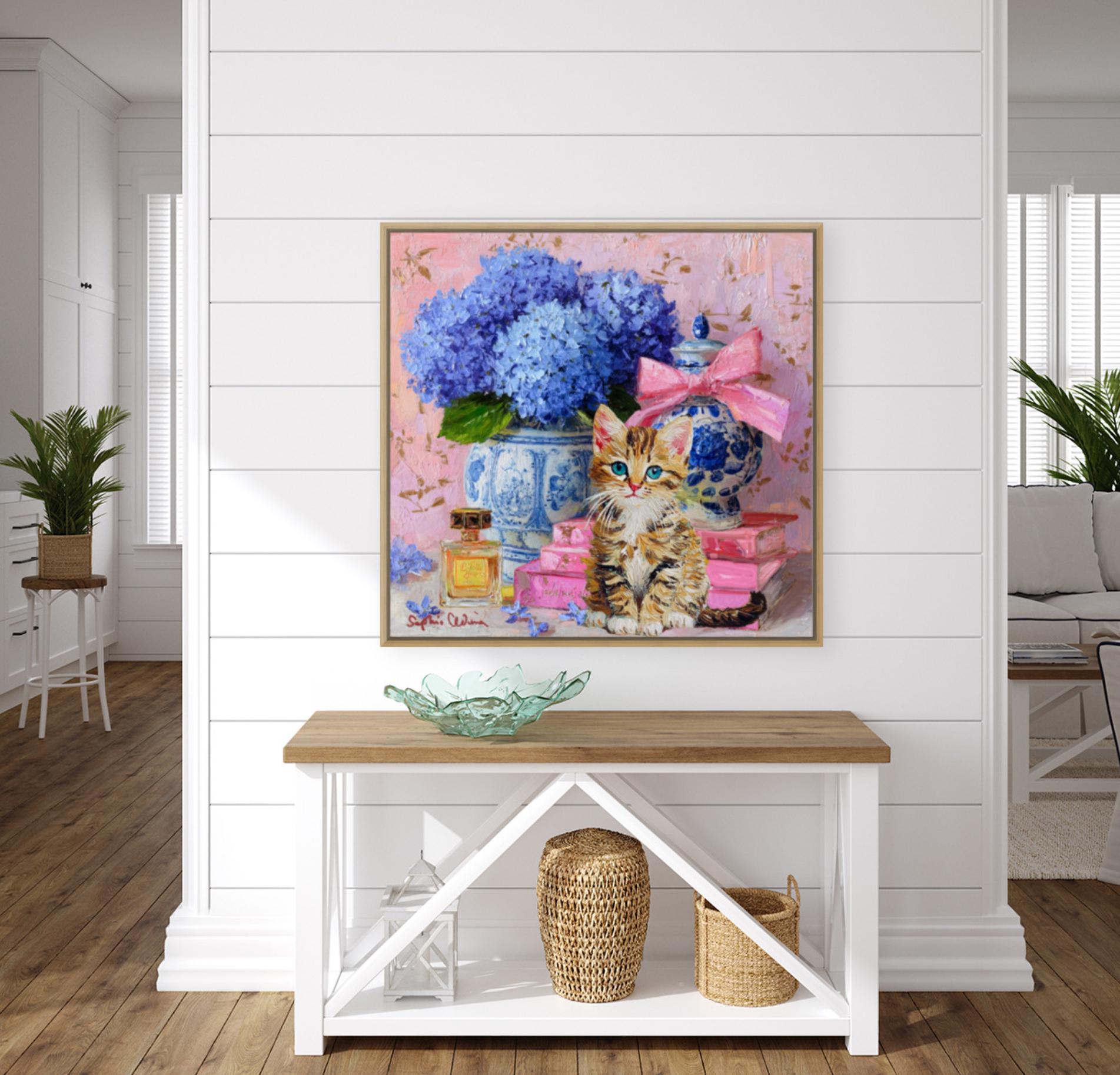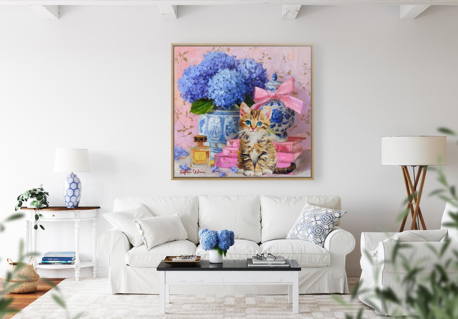 Whimsical Siberian Kitten Art Print: Grandmillennial Decor