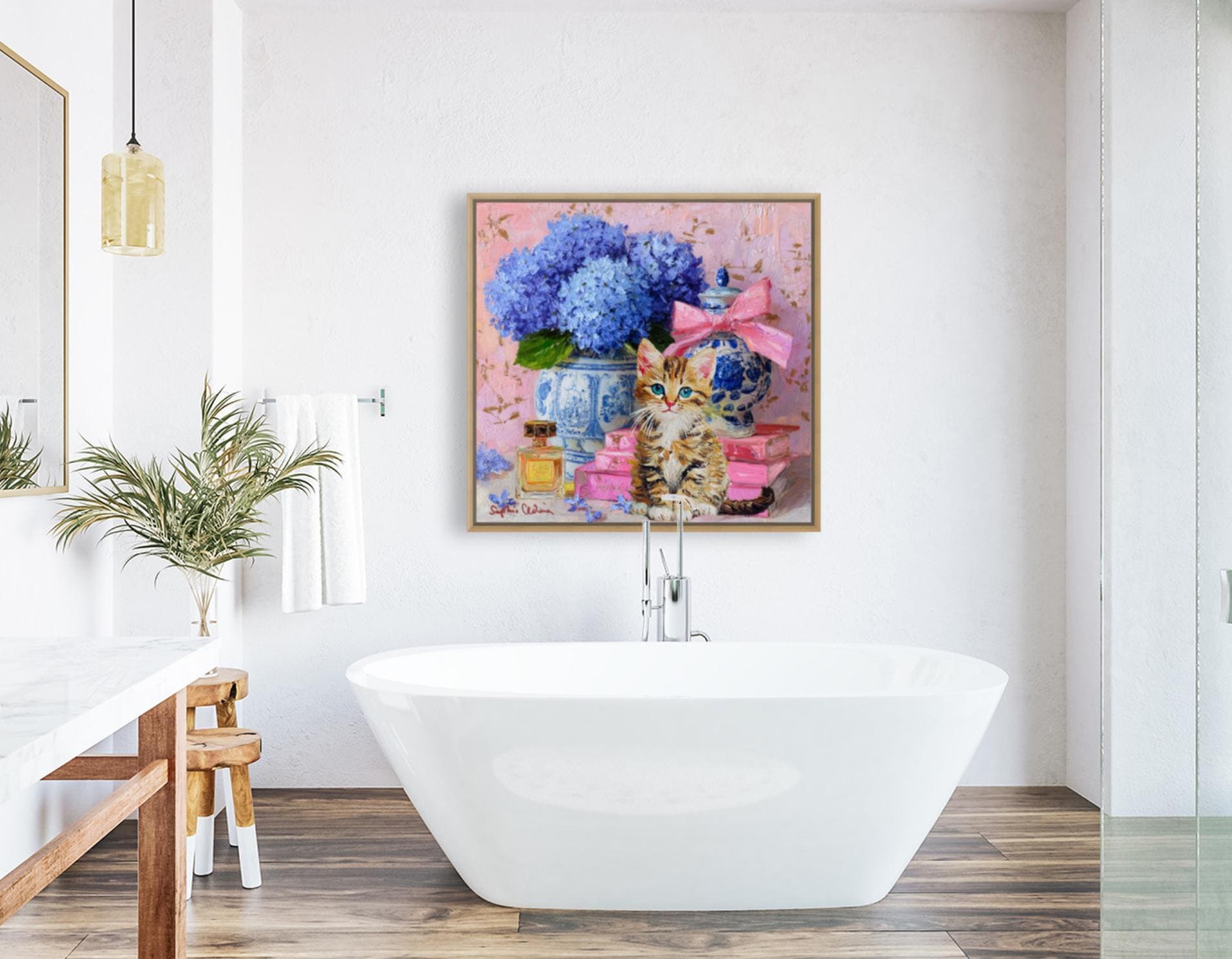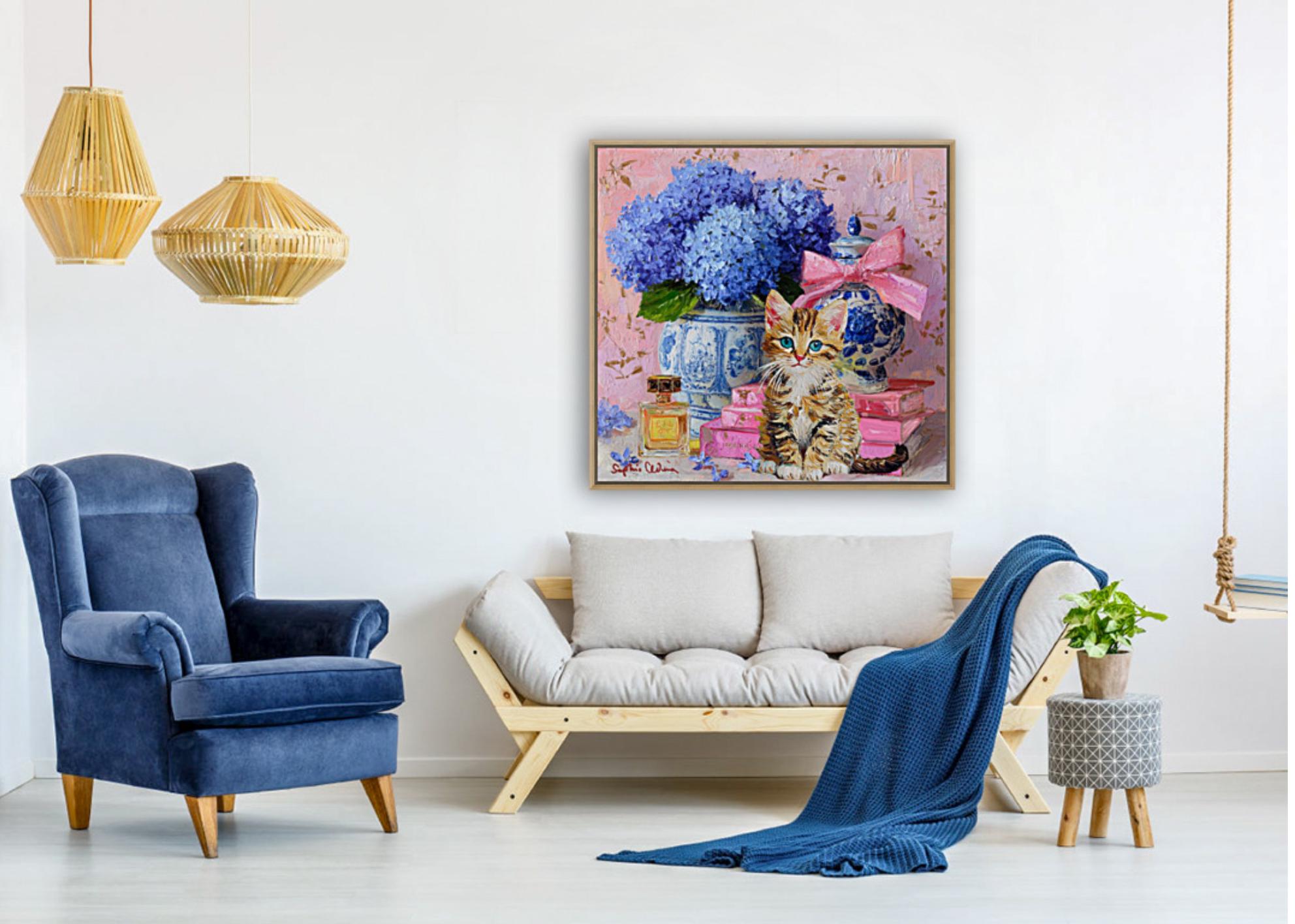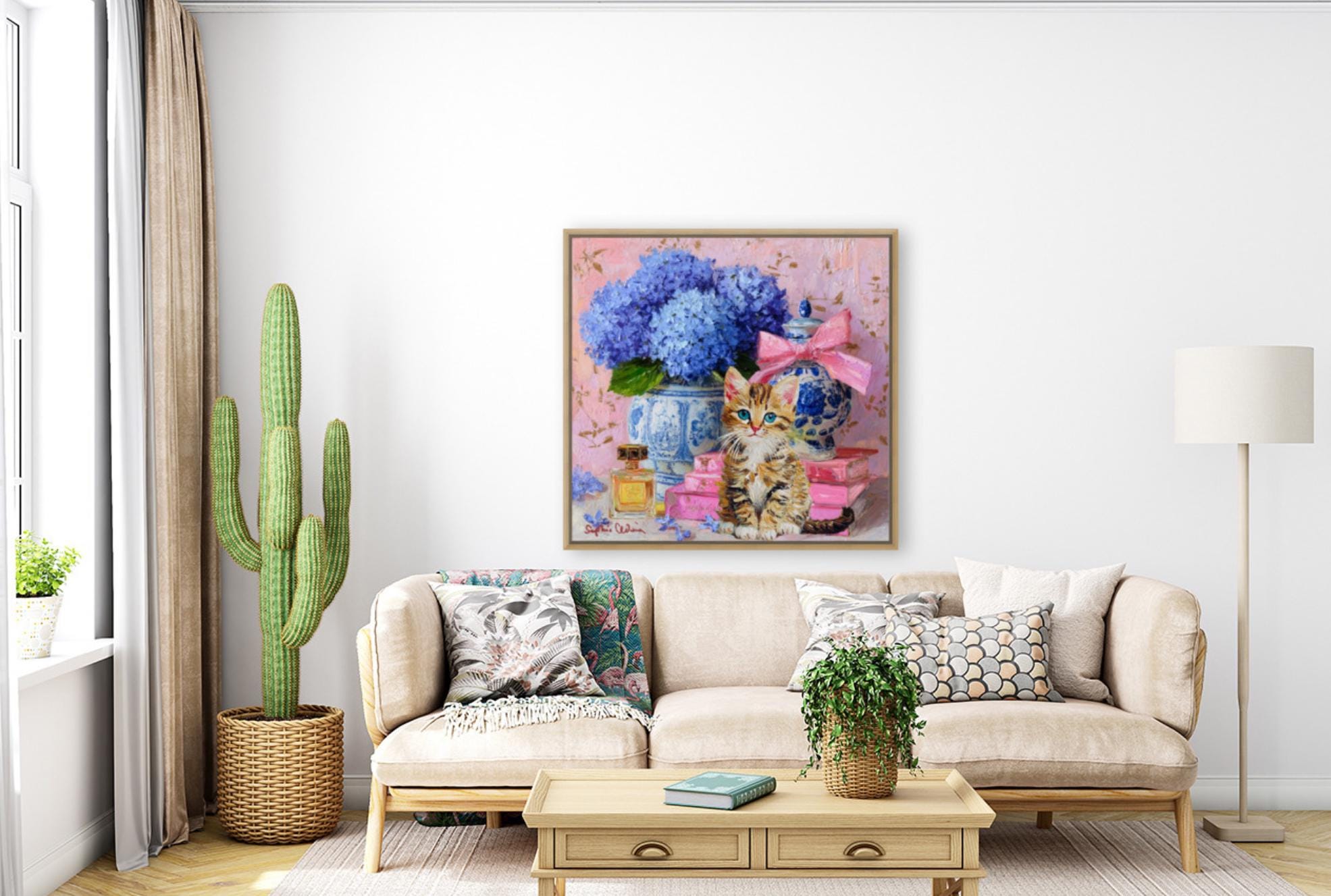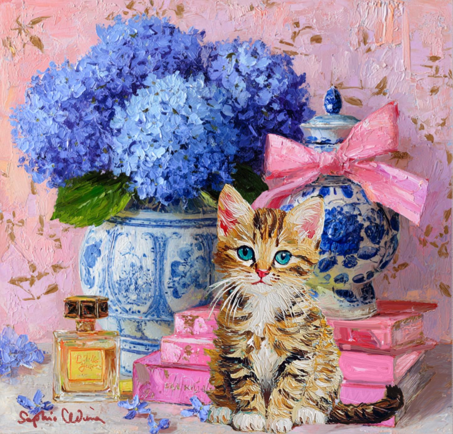 Whimsical Siberian Kitten Art Print: Grandmillennial Decor