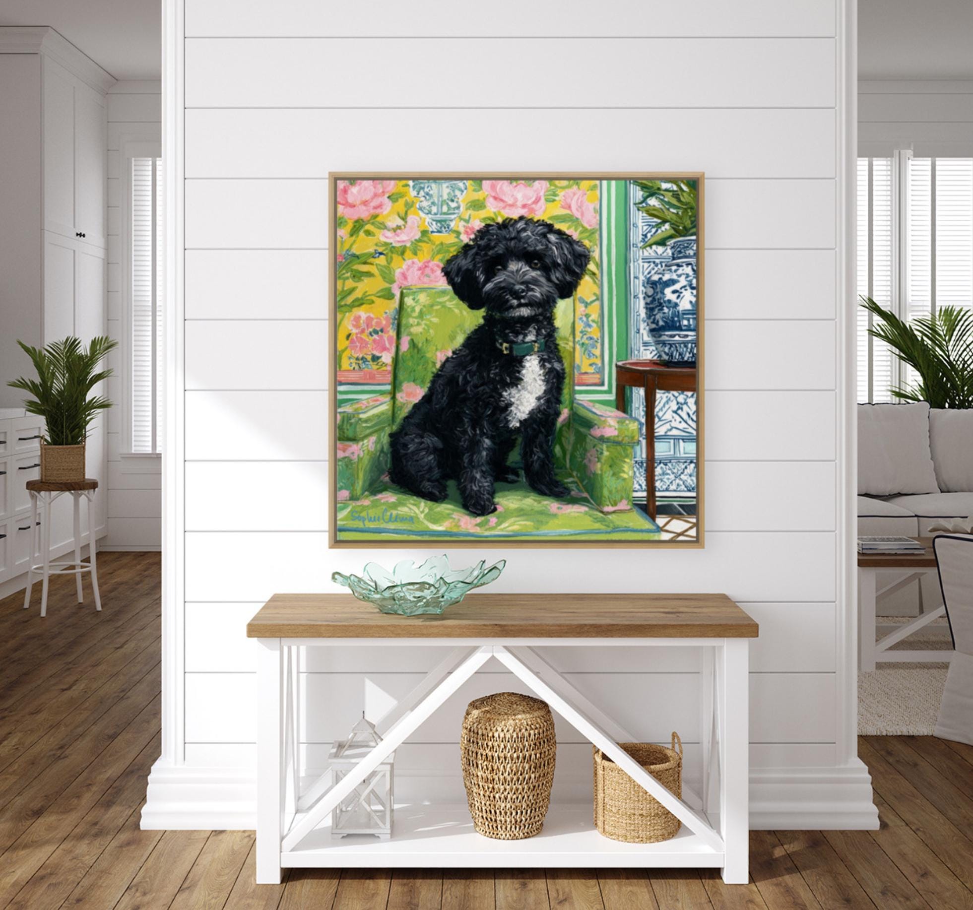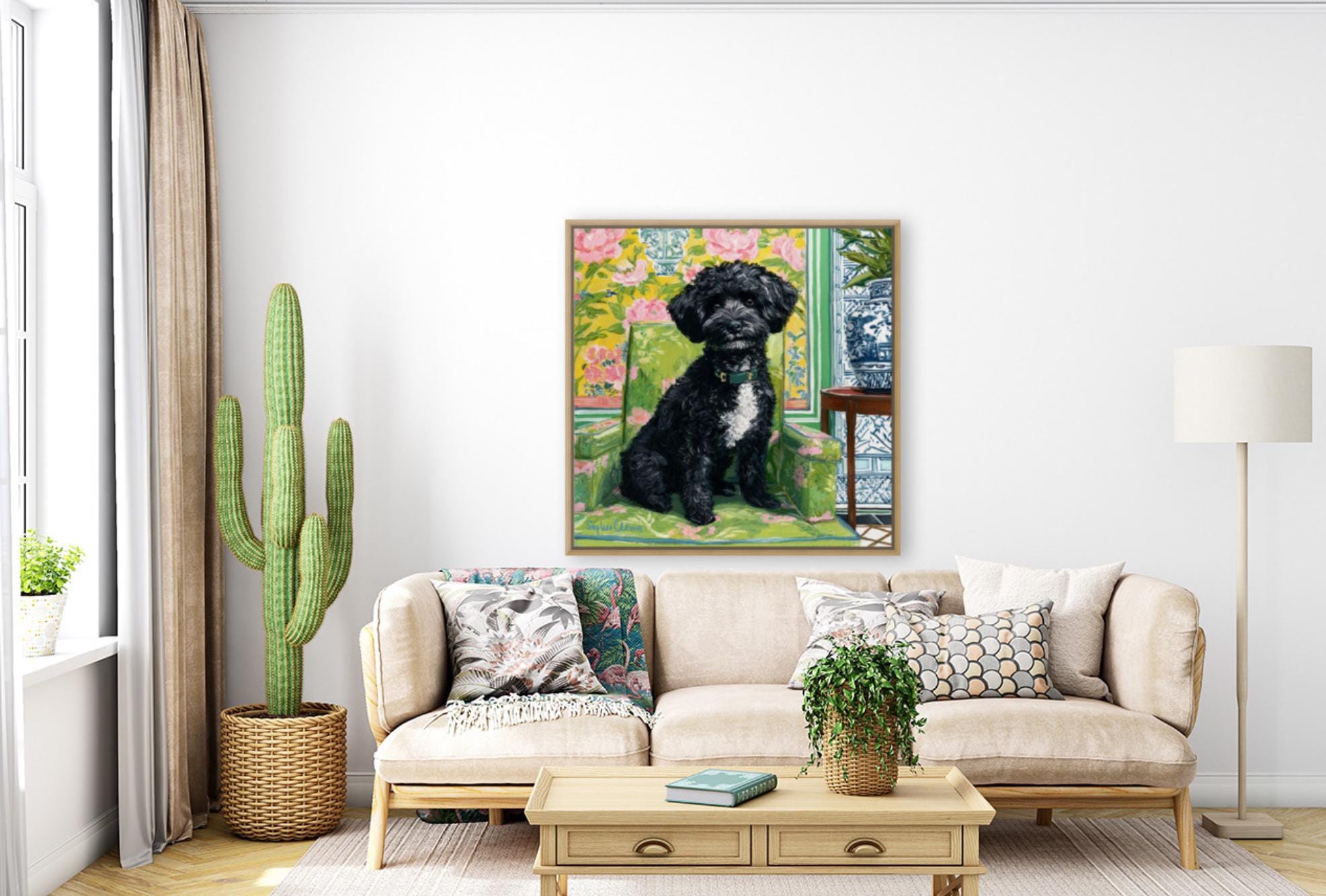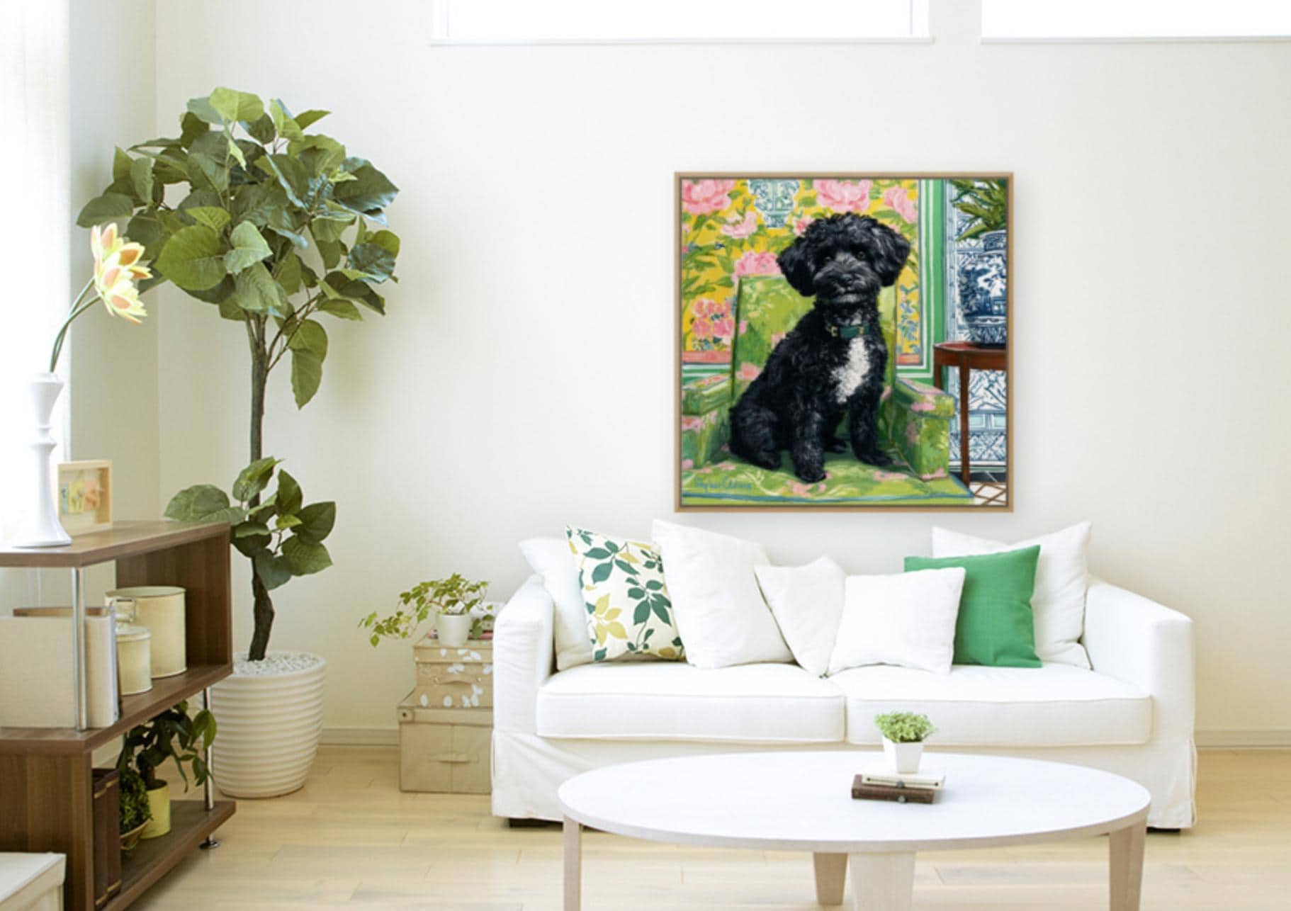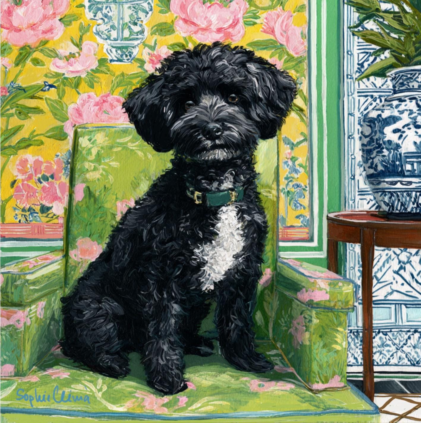 Cavapoo Dog in Chinoiserie Room: Watercolor Giclée Art Print