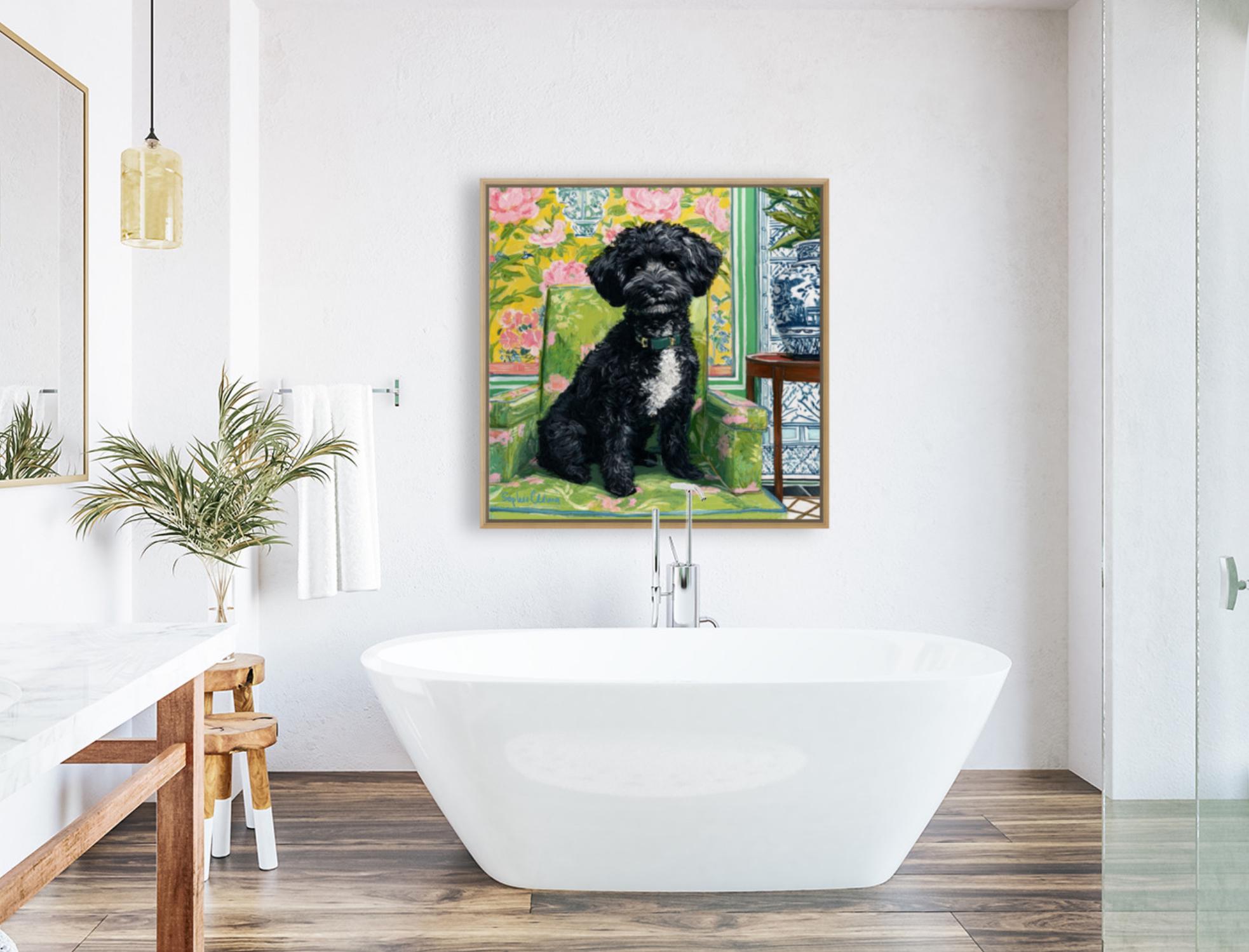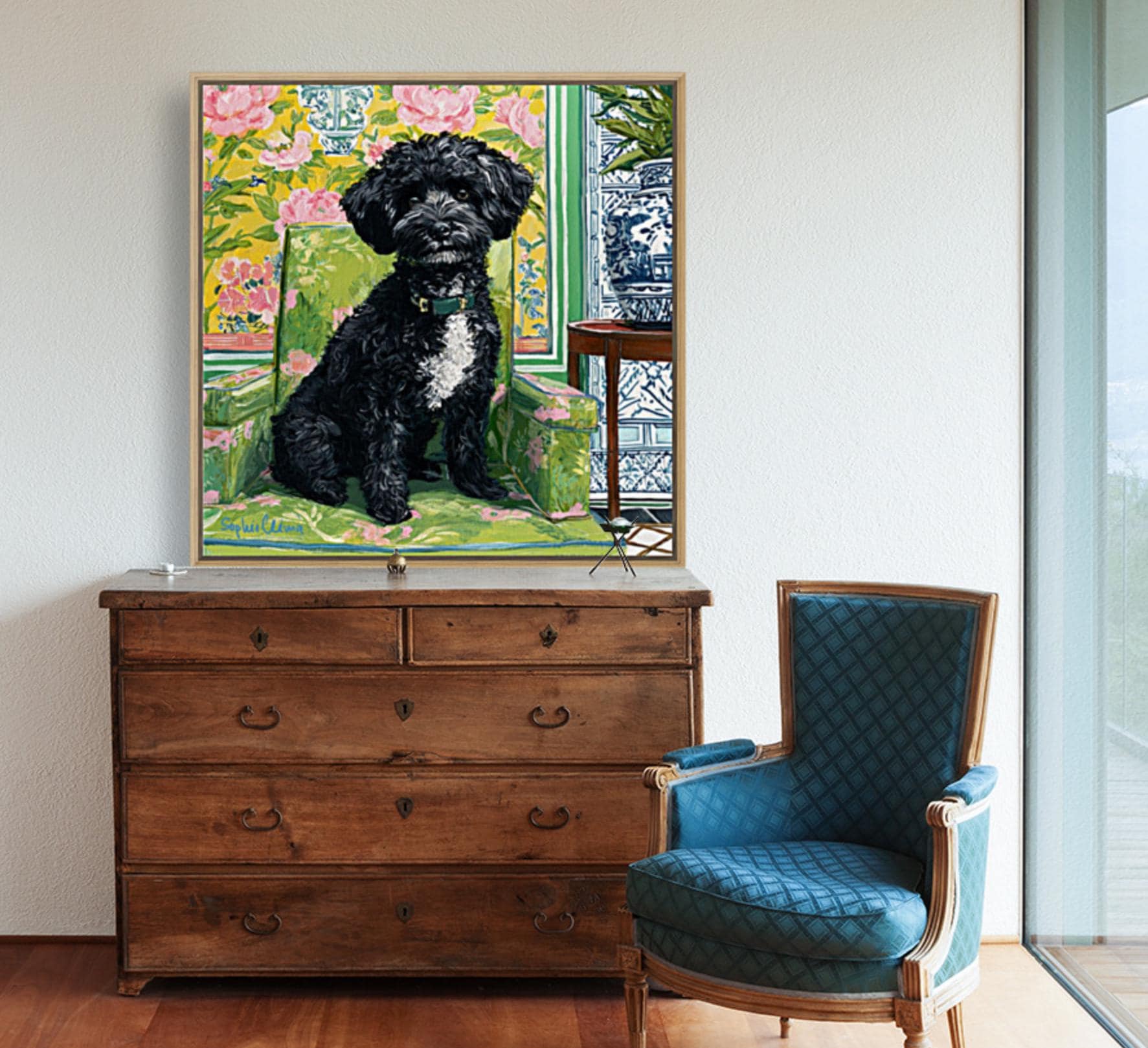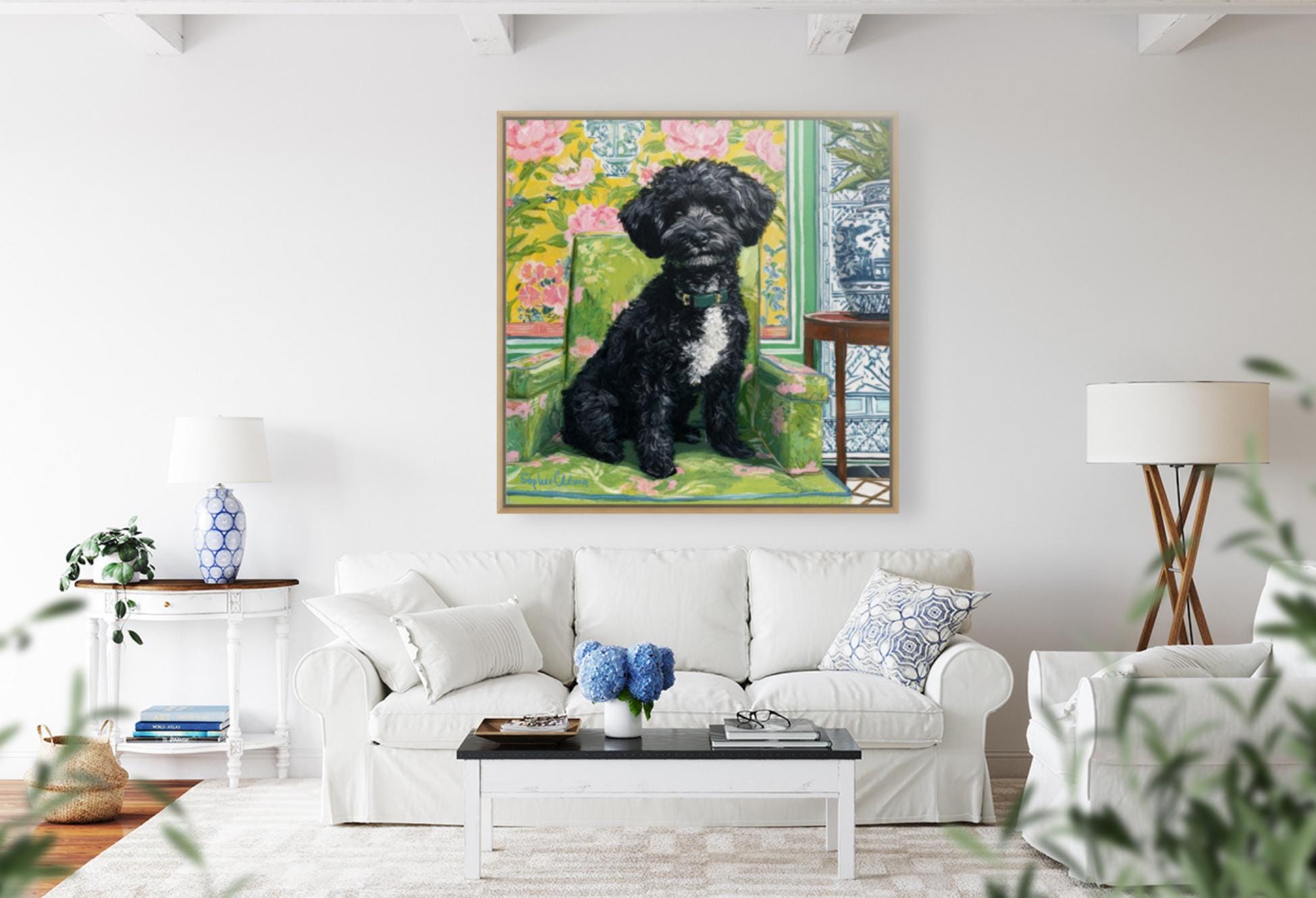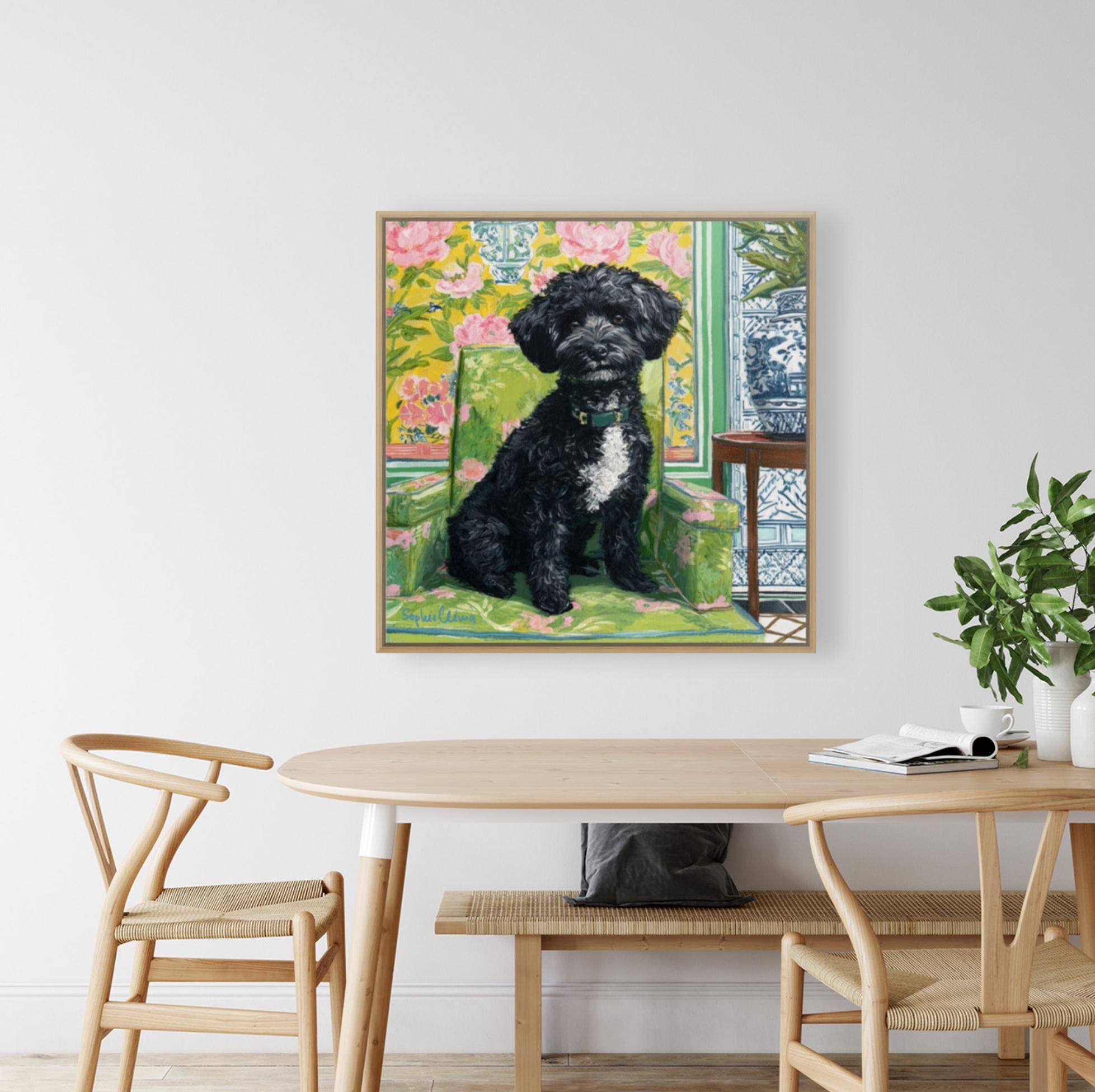Cavapoo Dog in Chinoiserie Room: Watercolor Giclée Art Print