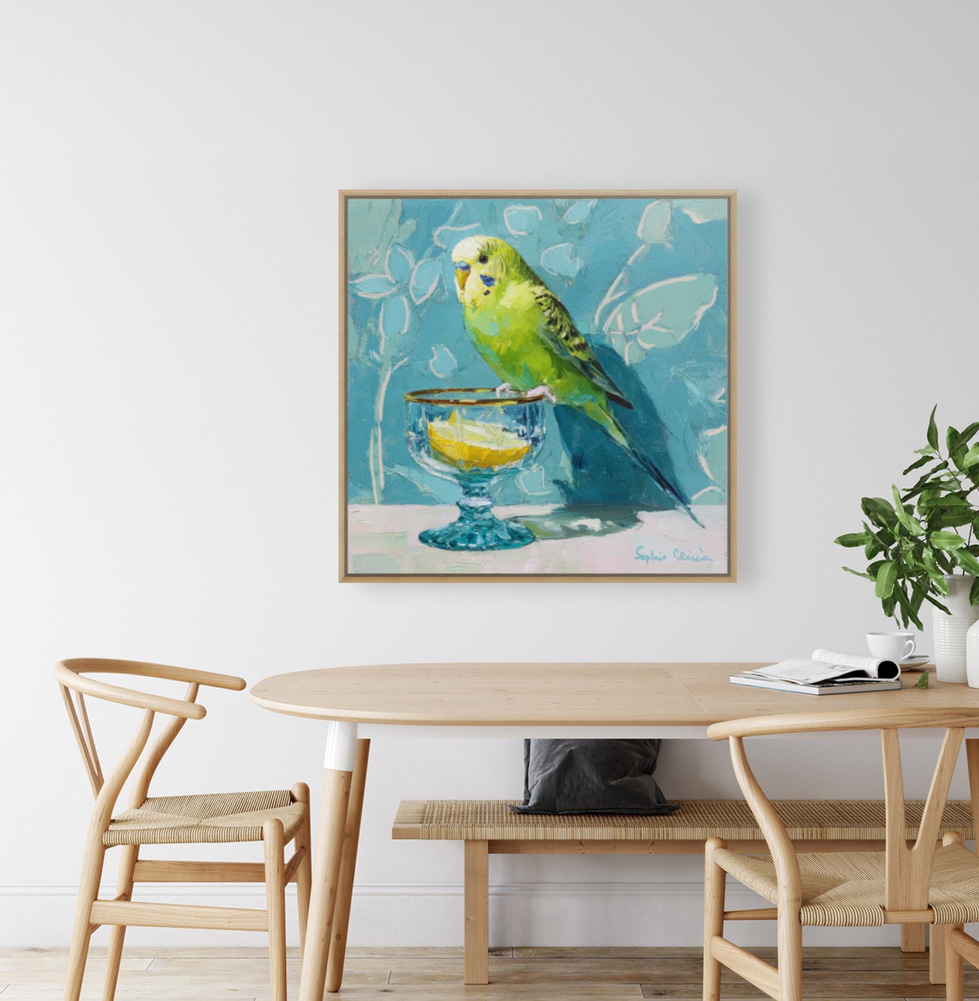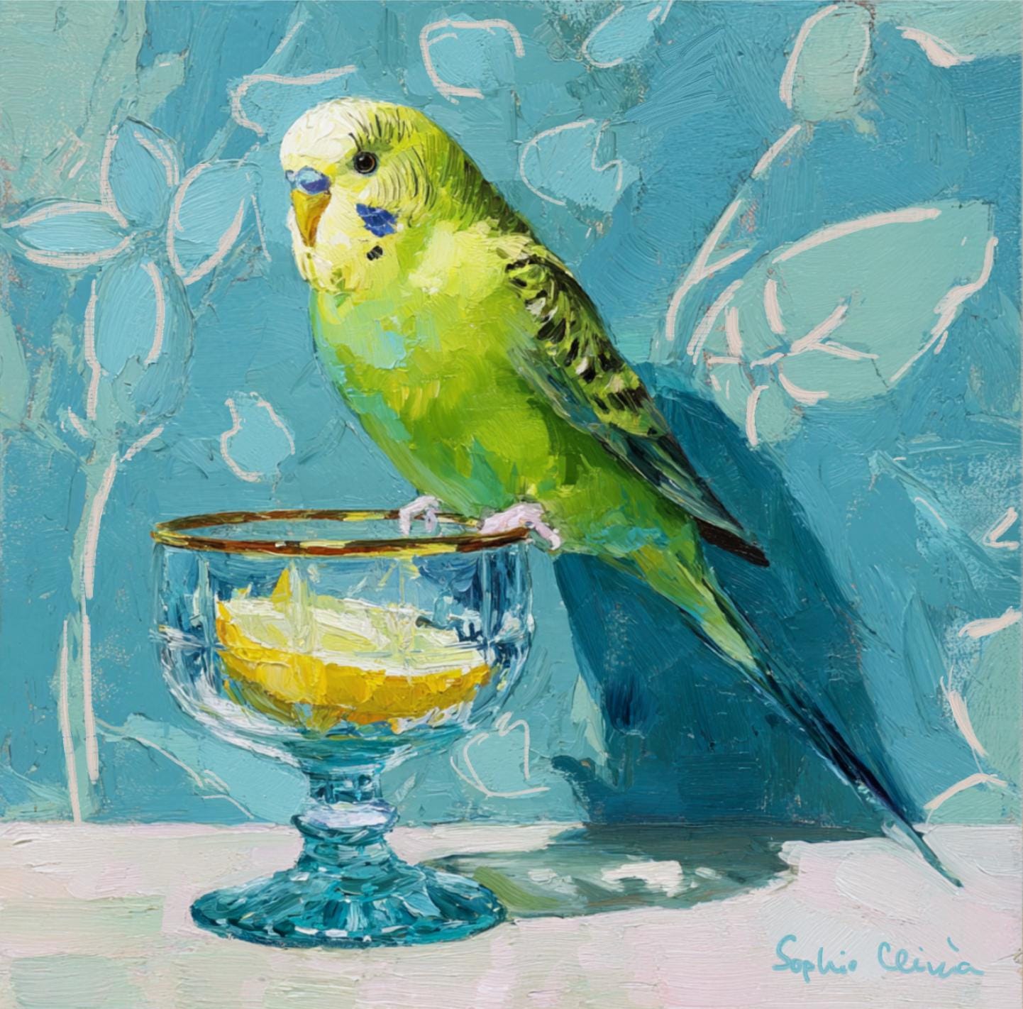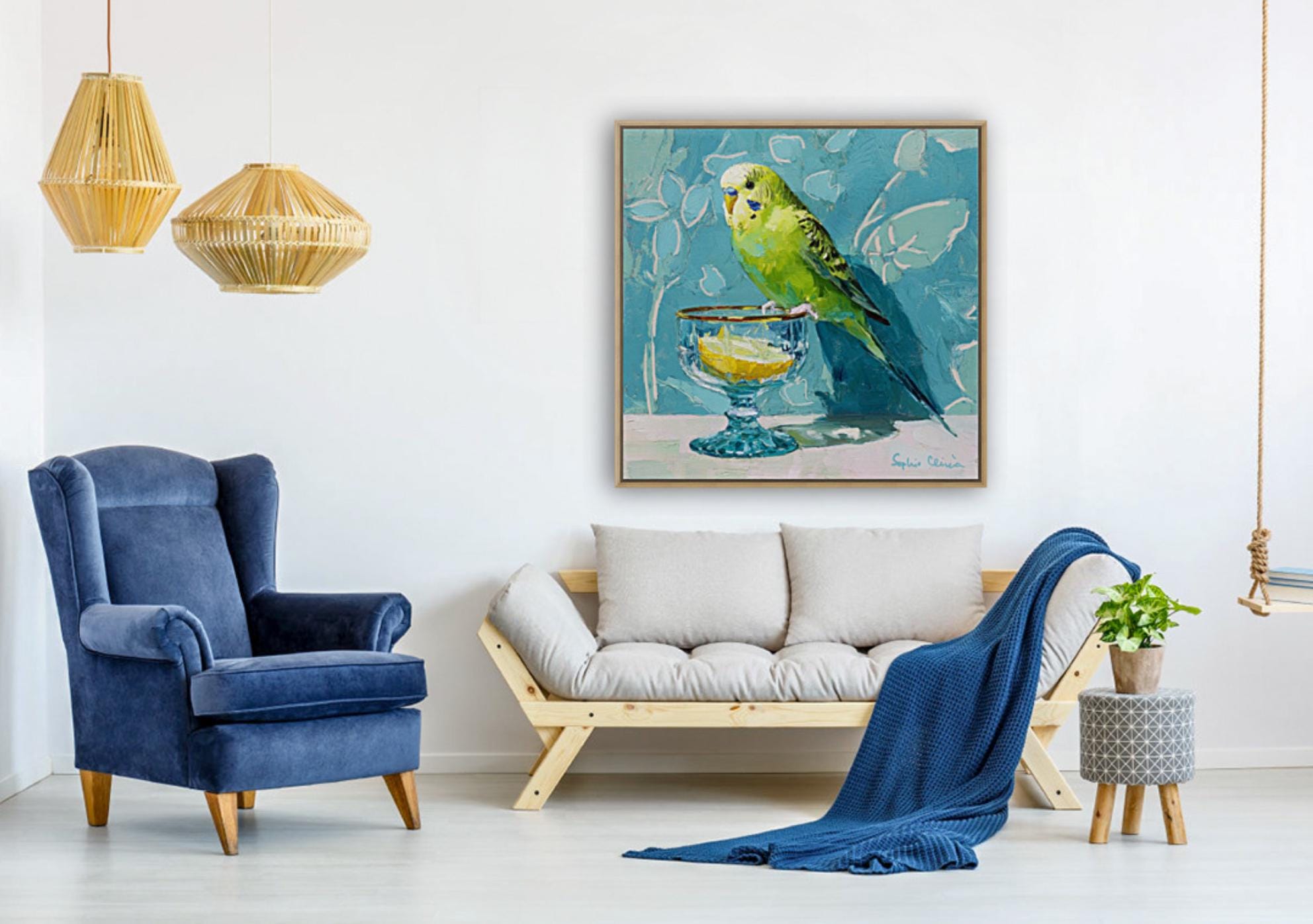 Whimsical Budgie Art Print: Gin & Tonic, Grandmillennial Decor