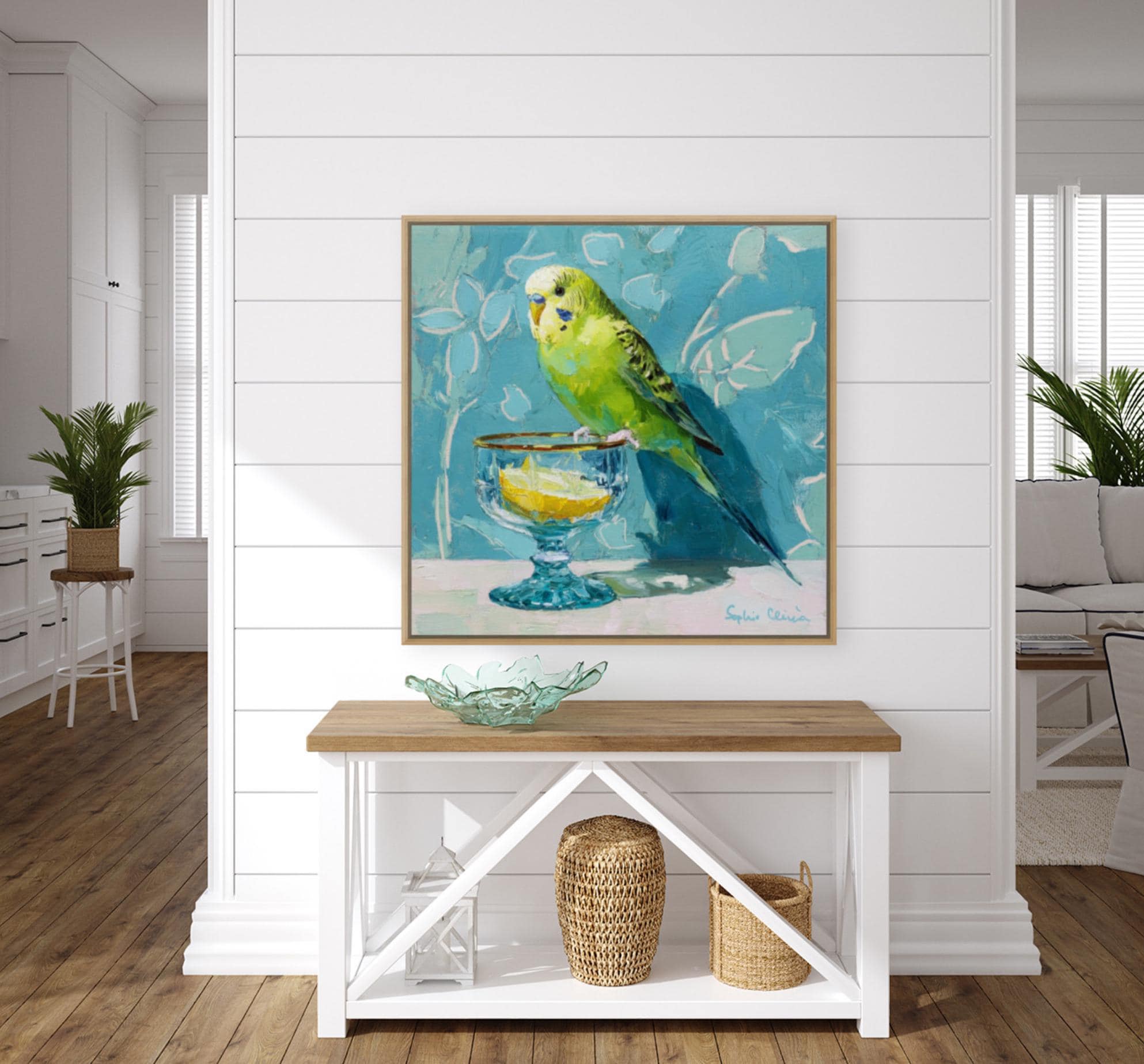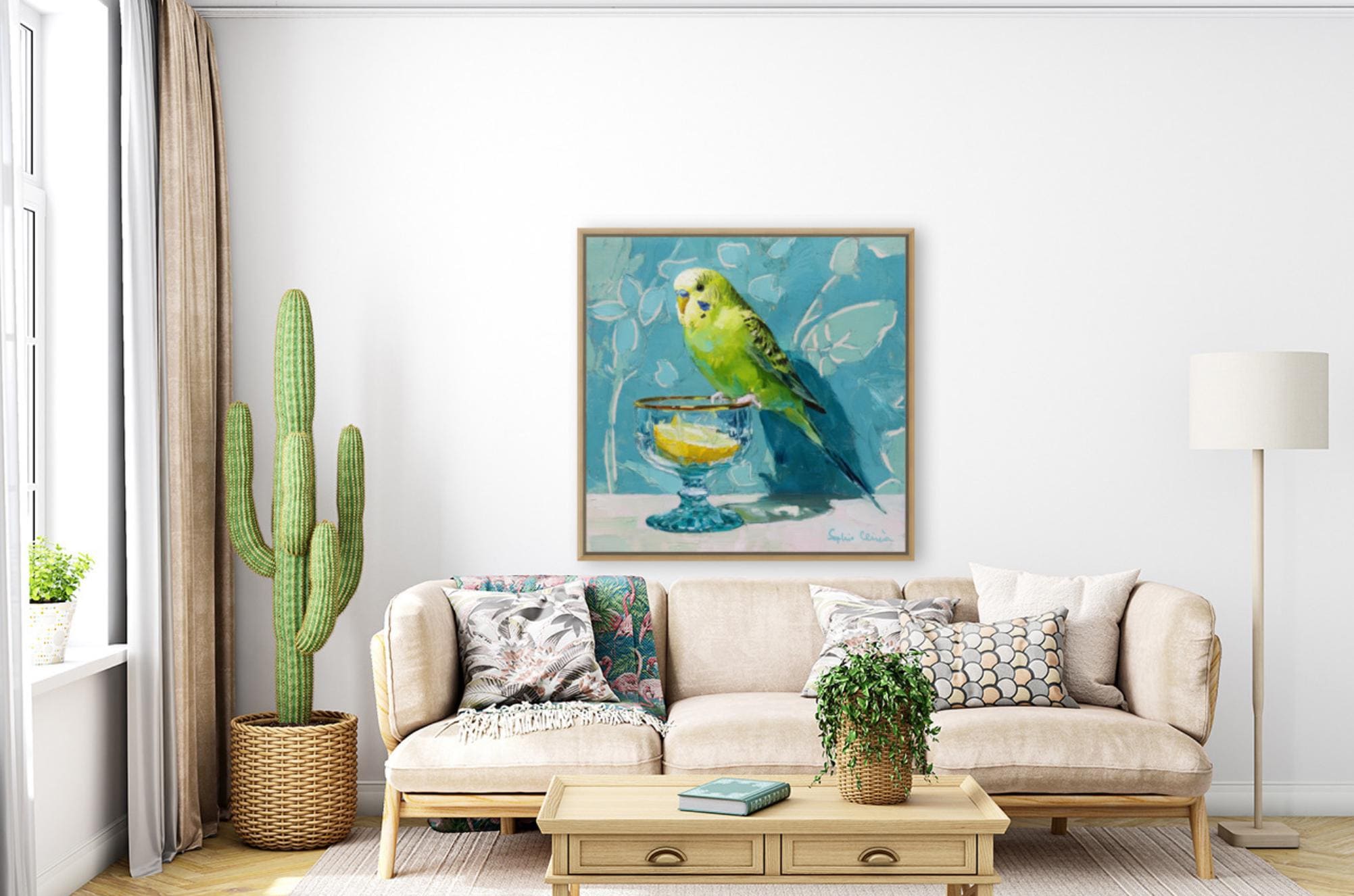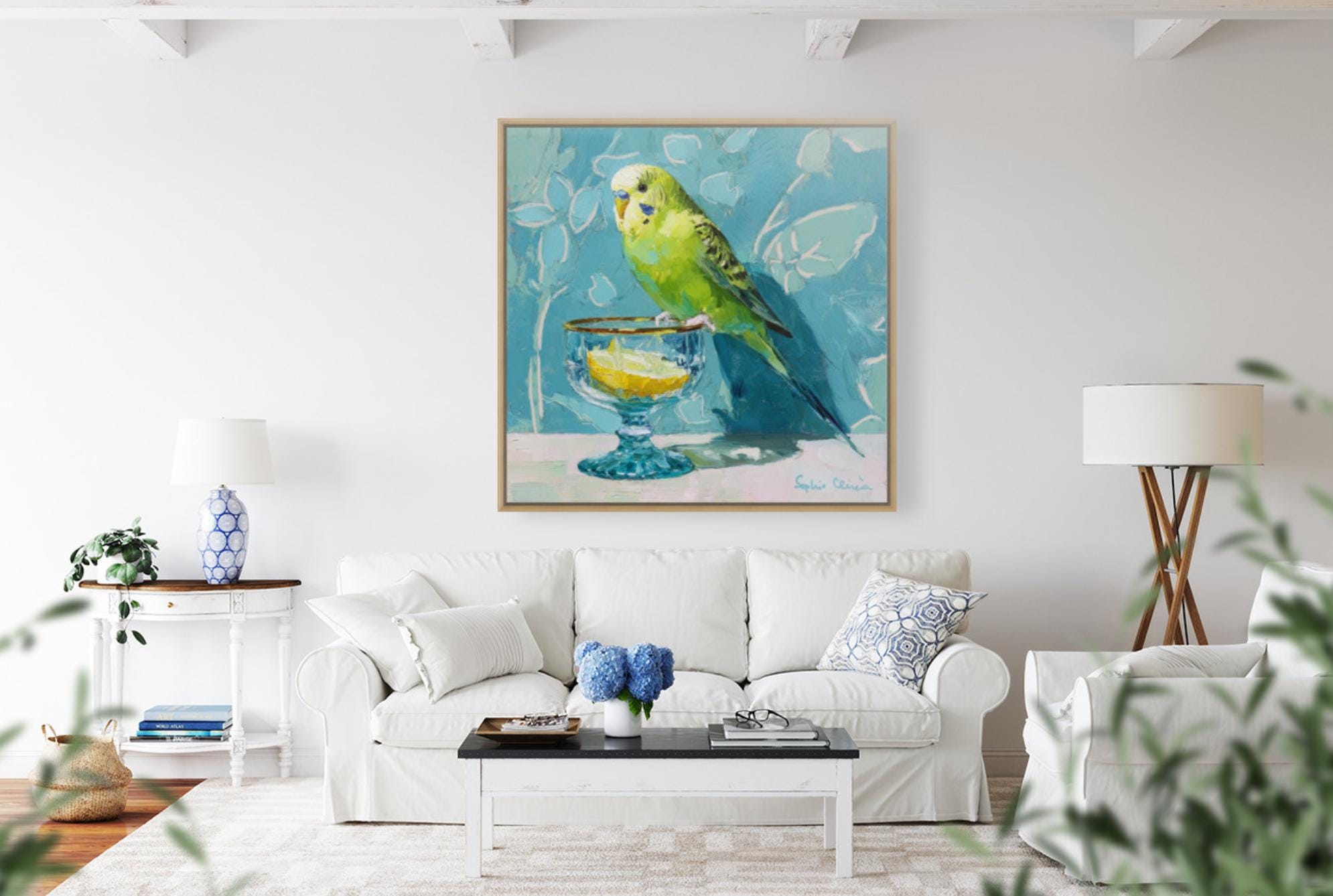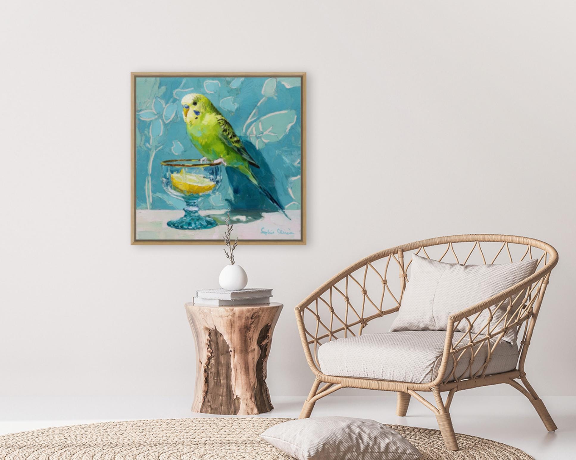 Whimsical Budgie Art Print: Gin & Tonic, Grandmillennial Decor