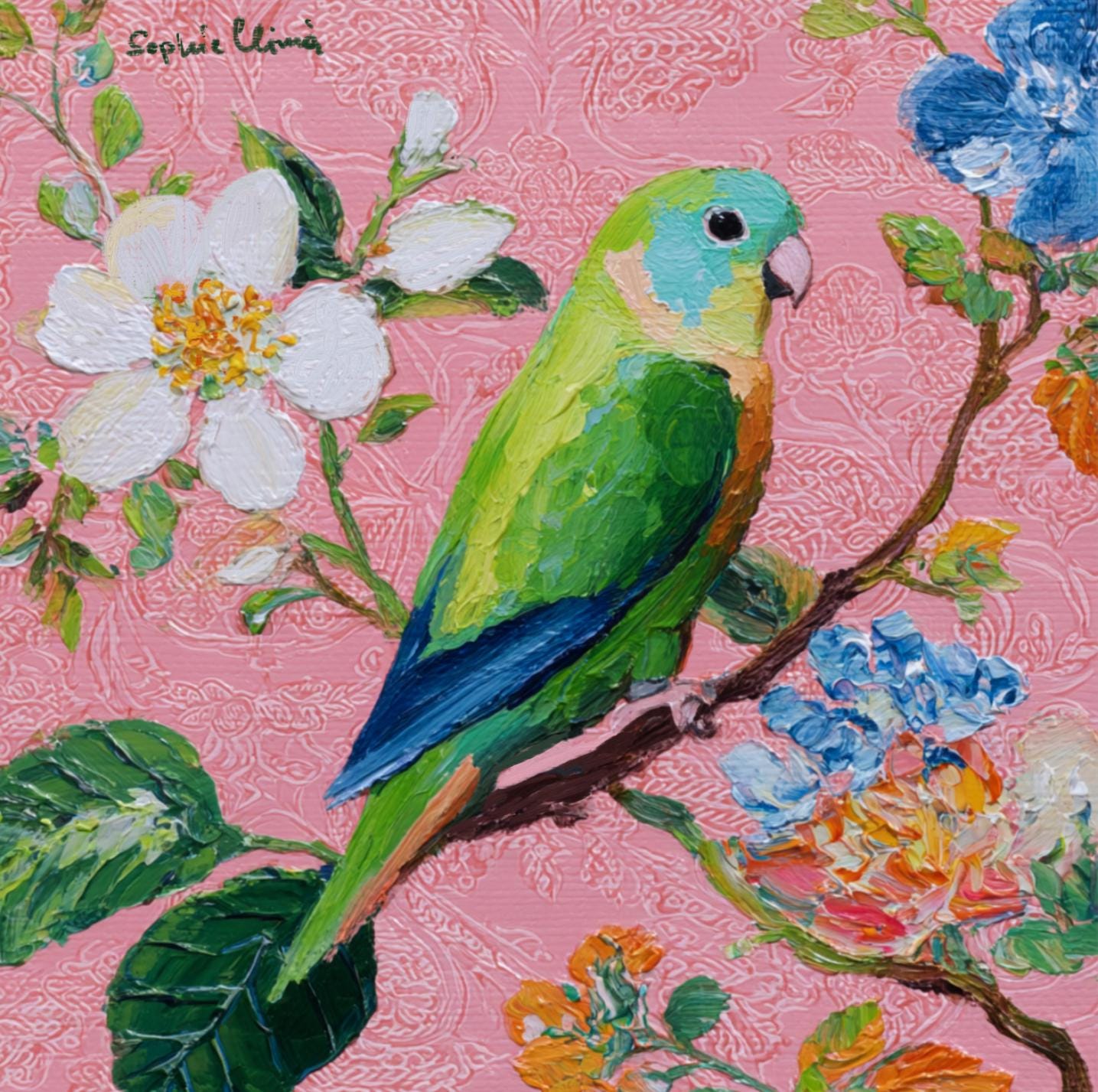 PLEASE NOTE SIZES ARE IN CM. Limited edition Giclee art print of original watercolor by Sophie Clima. #3 painting from Birds and Flowers series. Unframed. Ships in a tube. Each print is signed and dated by Sophie. These watercolor chinoiserie prints will complement your Grandmillennial Style, Chinoiserie Chic Style, Grandmillennial Decor, or Preppy Chic Style Decor. Will look great on Office walls as well.