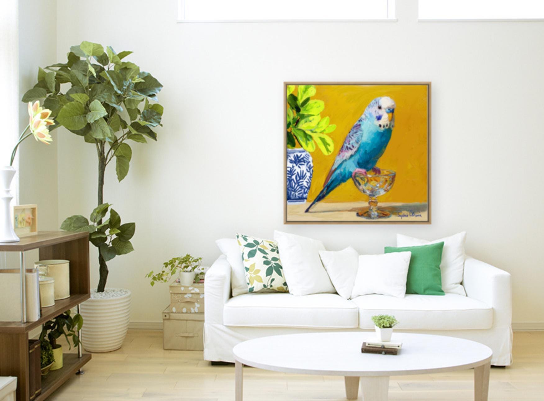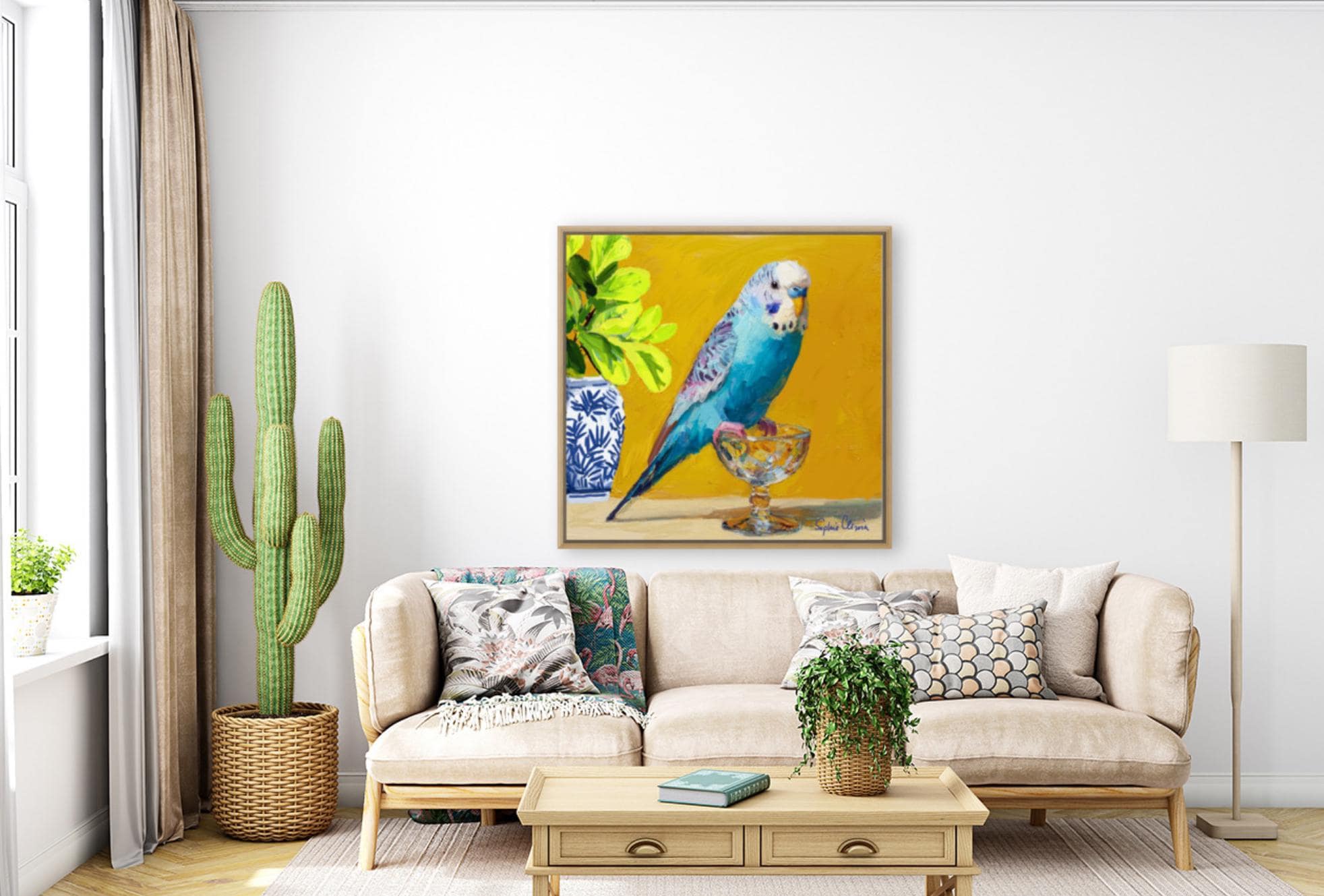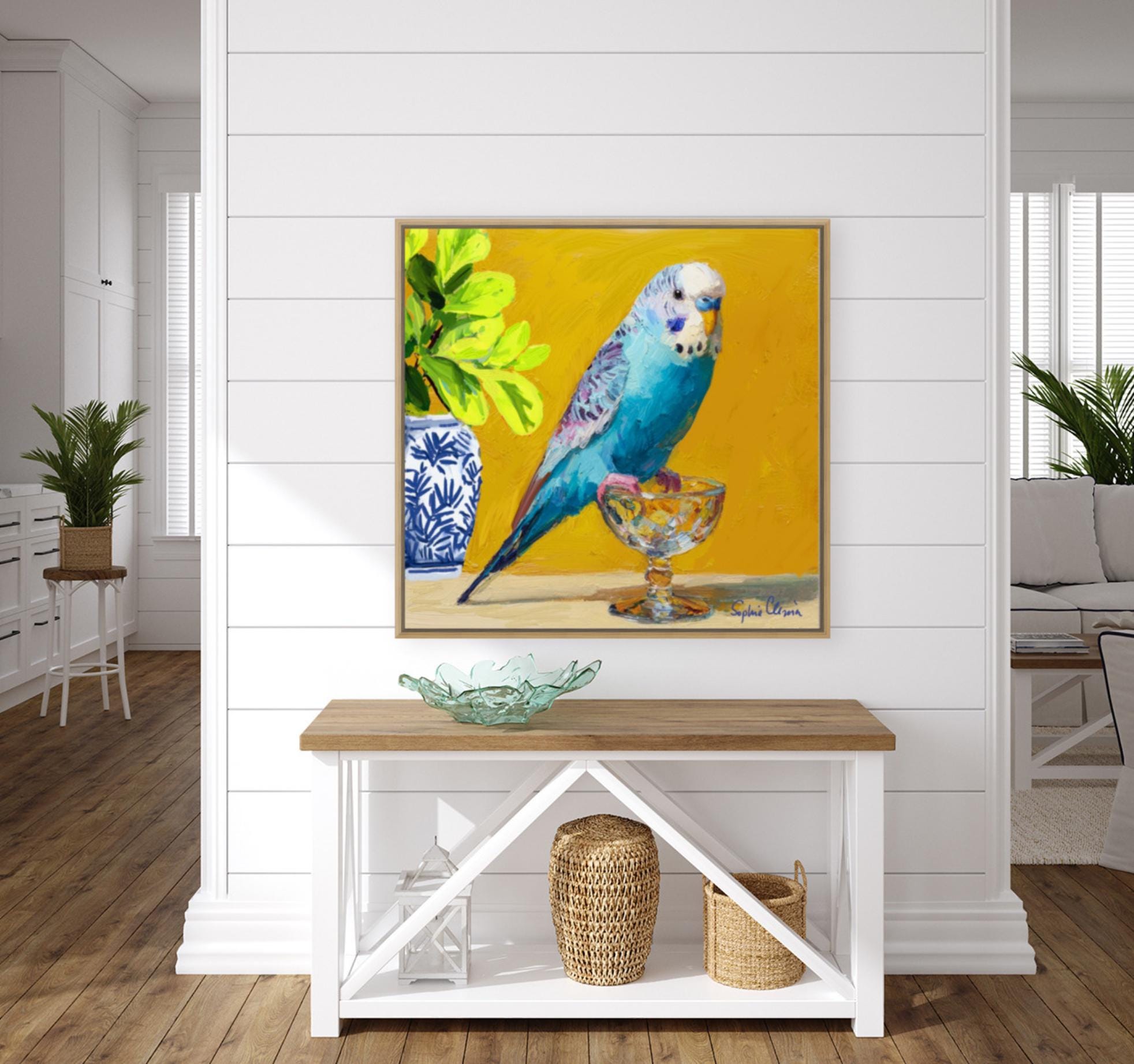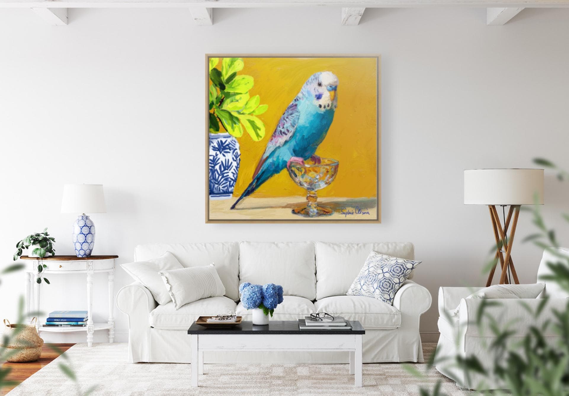 Blue Budgie Giclee Art Print: Grandmillennial Chinoiserie Decor
