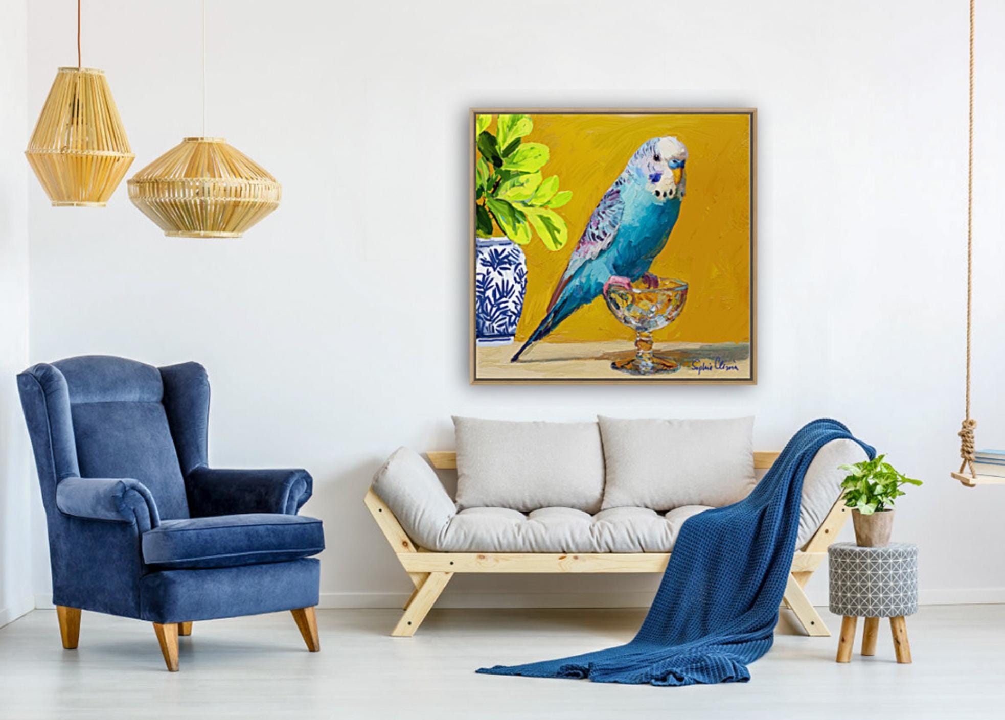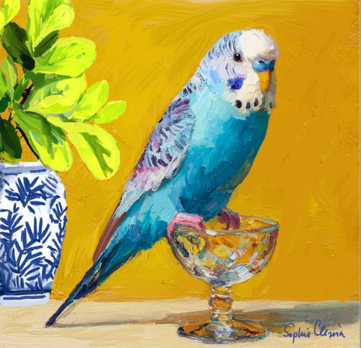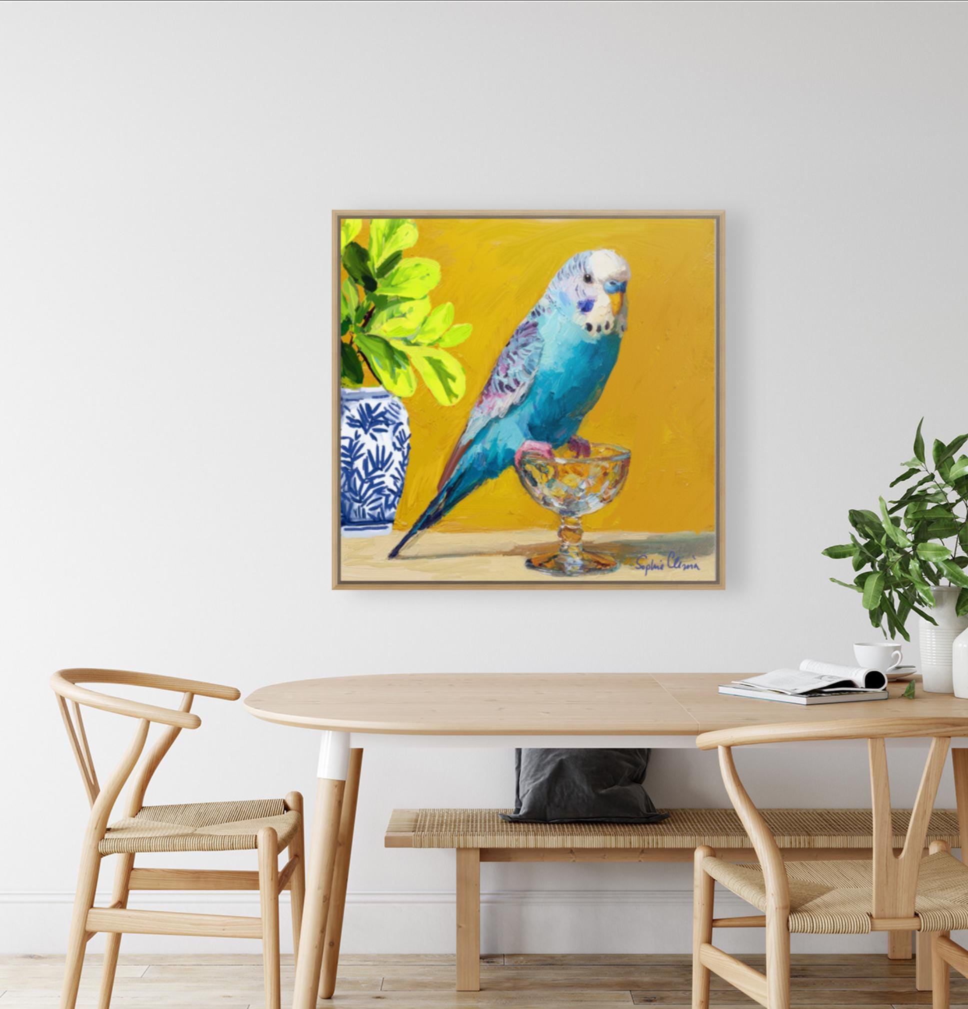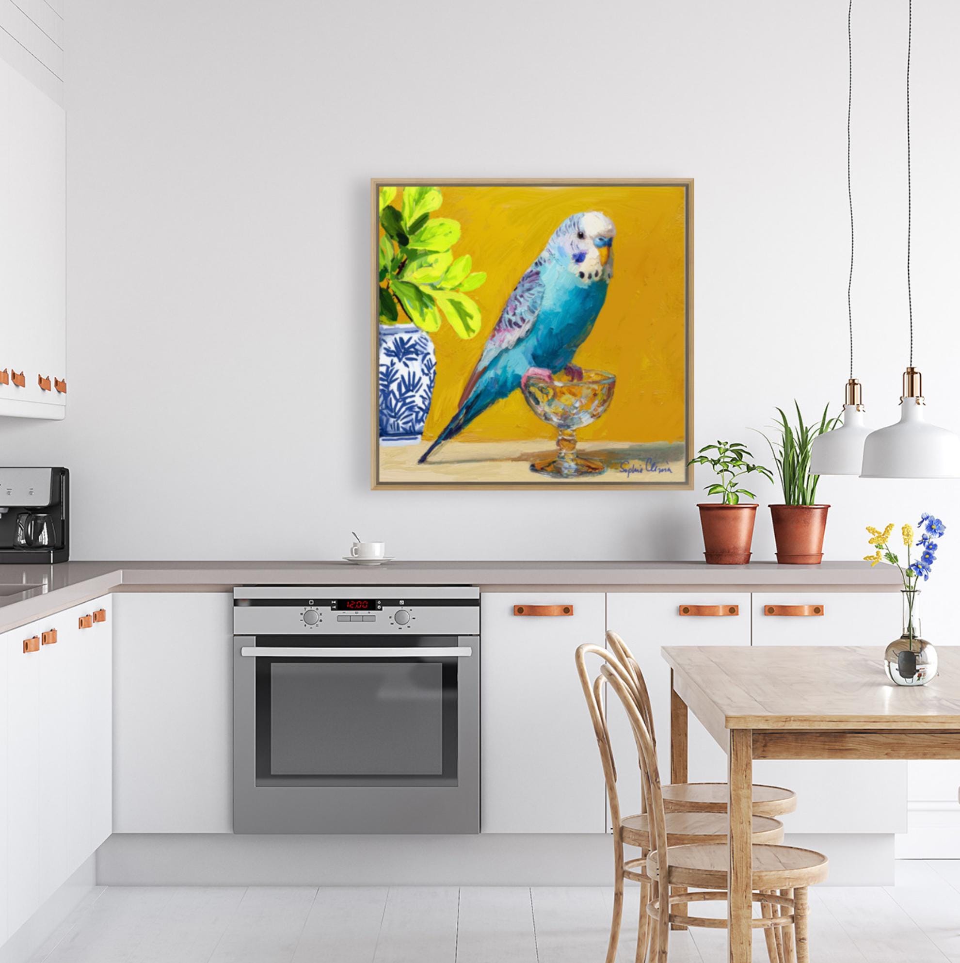 Blue Budgie Giclee Art Print: Grandmillennial Chinoiserie Decor