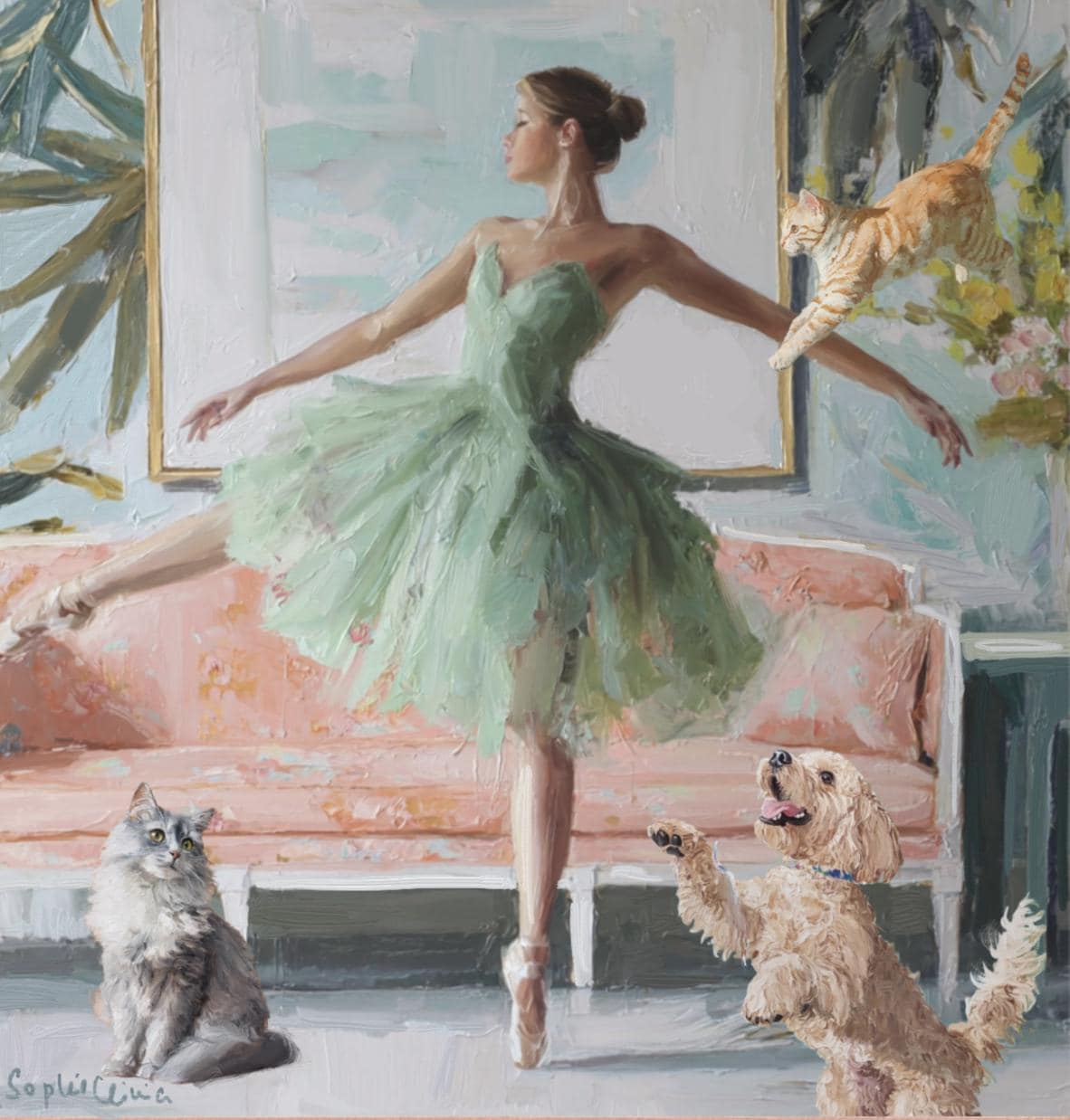 Grandmillennial art, A Ballet Practice, whimsical fine art