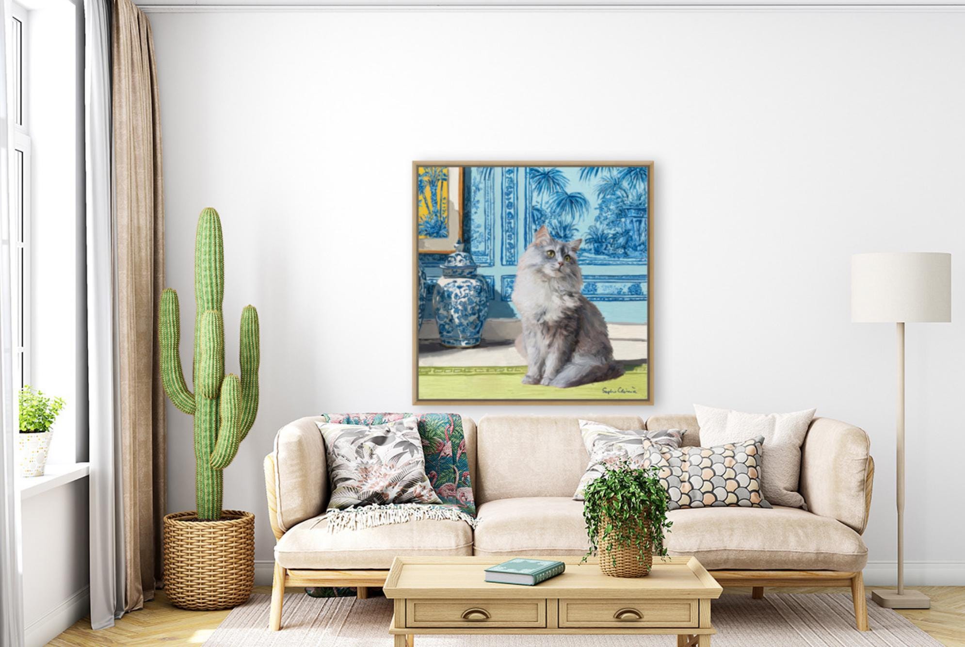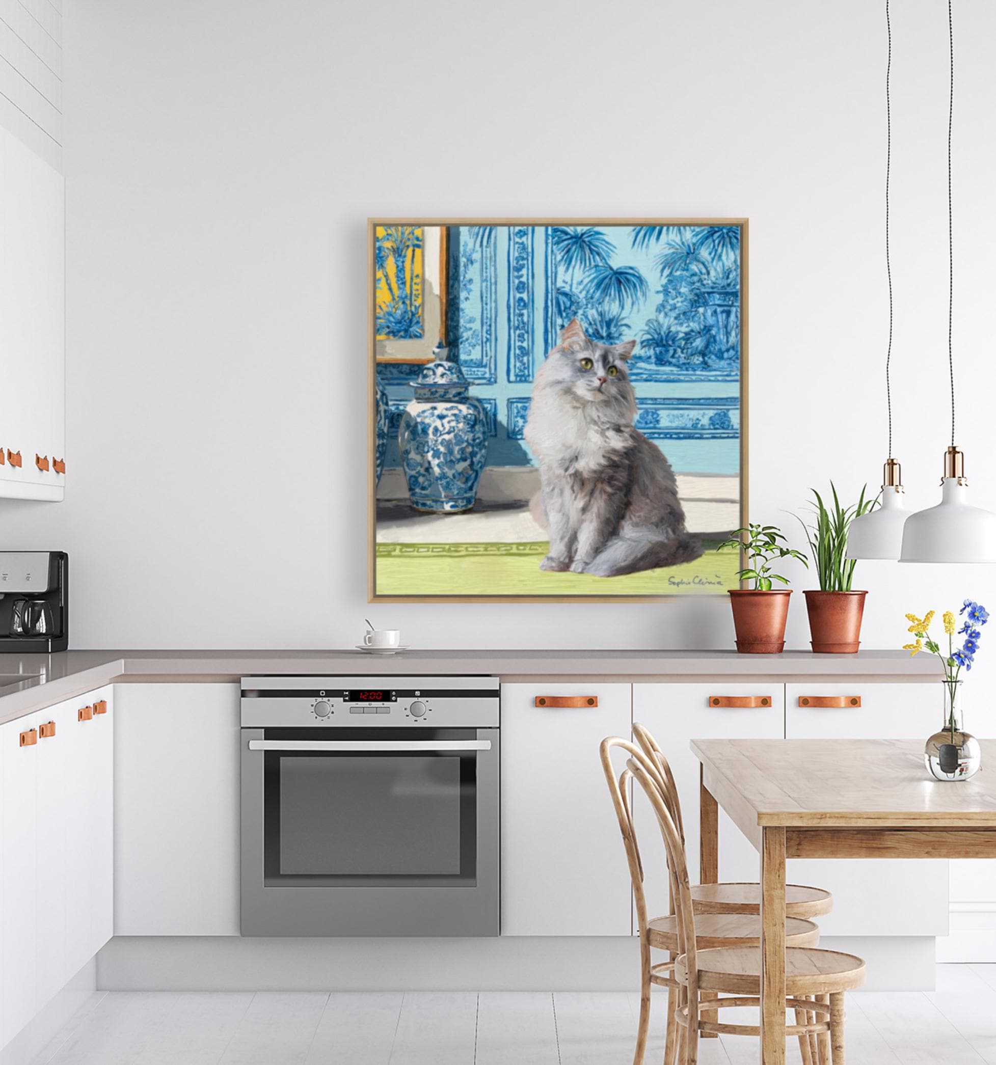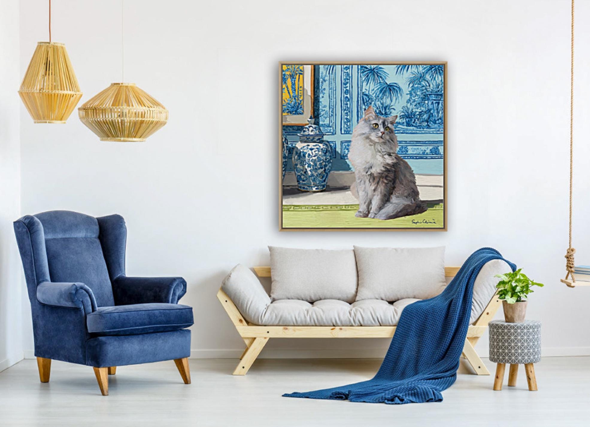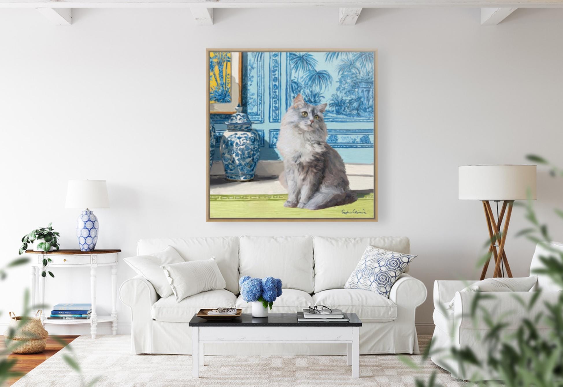 Whimsical Siberian Cat Art Print: Grandmillennial Blue Interior