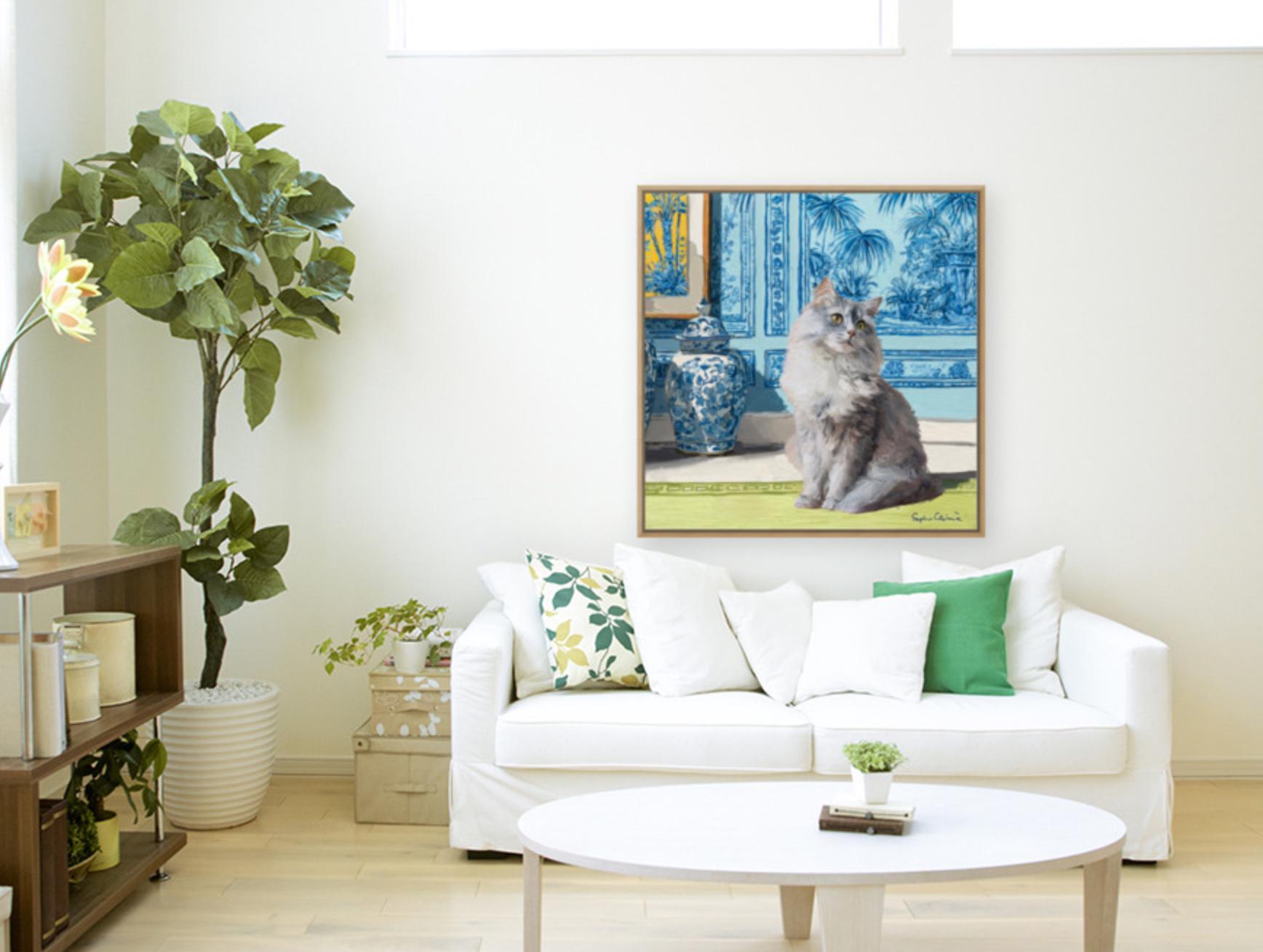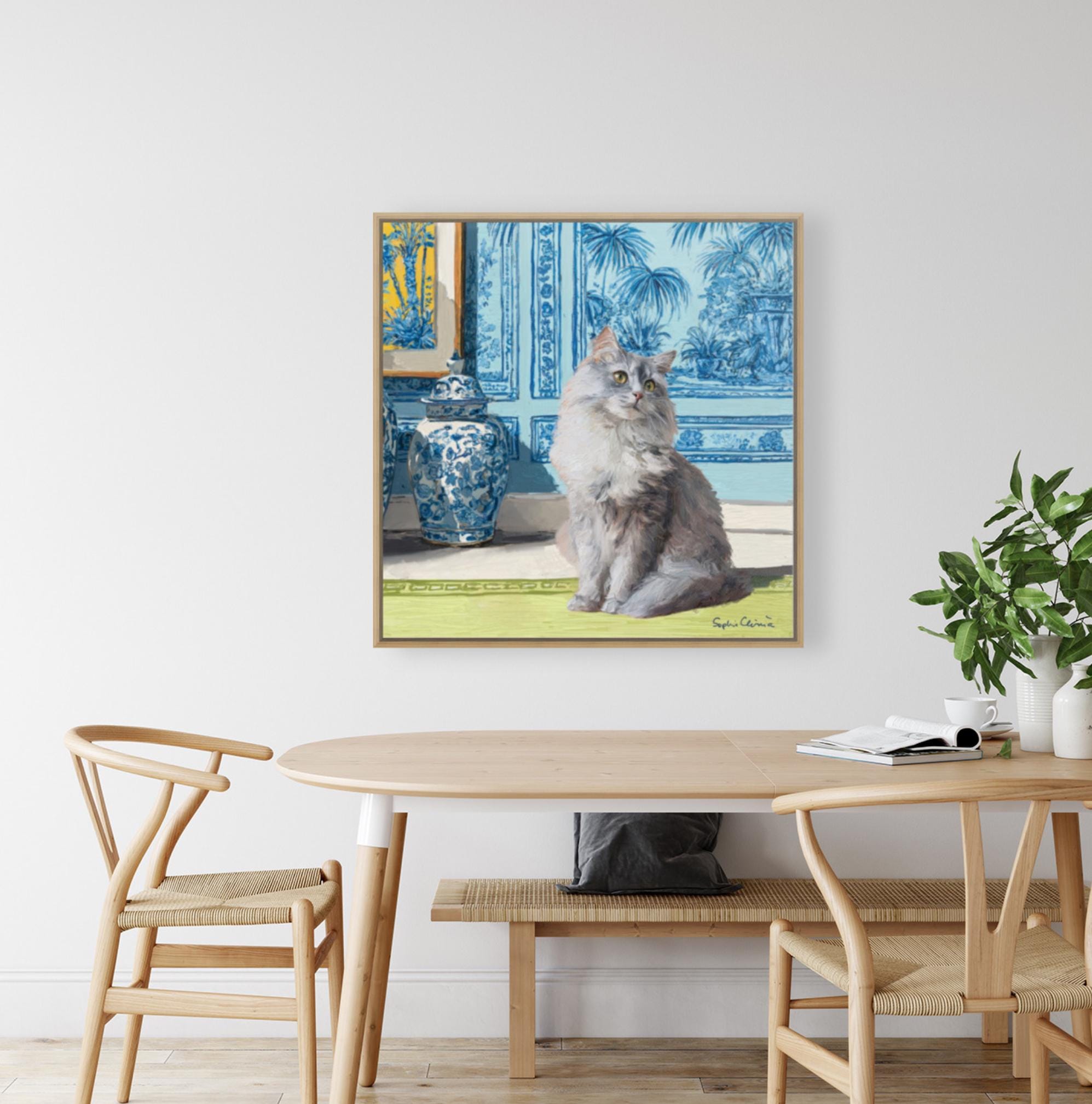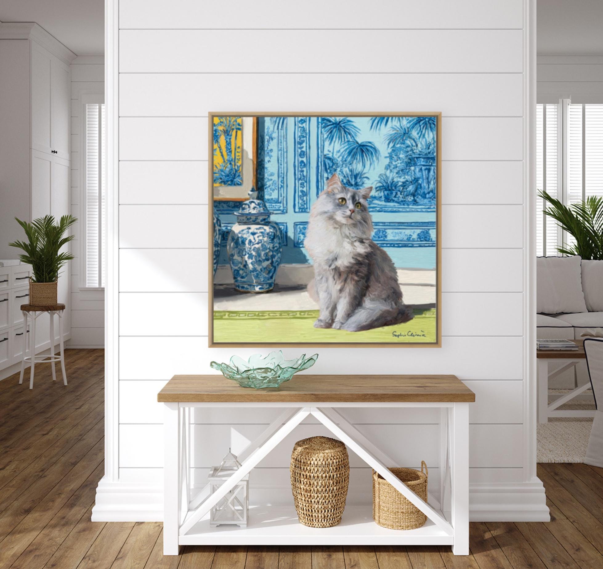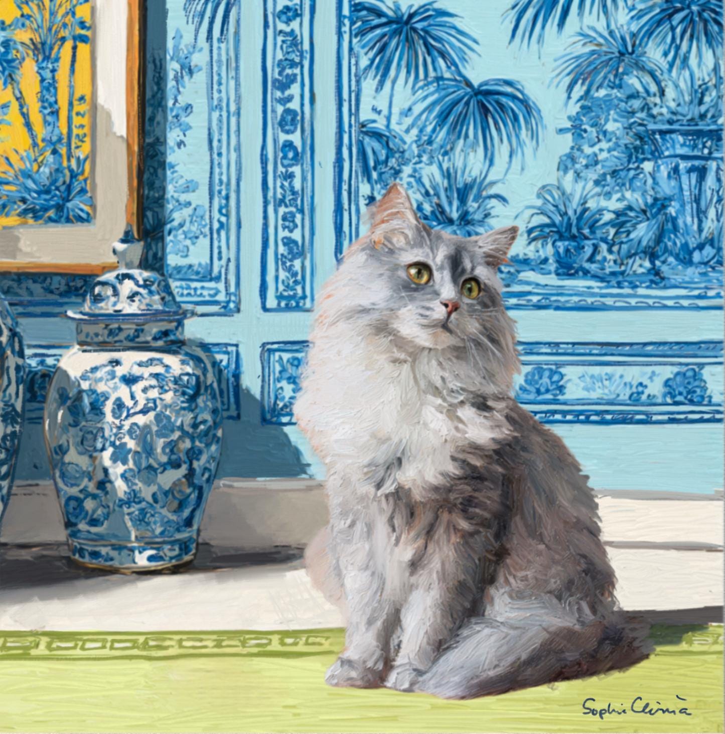Whimsical Siberian Cat Art Print: Grandmillennial Blue Interior