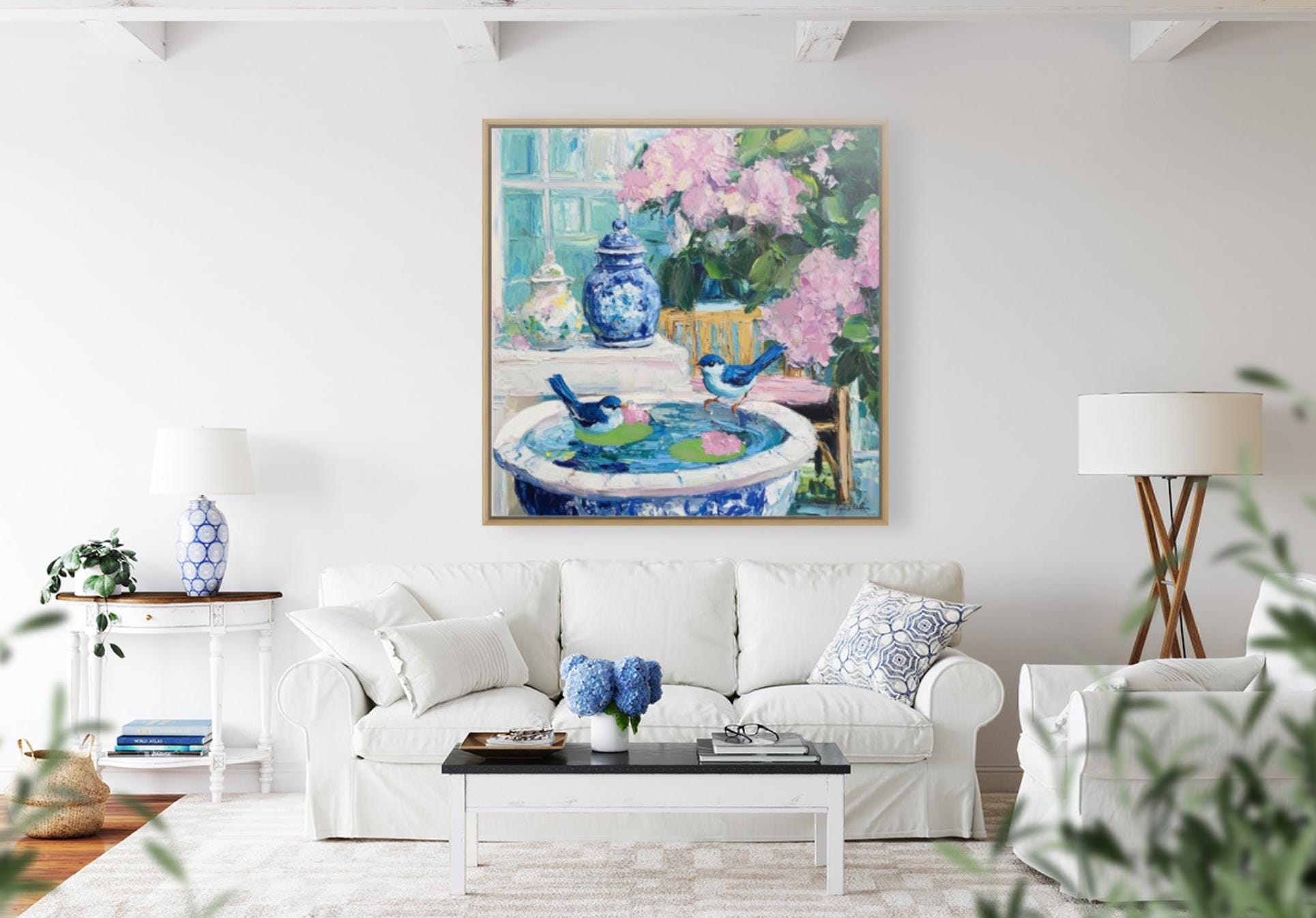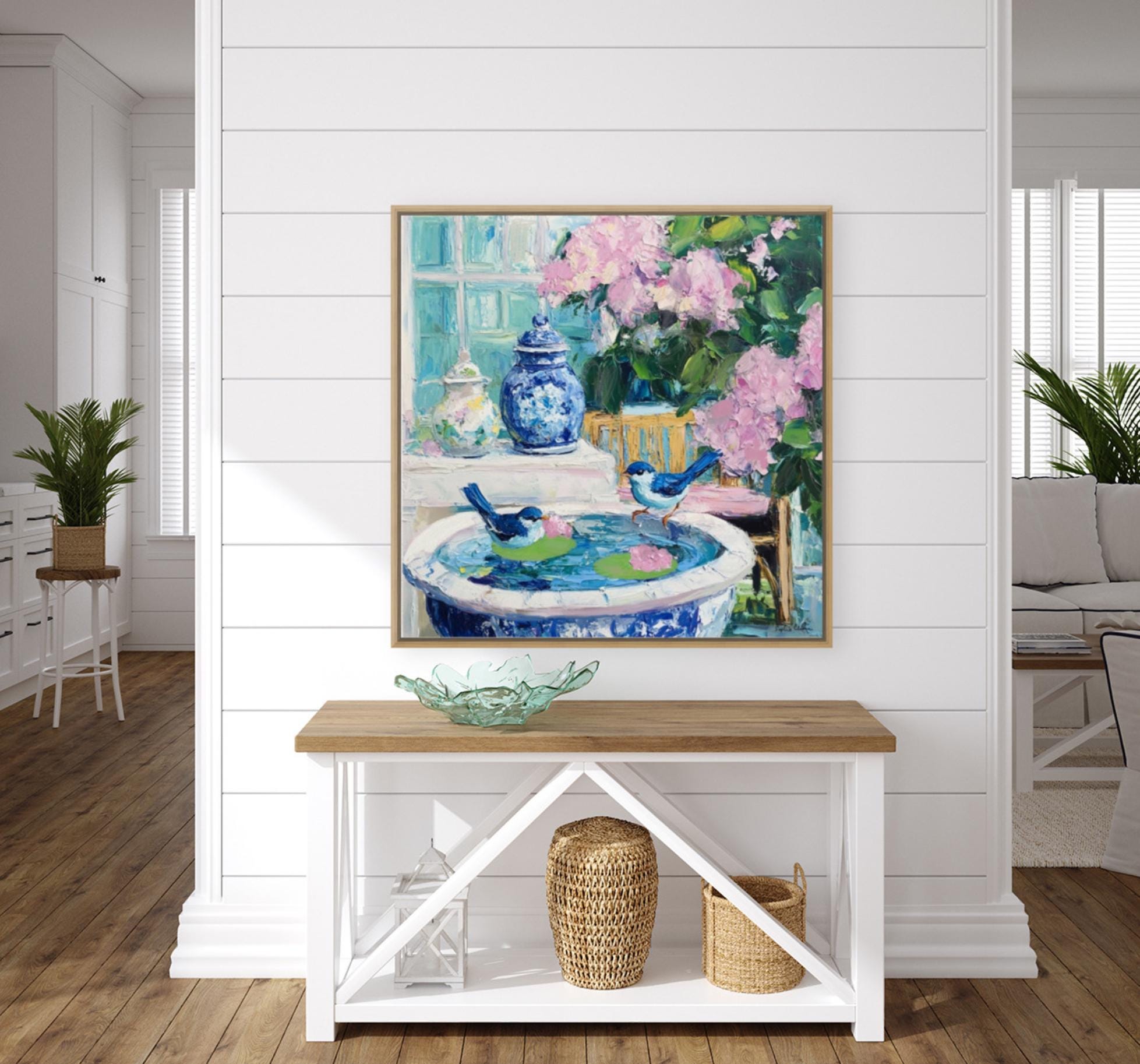 Bluebird Hydrangea Print: Cottagecore Chinoiserie Wall Art