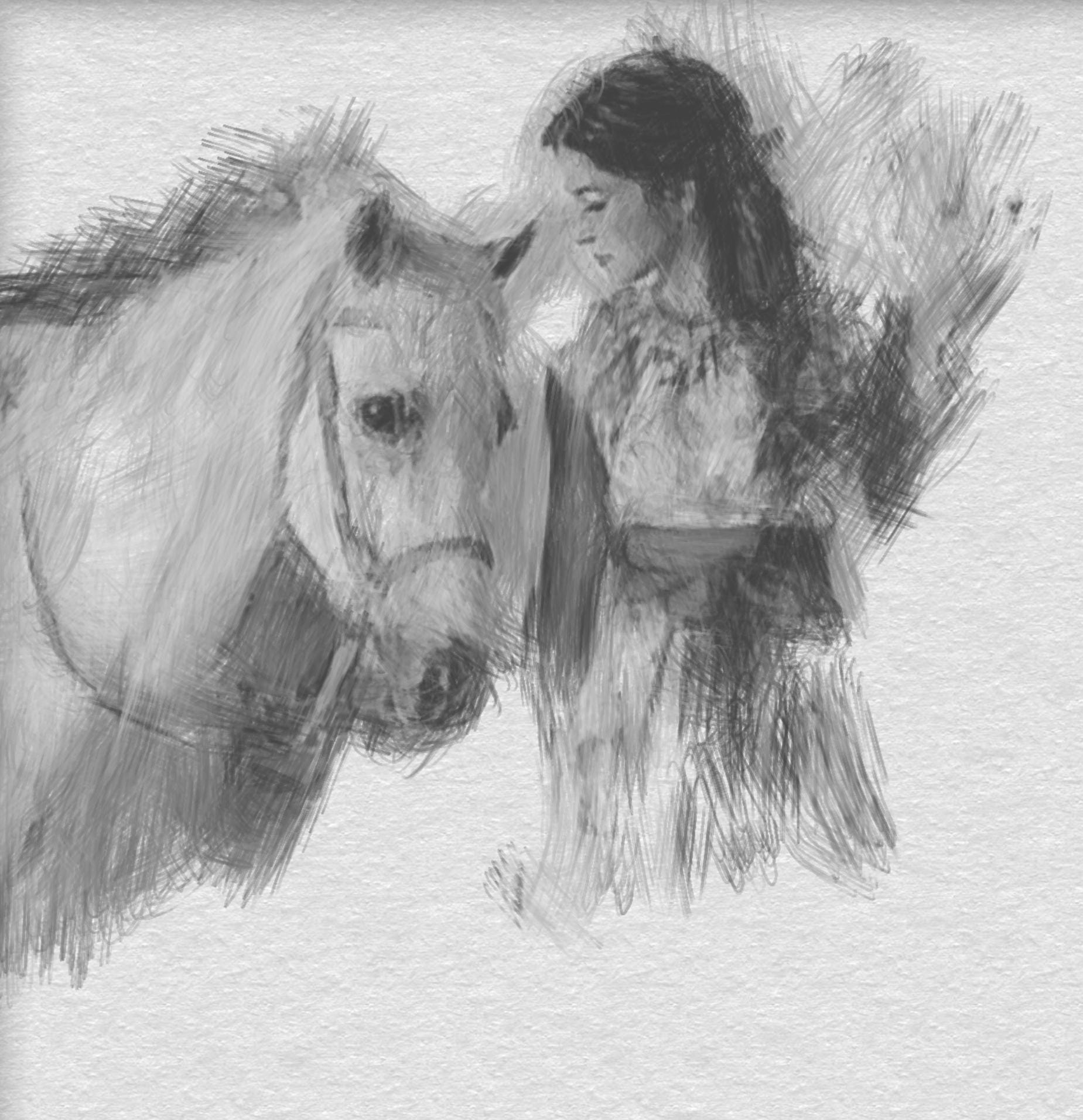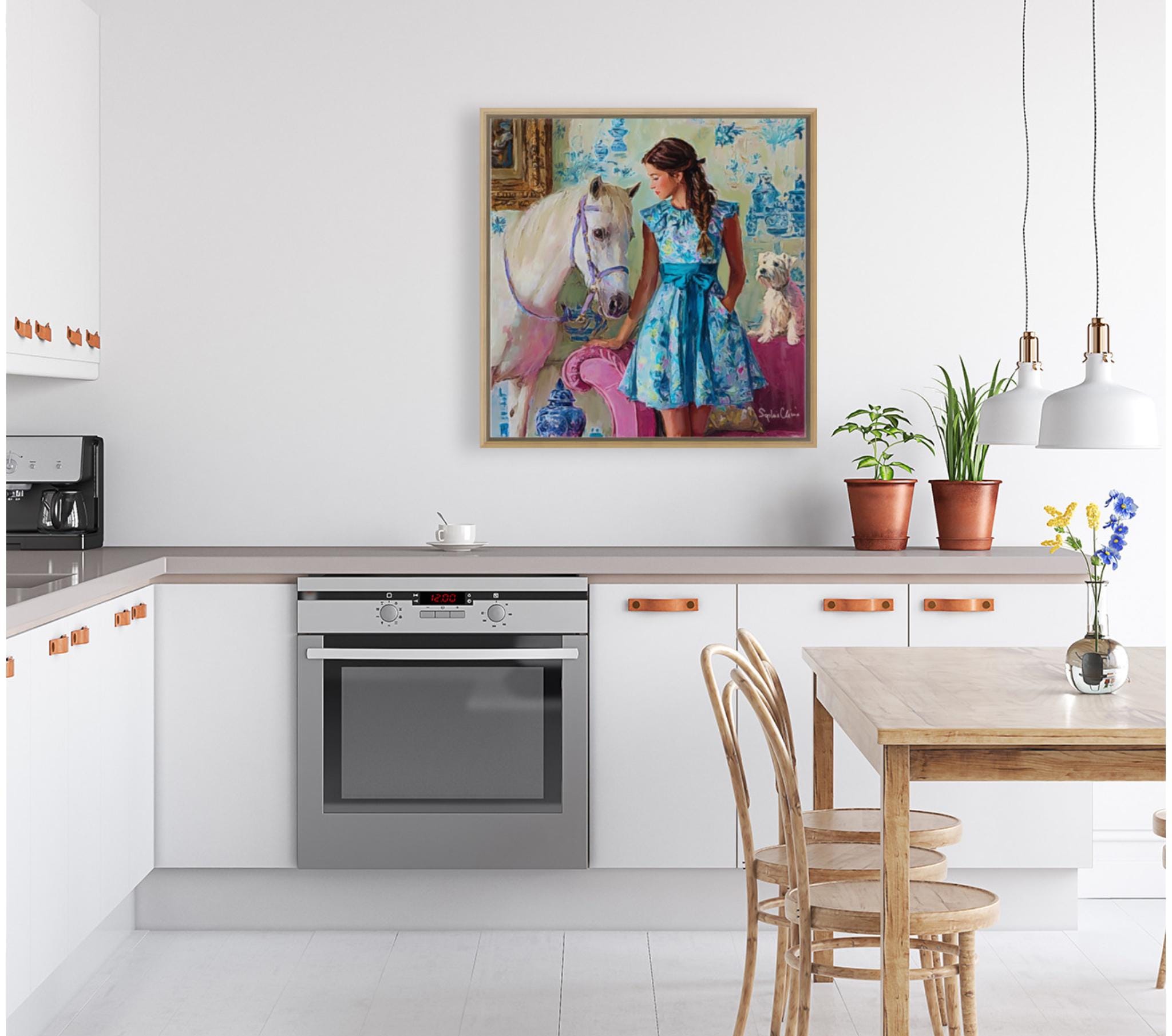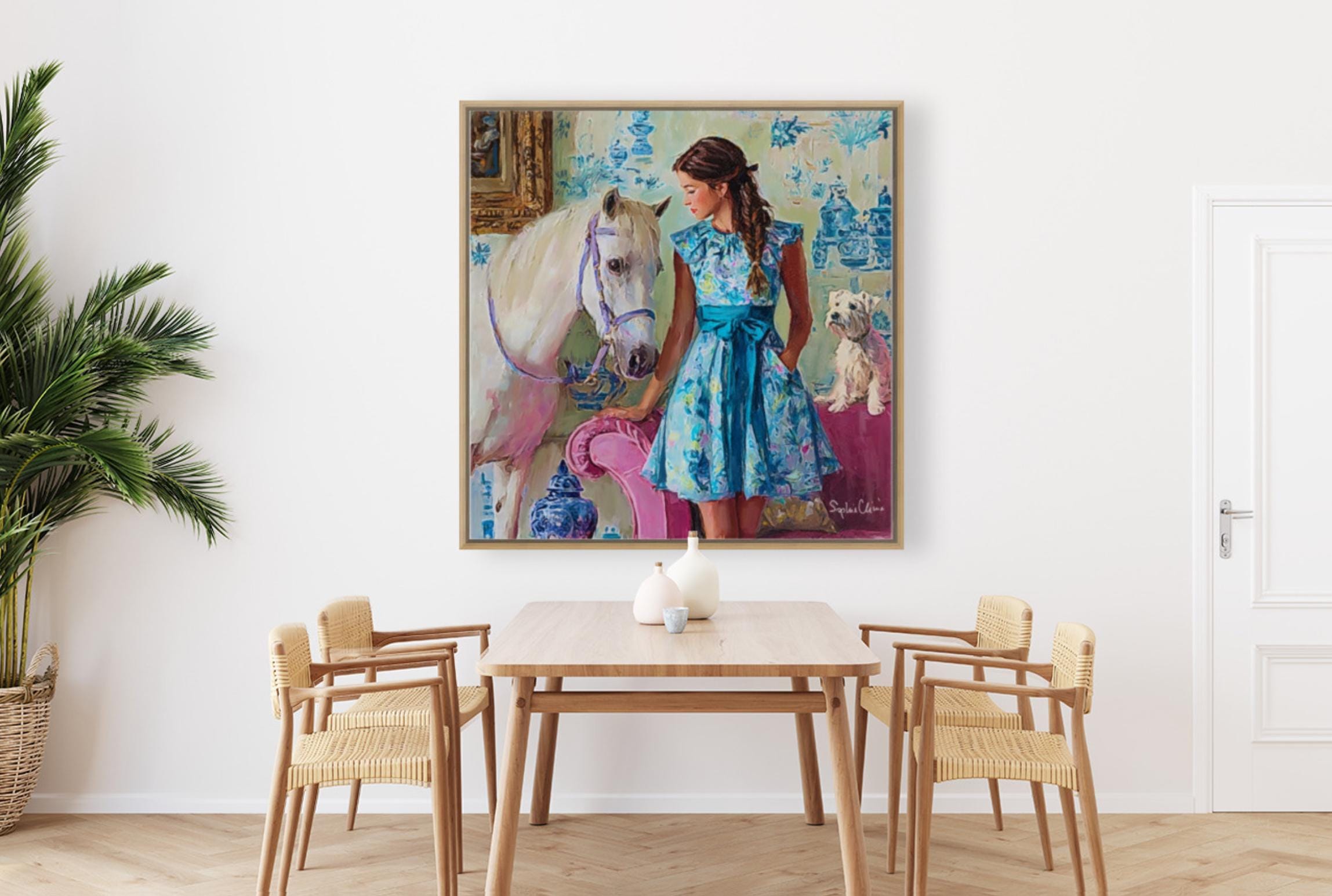 Grandmillennial art, A girl with a white horse, whimsical fine art
