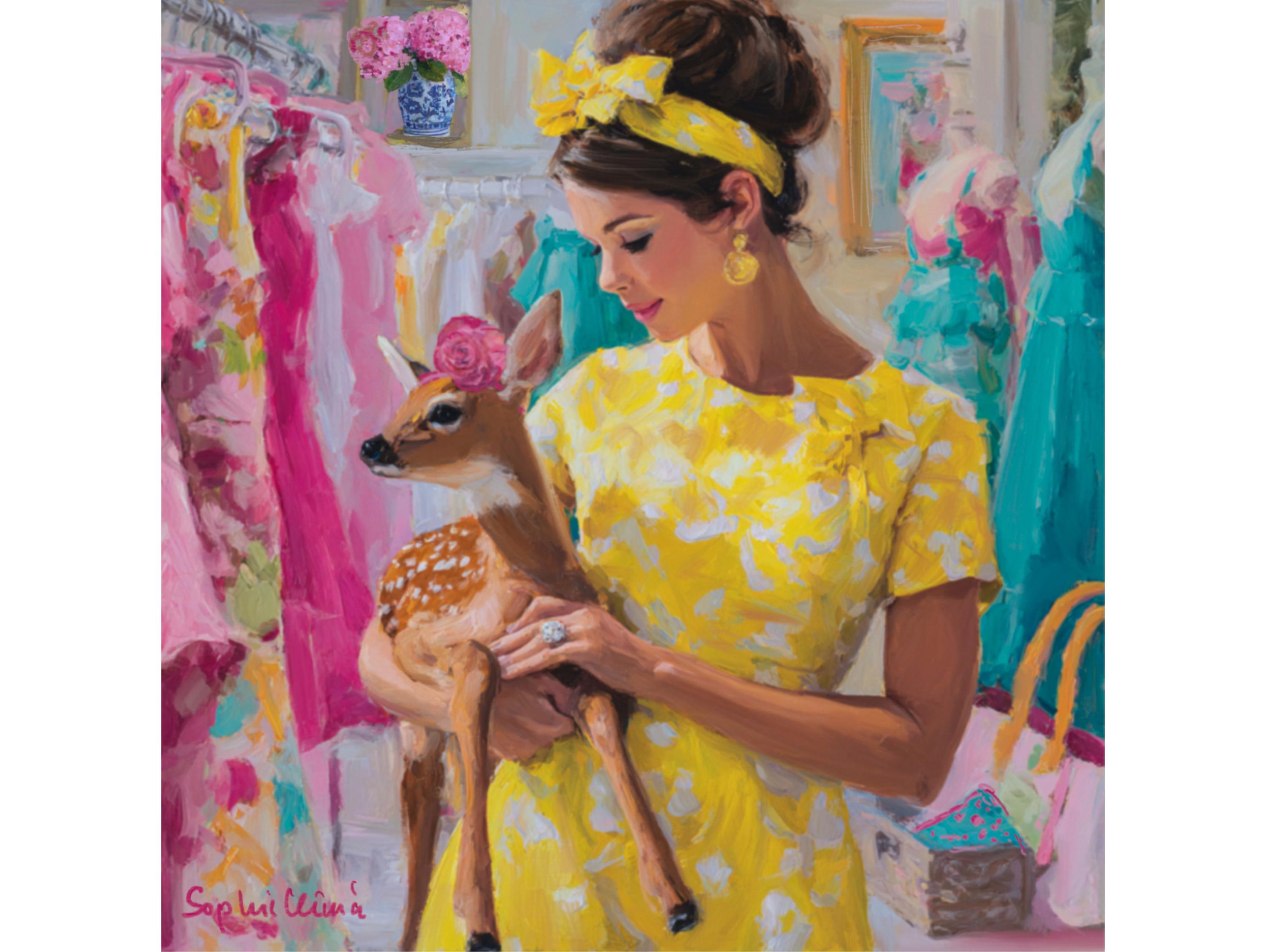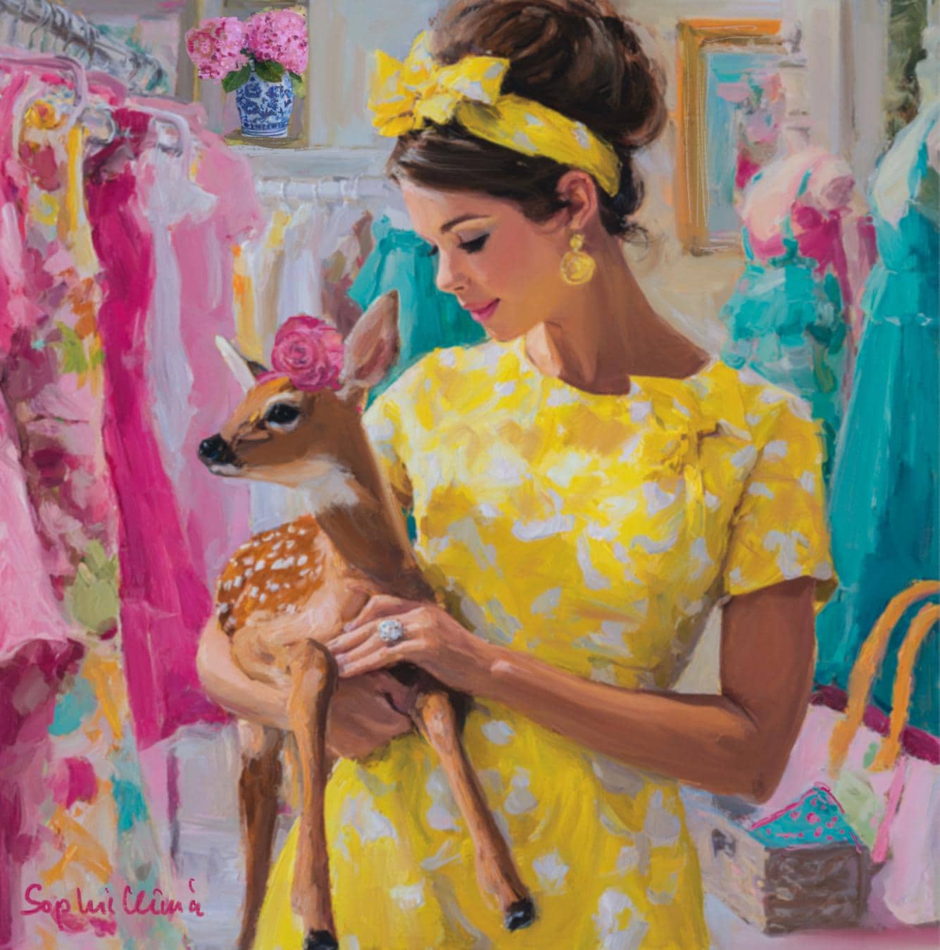 Yellow Dress Fashionista Art Print: Grandmillennial Palm Beach Vibe