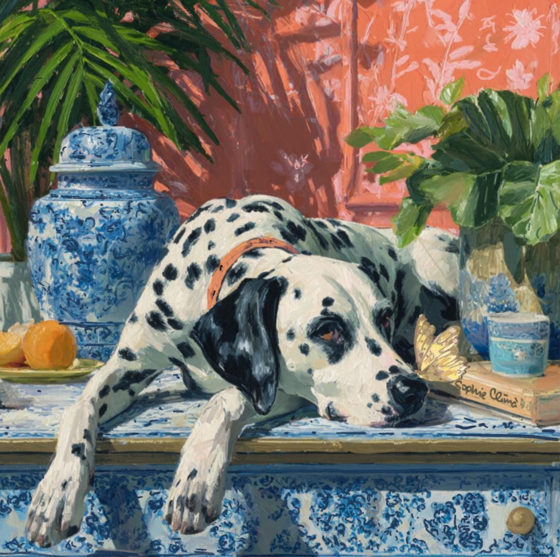 A: Dog lovers, Grandmillennial collectors, Palm Beach homeowners, and anyone who loves chic, playful art.