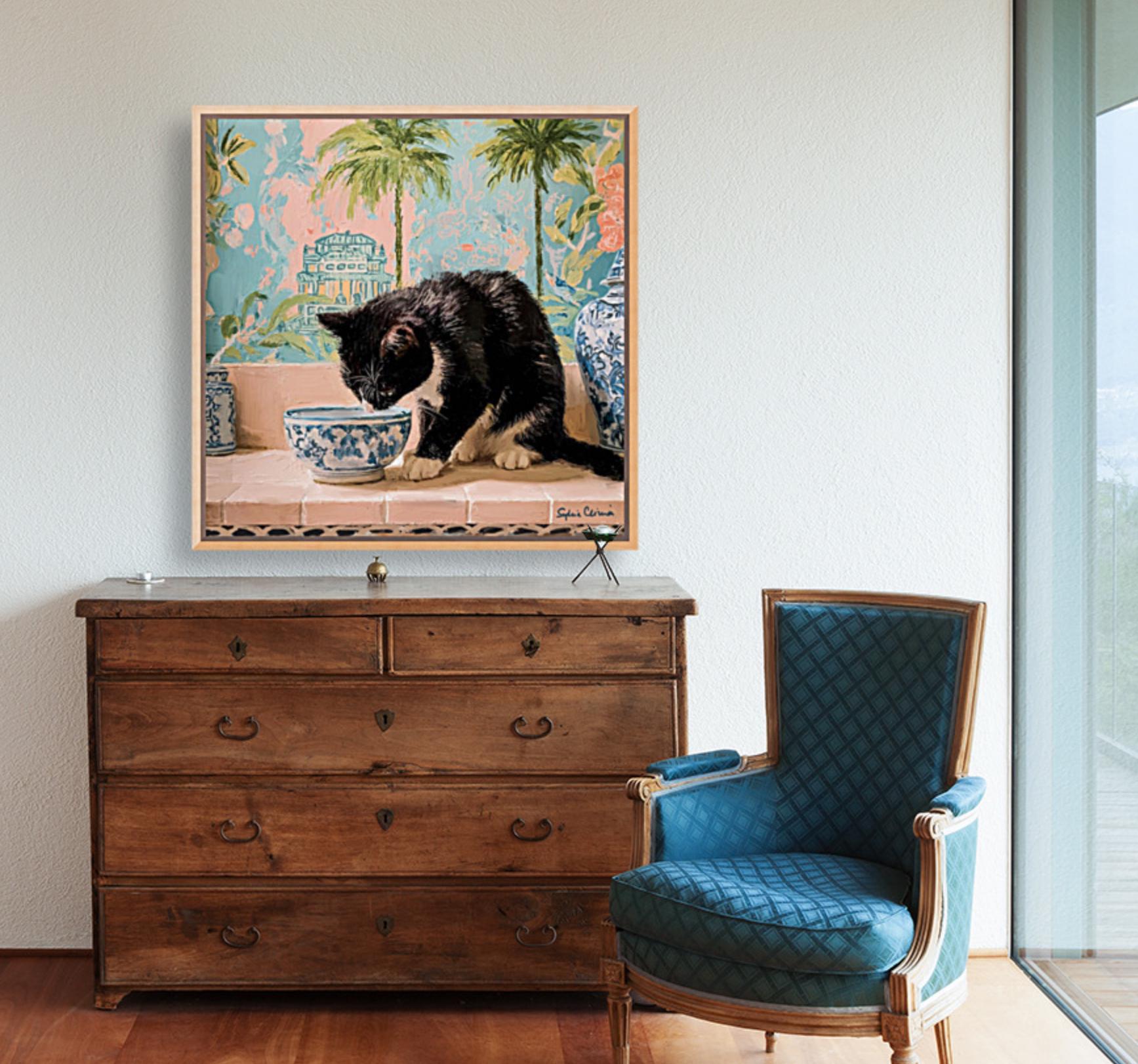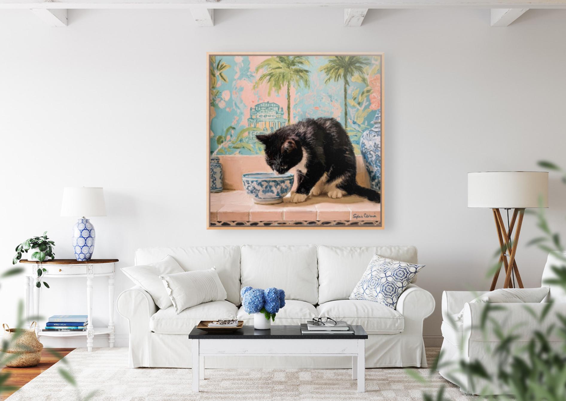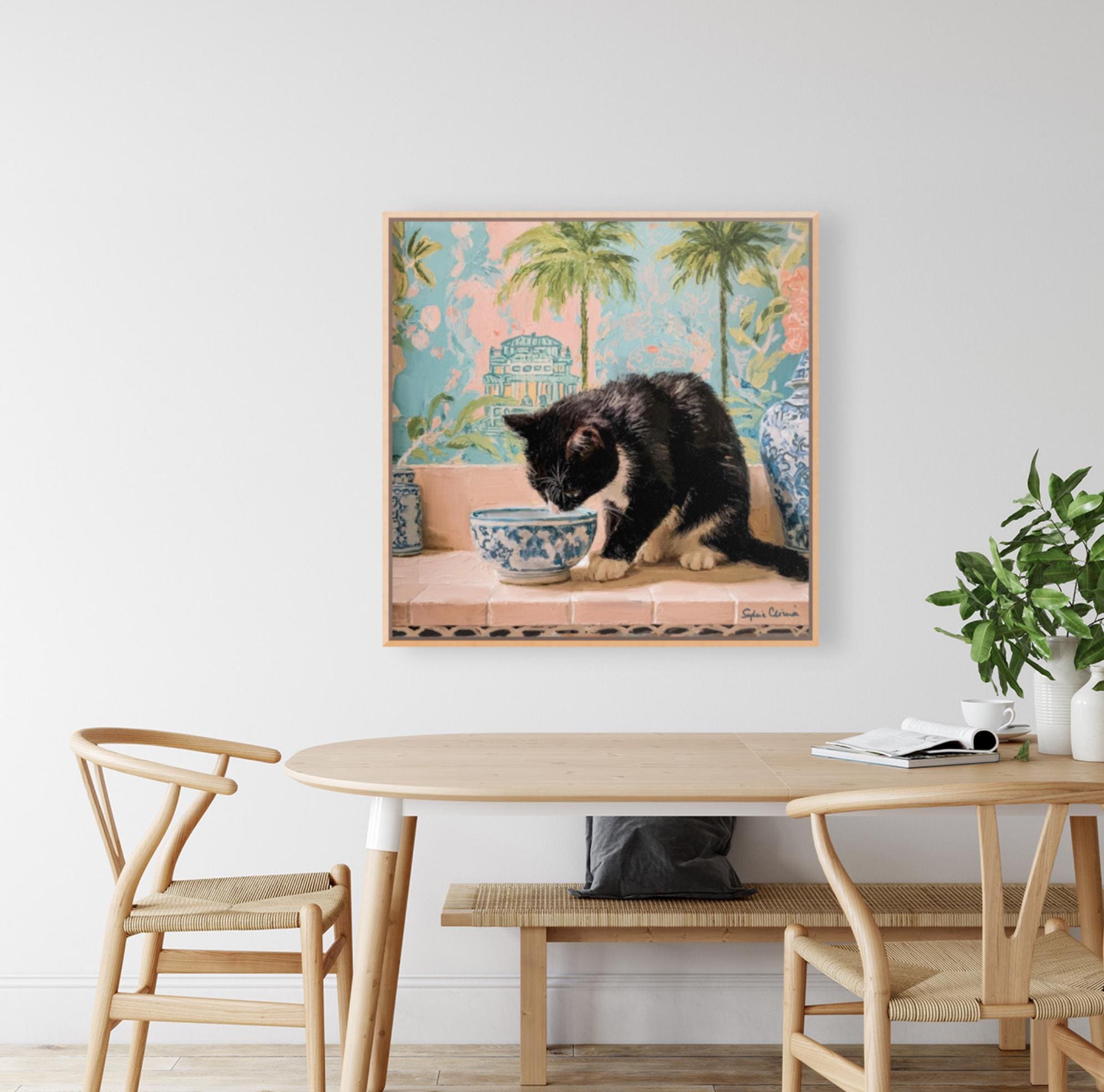 Preppy Cat Art: Breakfast in Palm Beach, Grandmillennial art