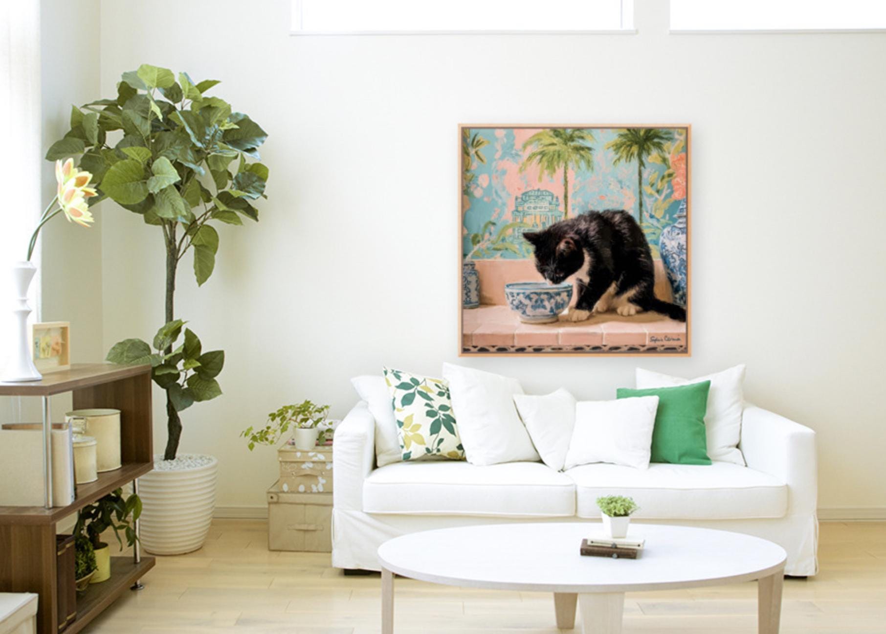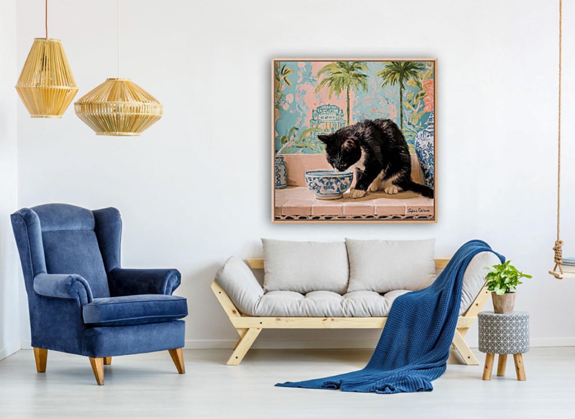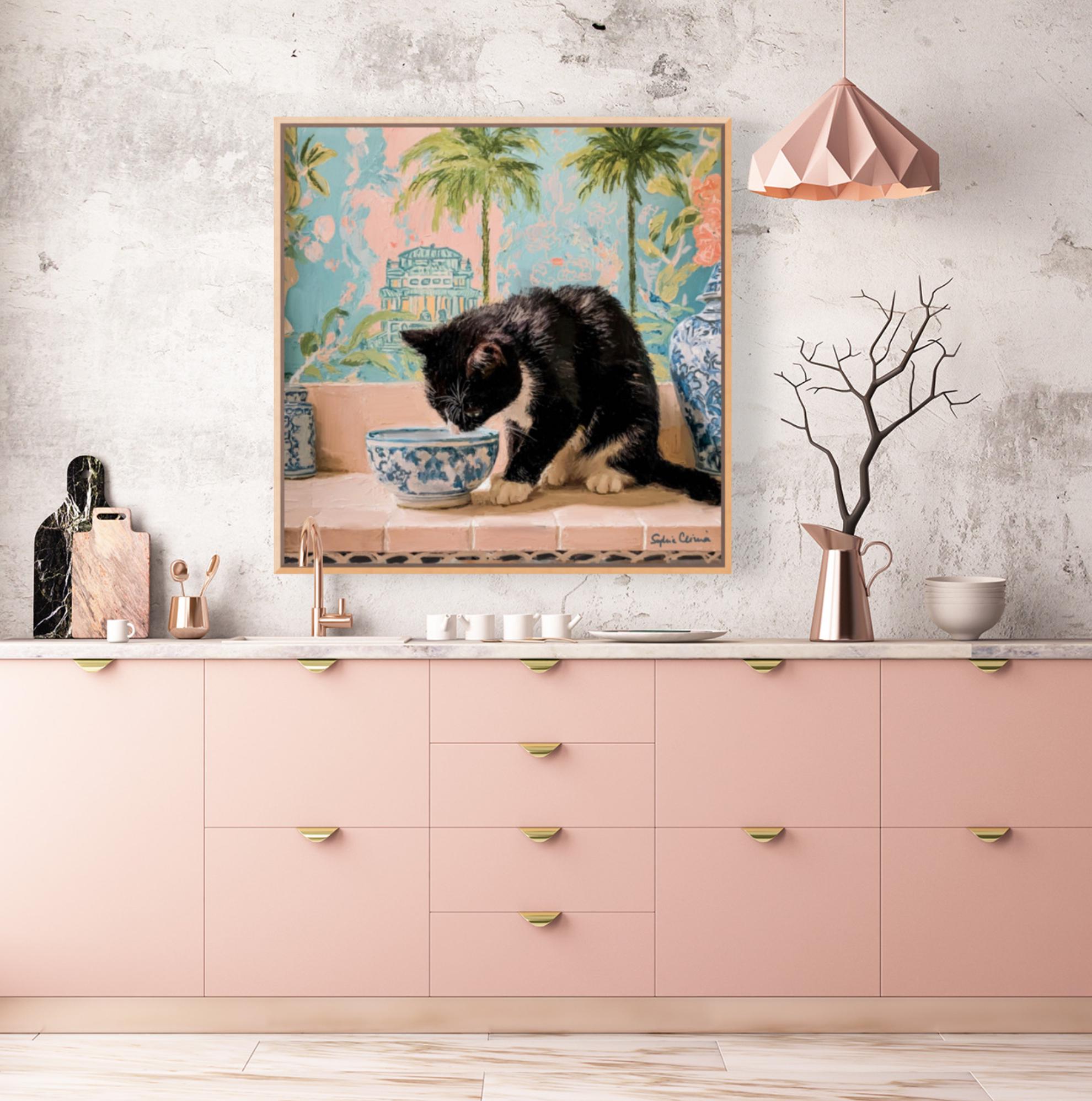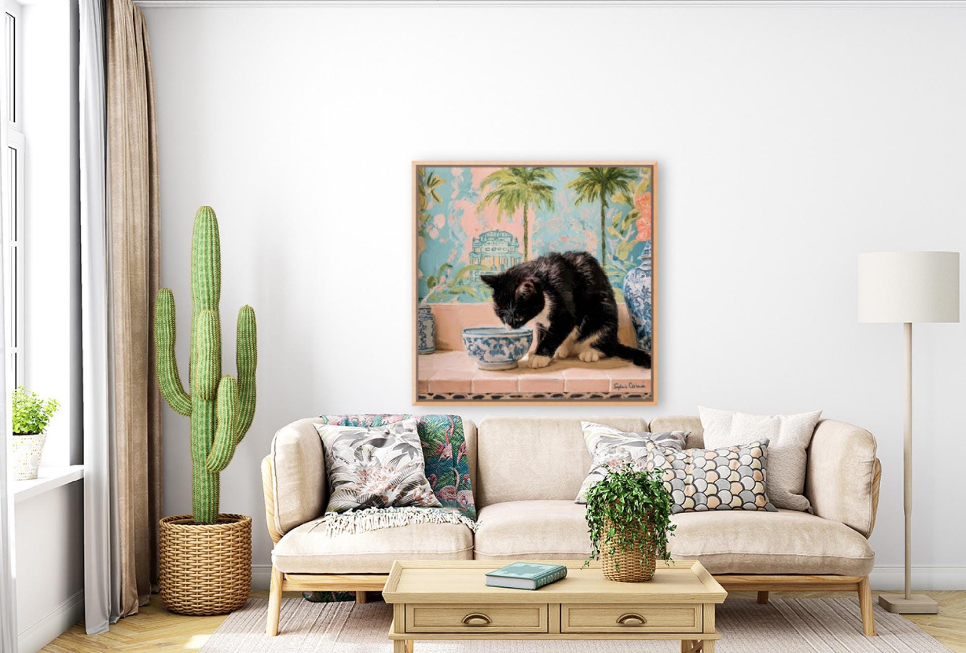 Preppy Cat Art: Breakfast in Palm Beach, Grandmillennial art