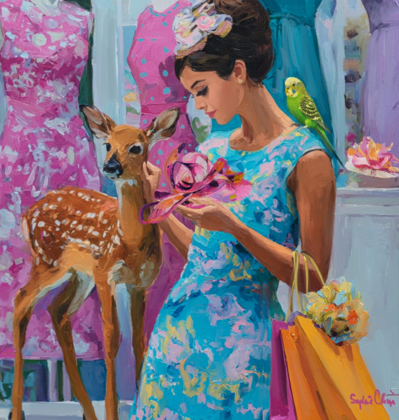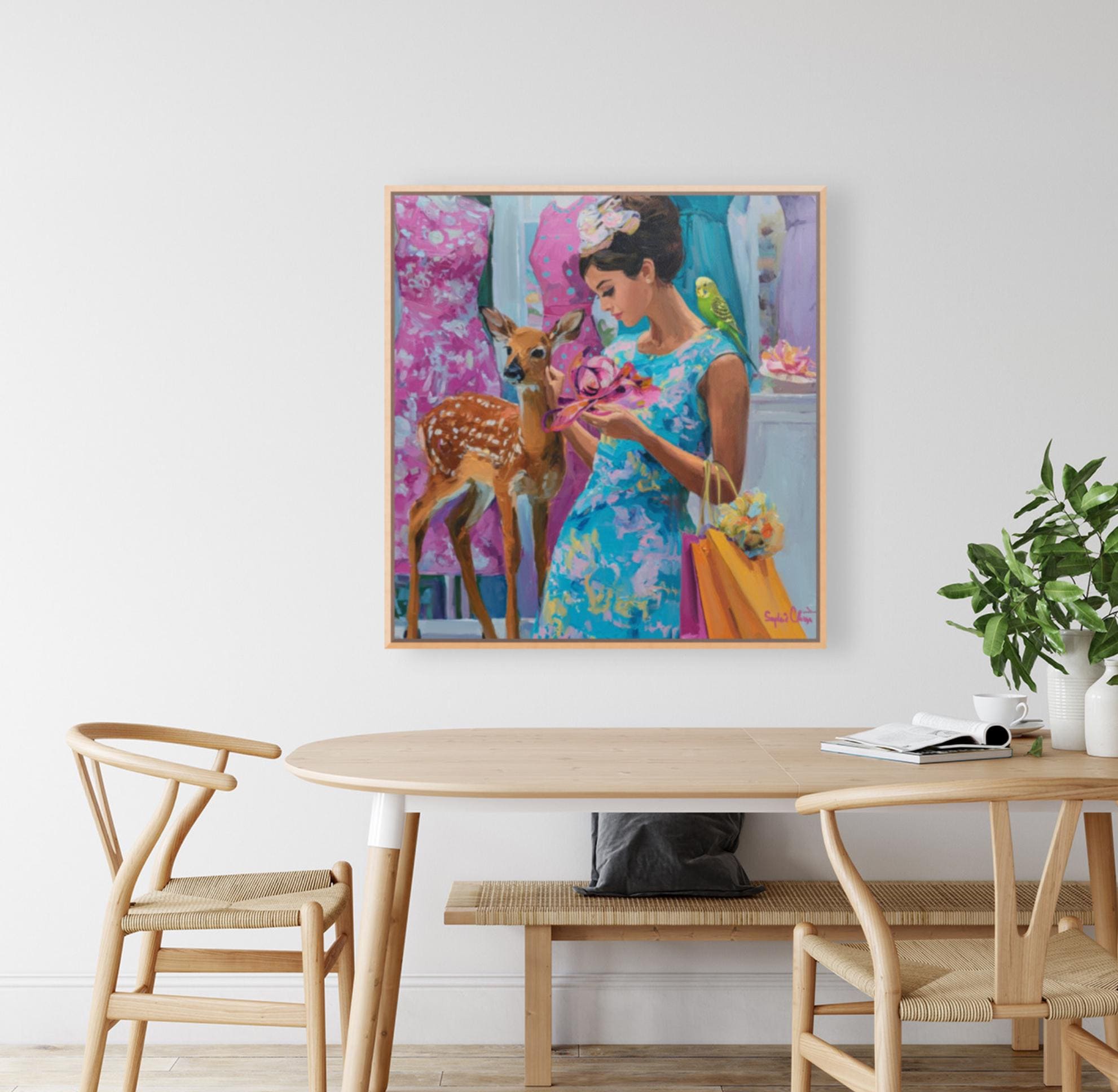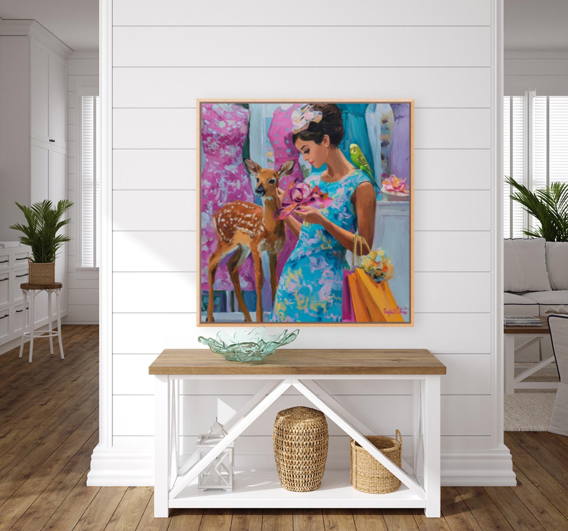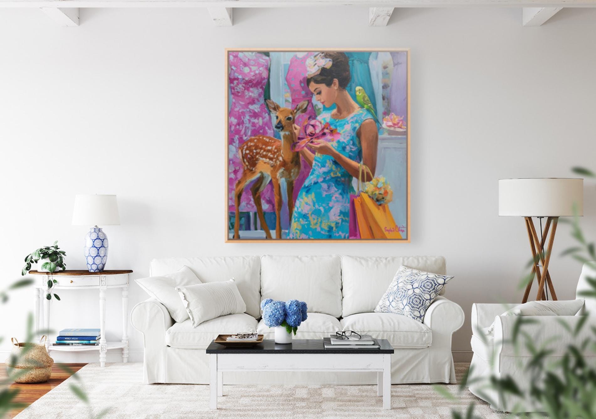 Grandmillennial art, Shopping with Friends, preppy whimsical painting