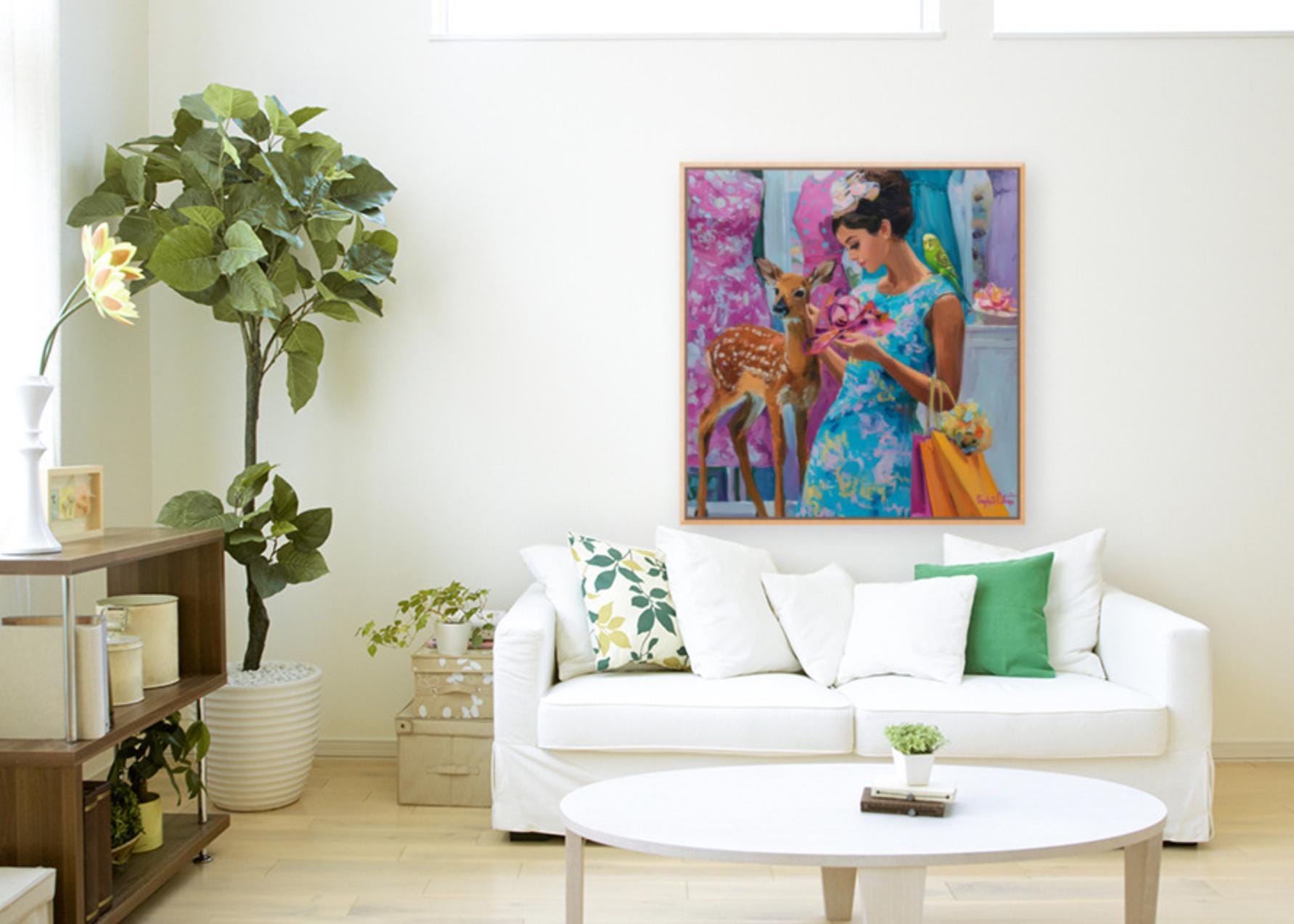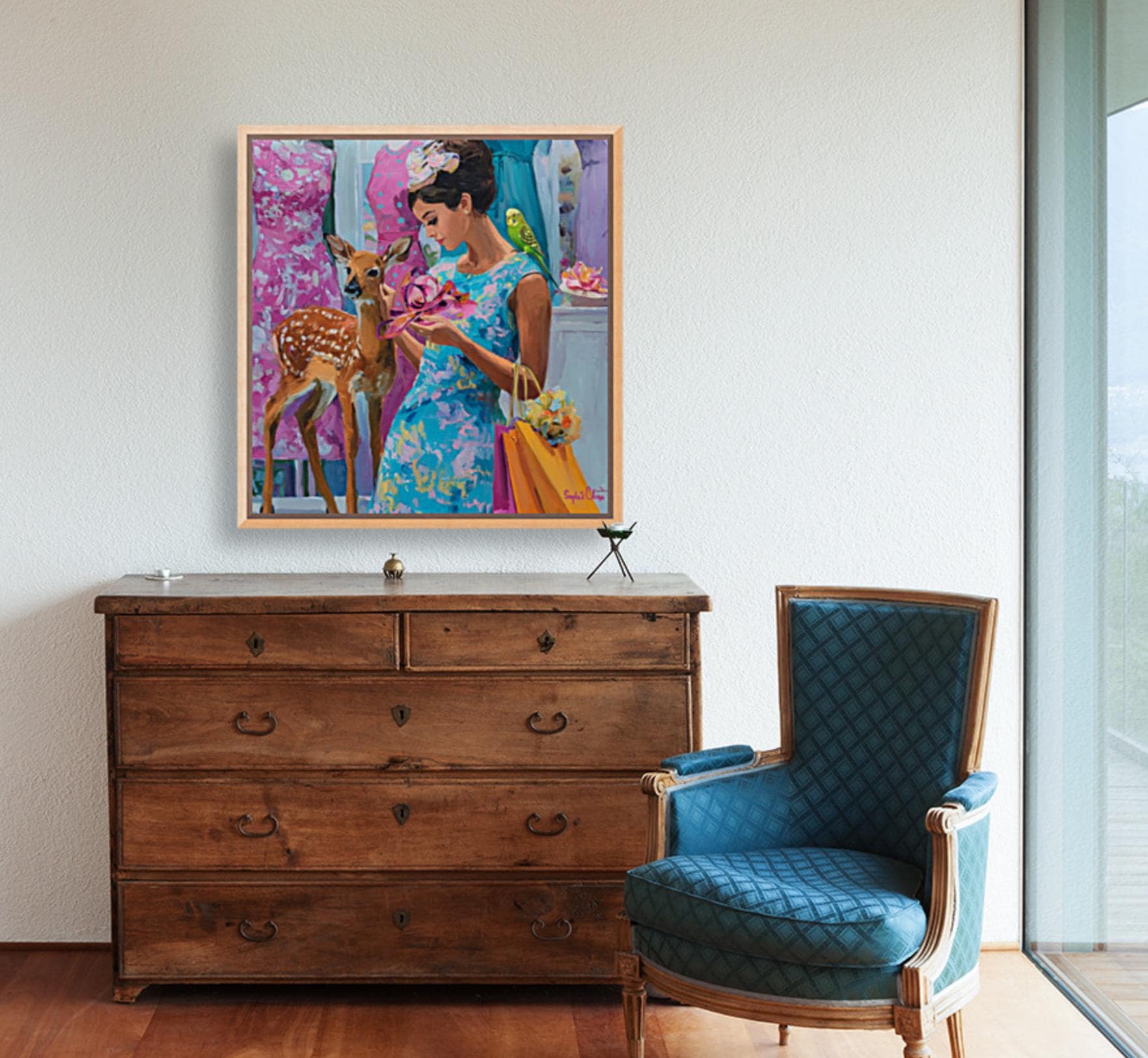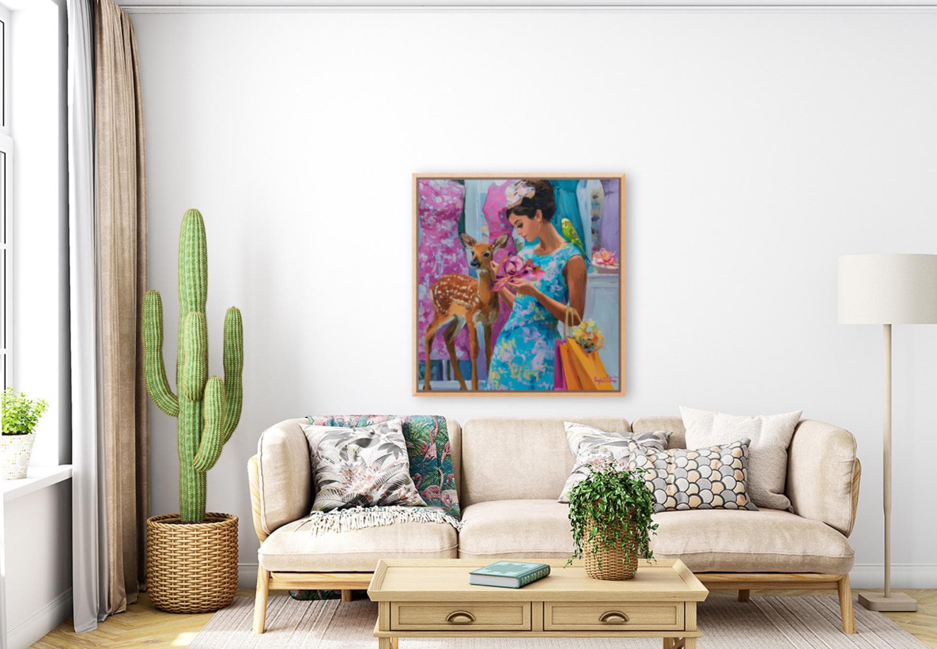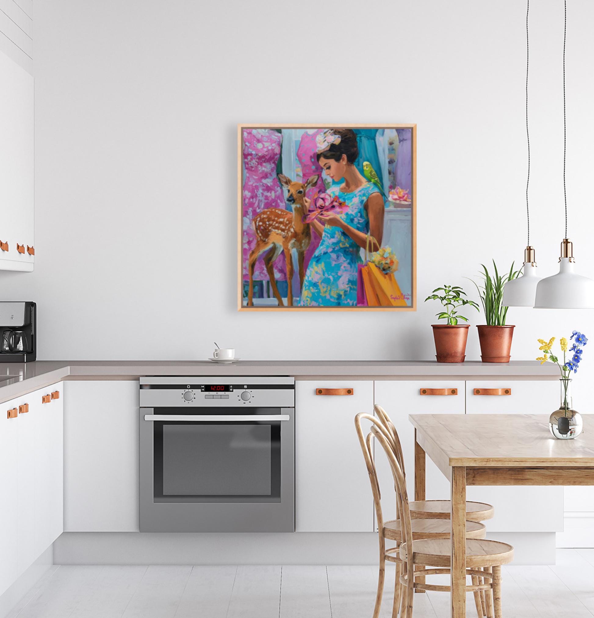 Grandmillennial art, Shopping with Friends, preppy whimsical painting