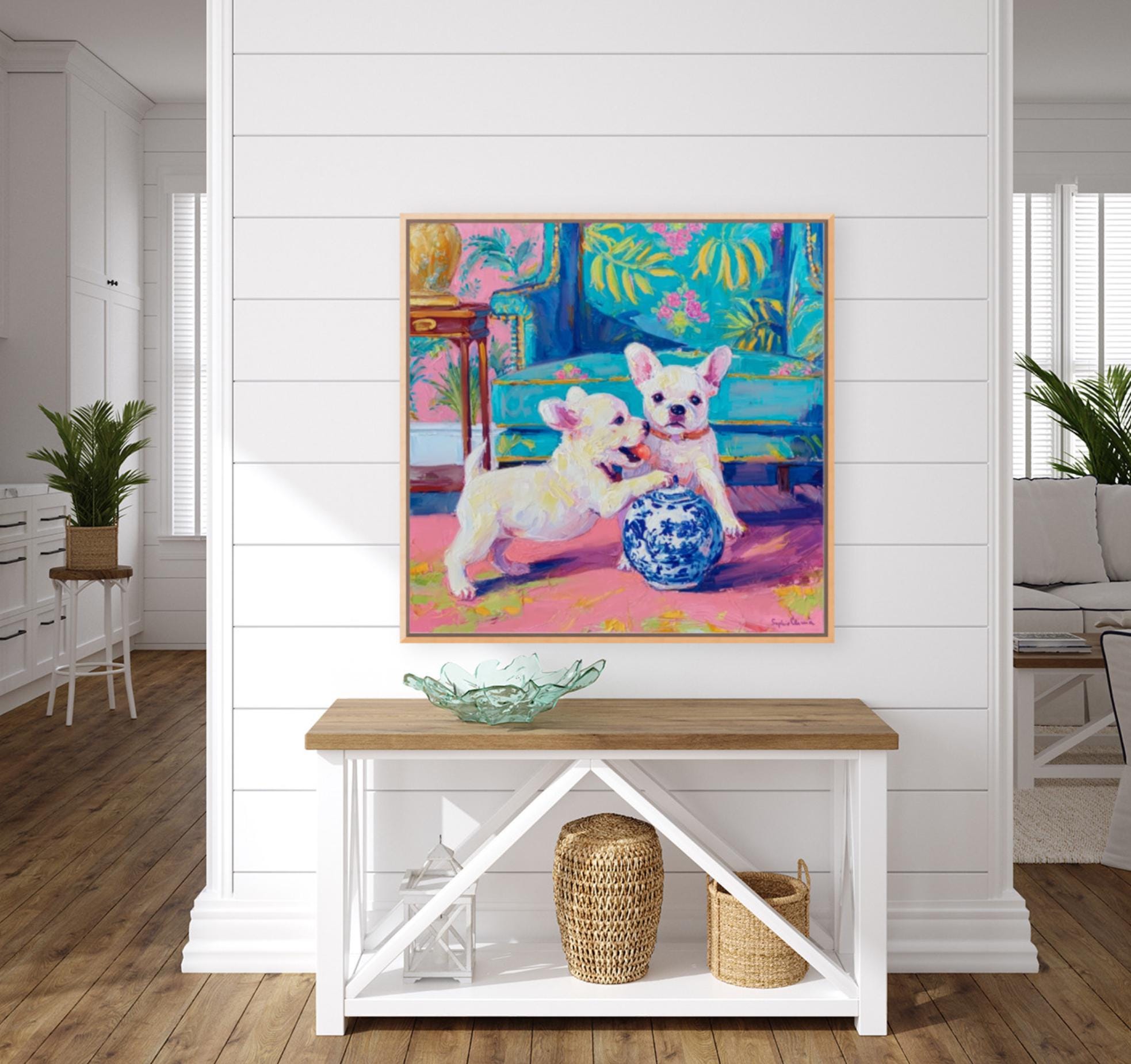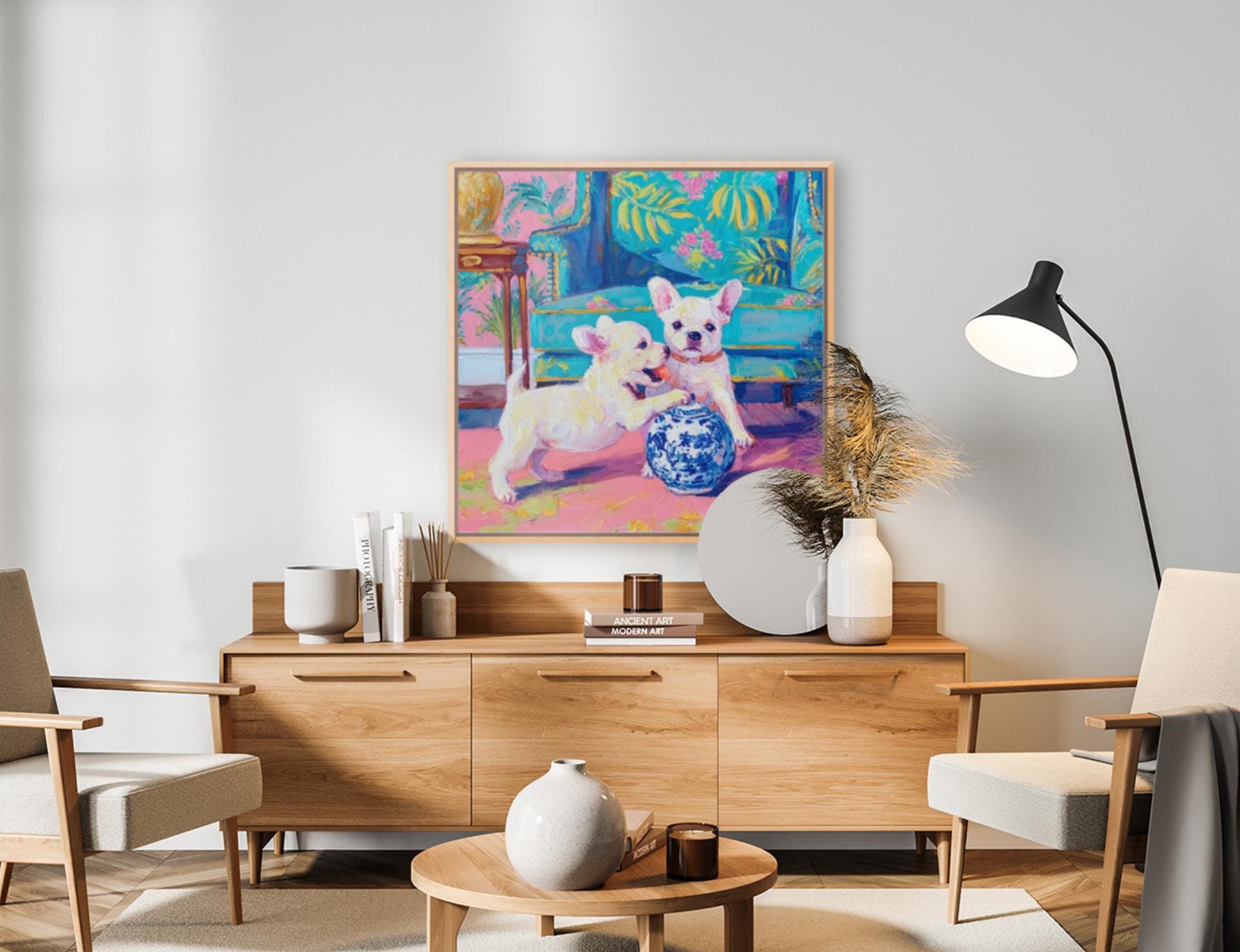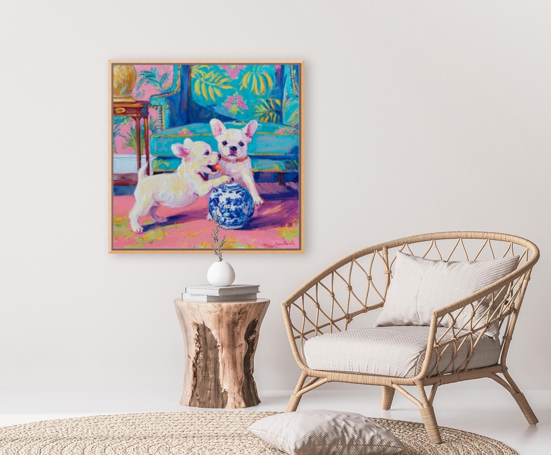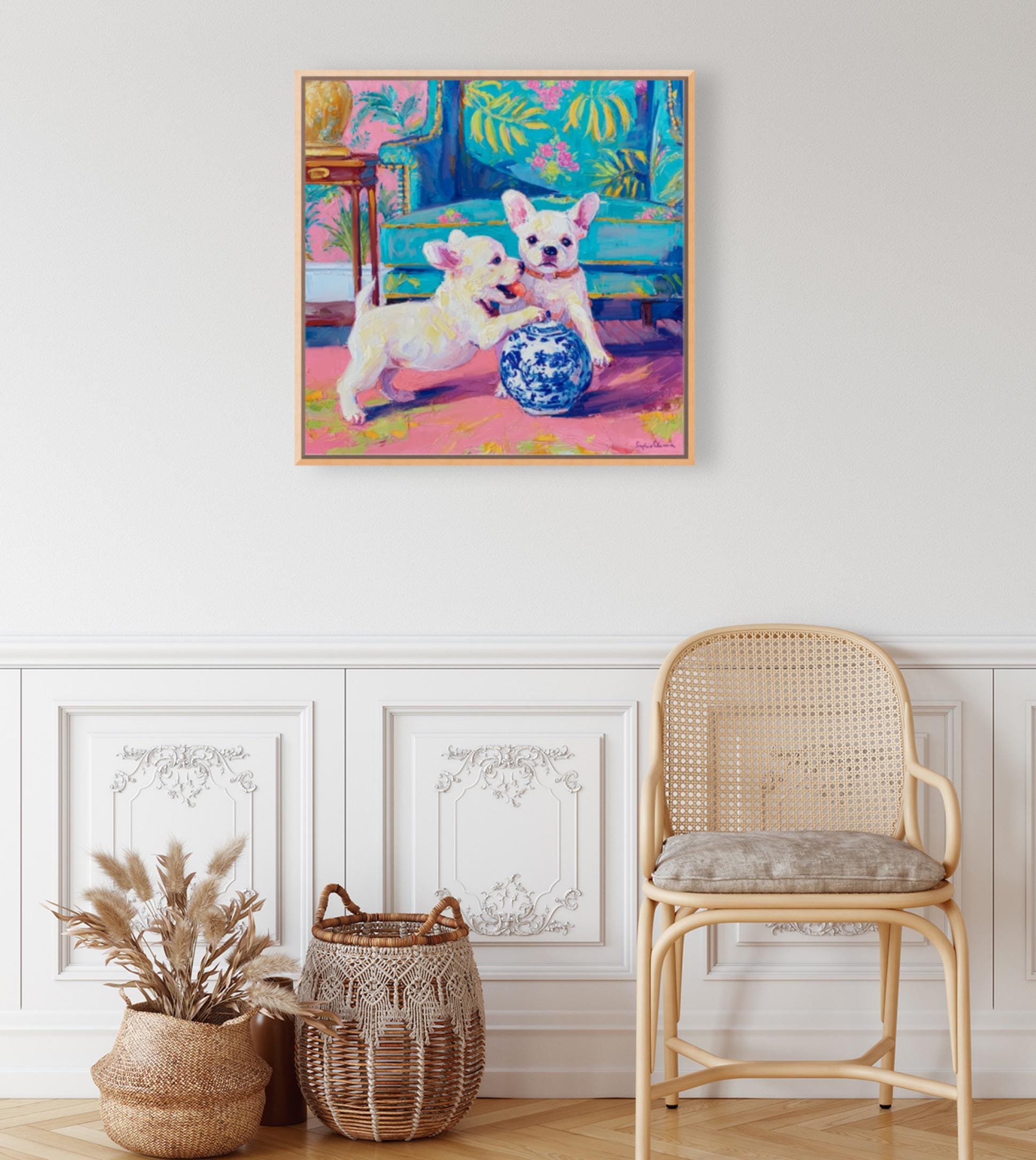 Grandmillennial art, let’s play, fine art whimsical dog print