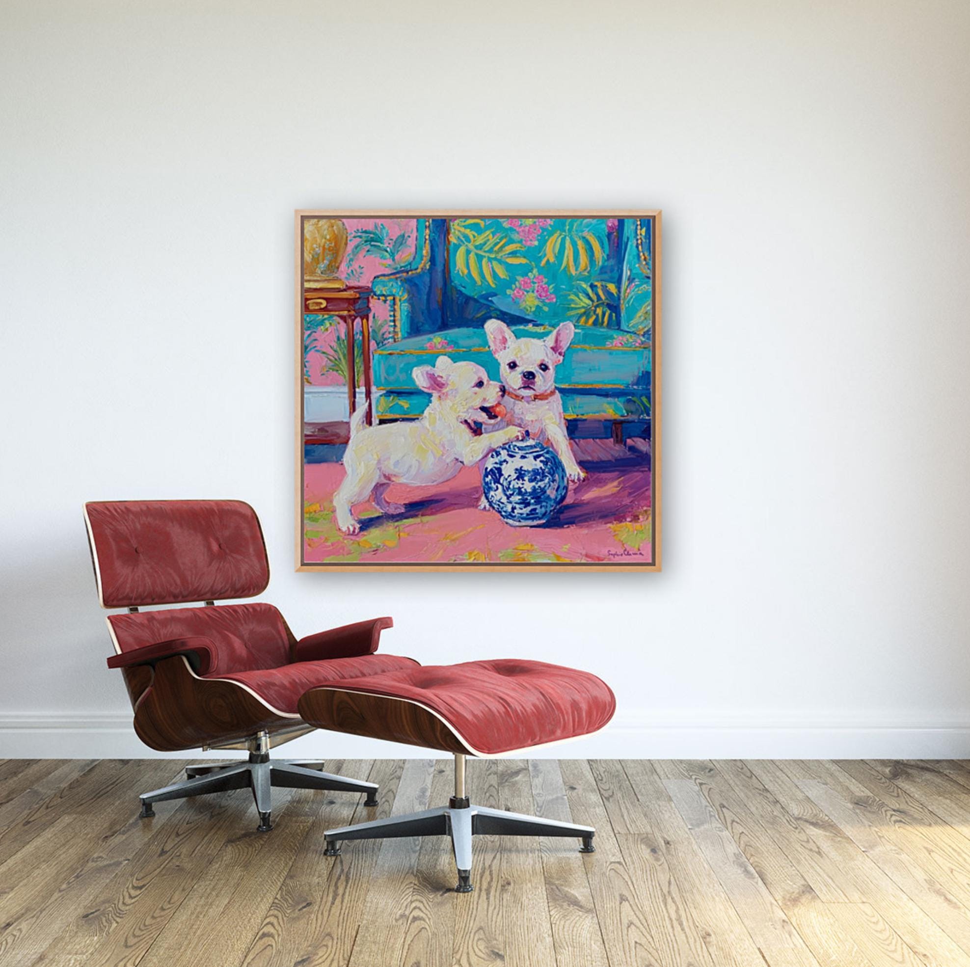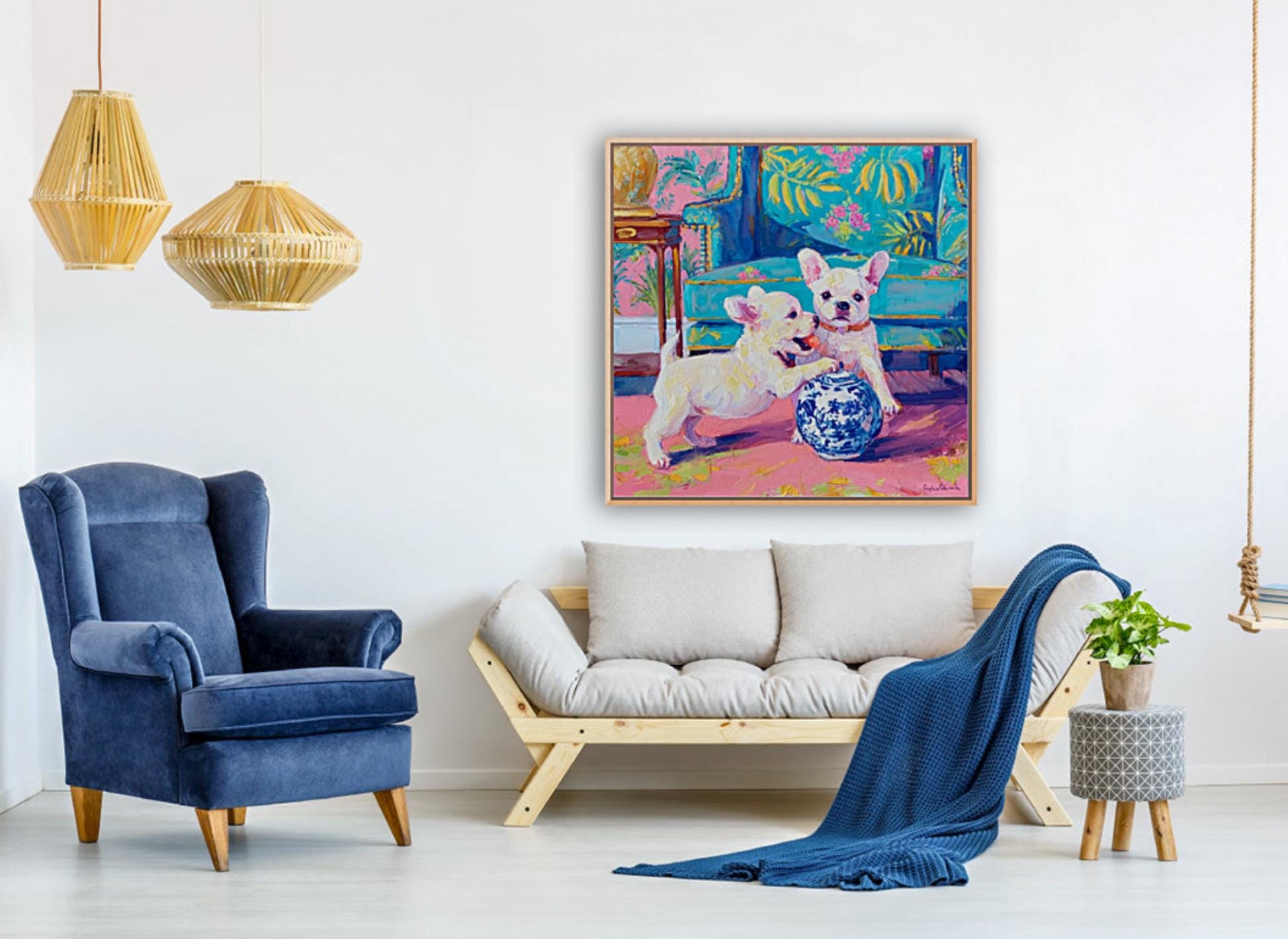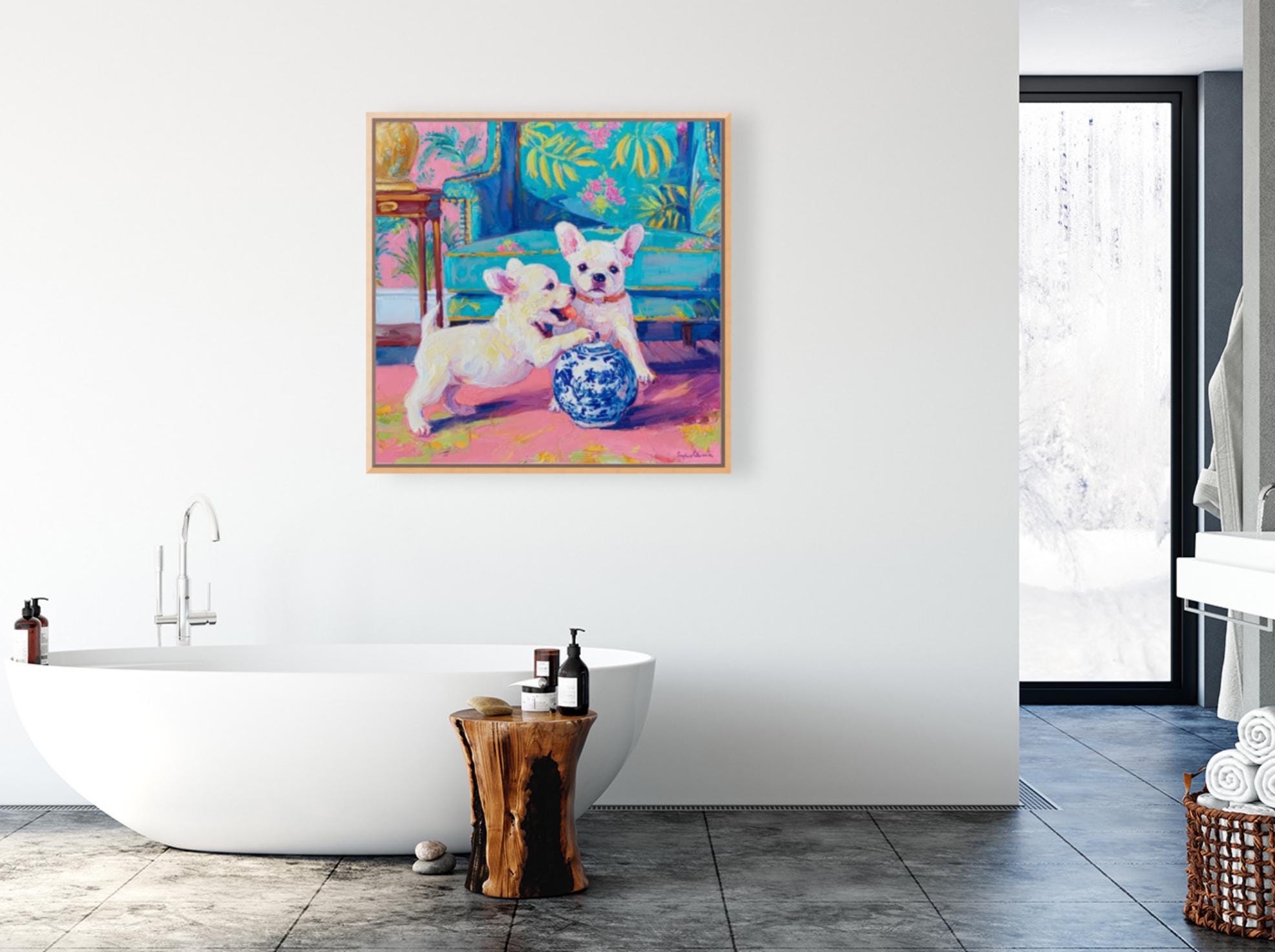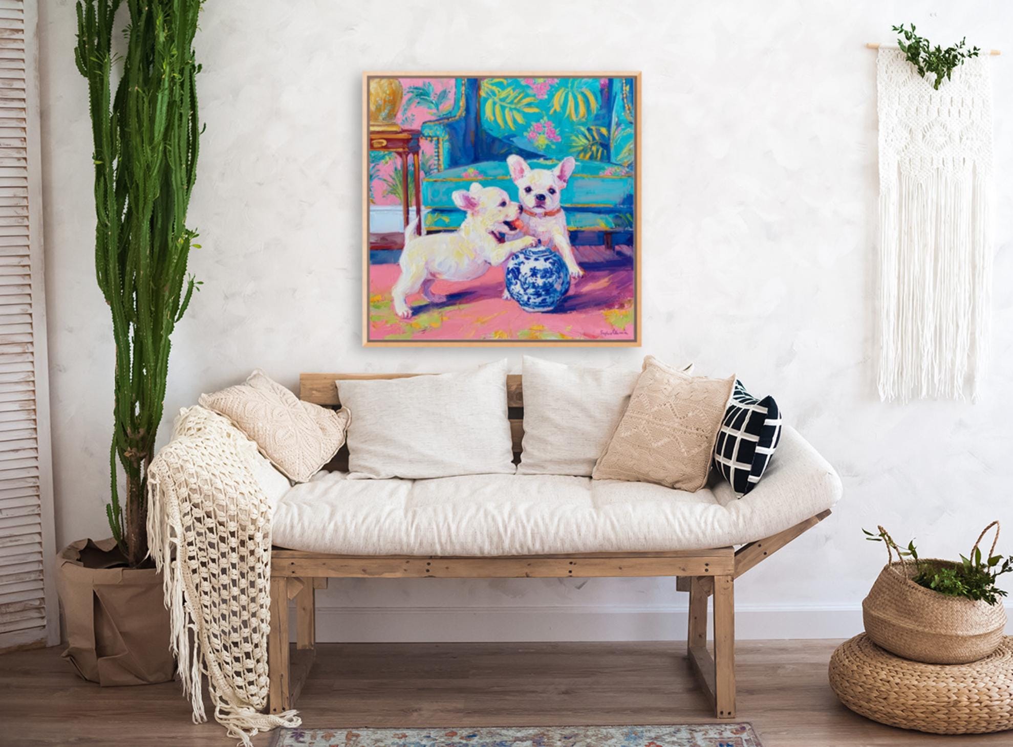 Grandmillennial art, let’s play, fine art whimsical dog print
