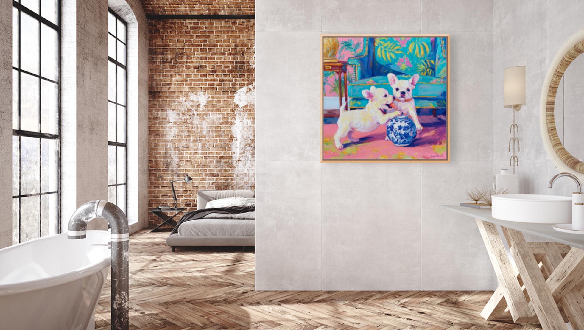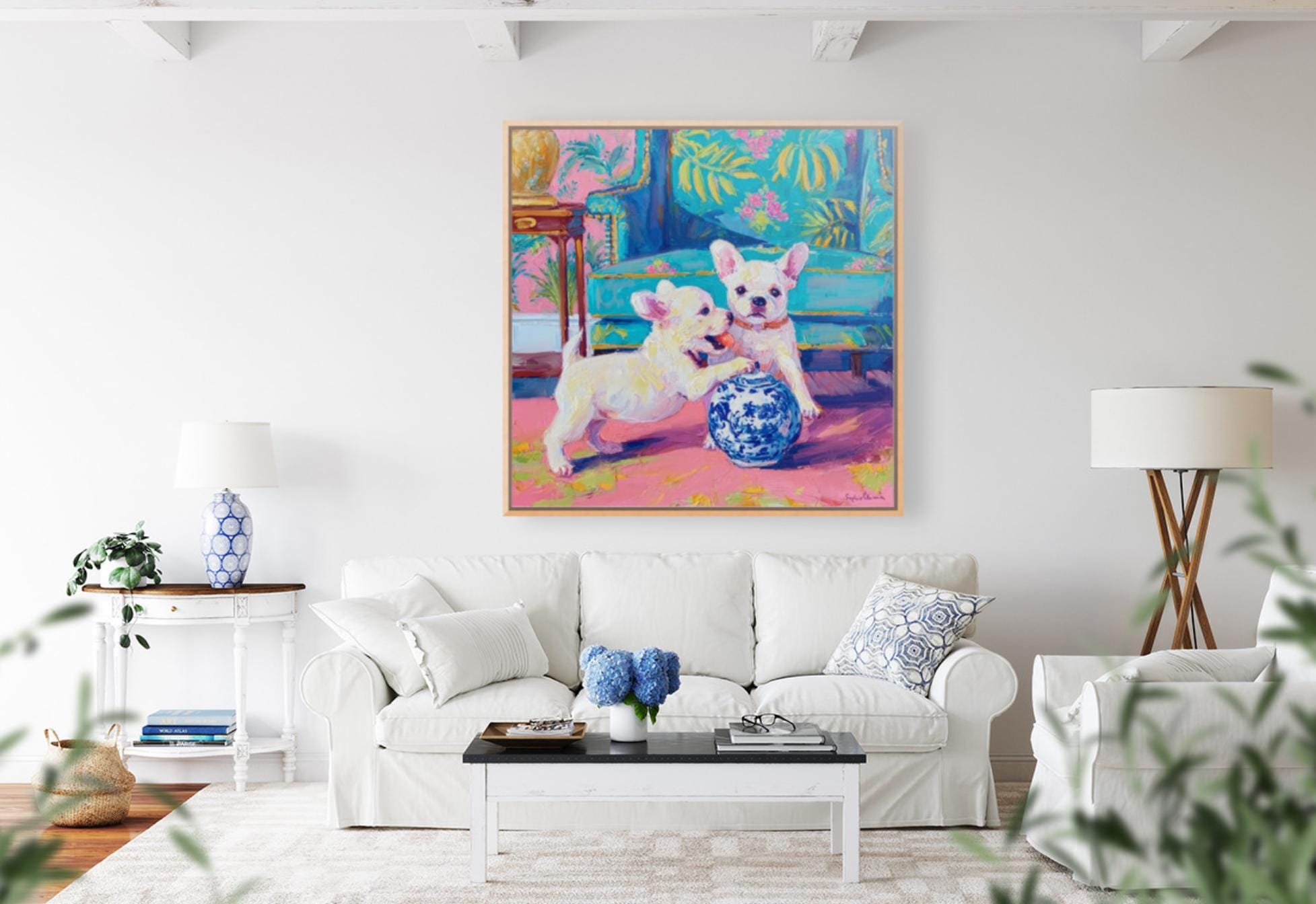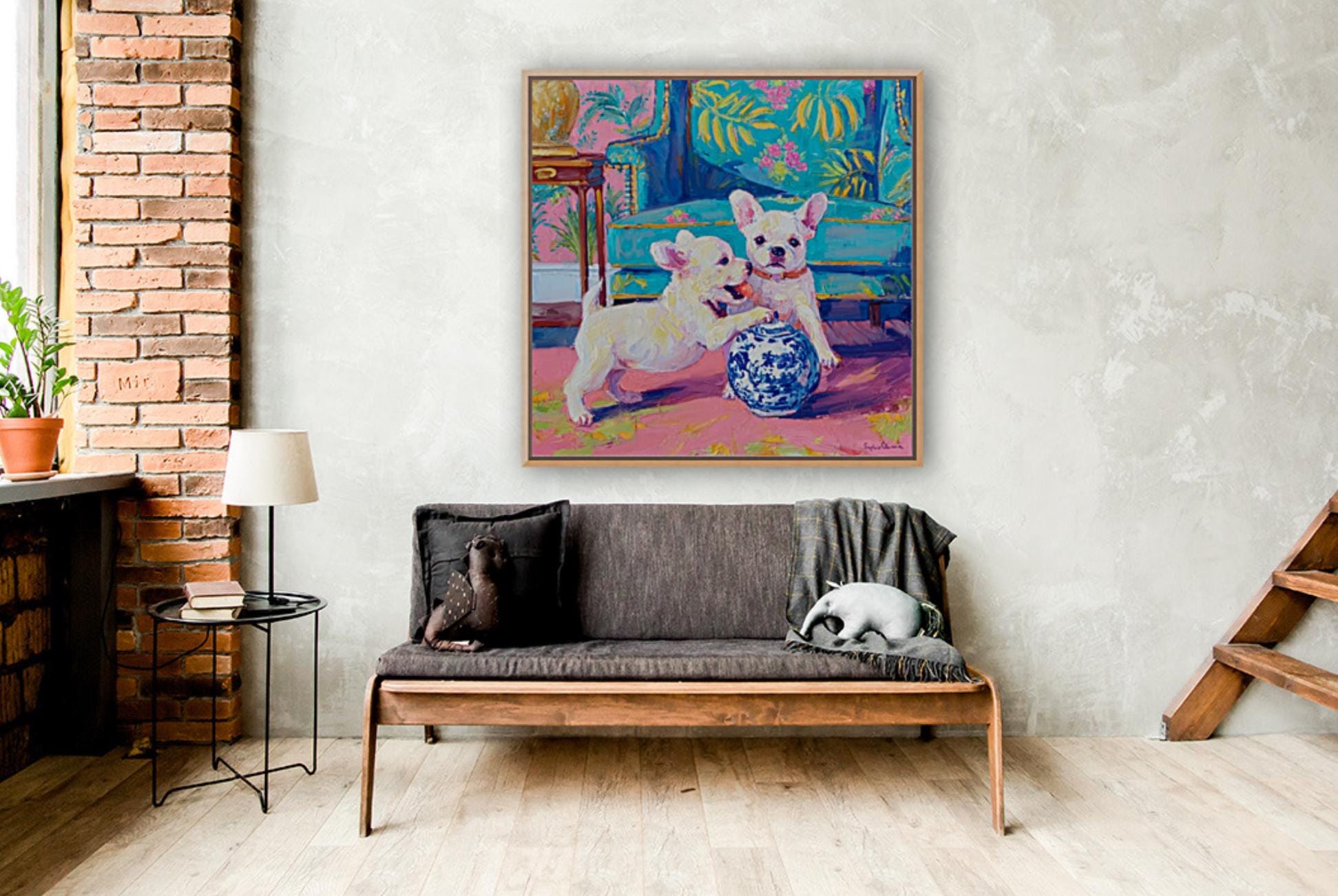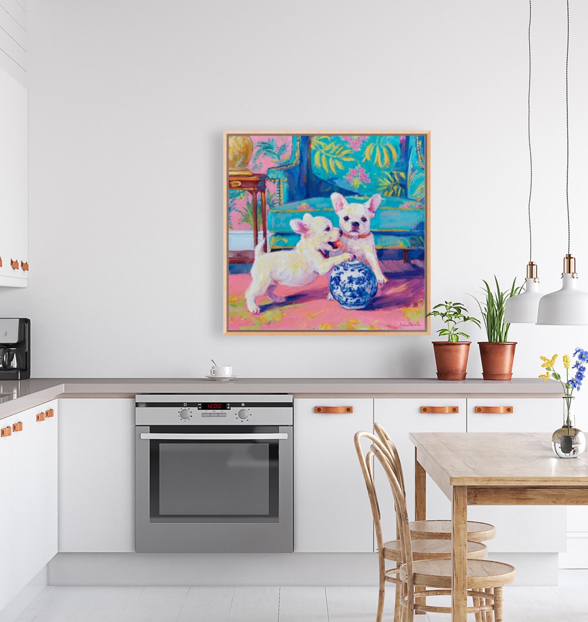 Grandmillennial art, let’s play, fine art whimsical dog print