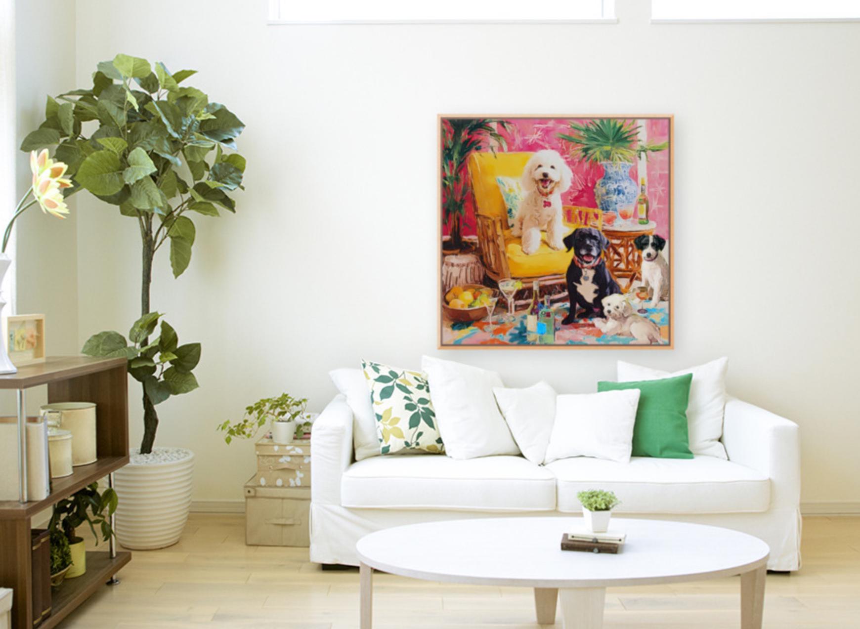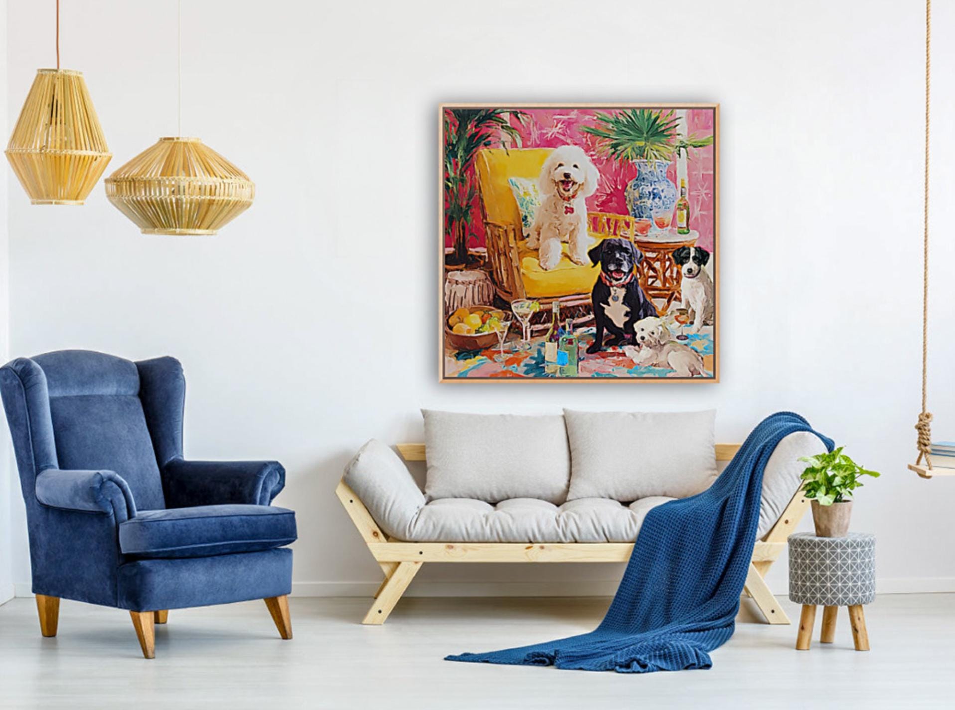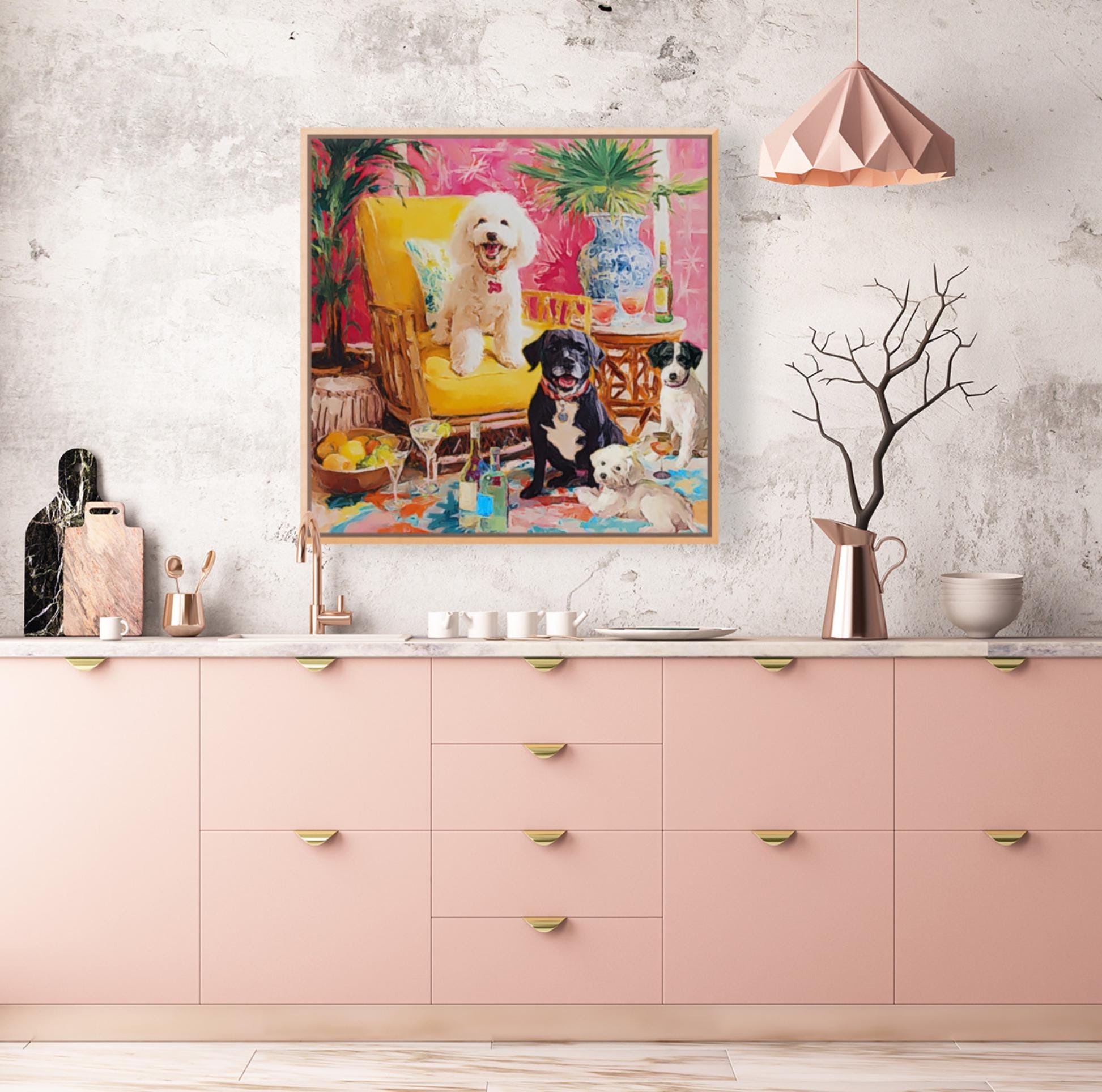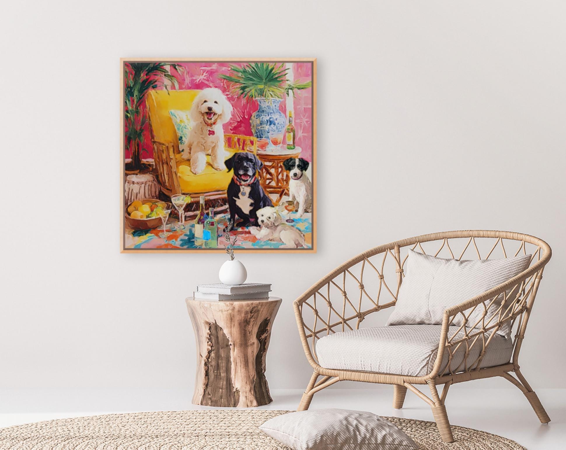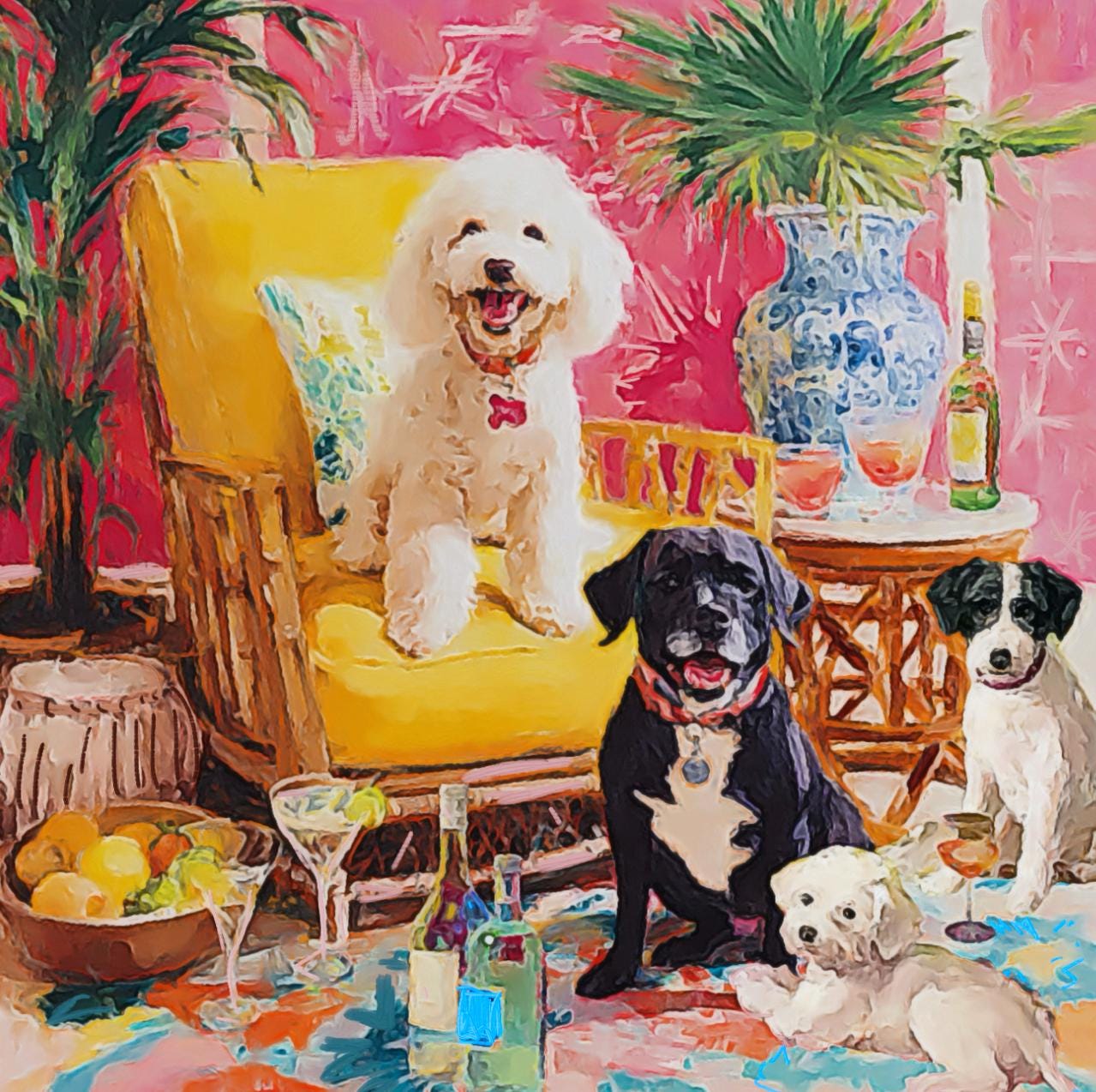 Whimsical Dogs Art Print: Drinks With Friends, Grandmillennial Decor